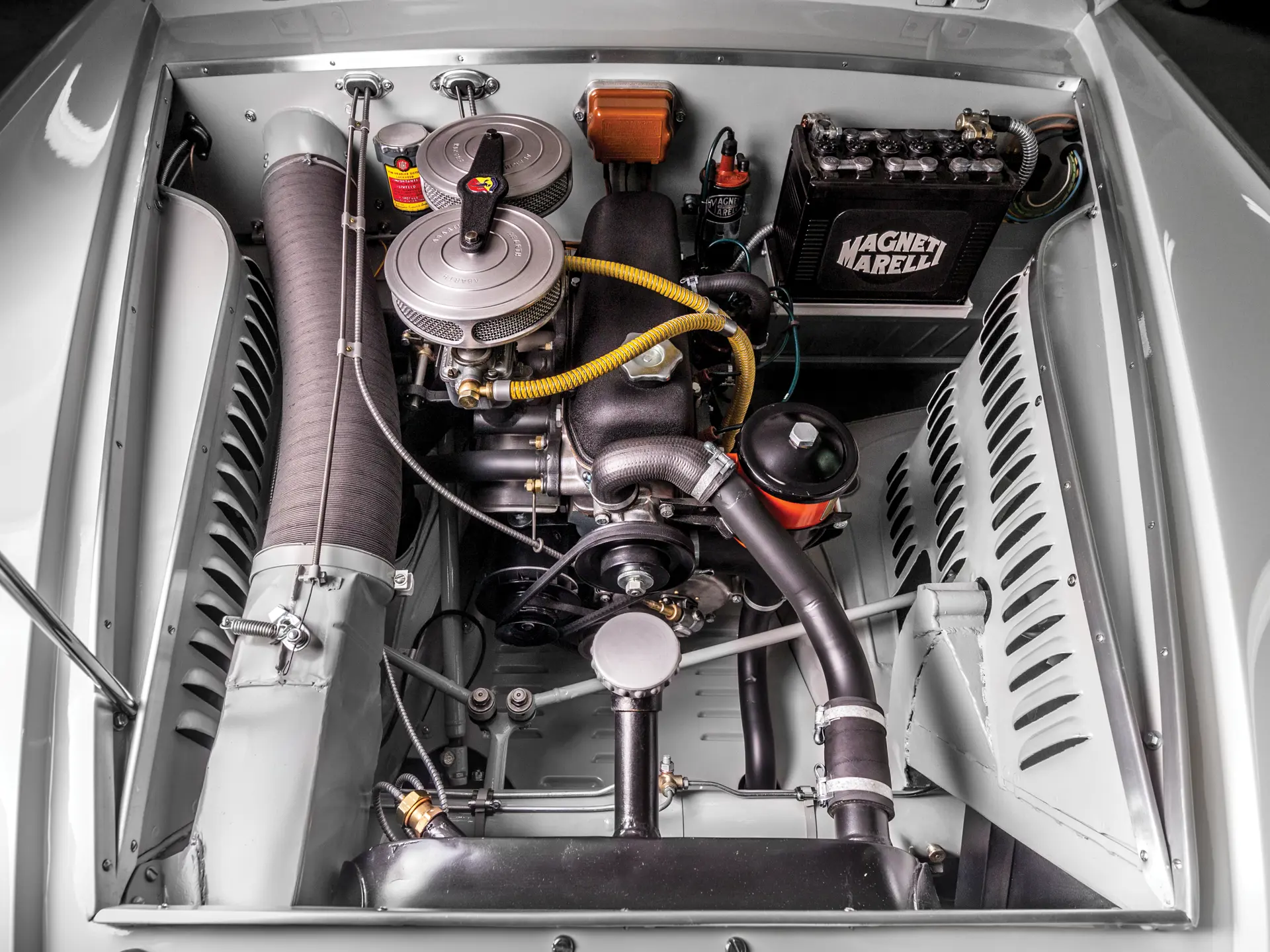 La rare Abarth passa entre les mains de deux autres collectionneurs avant d’être achetée par le vendeur en 2010. Le vendeur passa les cinq années suivantes à une restauration complète et correcte. Passionné de l’automobile, il a minutieusement recherché l’authenticité et la précision de chaque composant. Le dossier historique de la voiture comprend des photographies couleur haute résolution prises à Turin, ainsi que d’autres articles et documents d’époque sur le passé fascinant de l’Abarth.