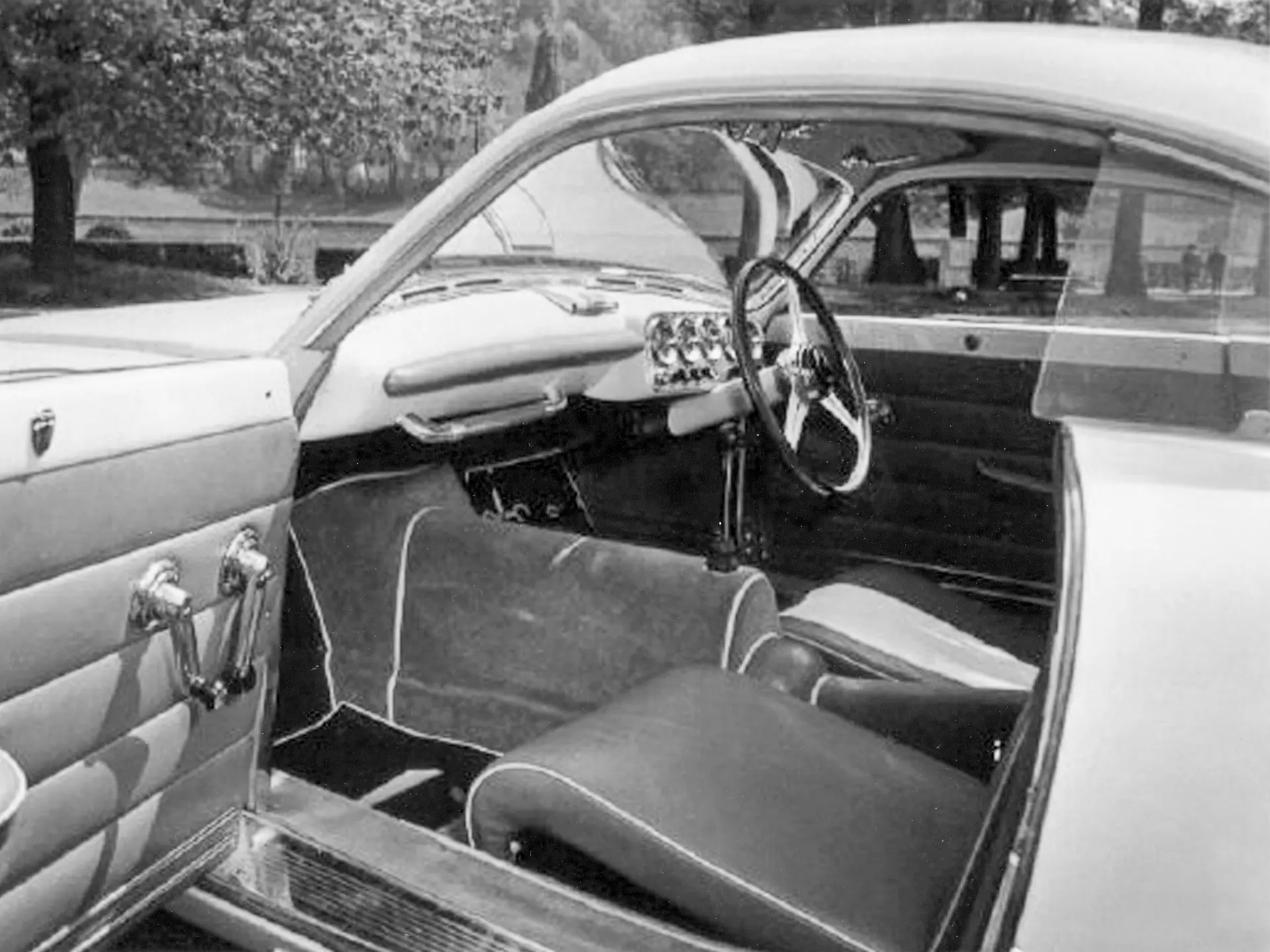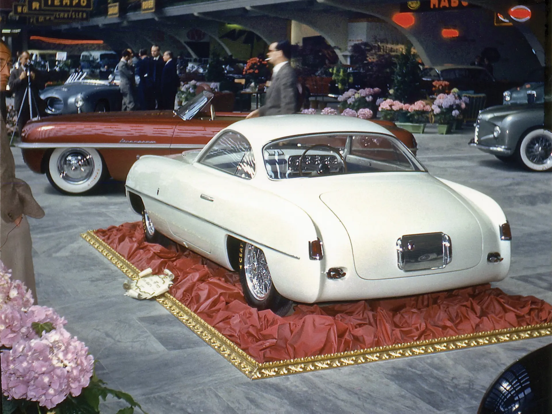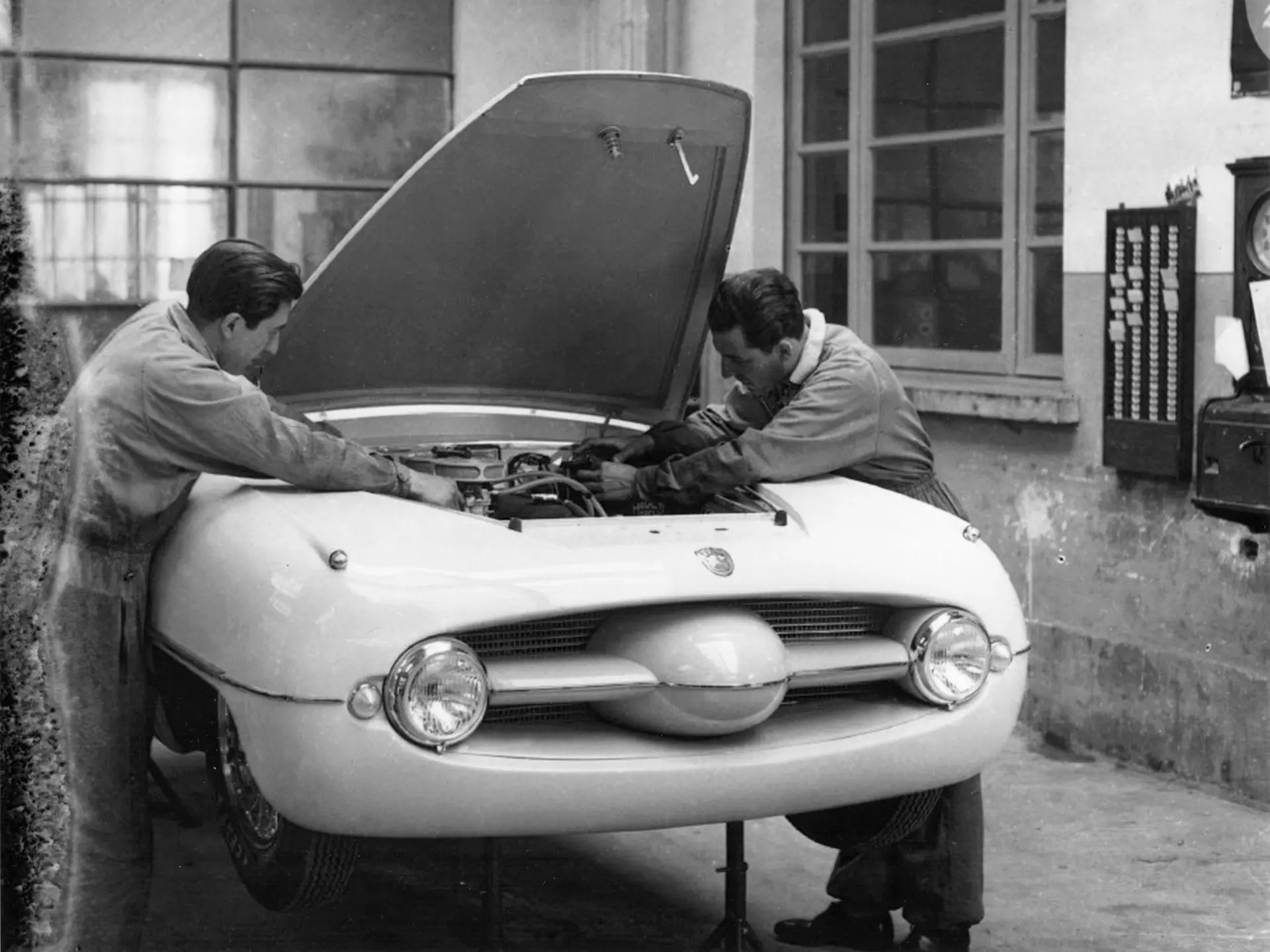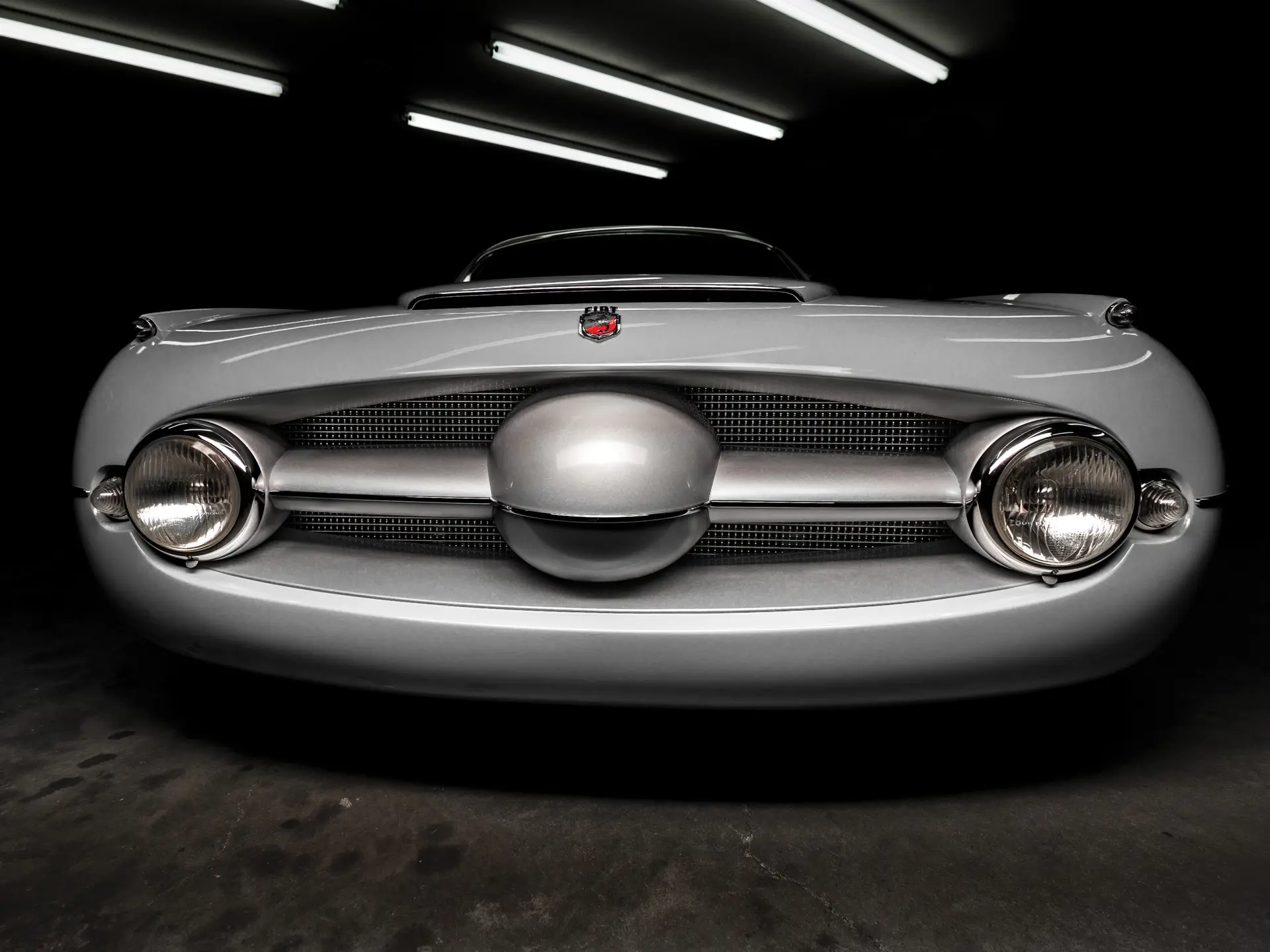 Dernier des quatre châssis de compétition Abarth 205 à avoir été construit, la voiture présentée ici est le seul exemplaire à utiliser un moteur et une transmission développés à partir de la nouvelle Fiat 1100-103, ainsi que le seul exemplaire carrossé par Ghia. On pense qu’elle a été conçue par Giovanni Michelotti, et a été construite en même temps que les Chrysler carrossées par Ghia de la même période. L’Abarth reprenait la large ouverture de calandre ovale des Chrysler, leur large position basse et leur élément de toit en forme de verrière, mais avec une échelle plus petite.