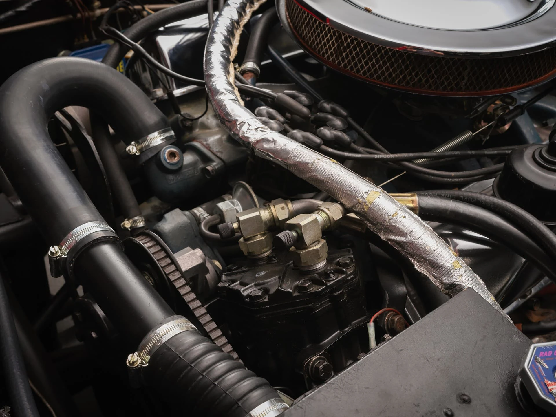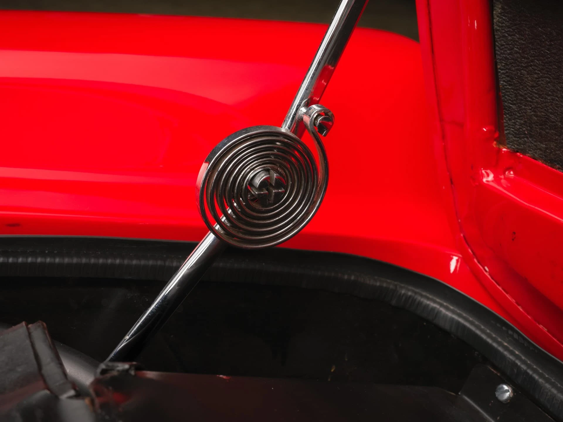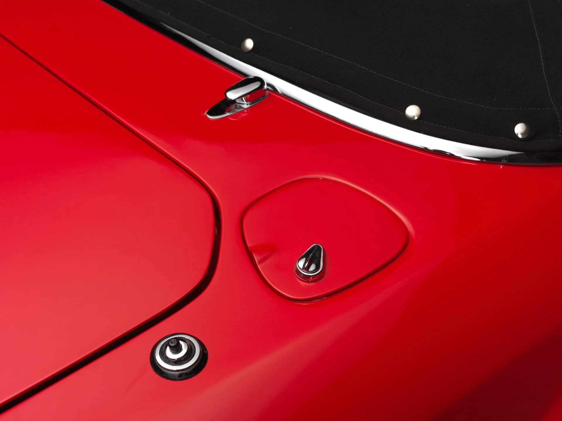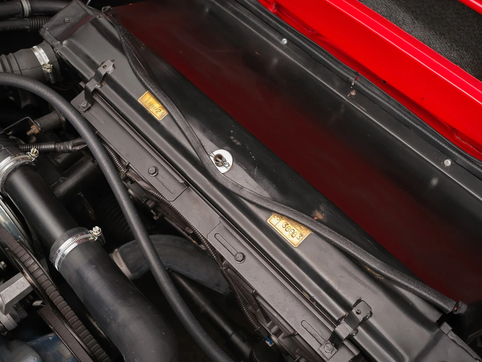 Le 428 Ford passe par une boîte automatique Ford C6 à 3 rapports renforcée et un différentiel à glissement limité. Finie en rouge vif (un changement de couleur par rapport à l’origine), elle a une sellerie en cuir noir, une capote en tissu noir et des jantes en fil de fer chromées. Le moteur a été remplacé il y a longtemps (peut-être chez AC), et un propriétaire ultérieur a installé l’air conditionné. Exposée à Pebble Beach en 1990, elle a obtenu la deuxième place dans la classe, puis a remporté des victoires de classe en 1991 aux concours d’élégance de Hillsborough et Forest Grove.