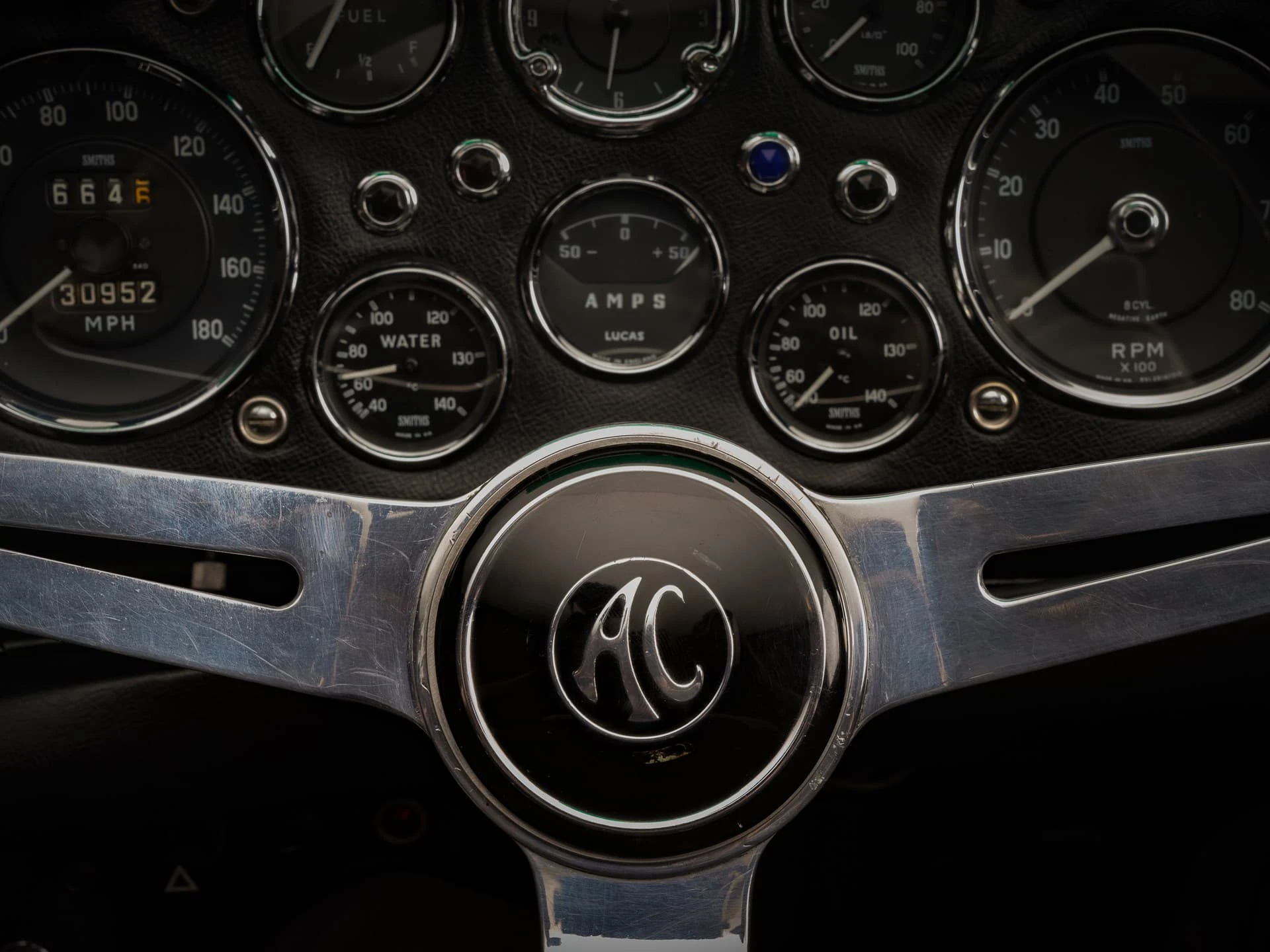 Les AC 428 ont toutes les qualités requises pour être considérées comme l’une des meilleures GT de l’époque : une allure racée, une posture basse et large, des échappements suggestifs, des grilles d’aile avant, des sièges confortables, un grand espace de chargement et un monstrueux V8 de 7,0 litres !