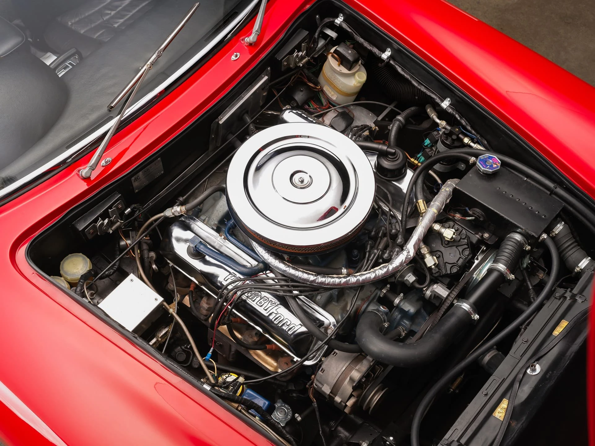 AC a donc pris le robuste châssis à ressorts hélicoïdaux et à suspension indépendante de la 427 Cobra, a ajouté six pouces à son empattement et l’a envoyé à Pietro Frua en Italie pour qu’il l’habille d’une carrosserie de coupé de luxe ; un Spider a suivi peu de temps après. La puissance provenait du même moteur Ford 428 à gros bloc V-8 de 335 chevaux utilisé dans la majorité des Cobra « 427 ».