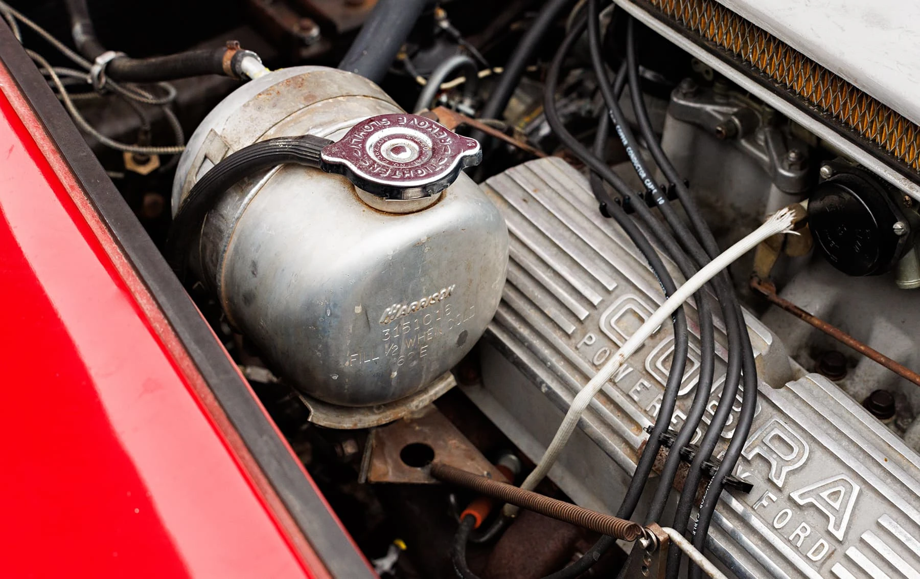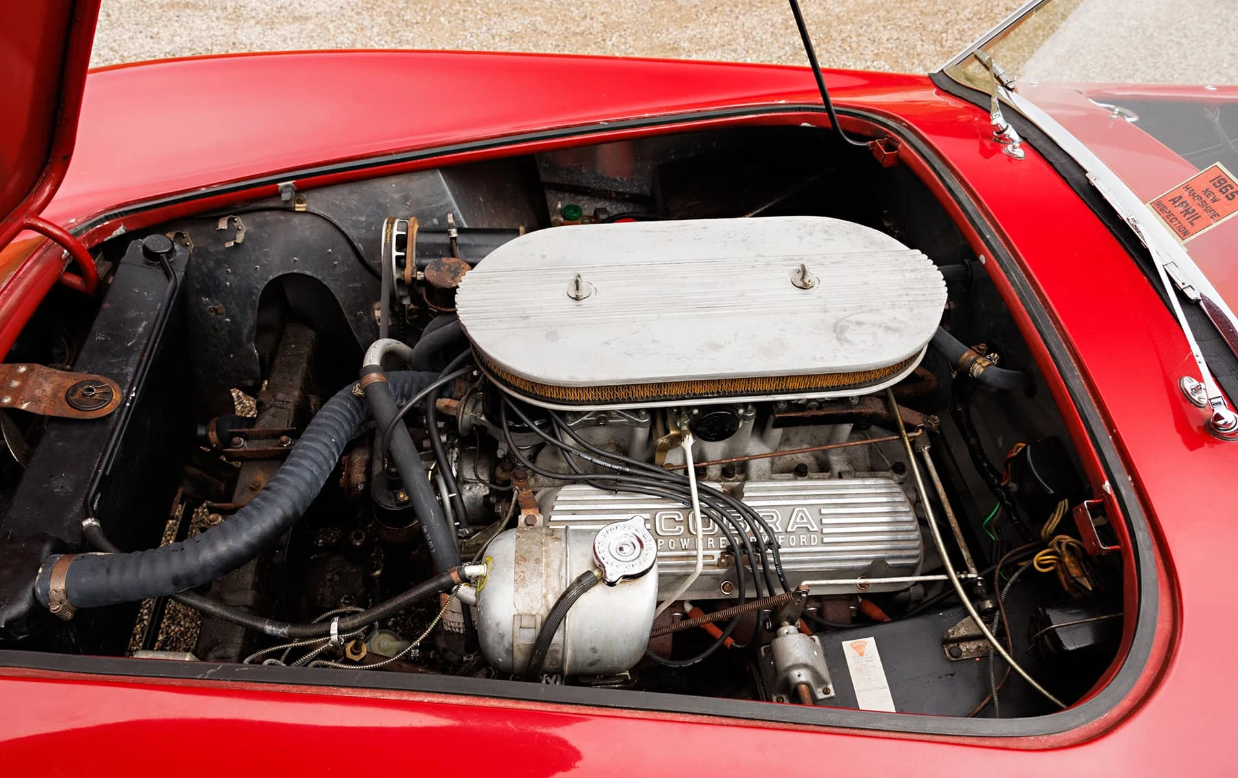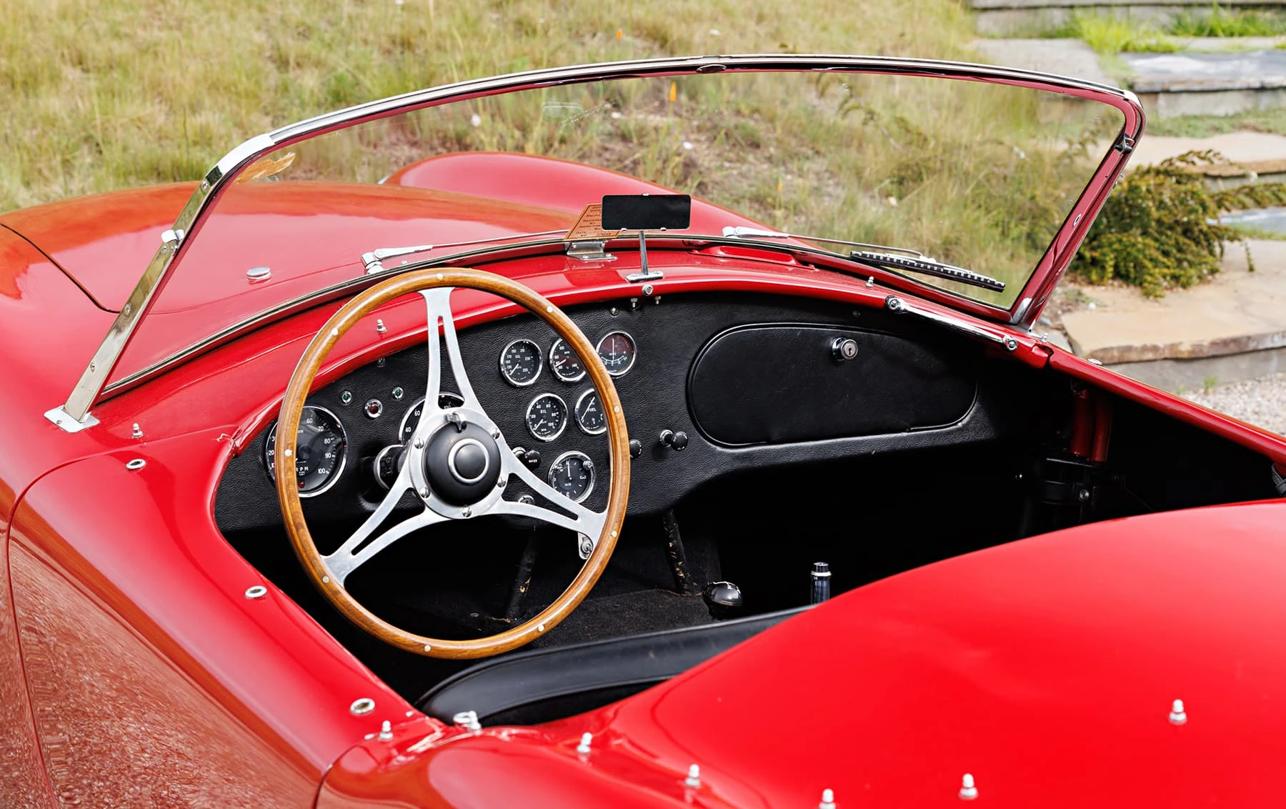 Non seulement les premiers modèles 260 sont historiquement importants, mais ils possèdent également des détails rares et charismatiques qui les différencient des Cobra plus tardives et plus standardisées. La carrosserie en aluminium à flancs durs ressemblait à l’AC Ace sur laquelle elle était basée, avec ses ailes étroites, l’absence de prises d’air latérales, les loquets de capot Wilmot-Breeden et les emblèmes Shelby-AC-Cobra de production limitée. À l’intérieur, l’habitacle était équipé d’une instrumentation Smiths complète, d’un volant Moto-Lita cerclé de bois et d’un pommeau de levier de vitesses provenant de la réserve de pièces détachées de Ford. Sur le plan mécanique, ces premières Cobra étaient équipées du moteur Hi-Po 260 cid V-8, d’une boîte de vitesses Ford Galaxie à carter en fonte, d’un rapport arrière de 3,54:1, d’une direction à vis sans fin et à secteur, de composants électriques Lucas et de jantes en fil de fer de 5 1/2″ de large.