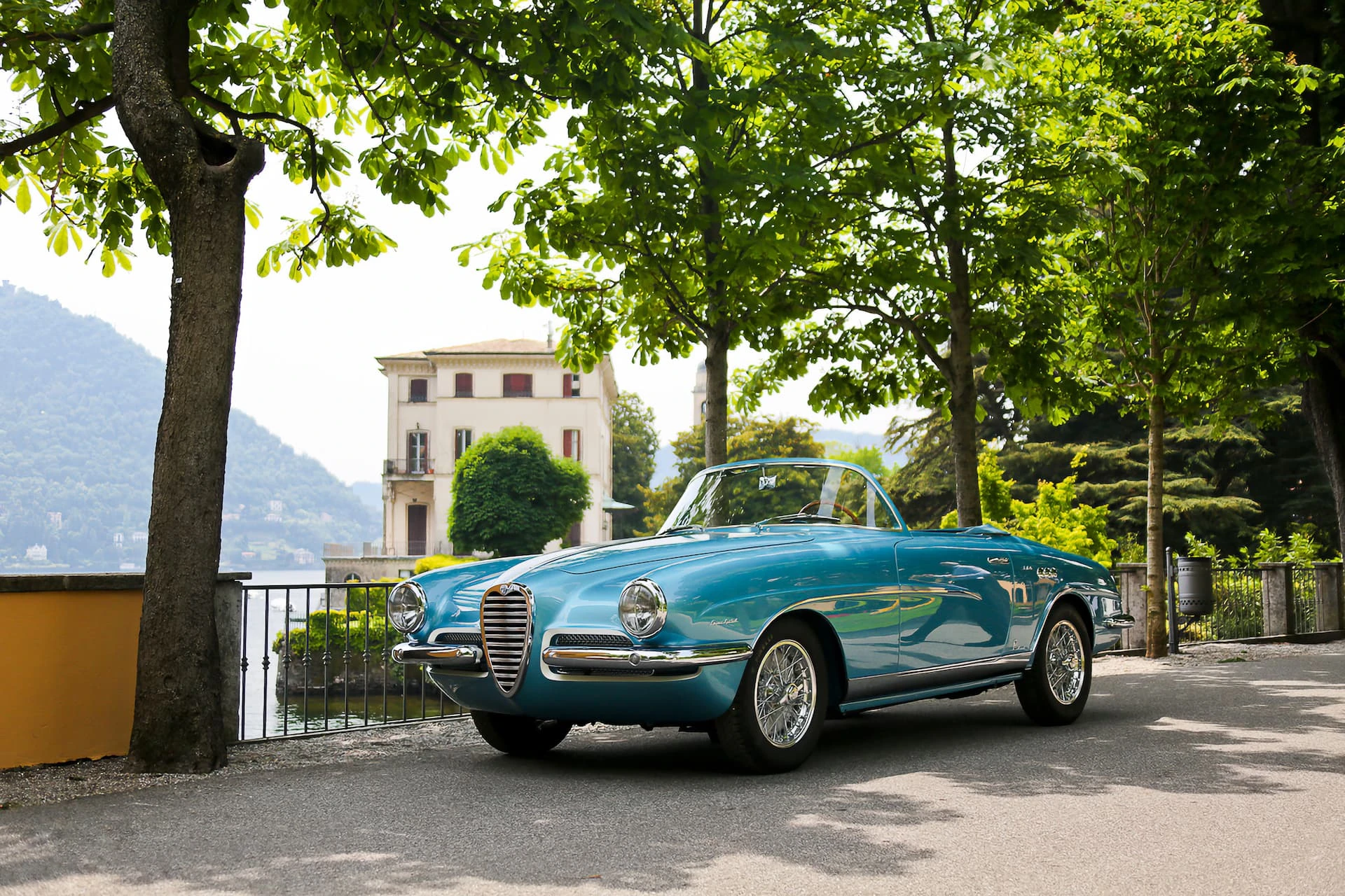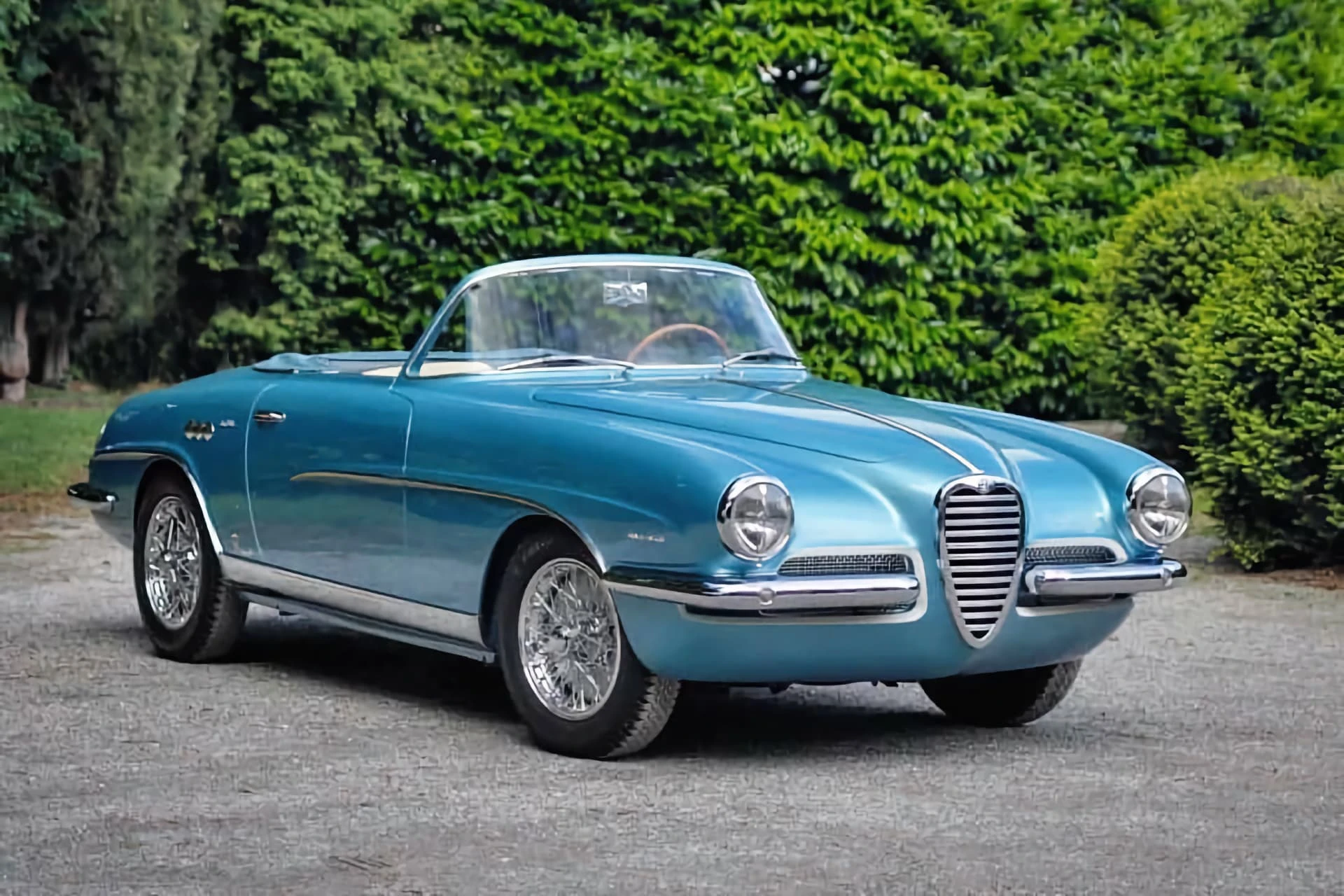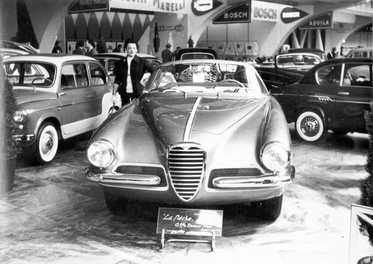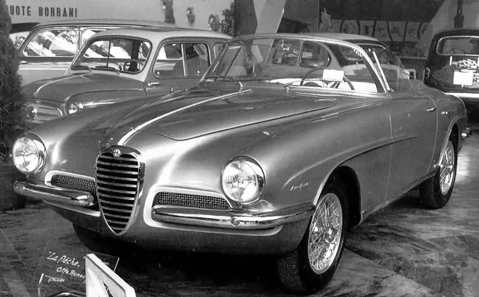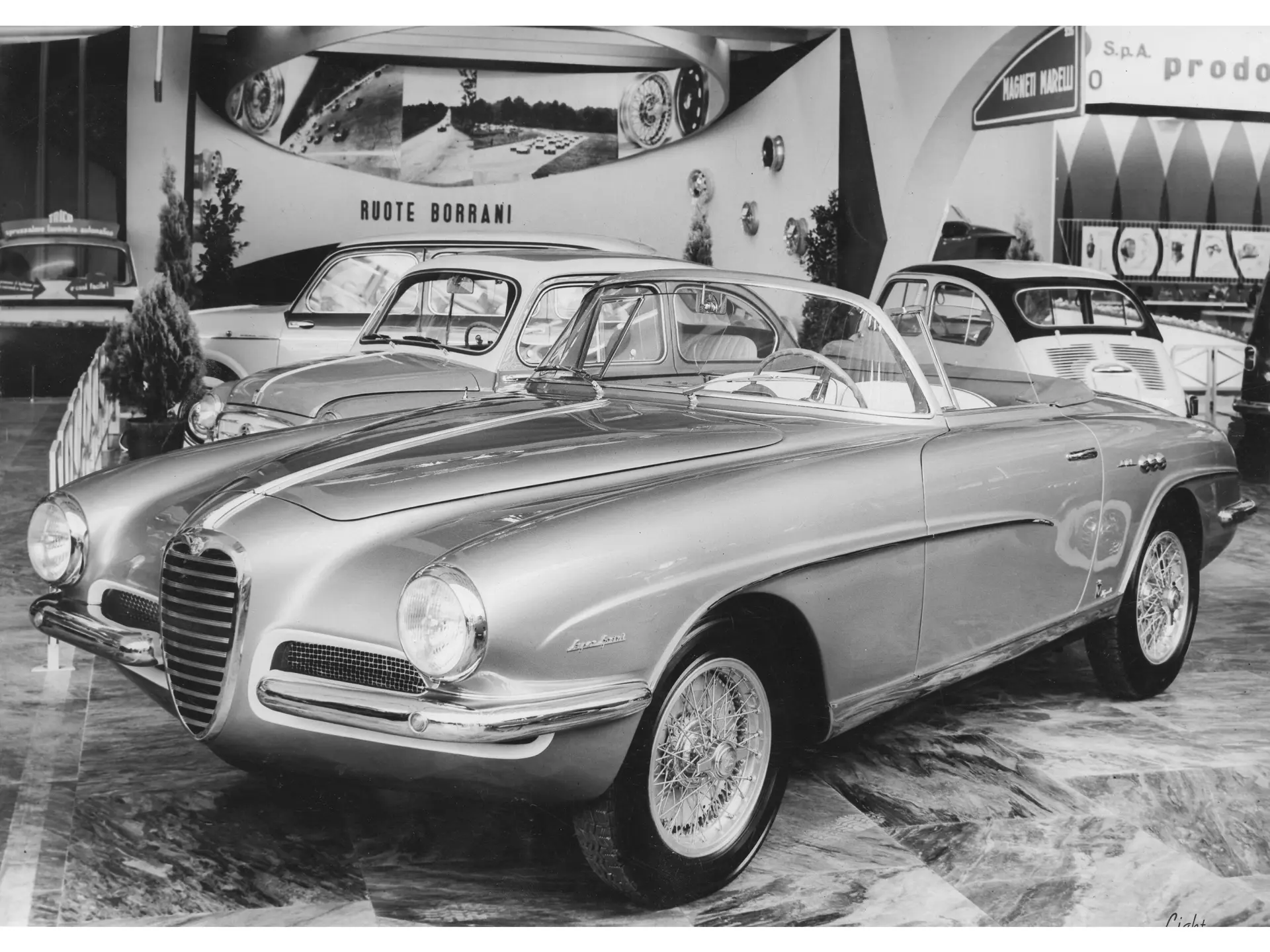 En 1950, une nouvelle Alfa Romeo est présentée à Turin et fera ses débuts officiels au Salon de Paris en octobre 1950 : l’Alfa Romeo 1900. Produite de 1950 à 1959, l’Alfa Romeo 1900 était la première Alfa Romeo d’après-guerre dessinée entièrement par la marque. Dessinée par Orazio Satta Puliga, elle est un modèle charnière pour Alfa Romeo puisqu’‘il s’agit du premier modèle construit entièrement sur une ligne de production (c’en est fini des carrosseries séparées du châssis), et la première Alfa proposée en conduite à gauche. Cette carrosserie Vignale unique dessinée par Giovanni Michelotti fut dévoilée au Salon de l’automobile de Turin 1955.