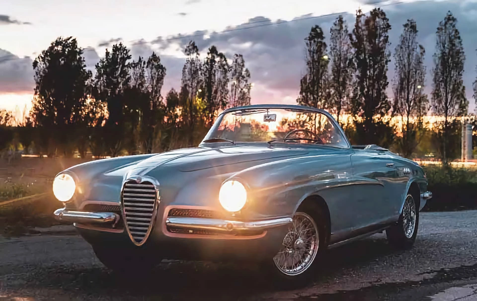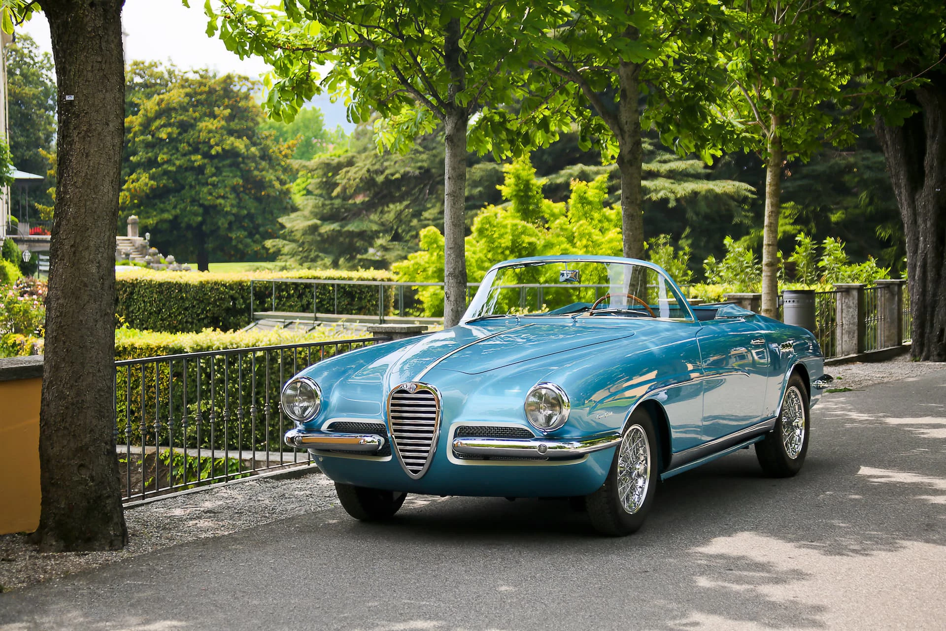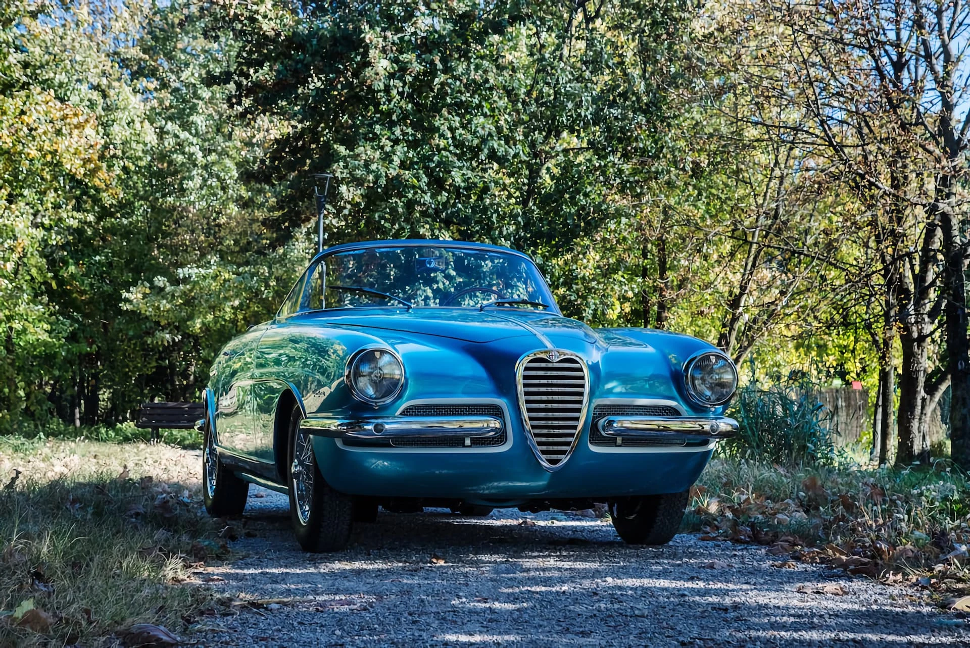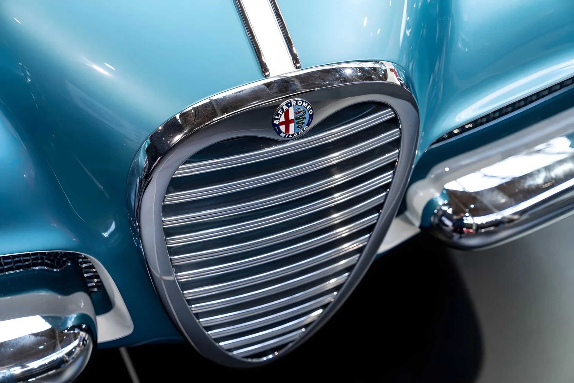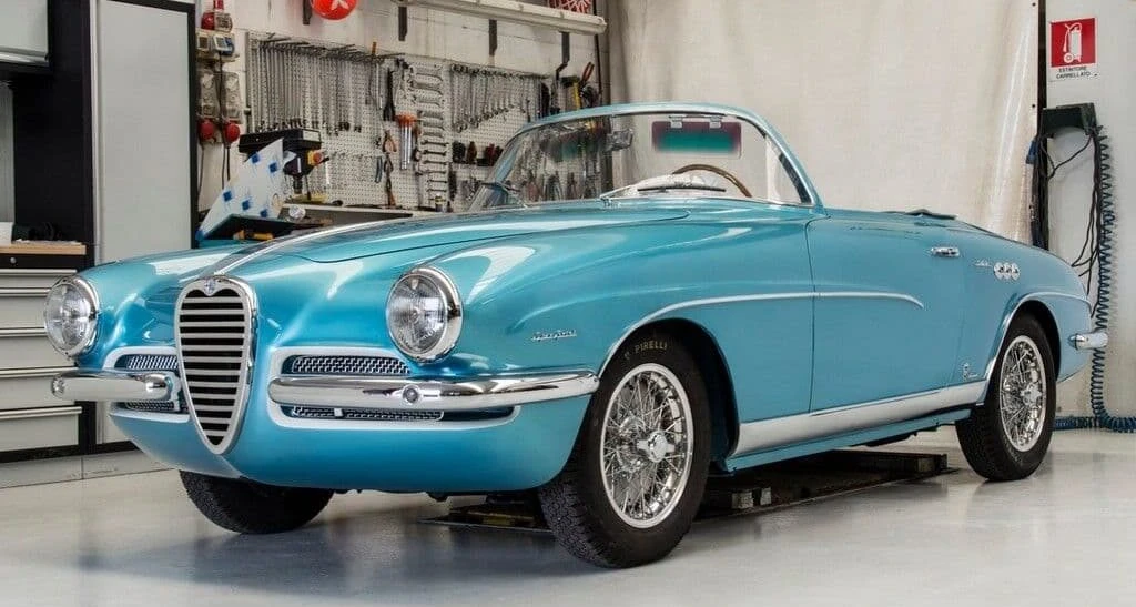 En 1950, une nouvelle Alfa Romeo est présentée à Turin et fera ses débuts officiels au Salon de Paris en octobre 1950 : l’Alfa Romeo 1900. Produite de 1950 à 1959, l’Alfa Romeo 1900 était la première Alfa Romeo d’après-guerre dessinée entièrement par la marque. Dessinée par Orazio Satta Puliga, elle est un modèle charnière pour Alfa Romeo puisqu’‘il s’agit du premier modèle construit entièrement sur une ligne de production (c’en est fini des carrosseries séparées du châssis), et la première Alfa proposée en conduite à gauche. Cette carrosserie Vignale unique dessinée par Giovanni Michelotti fut dévoilée au Salon de l’automobile de Turin 1955.