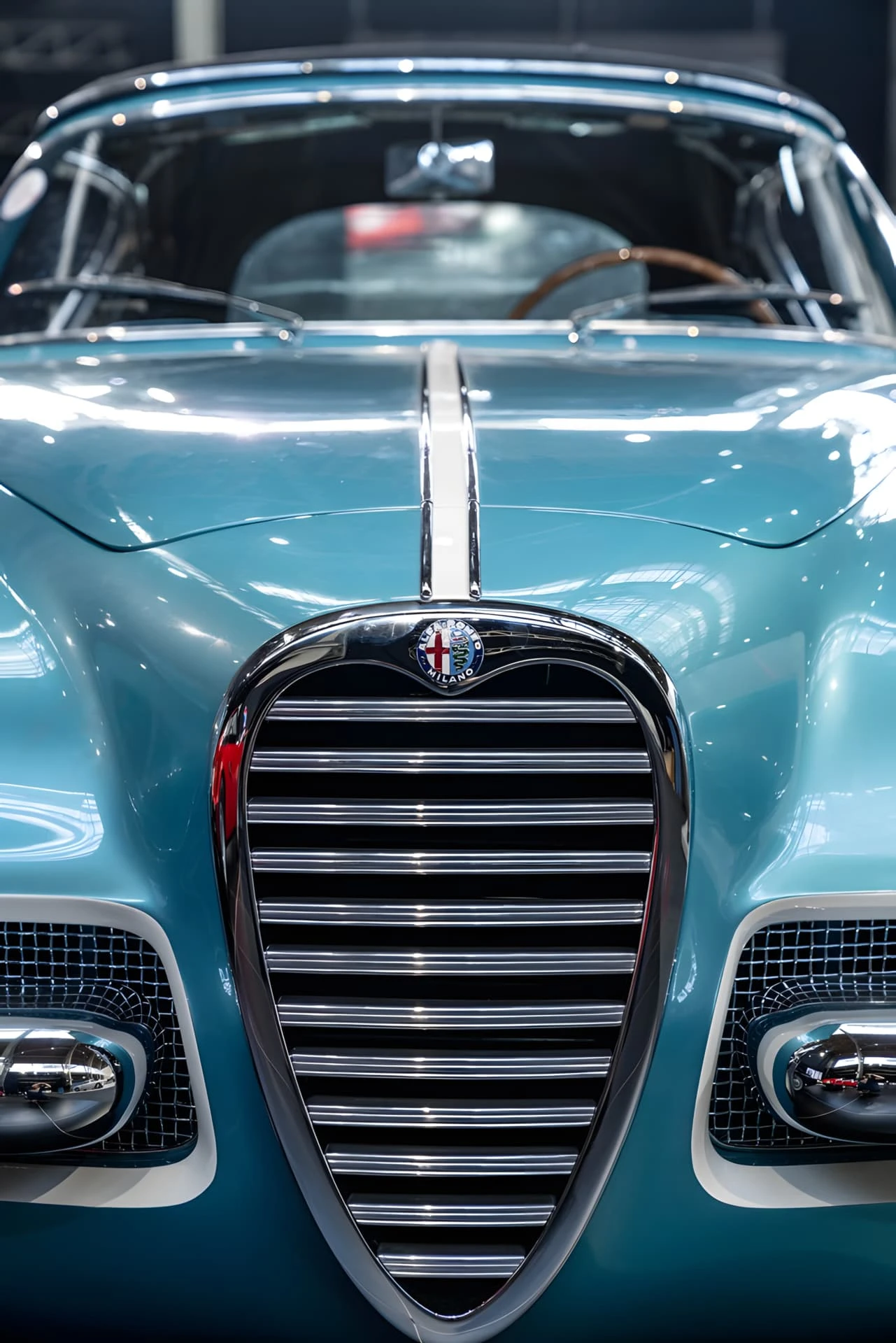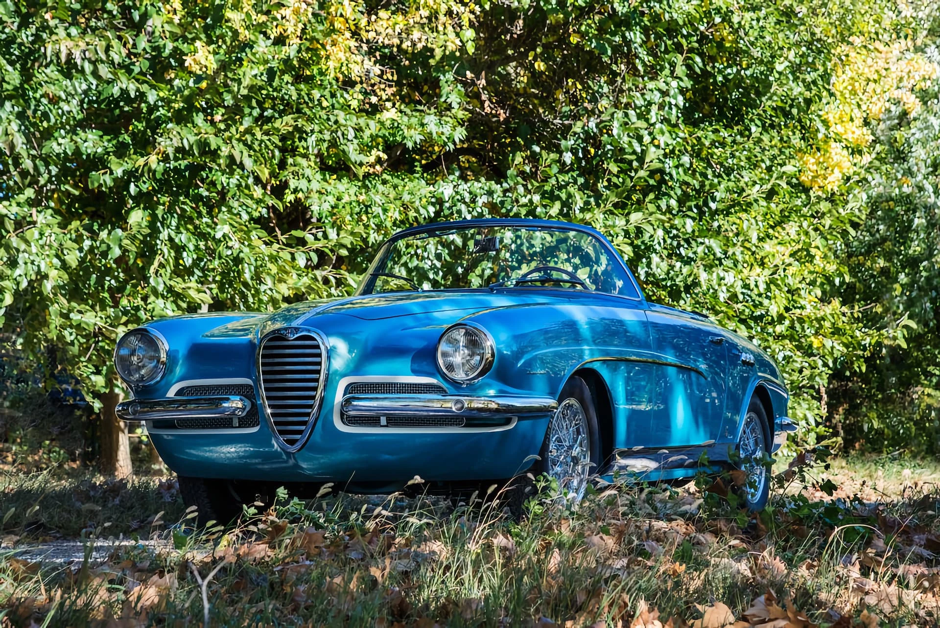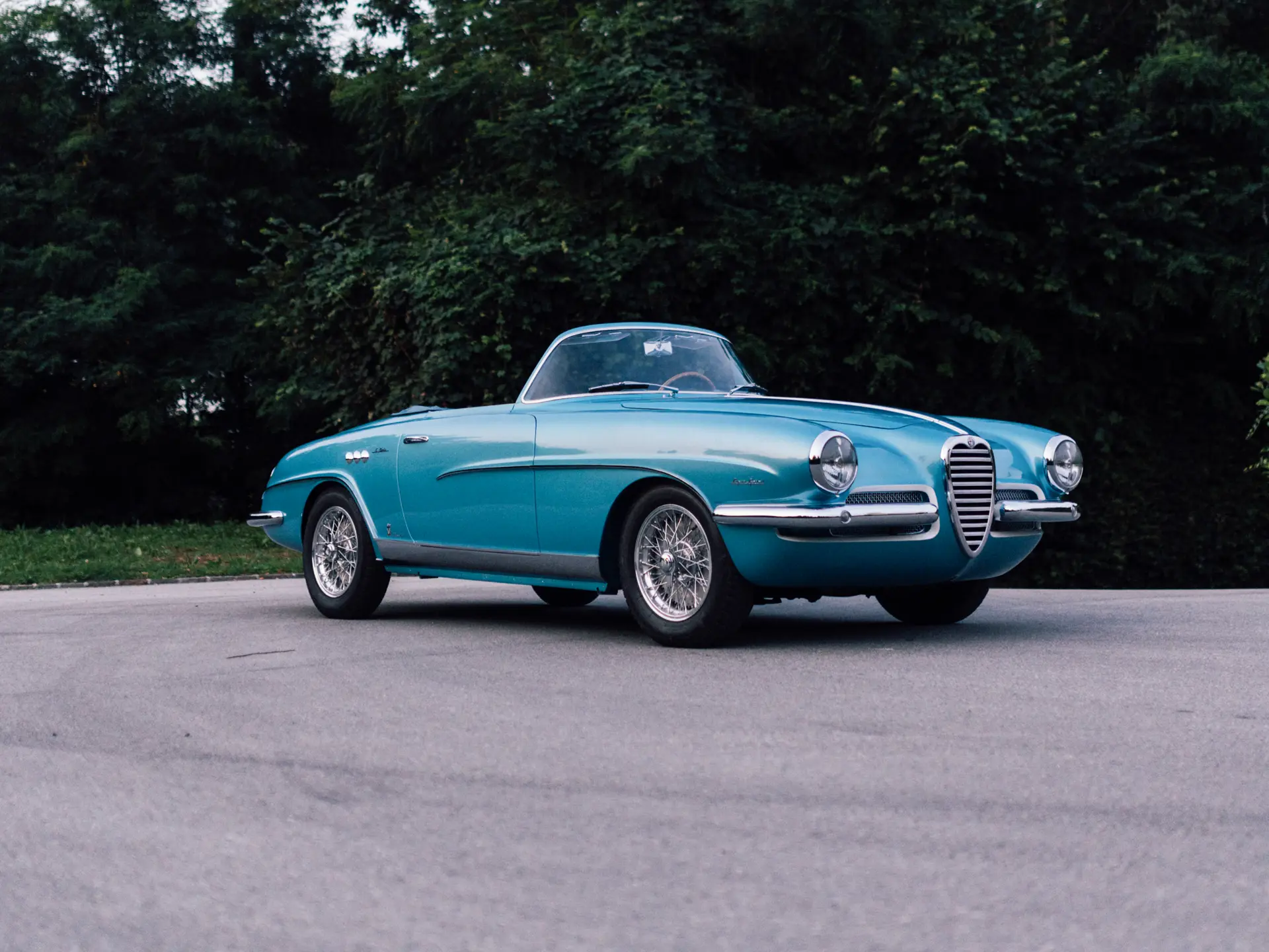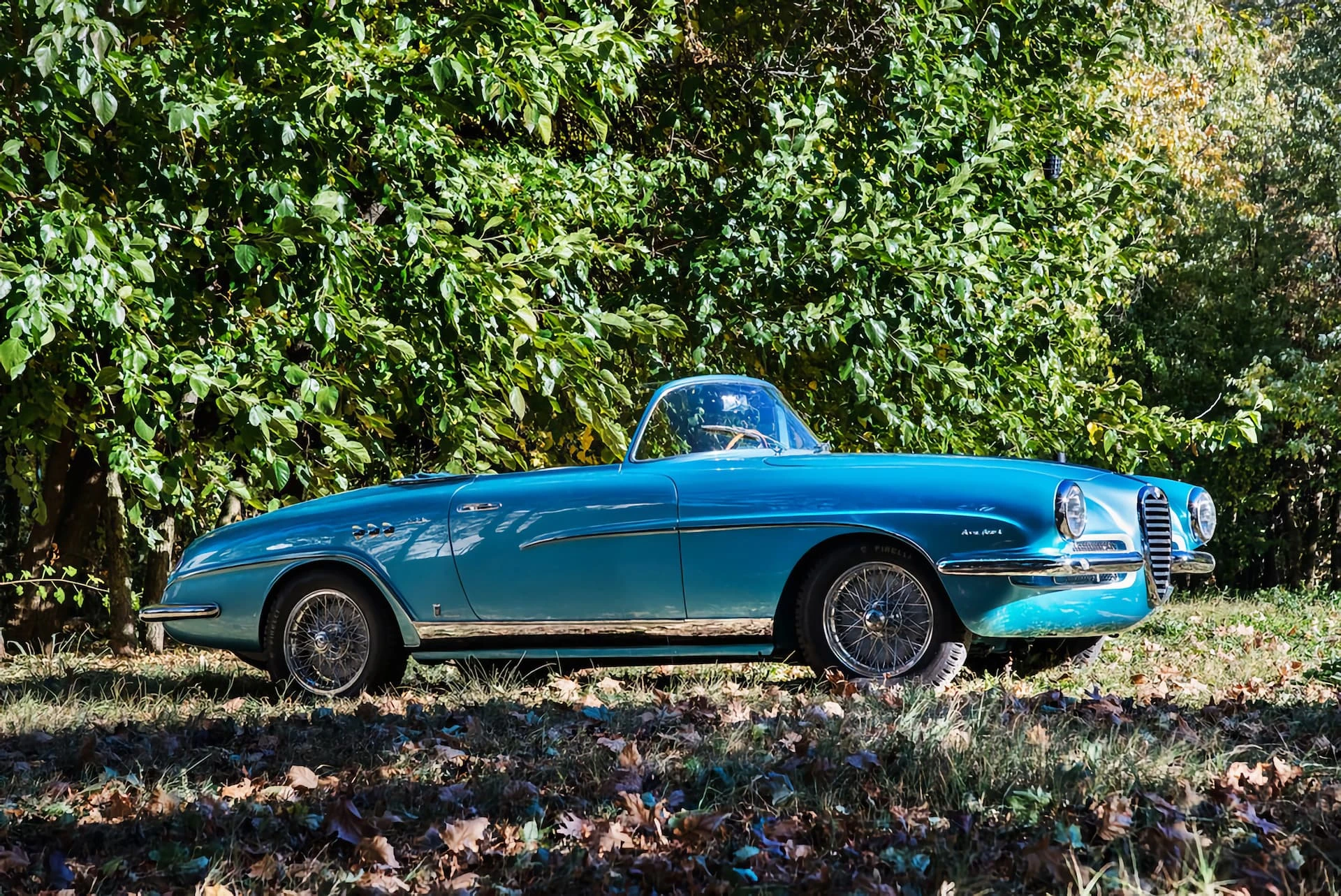En 1950, une nouvelle Alfa Romeo est présentée à Turin et fera ses débuts officiels au Salon de Paris en octobre 1950 : l’Alfa Romeo 1900. Produite de 1950 à 1959, l’Alfa Romeo 1900 était la première Alfa Romeo d’après-guerre dessinée entièrement par la marque. Dessinée par Orazio Satta Puliga, elle est un modèle charnière pour Alfa Romeo puisqu’‘il s’agit du premier modèle construit entièrement sur une ligne de production (c’en est fini des carrosseries séparées du châssis), et la première Alfa proposée en conduite à gauche. Cette carrosserie Vignale unique dessinée par Giovanni Michelotti fut dévoilée au Salon de l’automobile de Turin 1955.