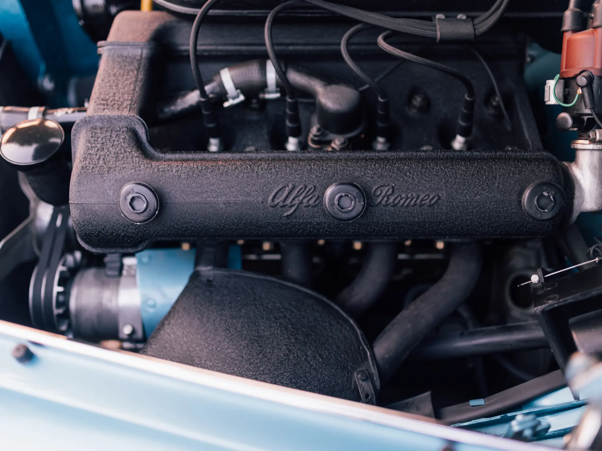 L’Alfa Romeo 1900 Super Sprint « La Flèche » était équipée d’un moteur à quatre cylindres en ligne de 1 972 cc de cylindrée capable de développer une puissance de 92 chevaux à 5500 tr/min. Il était alimenté par deux carburateurs Weber de 34 mm et associé à une boîte de vitesses manuelle à cinq rapports., autorisant une vitesse maximale d’environ 160 km/h.
