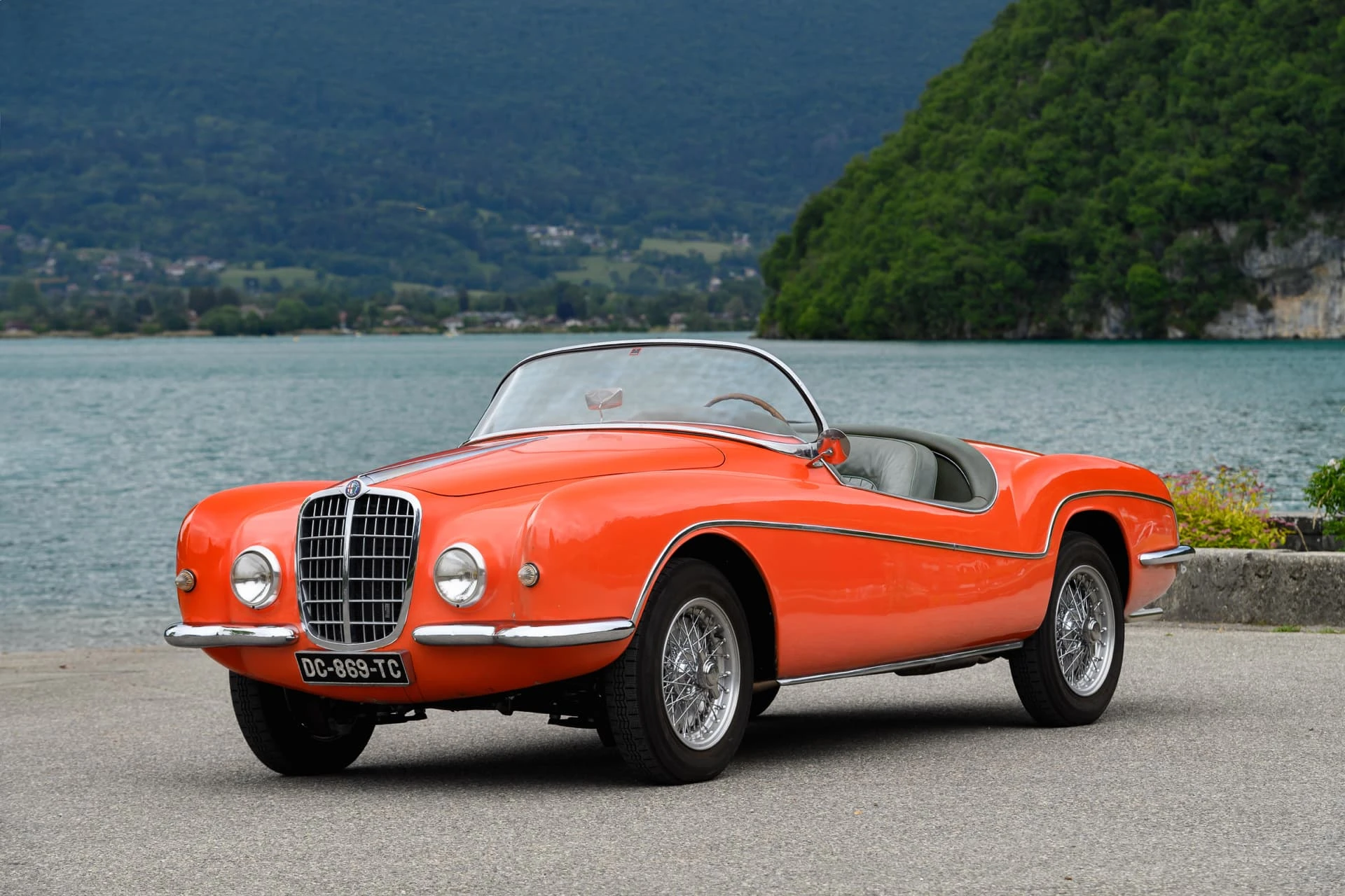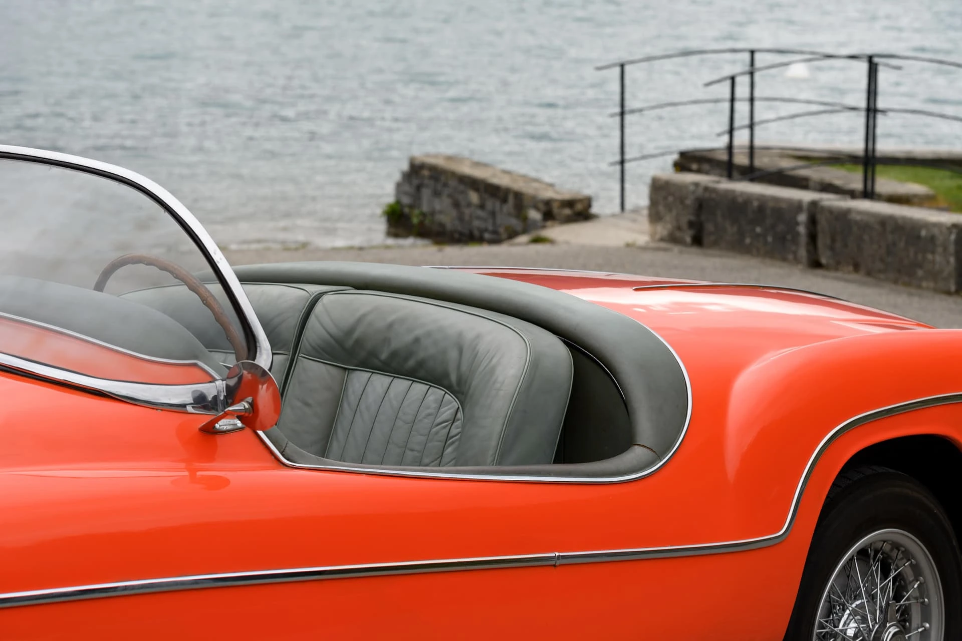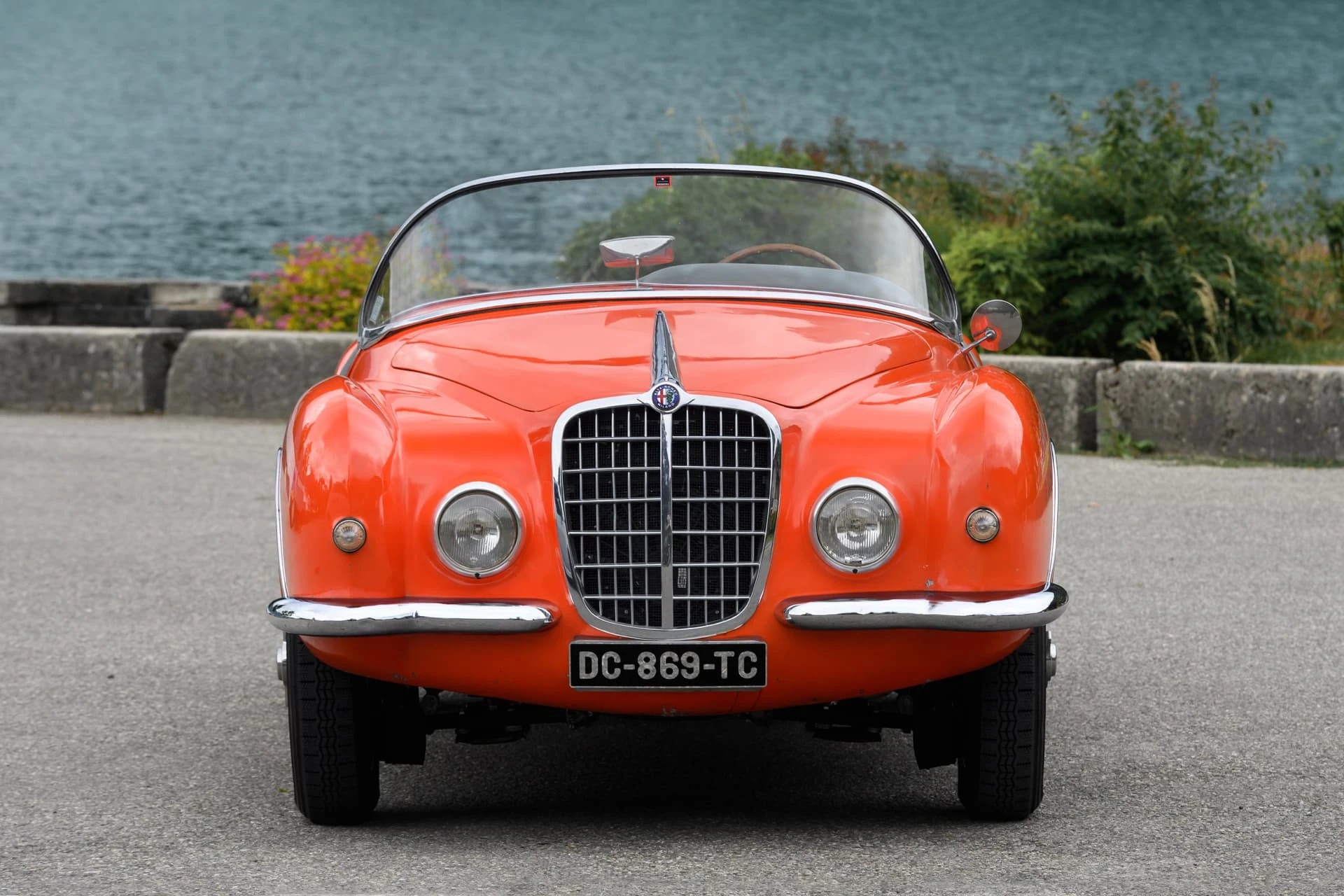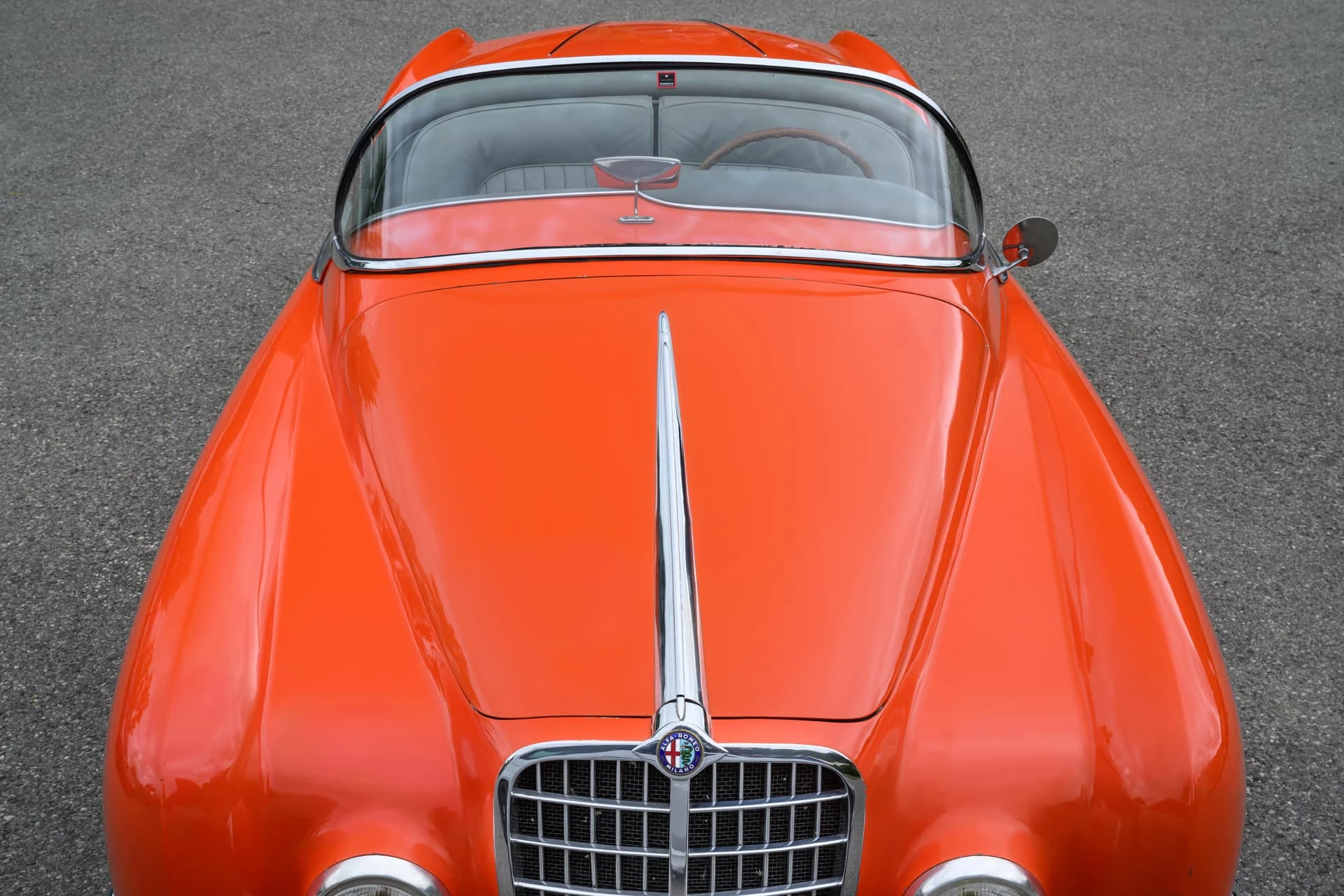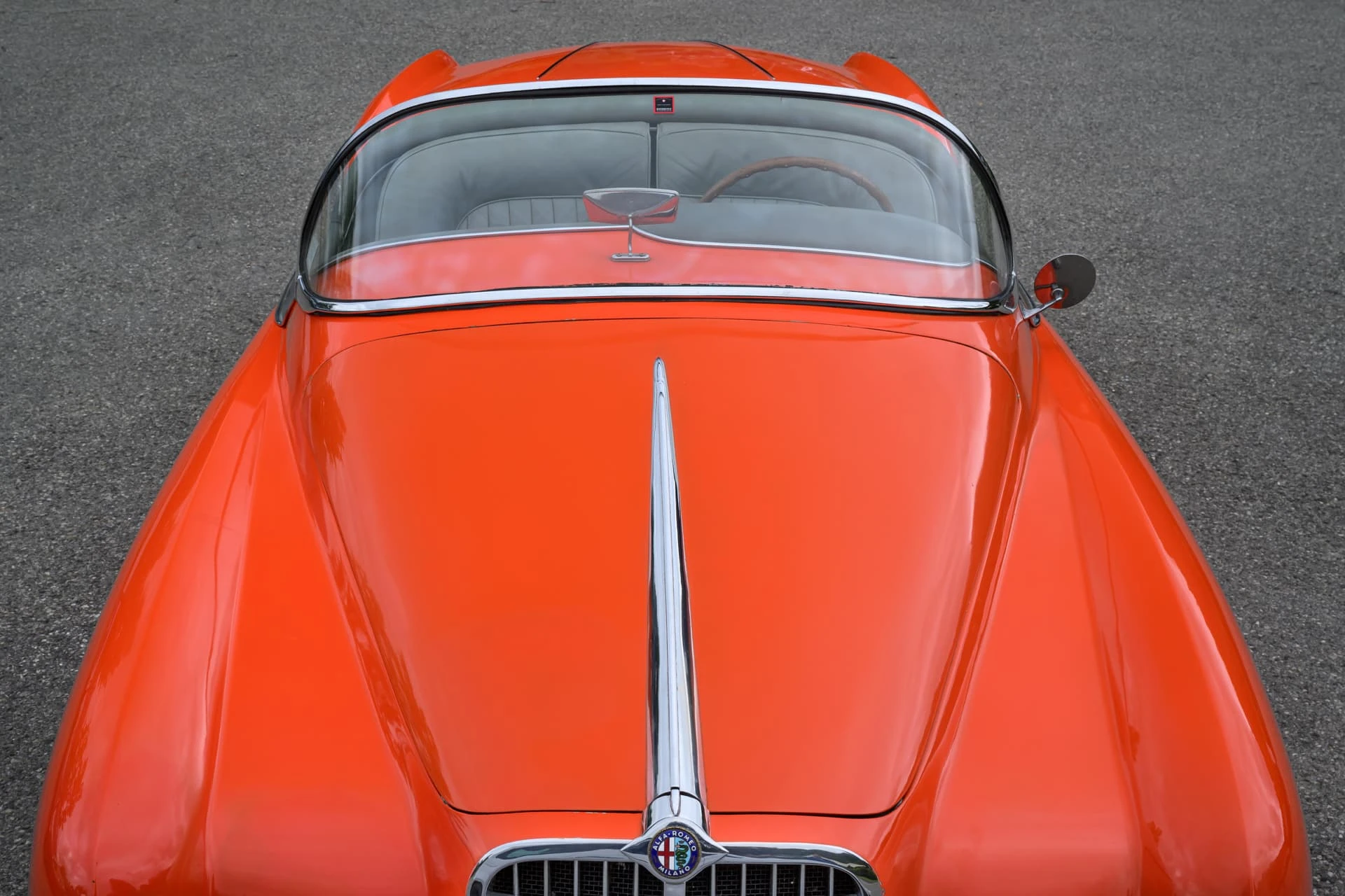 La voiture présentée ici est l’une des quelque dix Alfa Romeo carrossées par la Carrosserie Ghia à Aigle (l’antenne suisse de la célèbre Carrozzeria turinoise qui appartenait à l’époque à Mario Boano), et coûtait autant qu’une Mercedes-Benz 300 SL. Le premier propriétaire était un riche homme d’affaires suisse passionné par les hors-bords Riva, qui a demandé à Ghia-Aigle de produire une voiture au style Riva : pas de portes, pas de coffre, et un pare-brise de type bateau.