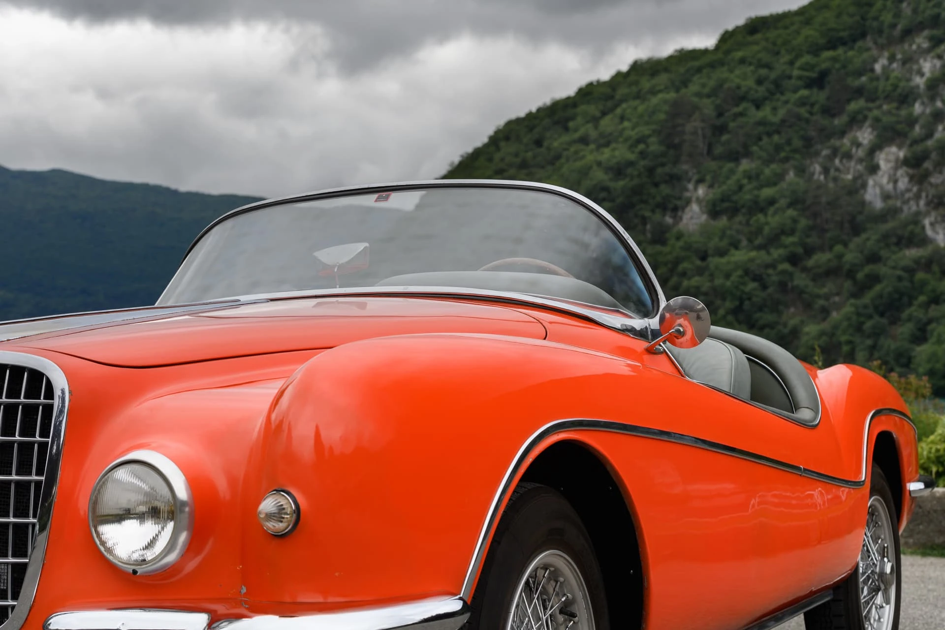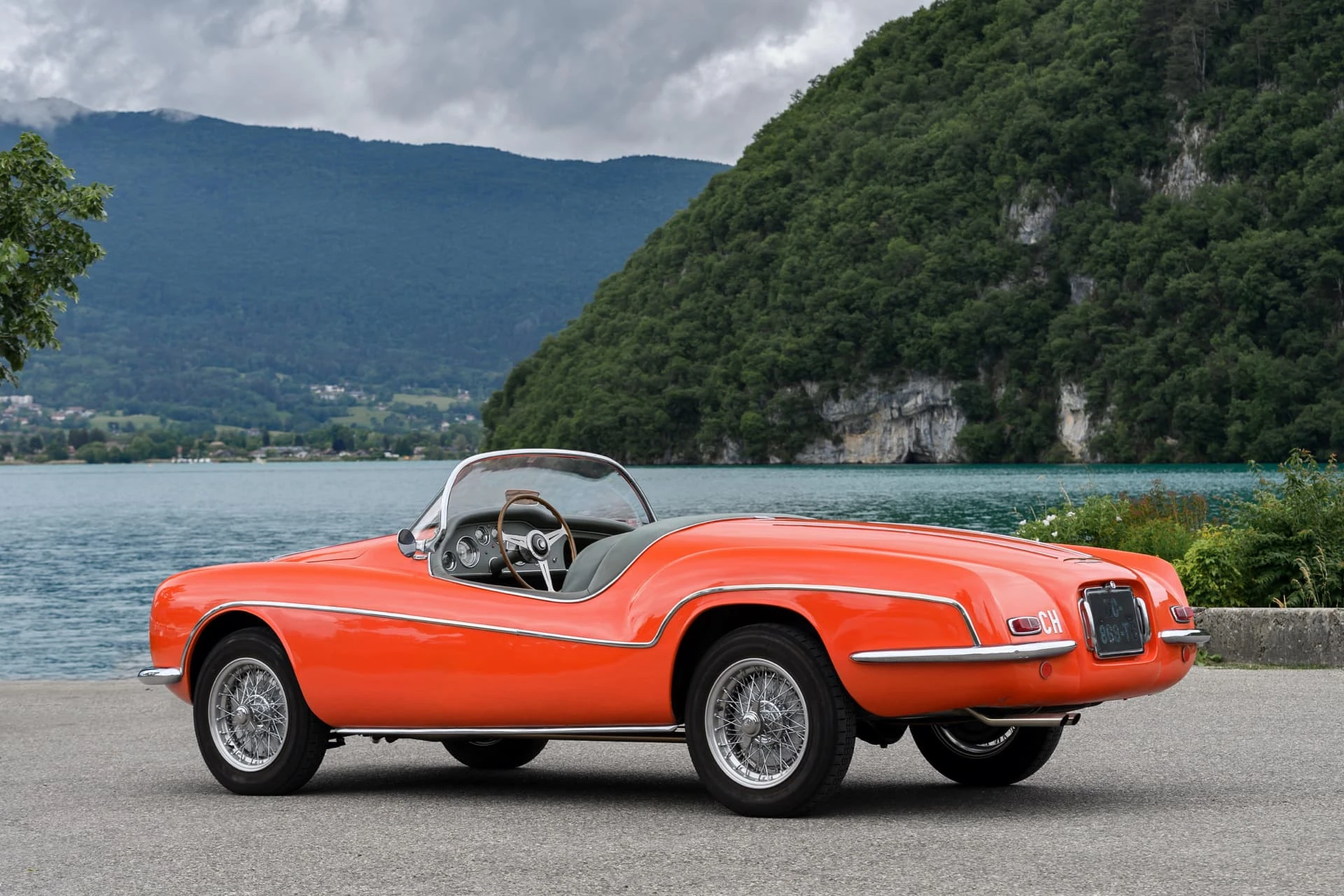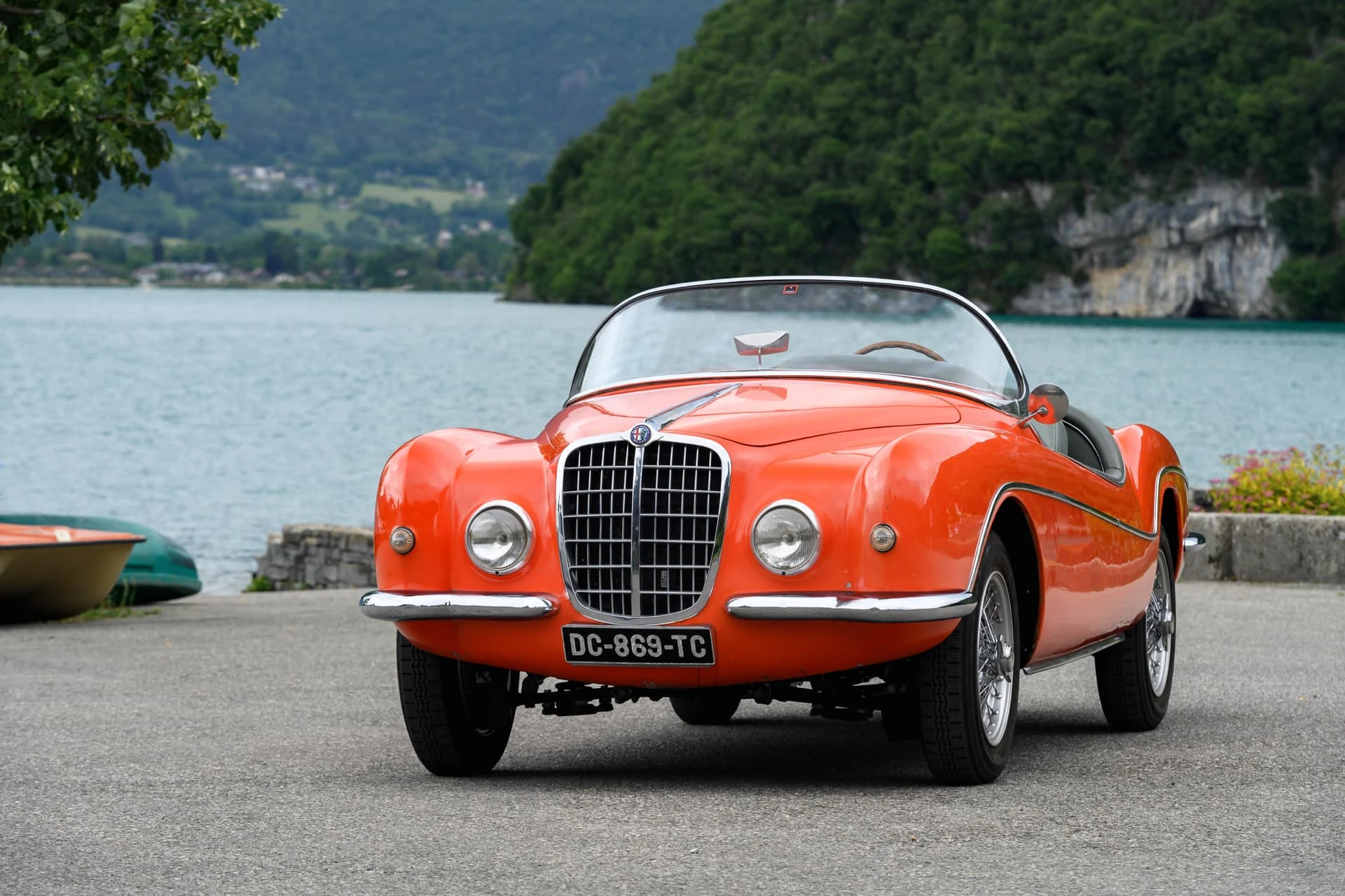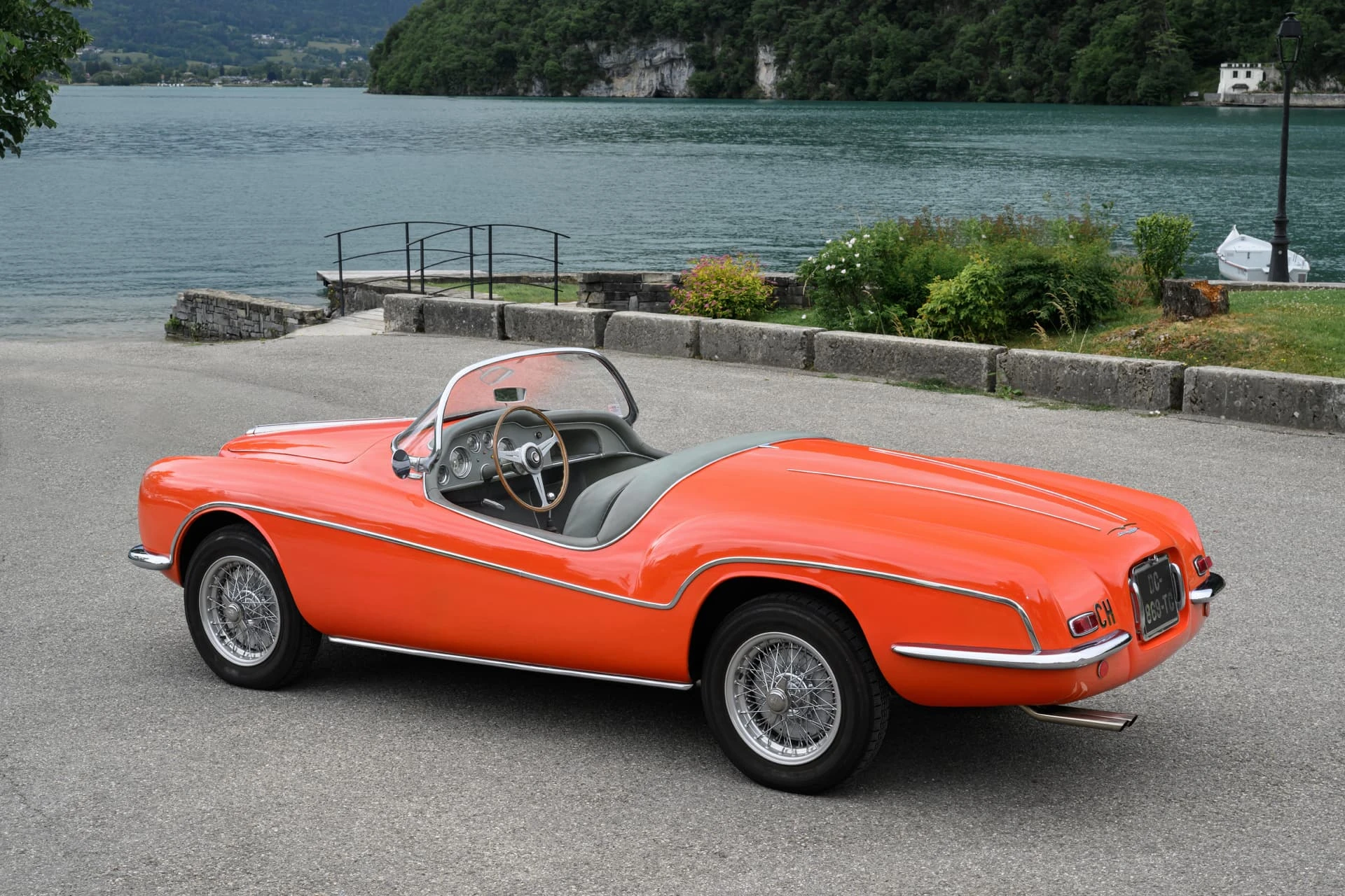 La voiture présentée ici est l’une des quelque dix Alfa Romeo carrossées par la Carrosserie Ghia à Aigle (l’antenne suisse de la célèbre Carrozzeria turinoise qui appartenait à l’époque à Mario Boano), et coûtait autant qu’une Mercedes-Benz 300 SL. Le premier propriétaire était un riche homme d’affaires suisse passionné par les hors-bords Riva, qui a demandé à Ghia-Aigle de produire une voiture au style Riva : pas de portes, pas de coffre, et un pare-brise de type bateau.