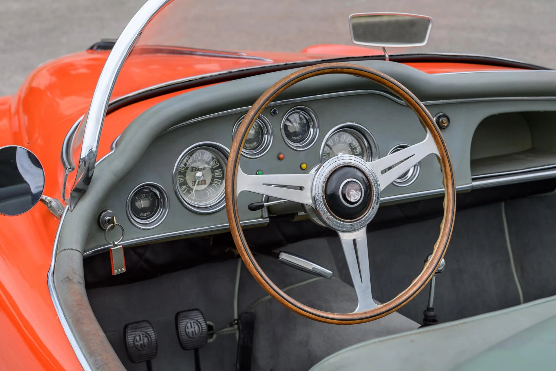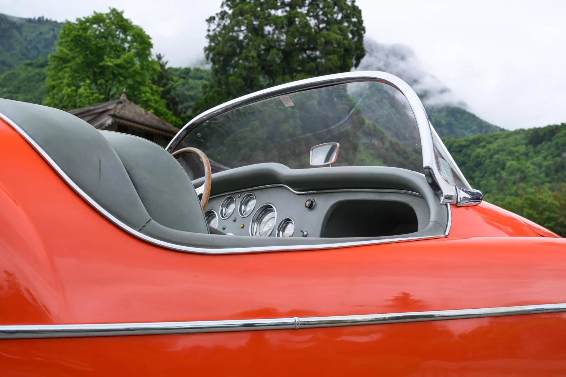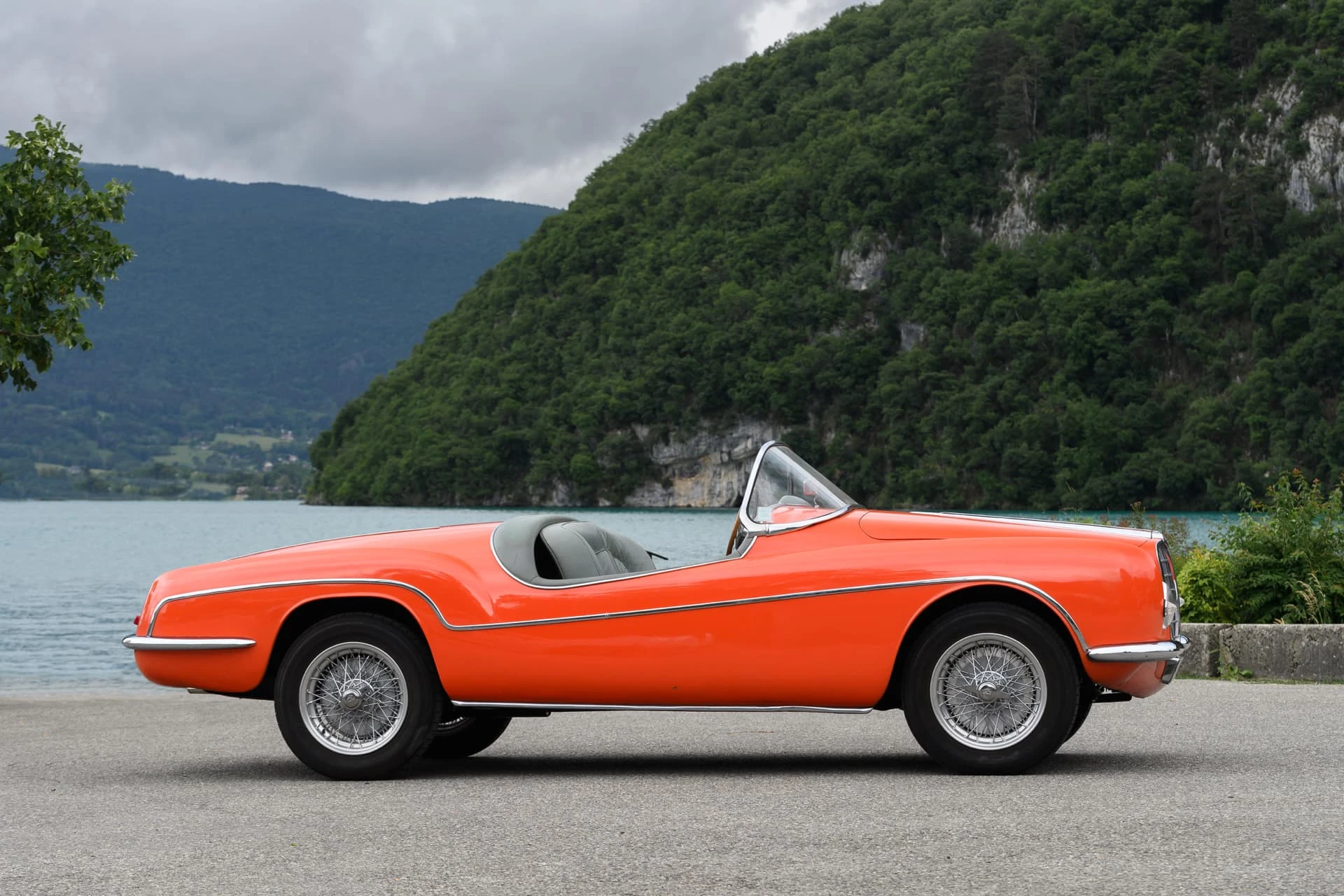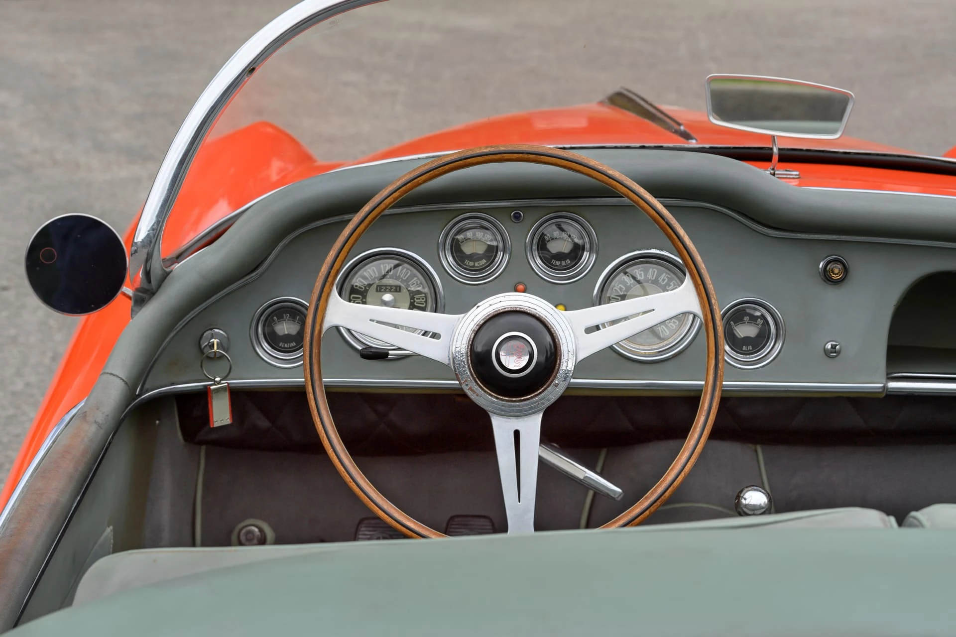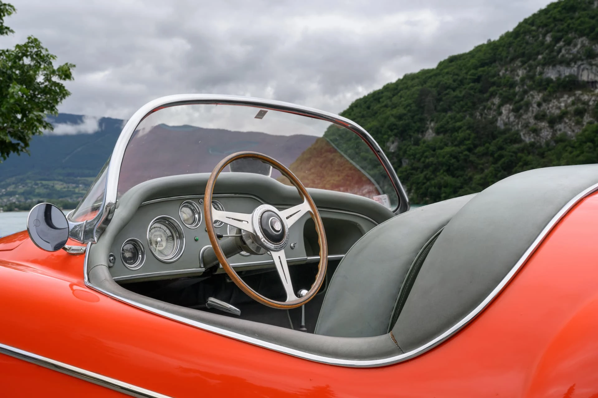 La voiture présentée ici est l’une des quelque dix Alfa Romeo carrossées par la Carrosserie Ghia à Aigle (l’antenne suisse de la célèbre Carrozzeria turinoise qui appartenait à l’époque à Mario Boano), et coûtait autant qu’une Mercedes-Benz 300 SL. Le premier propriétaire était un riche homme d’affaires suisse passionné par les hors-bords Riva, qui a demandé à Ghia-Aigle de produire une voiture au style Riva : pas de portes, pas de coffre, et un pare-brise de type bateau.