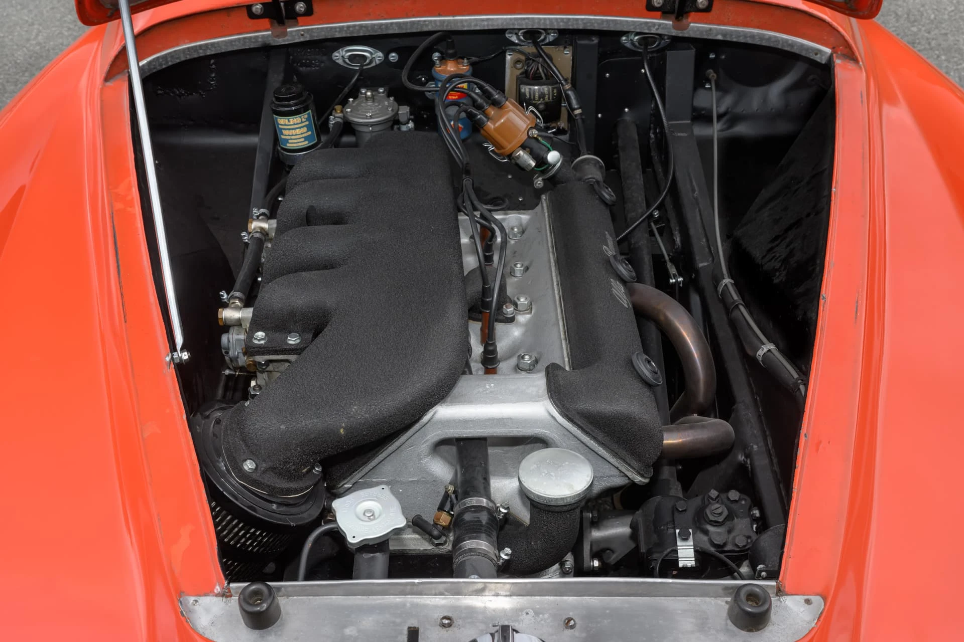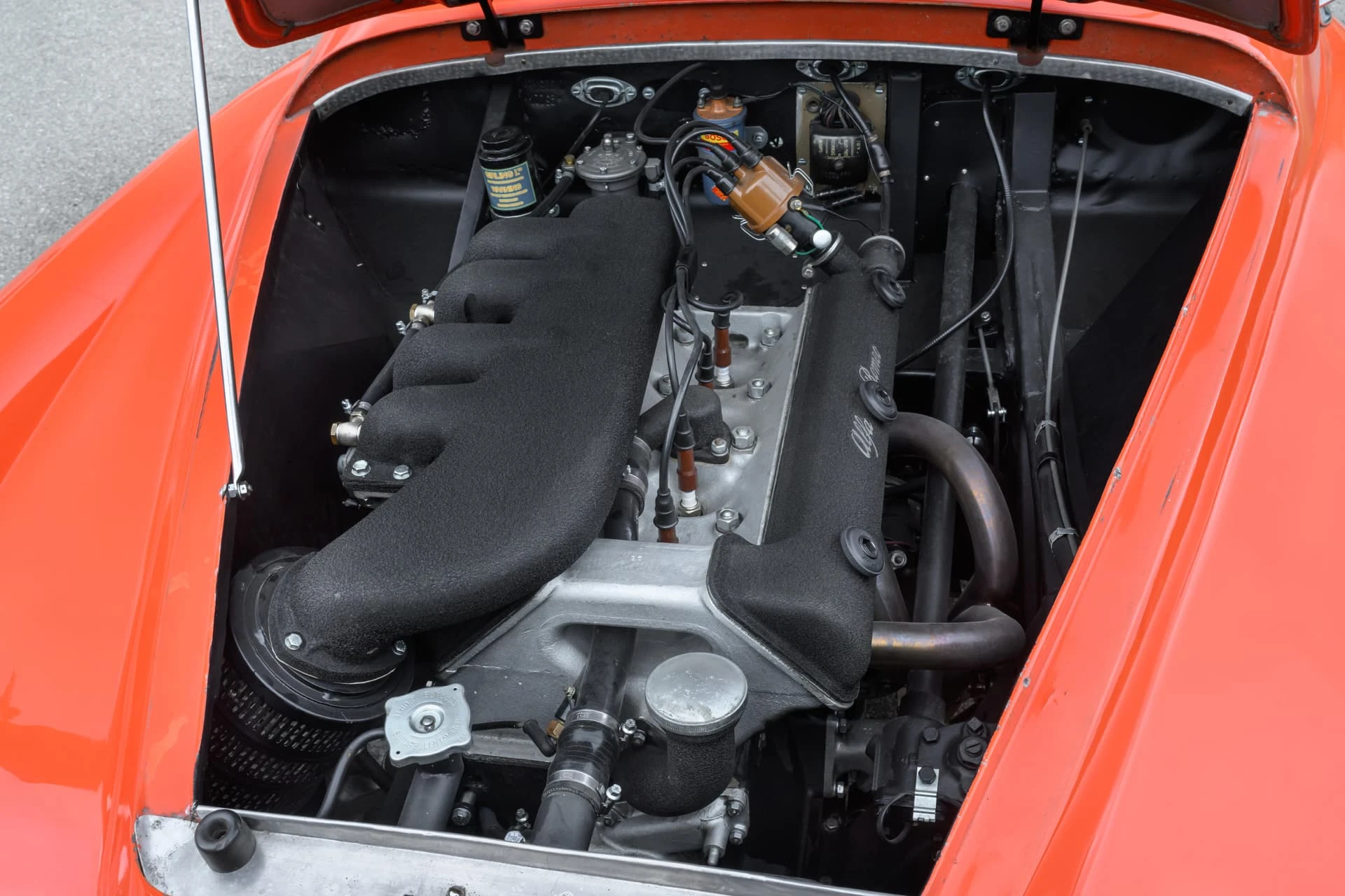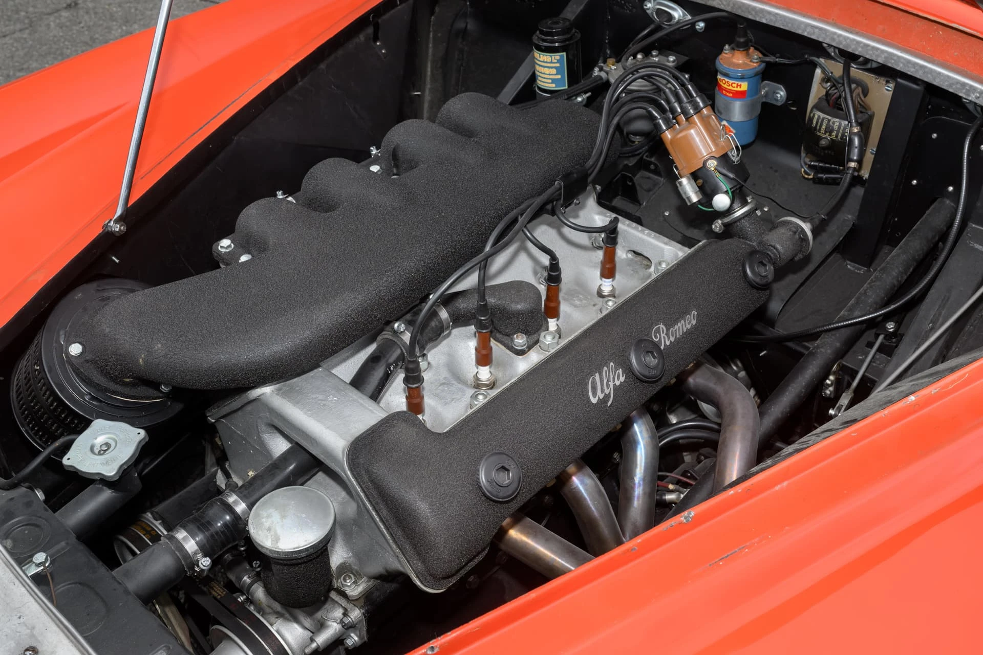 Le coupé Sprint a été conçu pour offrir des performances sportives ainsi qu’un aménagement « 2+2 », ce qui garantit de séduire les amateurs de voitures de sport avec une famille, tandis que la calandre verticale en forme de cœur avec des prises d’air latérales horizontales assorties est devenue une marque de fabrique d’Alfa sur les modèles ultérieurs. En juin 1954, le moteur est porté à 1 975 cc et le modèle est rebaptisé « Super Sprint ». Avec 115 ch et un excellent rapport poids/puissance grâce à la carrosserie en alliage d’aluminium, ces voitures pouvaient atteindre une vitesse de 118 mph. Elles ont brillé dans toutes sortes de compétitions. Au total, 949 Sprints et 854 Super Sprints ont été fabriquées avant l’arrêt de la production.