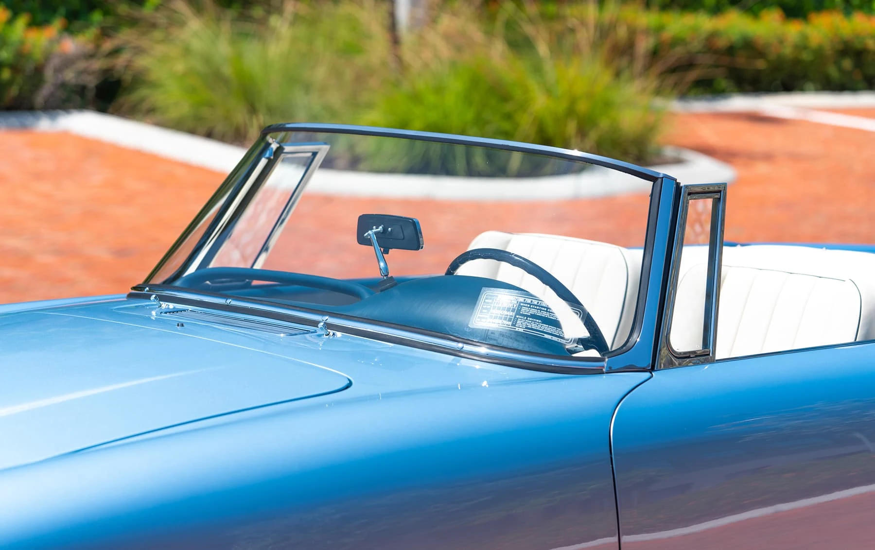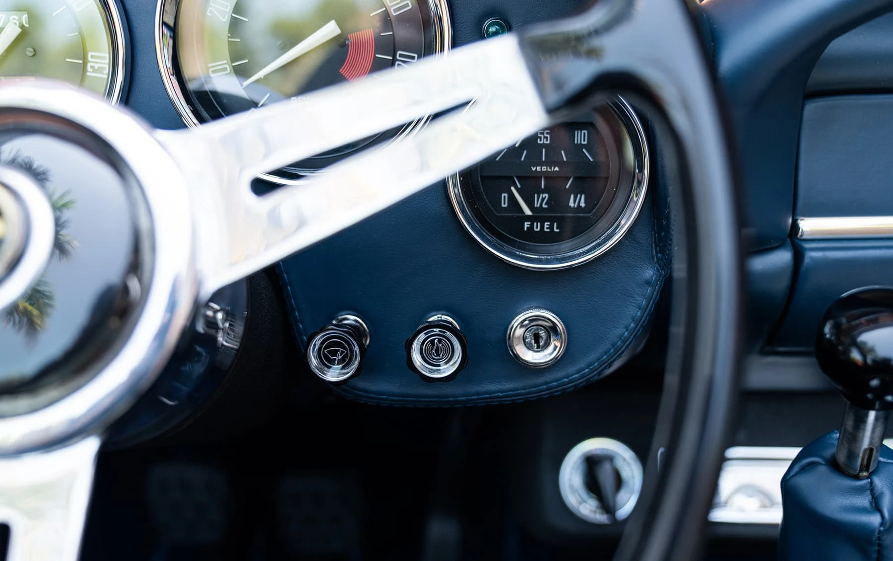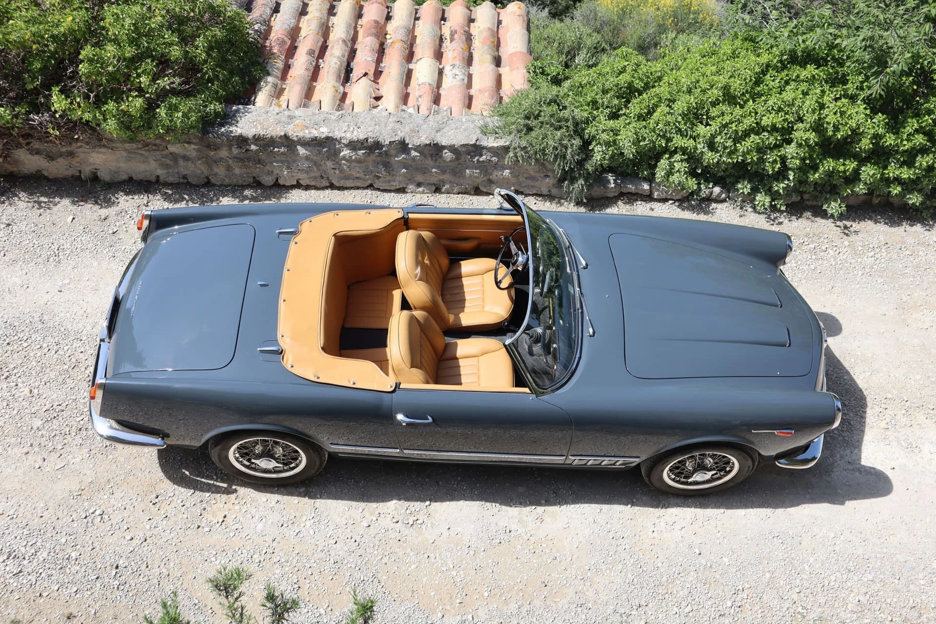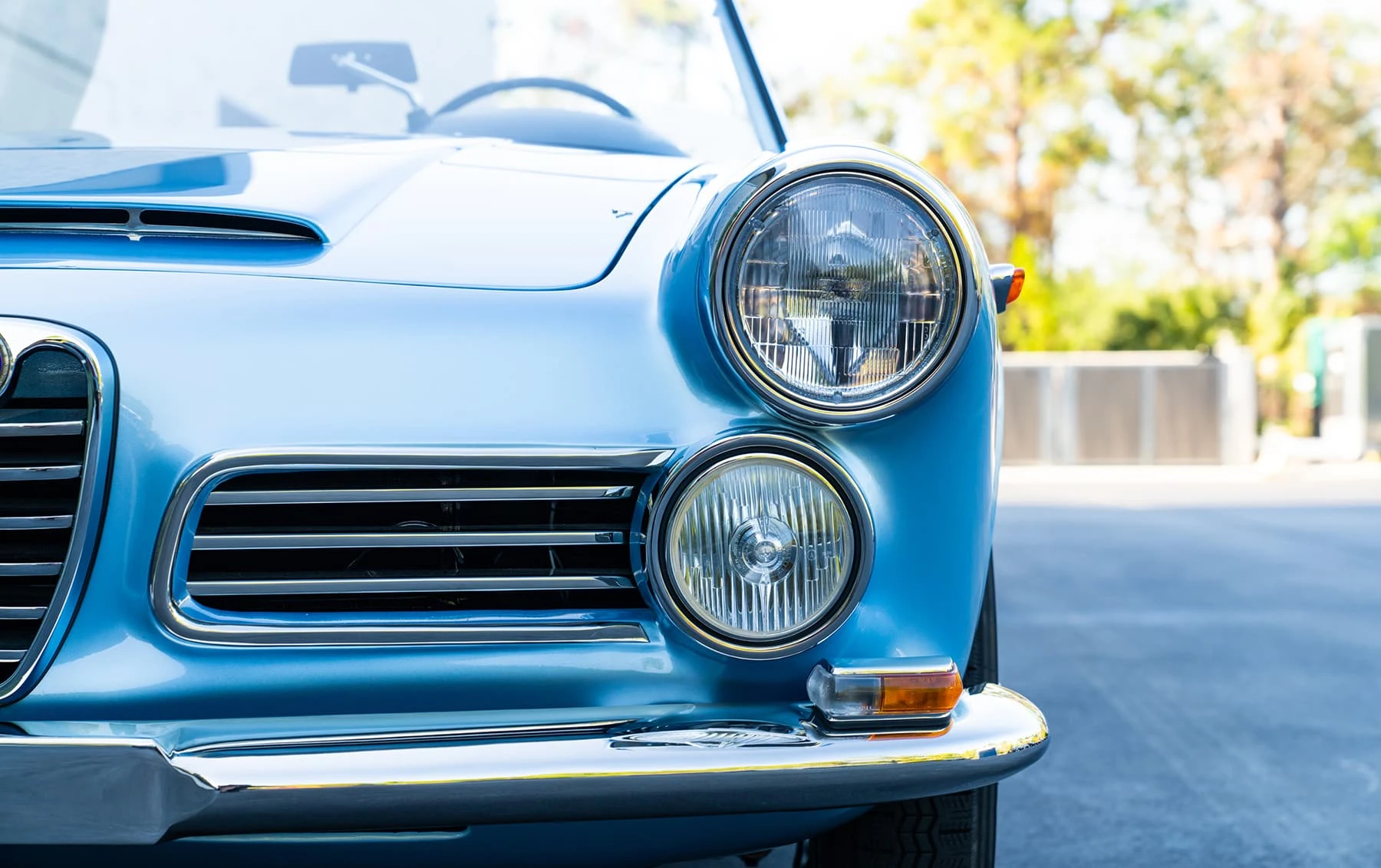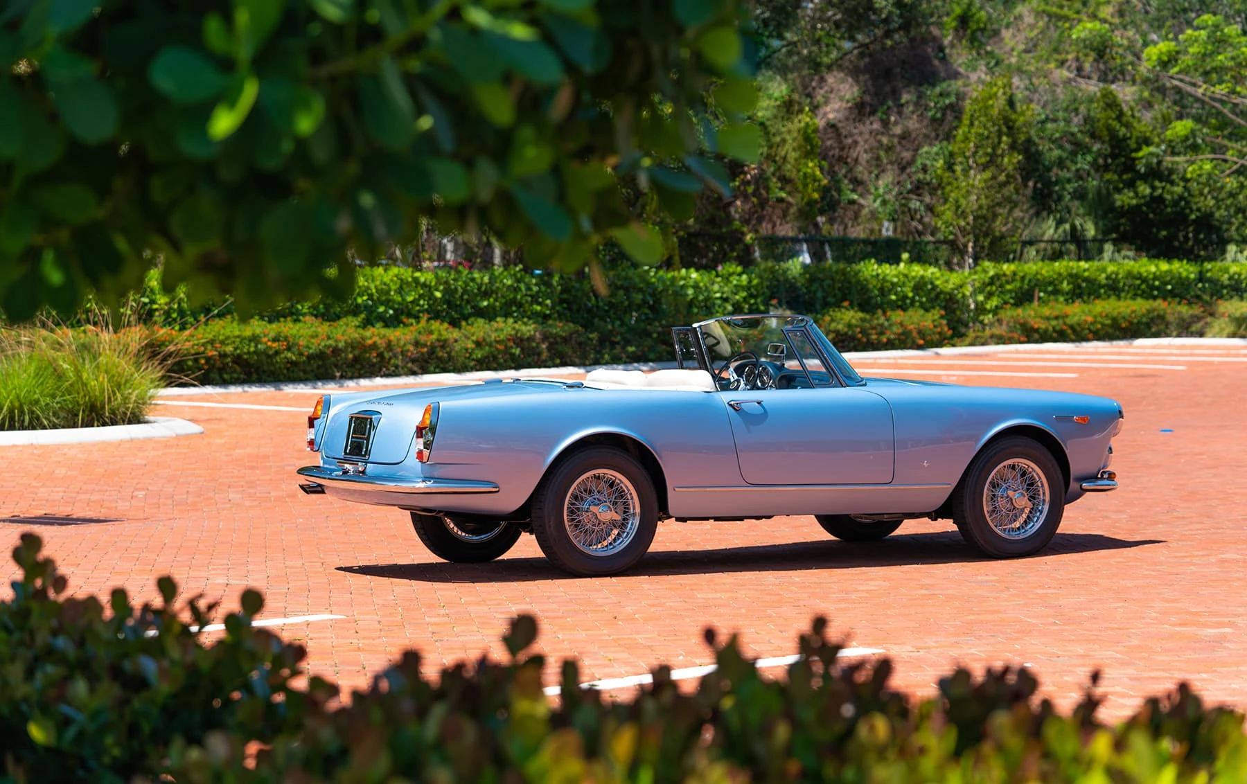 Réduite à l’état de métal nu, cette 2600 Spider a été repeinte dans une superbe teinte de bleu clair métallisé, associée à un intérieur recouvert de cuir de couleur lin. Le tableau de bord, typiquement en vinyle, a été recouvert de cuir bleu, ce qui crée un effet visuel saisissant avec la moquette et les passepoils des sièges bleu foncé. Le moteur a été reconstruit par les experts de la marque, Motorcraft, dans l’Indiana. Comme il s’agit d’une voiture de fin de production, les caches-cames sont finis en vert métallique et un rare jeu de carburateurs Weber plus performants a été installé en usine. En outre, elle est proposée avec un toit rigide en option d’usine – une pièce rare qui est complétée par le nouveau toit décapotable bleu.