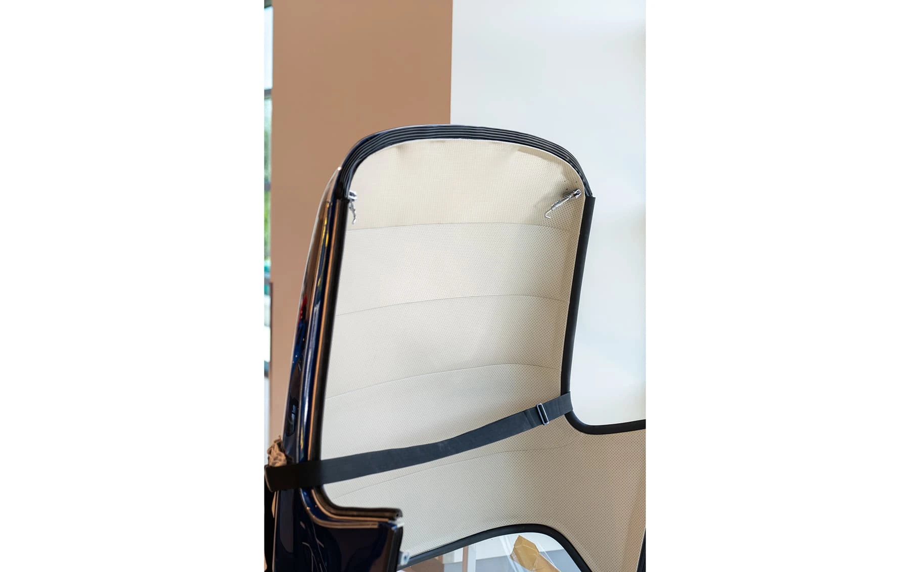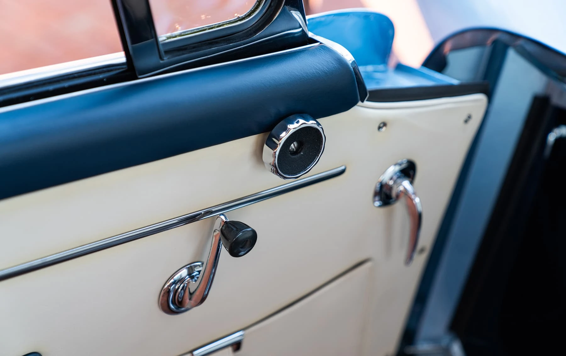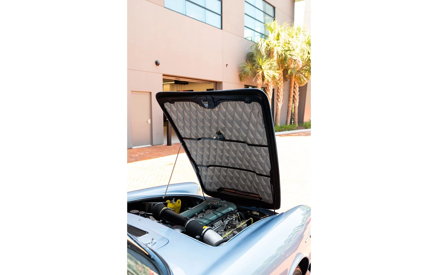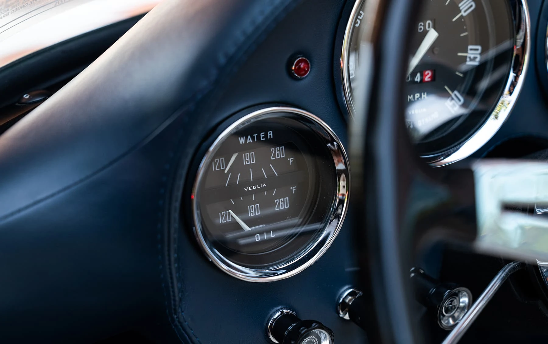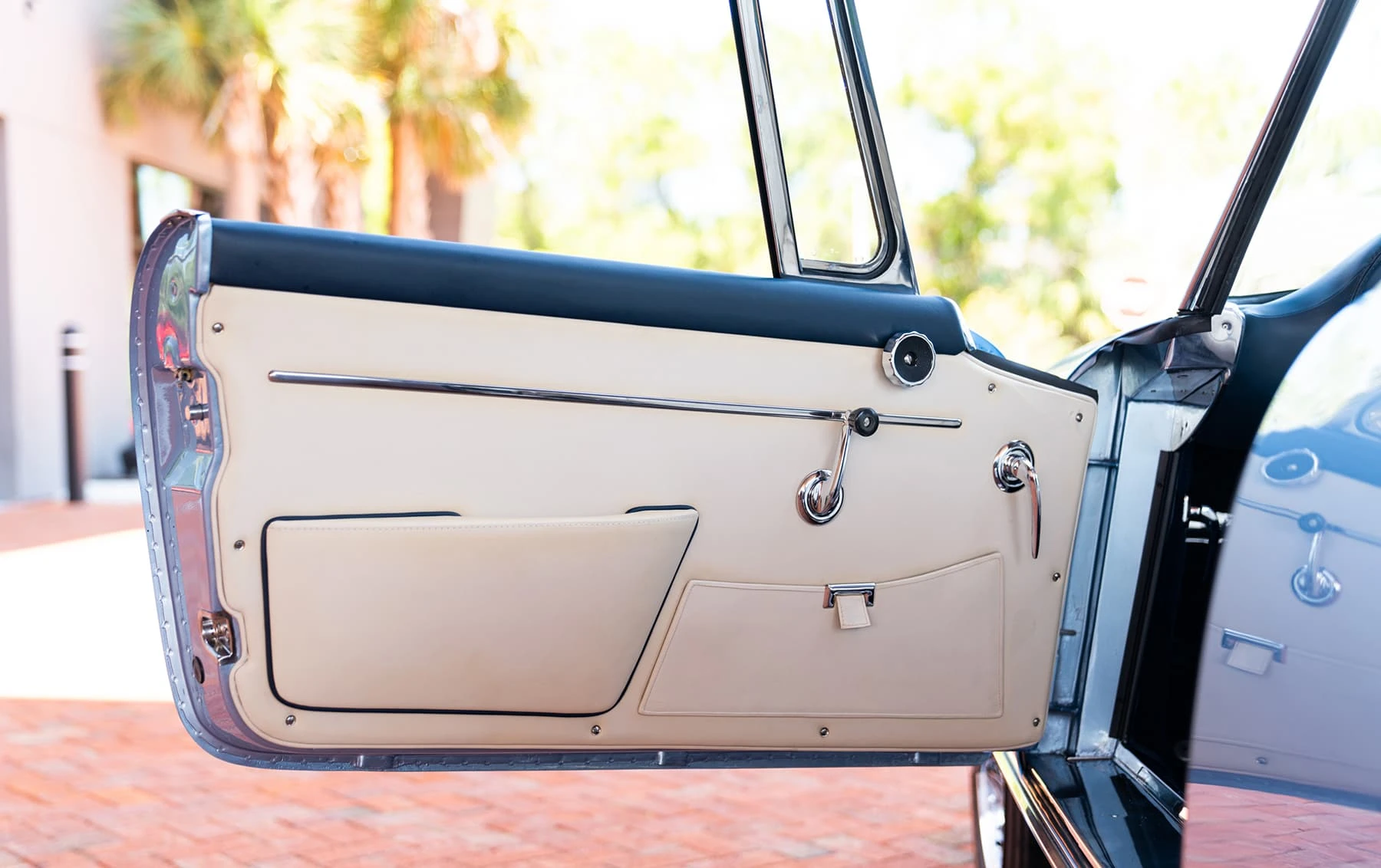 Réduite à l’état de métal nu, cette 2600 Spider a été repeinte dans une superbe teinte de bleu clair métallisé, associée à un intérieur recouvert de cuir de couleur lin. Le tableau de bord, typiquement en vinyle, a été recouvert de cuir bleu, ce qui crée un effet visuel saisissant avec la moquette et les passepoils des sièges bleu foncé. Le moteur a été reconstruit par les experts de la marque, Motorcraft, dans l’Indiana. Comme il s’agit d’une voiture de fin de production, les caches-cames sont finis en vert métallique et un rare jeu de carburateurs Weber plus performants a été installé en usine. En outre, elle est proposée avec un toit rigide en option d’usine – une pièce rare qui est complétée par le nouveau toit décapotable bleu.