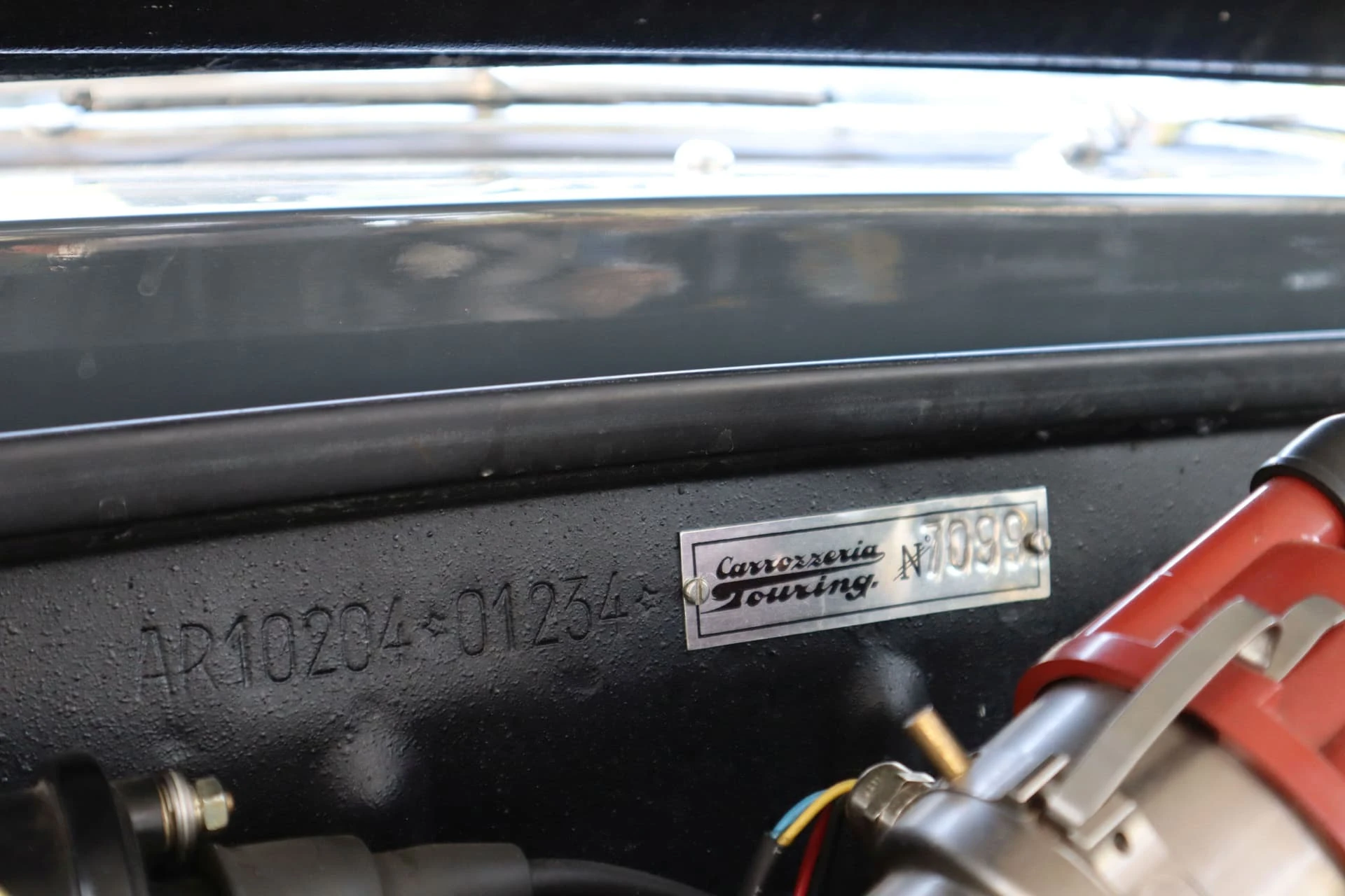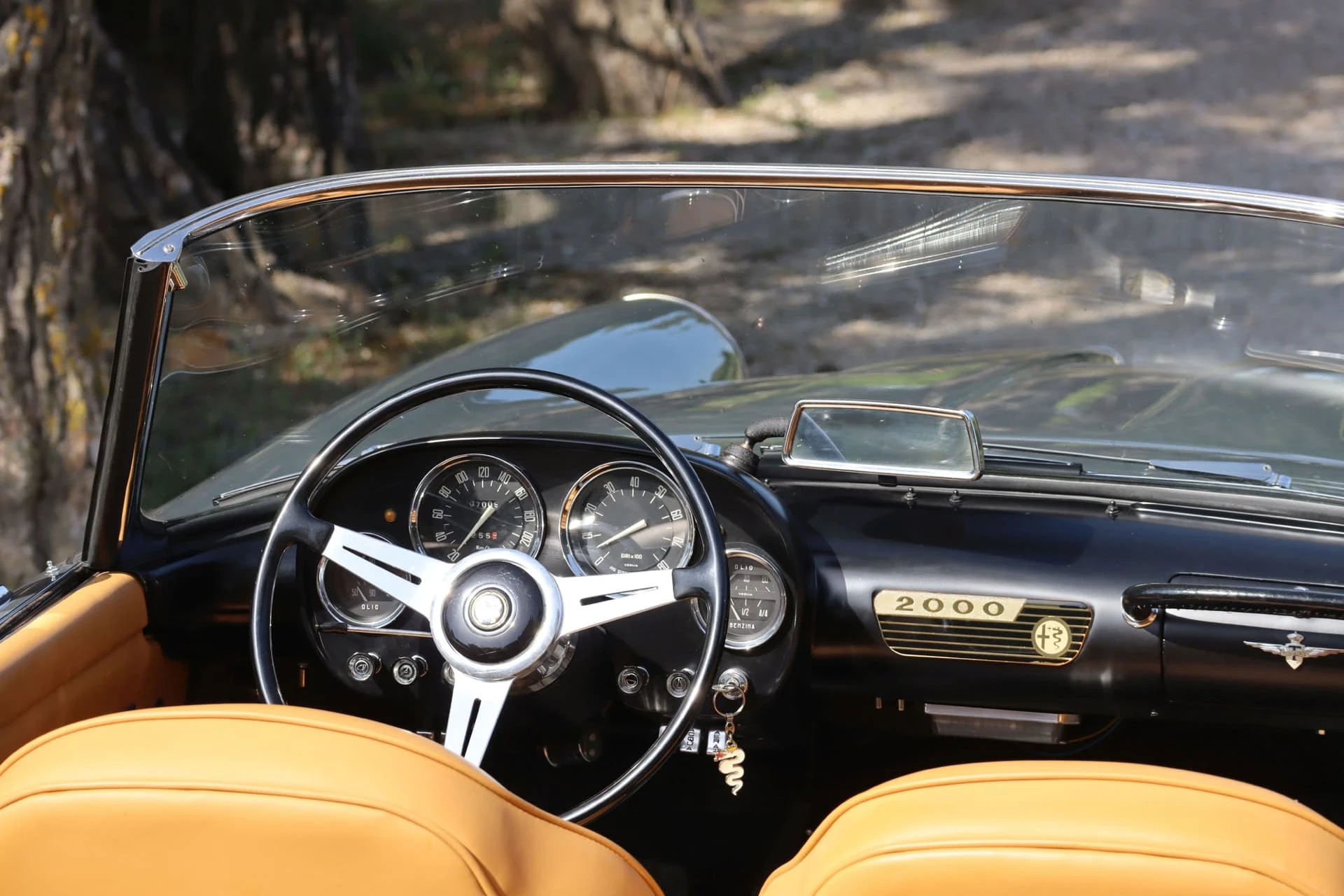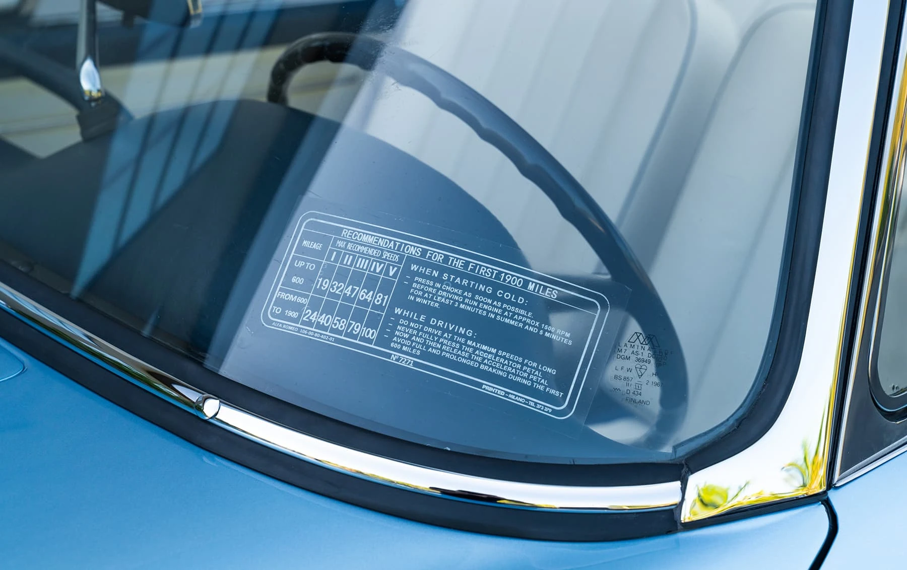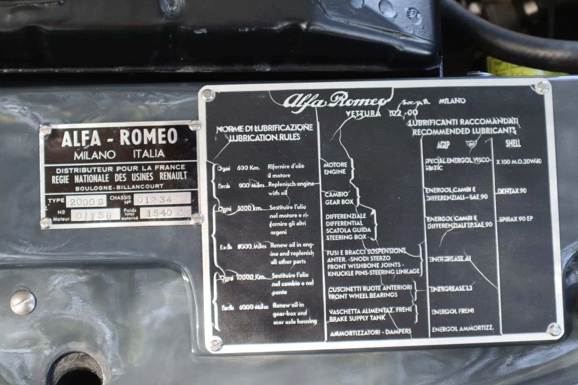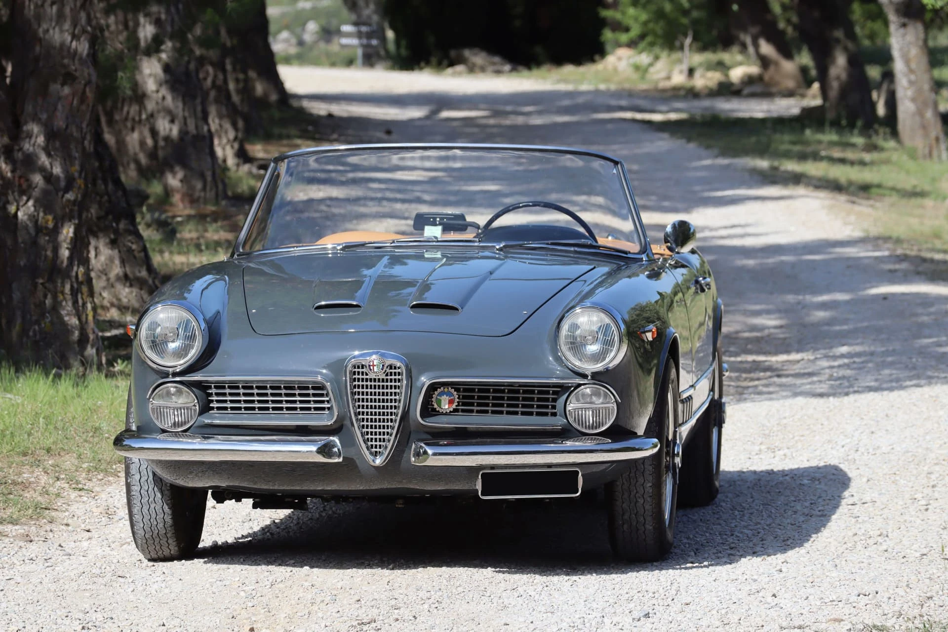 Cet exemplaire (Châssis 01234) de 1960 s’avère aussi très intéressant : le certificat d’origine délivré par Alfa mentionne qu’elle a été vendue neuve à la Régie Renault, ce qui rappelle la collaboration qui existait alors entre Alfa Romeo et la marque française. On retrouve d’ailleurs sous le capot la plaque d’homologation d’époque.