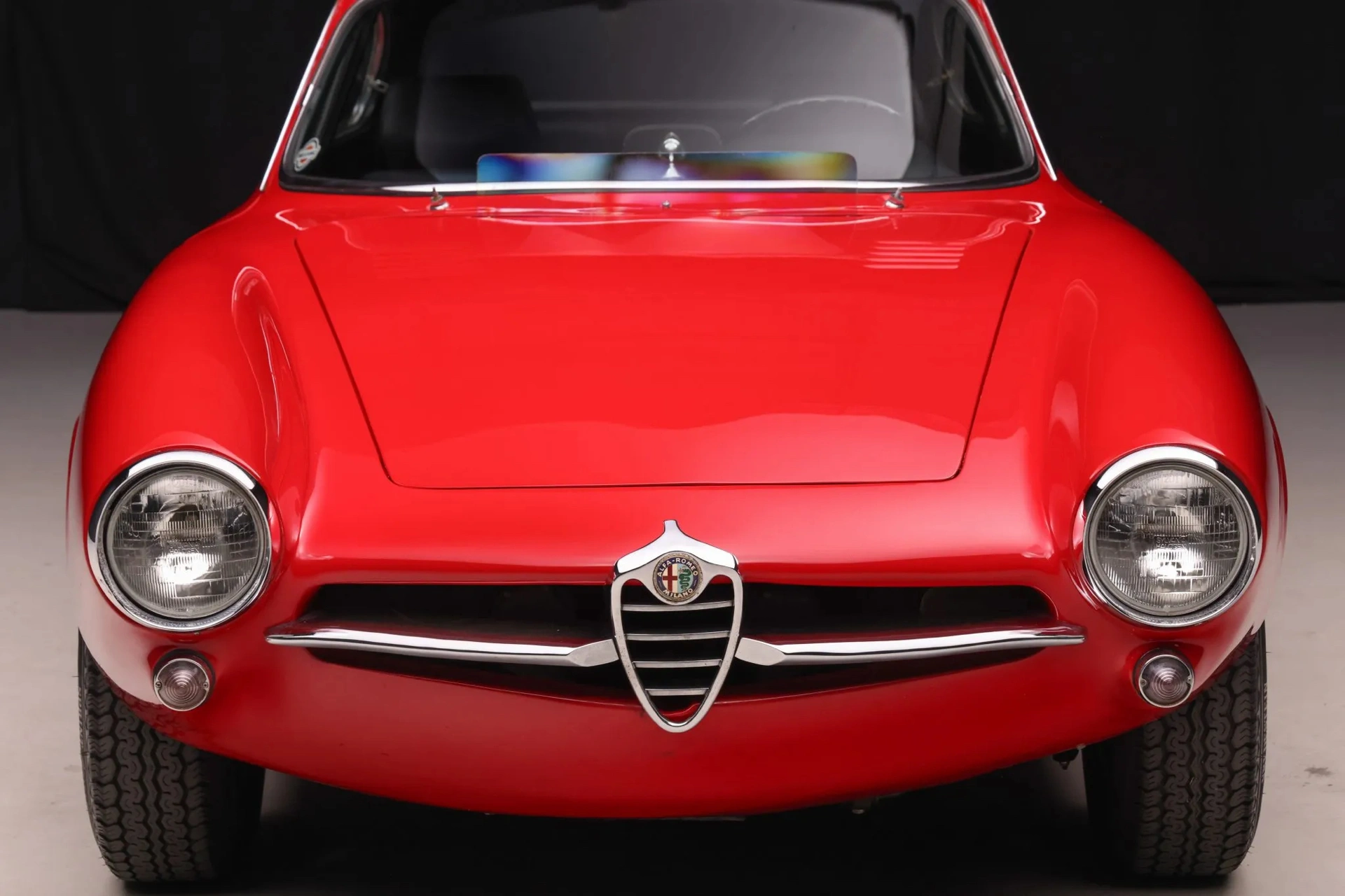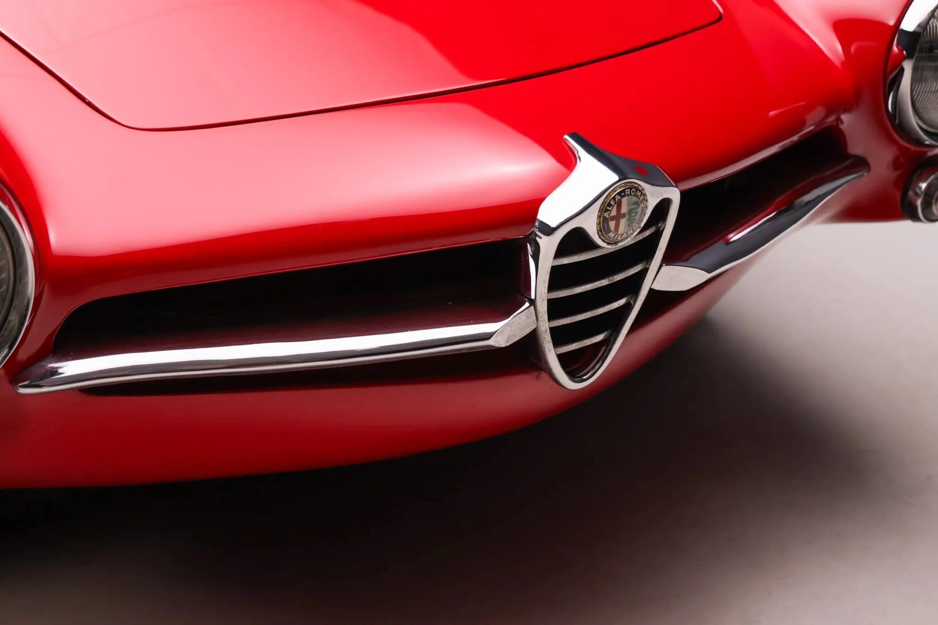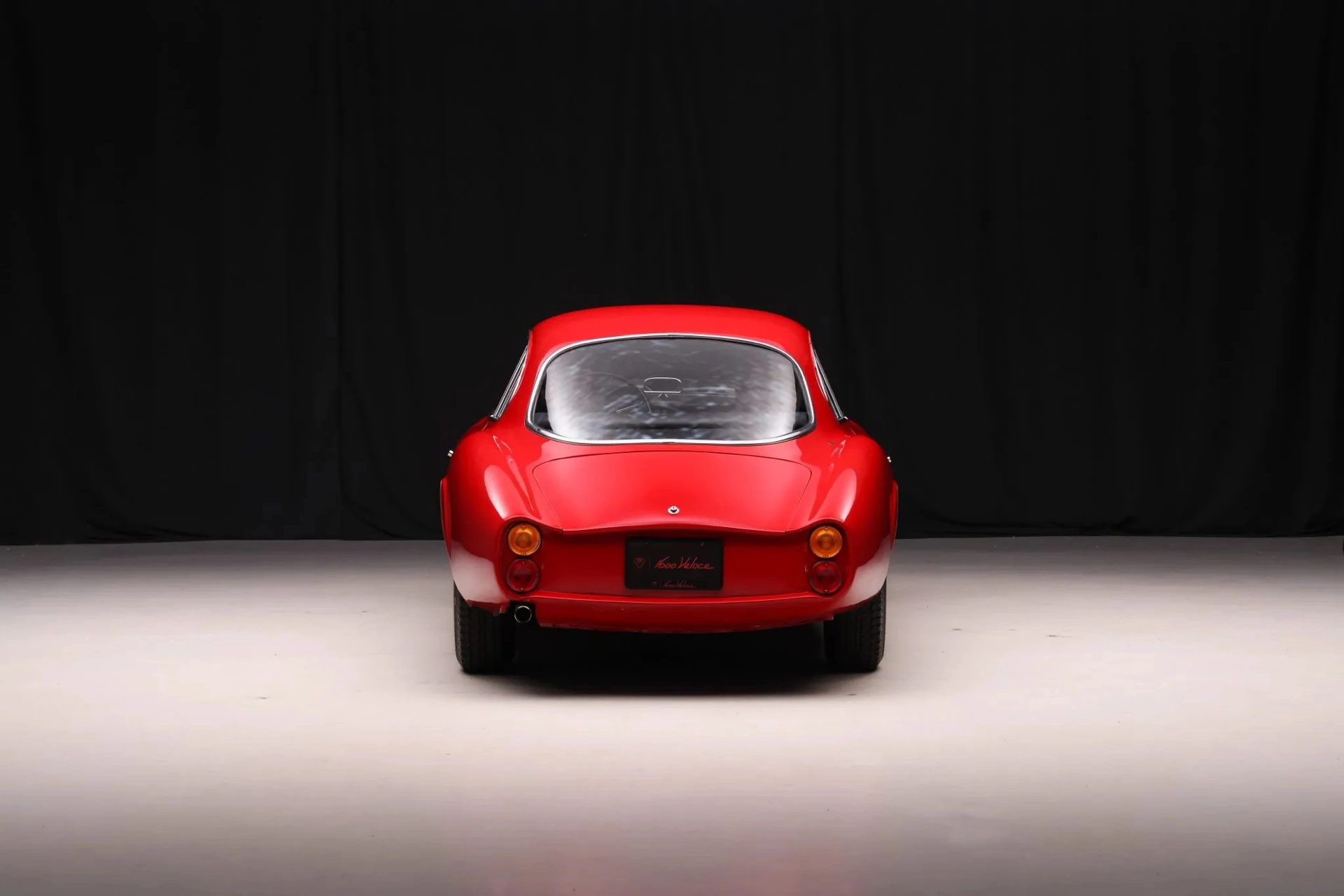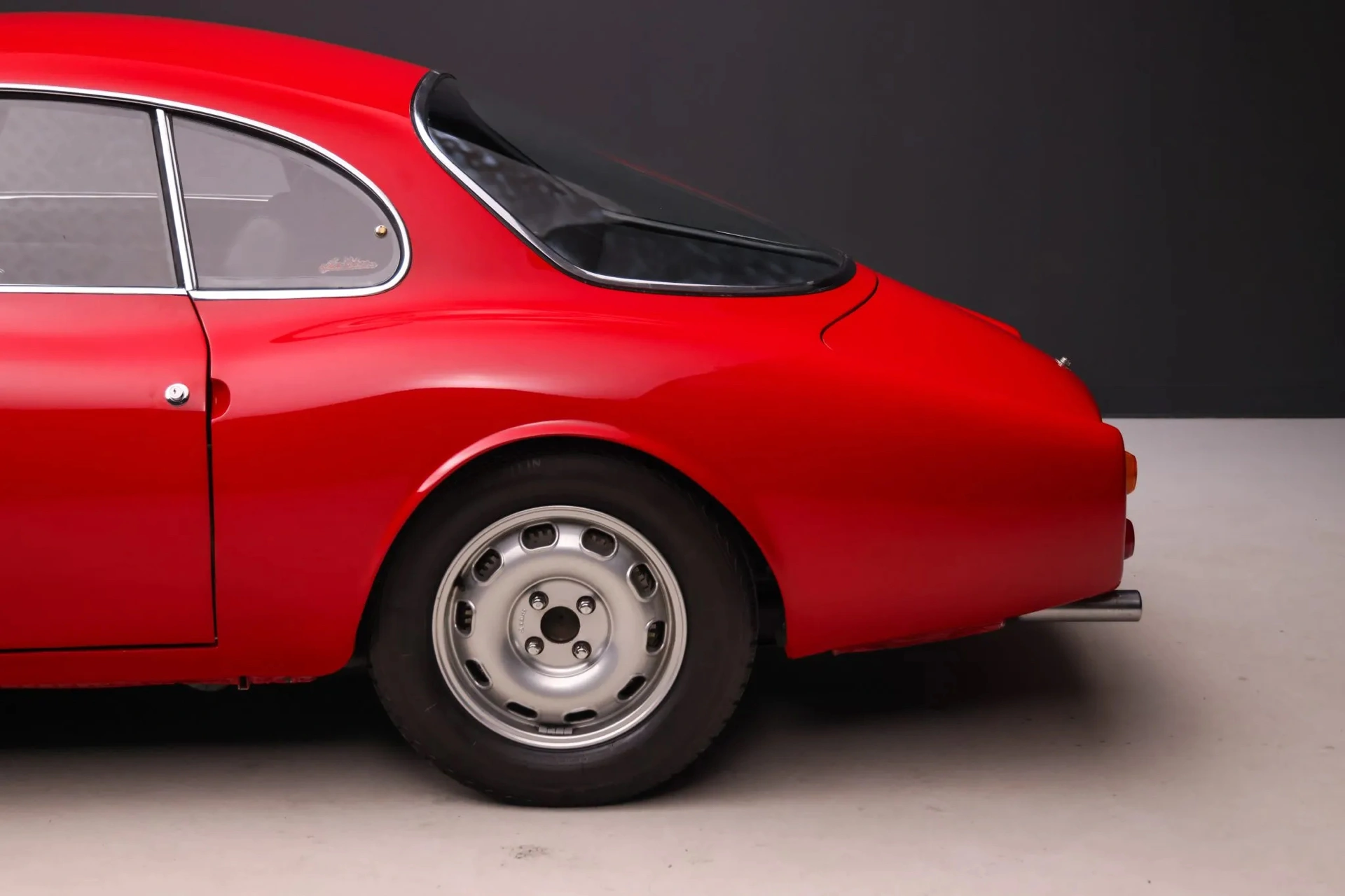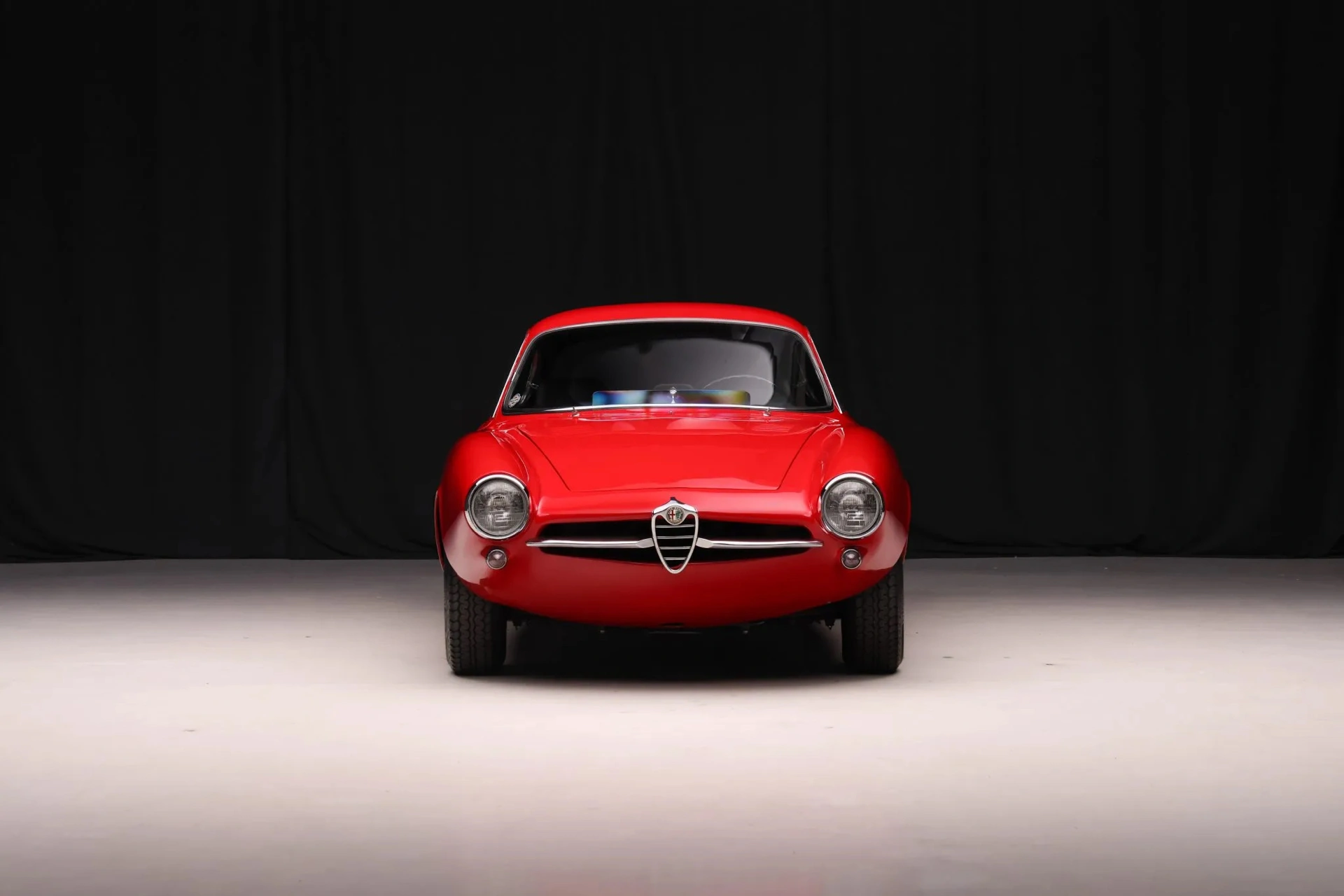 La Sprint Speciale a été conçue par Franco Scaglione chez Bertone à la suite d’expériences de carrosserie à faible traînée et des concepts Bertone Aerodynamica Technica qui en ont résulté. Succédant à la Tipo 101.20 Giulietta SS, la Tipo 101.21 Giulia SS a été présentée au salon de l’automobile de Genève en 1963 avec un style similaire et une cylindrée accrue de 1,6 litre. S’inspirant des voitures de course SSZ Stradale construites par Tom Zatloukal, cet exemplaire a été modifié par l’ancien propriétaire. Les travaux ont consisté à réviser les ailes, à évaser les passages de roues, à supprimer les pare-chocs et à raser les clignotants latéraux, les lances latérales et le badge. Précédemment peinte en blanc, puis en noir, la voiture a été repeinte en rouge et comporte un déflecteur d’air en plexiglas placé derrière le capot à persiennes.