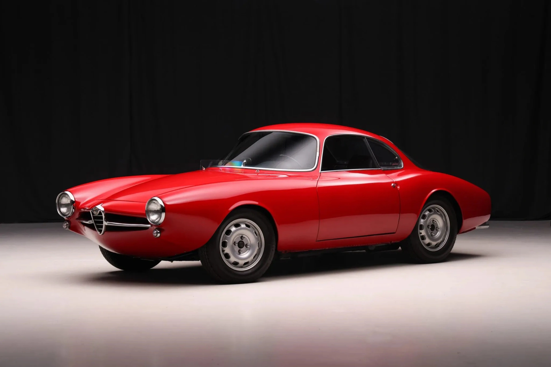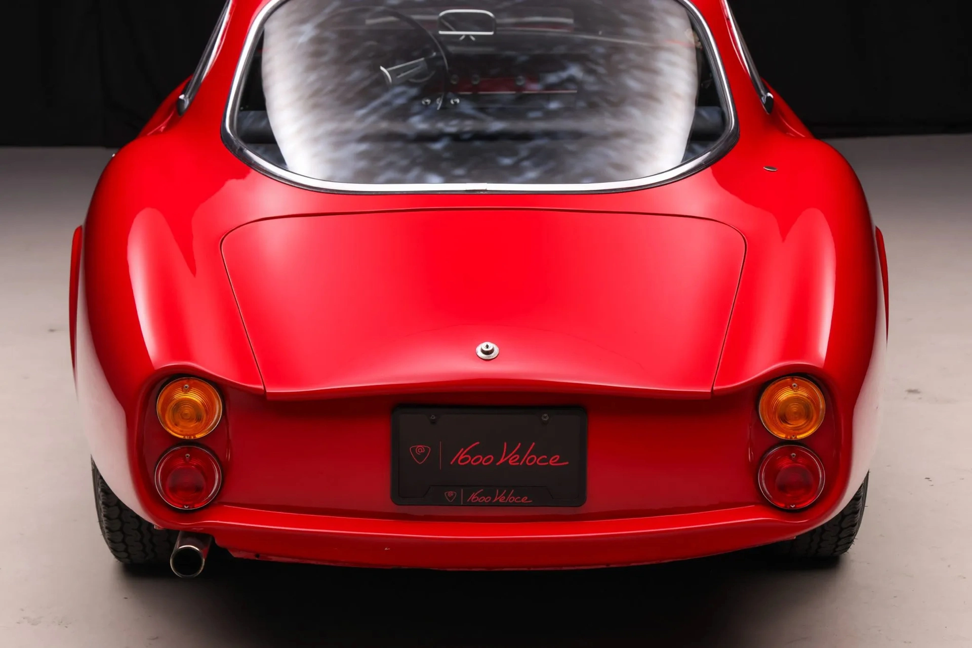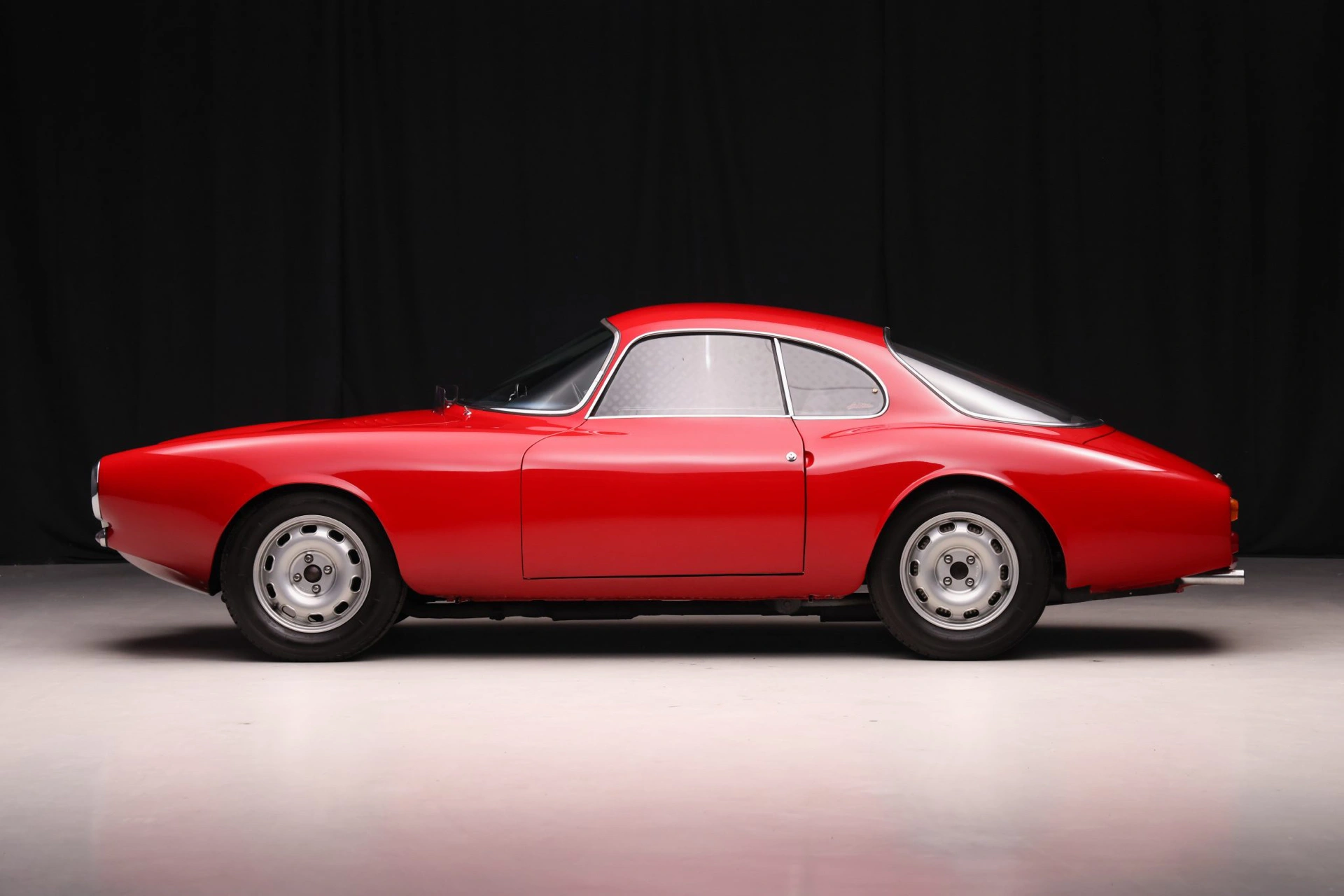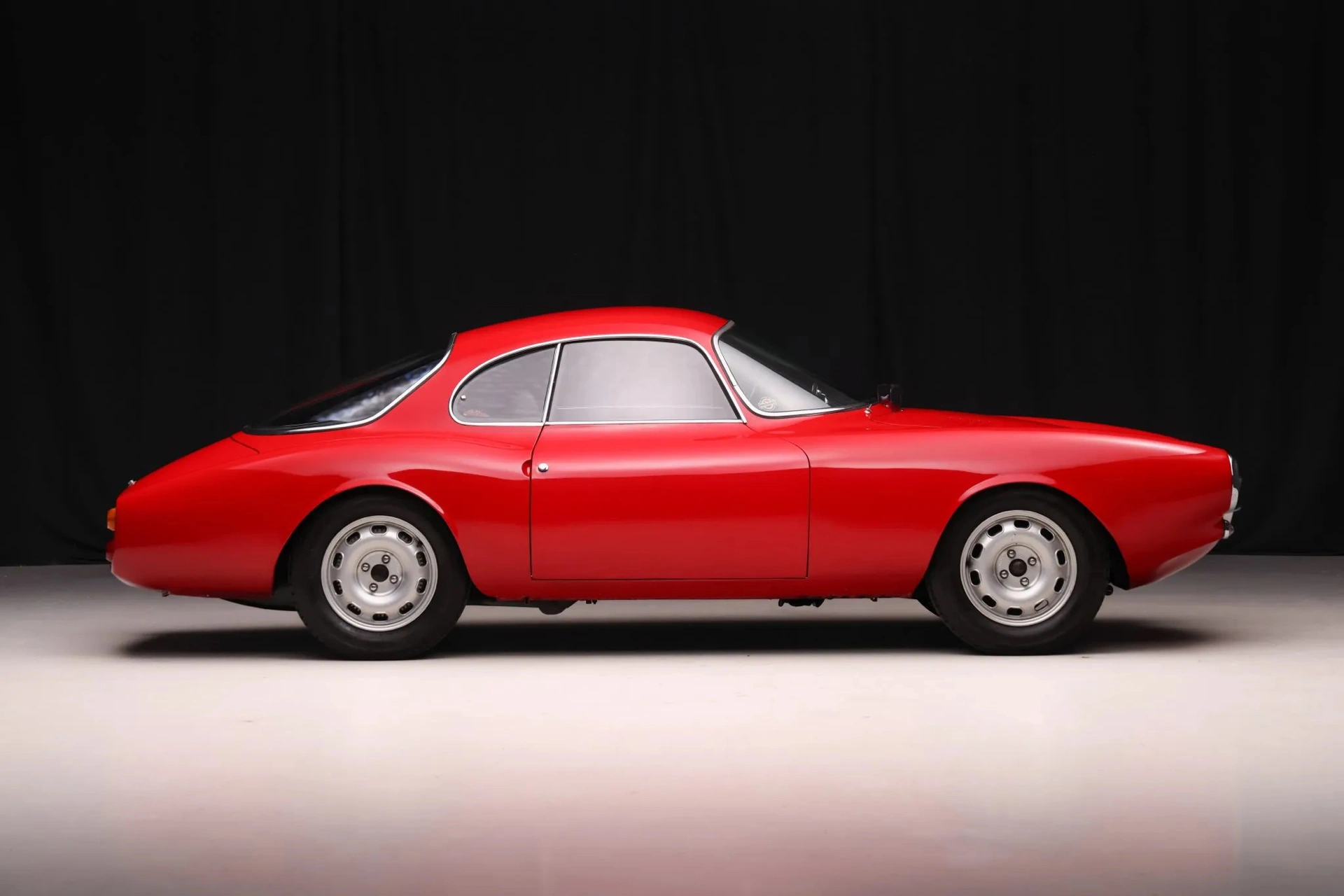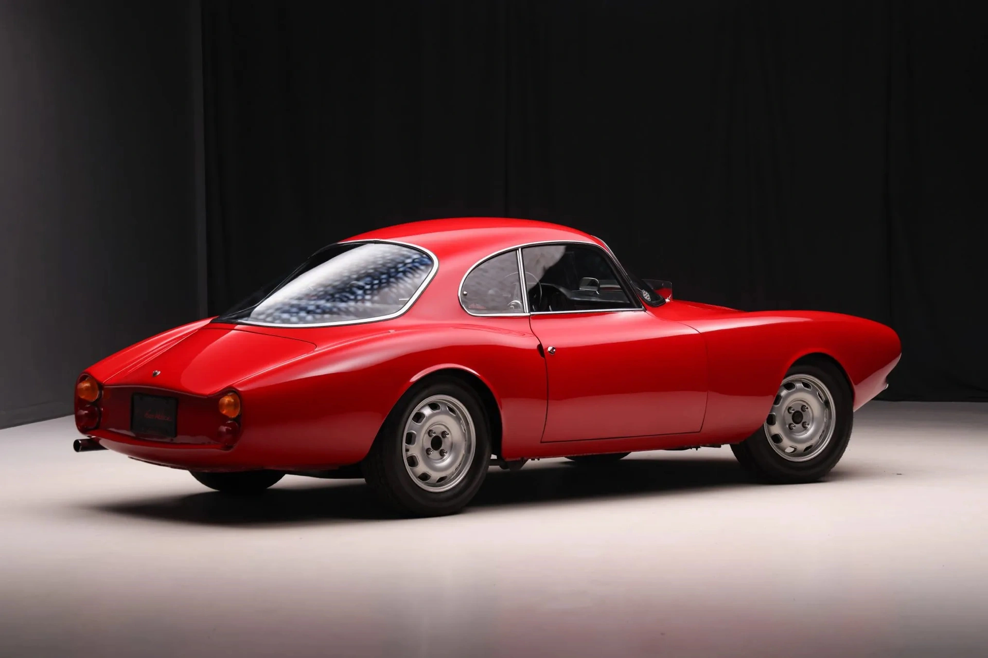 La Sprint Speciale a été conçue par Franco Scaglione chez Bertone à la suite d’expériences de carrosserie à faible traînée et des concepts Bertone Aerodynamica Technica qui en ont résulté. Succédant à la Tipo 101.20 Giulietta SS, la Tipo 101.21 Giulia SS a été présentée au salon de l’automobile de Genève en 1963 avec un style similaire et une cylindrée accrue de 1,6 litre. S’inspirant des voitures de course SSZ Stradale construites par Tom Zatloukal, cet exemplaire a été modifié par l’ancien propriétaire. Les travaux ont consisté à réviser les ailes, à évaser les passages de roues, à supprimer les pare-chocs et à raser les clignotants latéraux, les lances latérales et le badge. Précédemment peinte en blanc, puis en noir, la voiture a été repeinte en rouge et comporte un déflecteur d’air en plexiglas placé derrière le capot à persiennes.