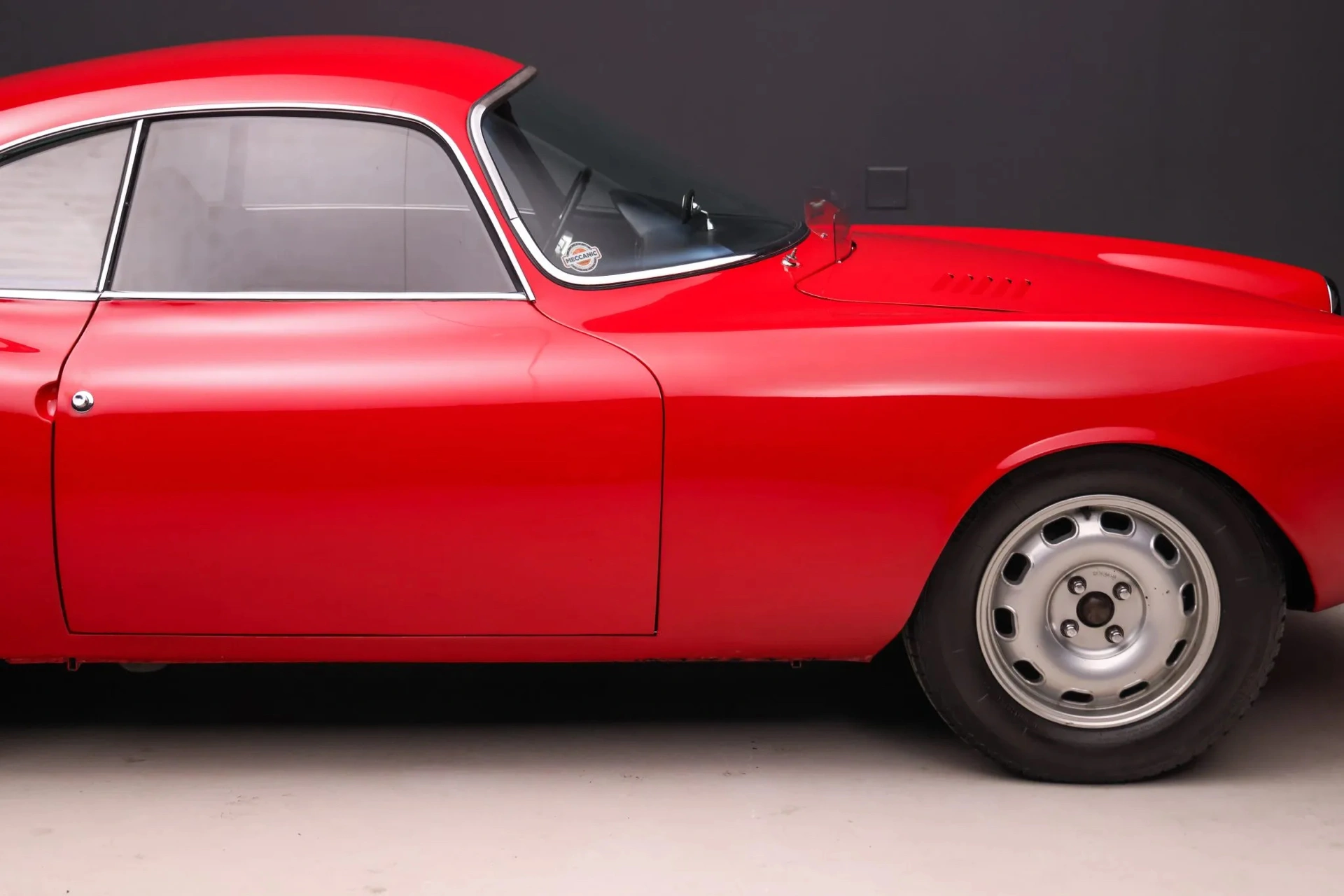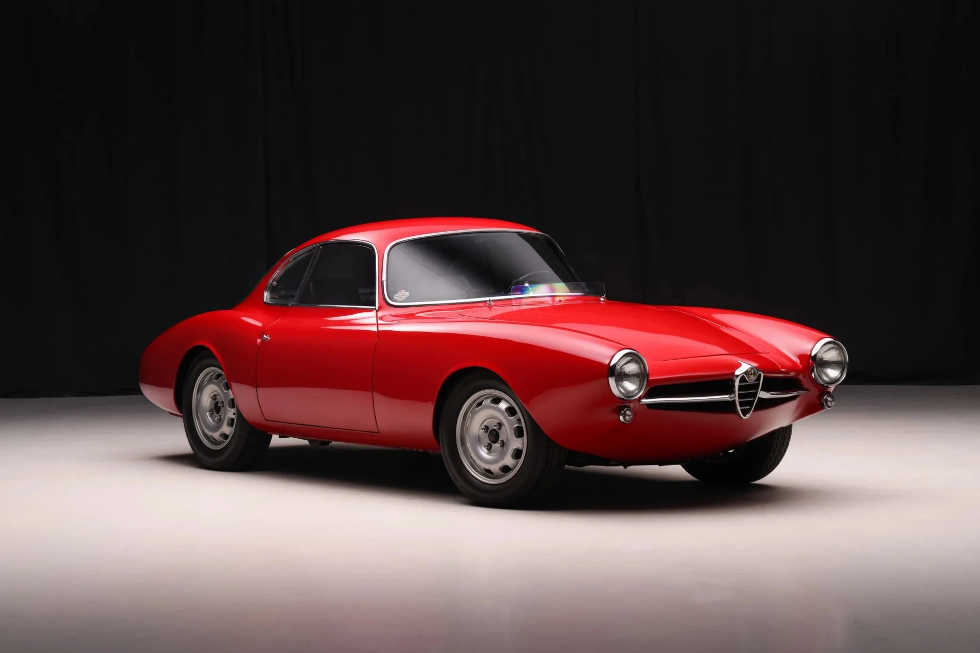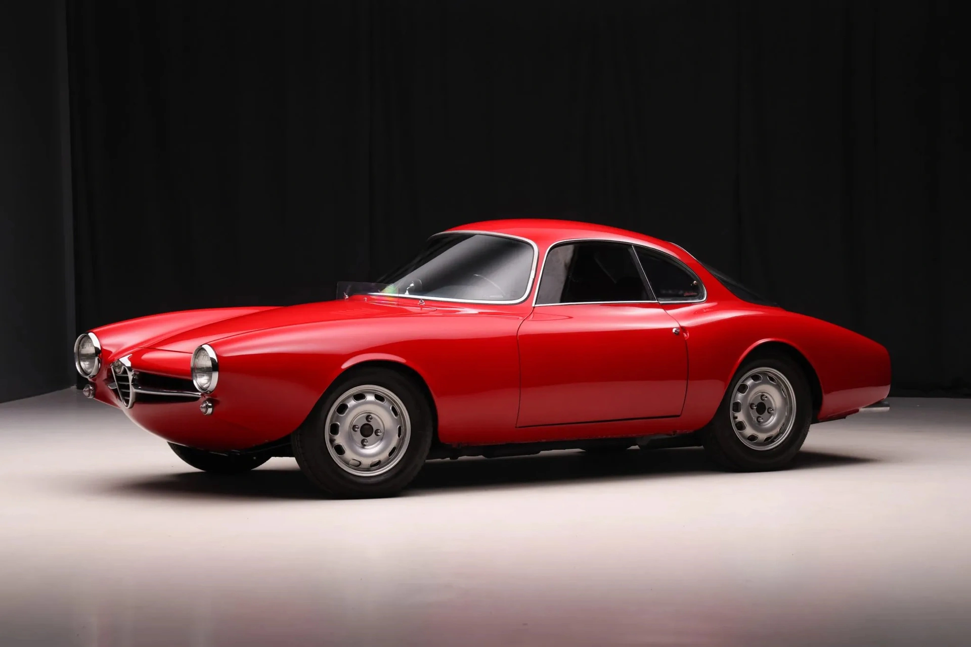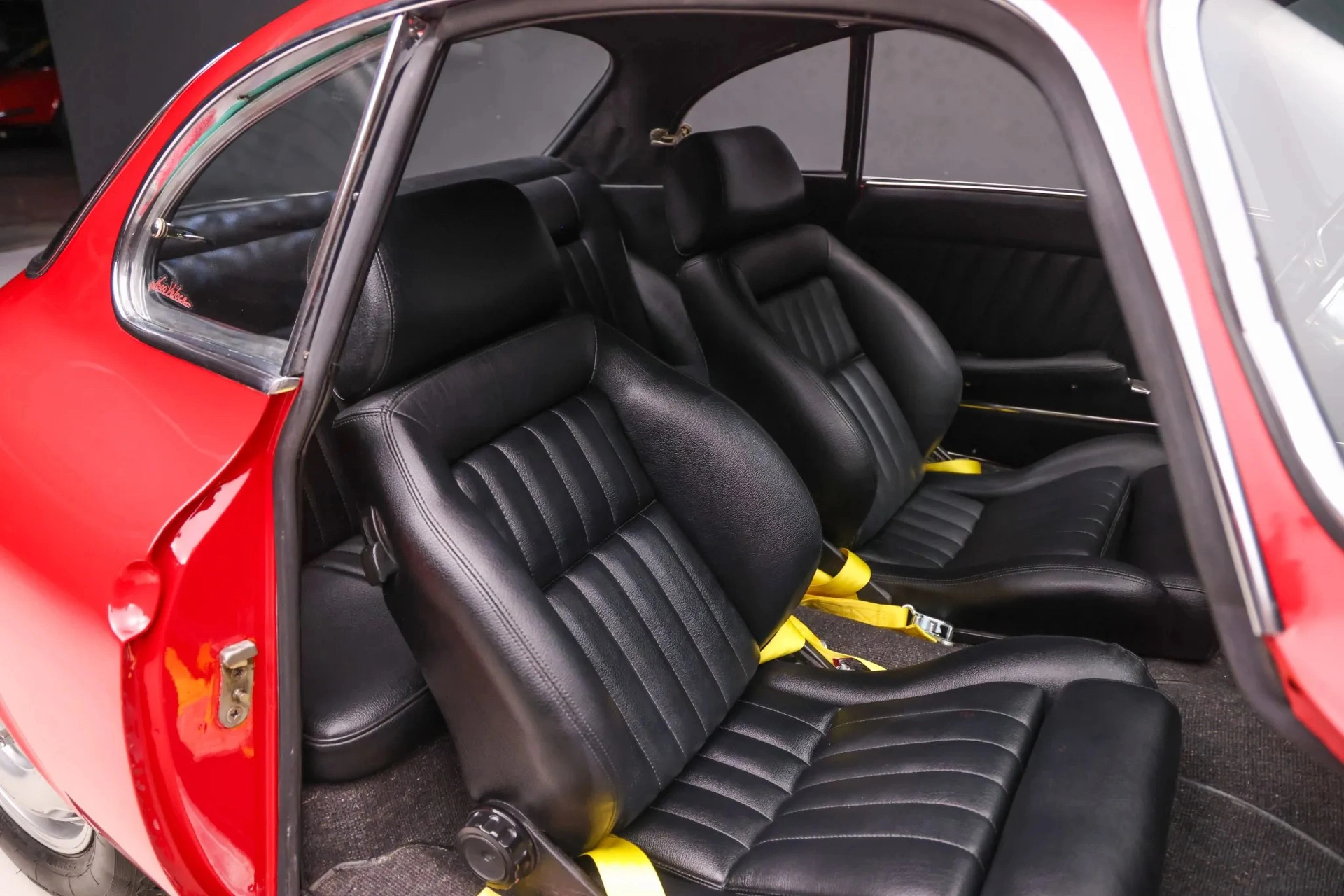 La Sprint Speciale a été conçue par Franco Scaglione chez Bertone à la suite d’expériences de carrosserie à faible traînée et des concepts Bertone Aerodynamica Technica qui en ont résulté. Succédant à la Tipo 101.20 Giulietta SS, la Tipo 101.21 Giulia SS a été présentée au salon de l’automobile de Genève en 1963 avec un style similaire et une cylindrée accrue de 1,6 litre. S’inspirant des voitures de course SSZ Stradale construites par Tom Zatloukal, cet exemplaire a été modifié par l’ancien propriétaire. Les travaux ont consisté à réviser les ailes, à évaser les passages de roues, à supprimer les pare-chocs et à raser les clignotants latéraux, les lances latérales et le badge. Précédemment peinte en blanc, puis en noir, la voiture a été repeinte en rouge et comporte un déflecteur d’air en plexiglas placé derrière le capot à persiennes.