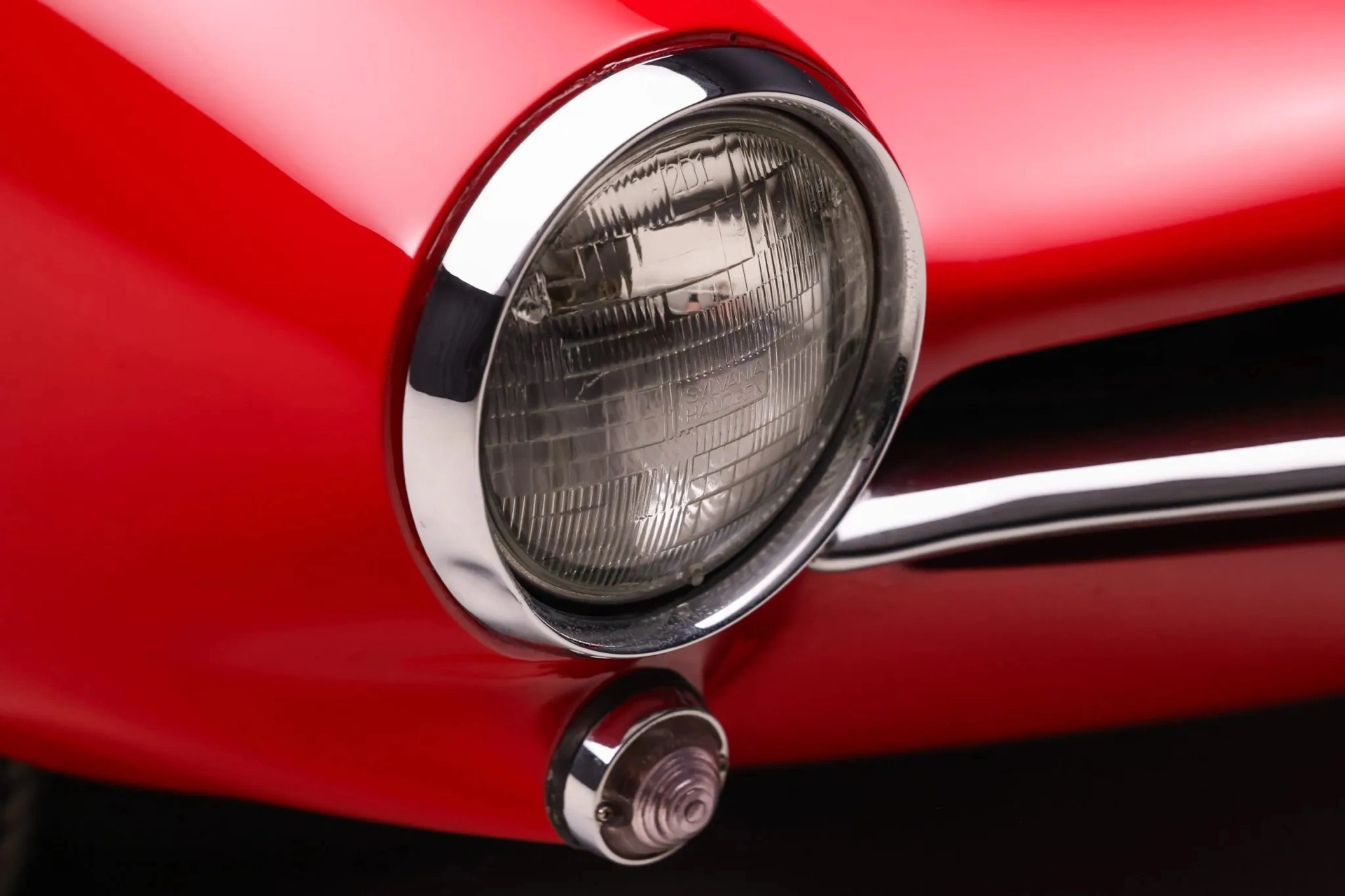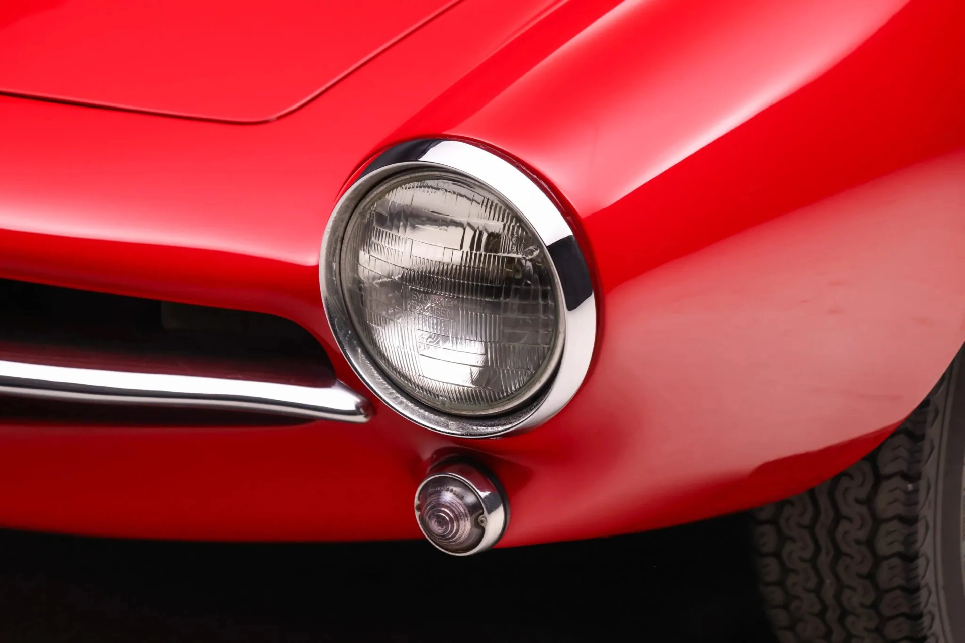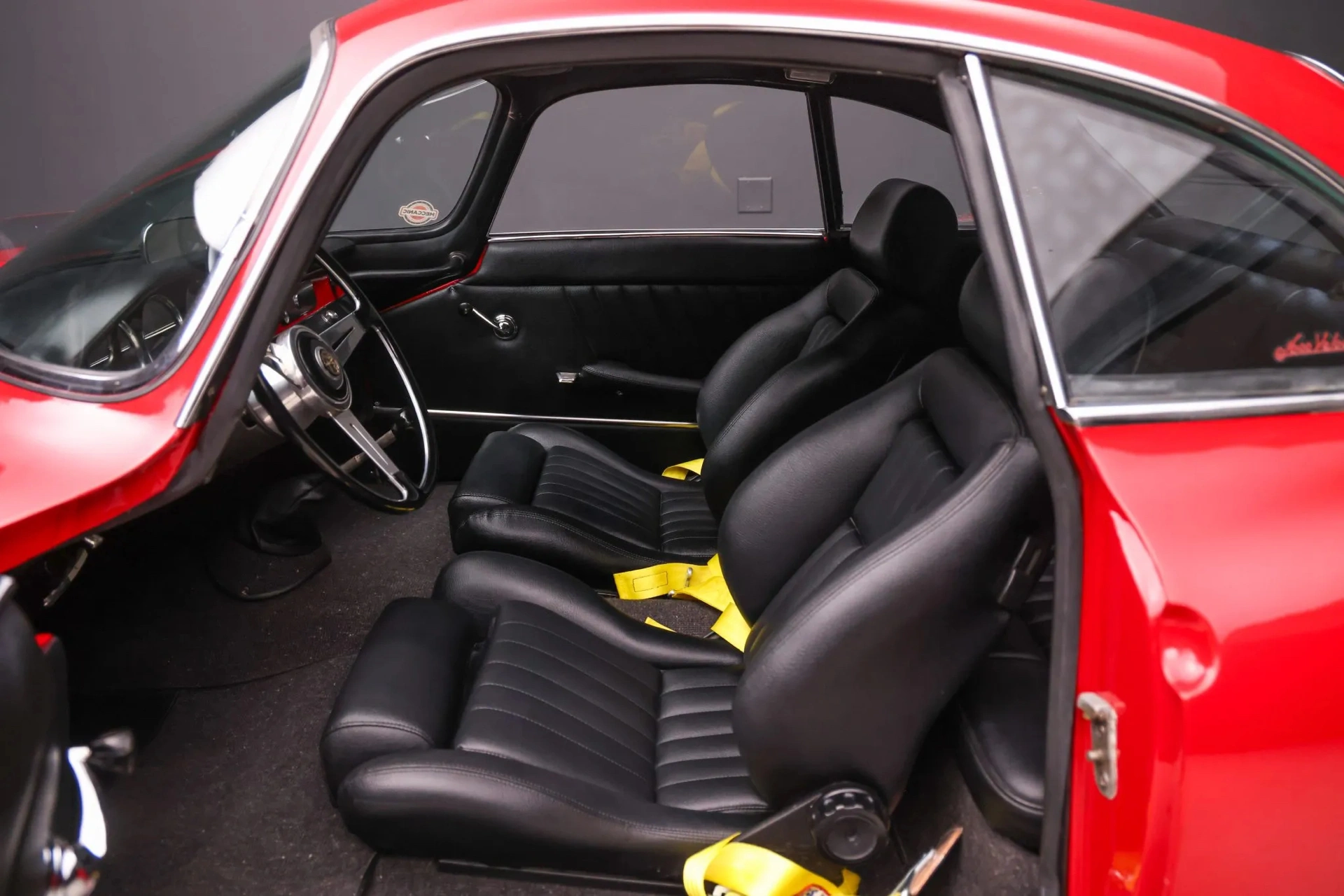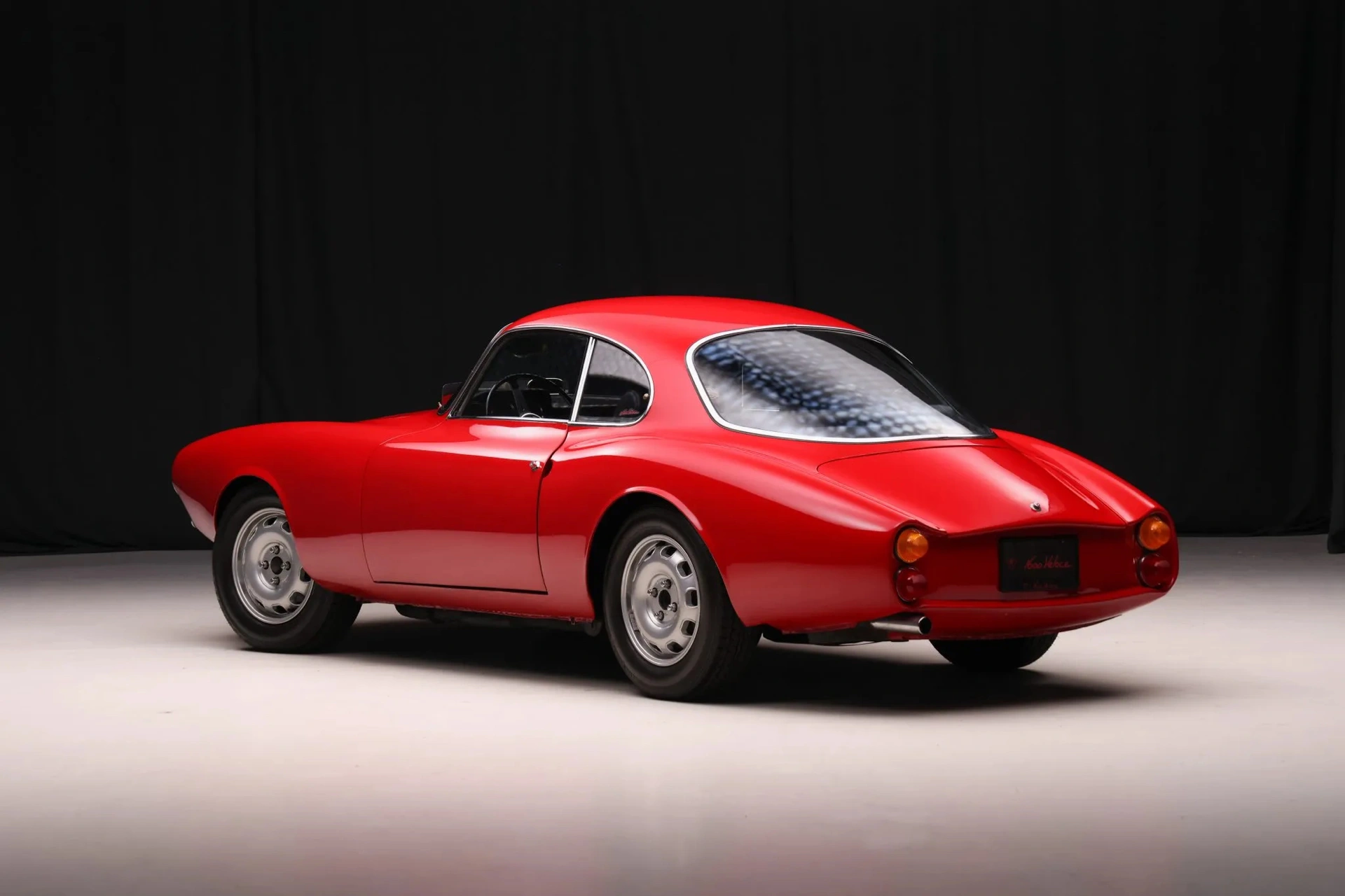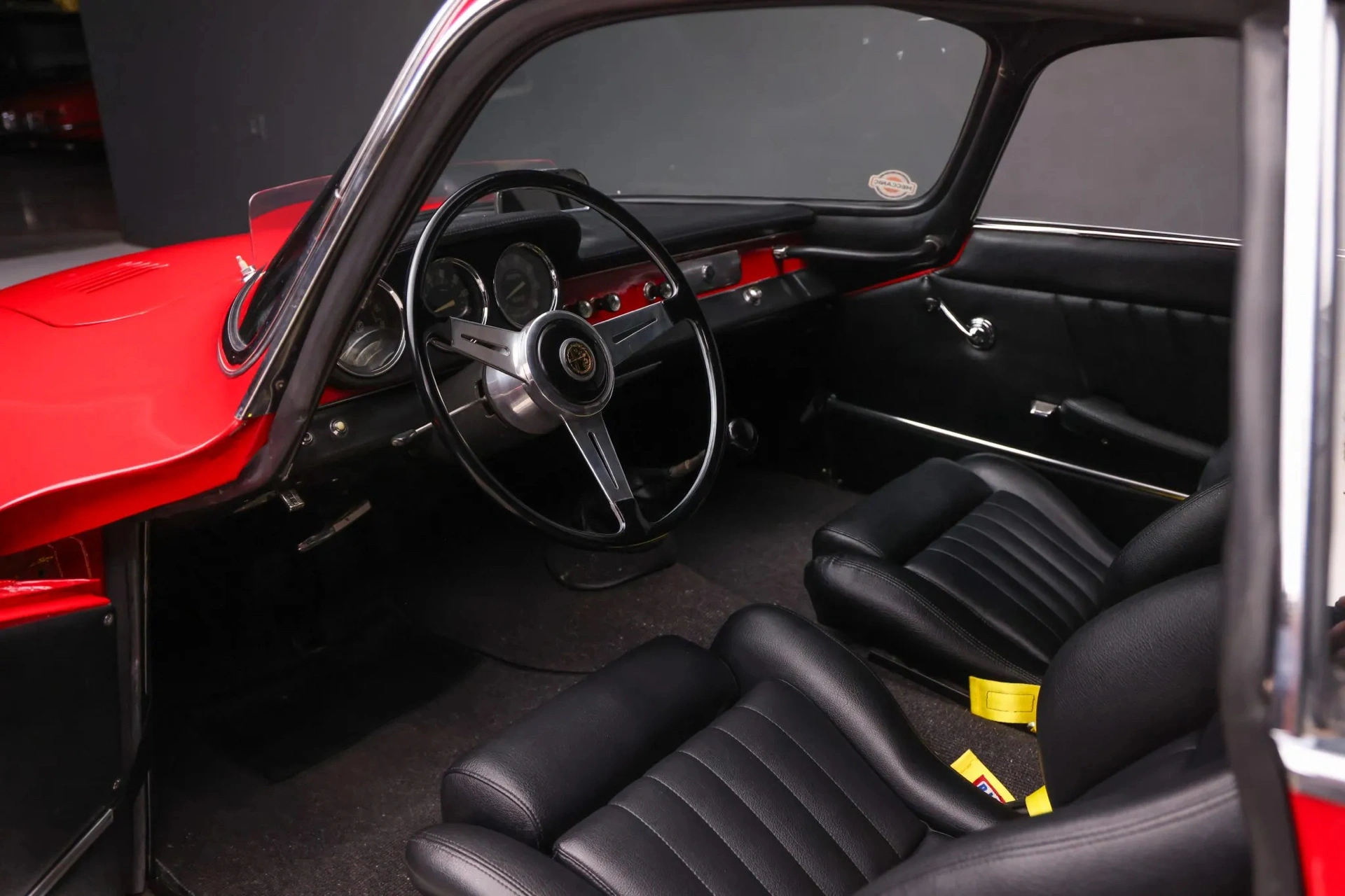La Sprint Speciale a été conçue par Franco Scaglione chez Bertone à la suite d’expériences de carrosserie à faible traînée et des concepts Bertone Aerodynamica Technica qui en ont résulté. Succédant à la Tipo 101.20 Giulietta SS, la Tipo 101.21 Giulia SS a été présentée au salon de l’automobile de Genève en 1963 avec un style similaire et une cylindrée accrue de 1,6 litre. S’inspirant des voitures de course SSZ Stradale construites par Tom Zatloukal, cet exemplaire a été modifié par l’ancien propriétaire. Les travaux ont consisté à réviser les ailes, à évaser les passages de roues, à supprimer les pare-chocs et à raser les clignotants latéraux, les lances latérales et le badge. Précédemment peinte en blanc, puis en noir, la voiture a été repeinte en rouge et comporte un déflecteur d’air en plexiglas placé derrière le capot à persiennes.