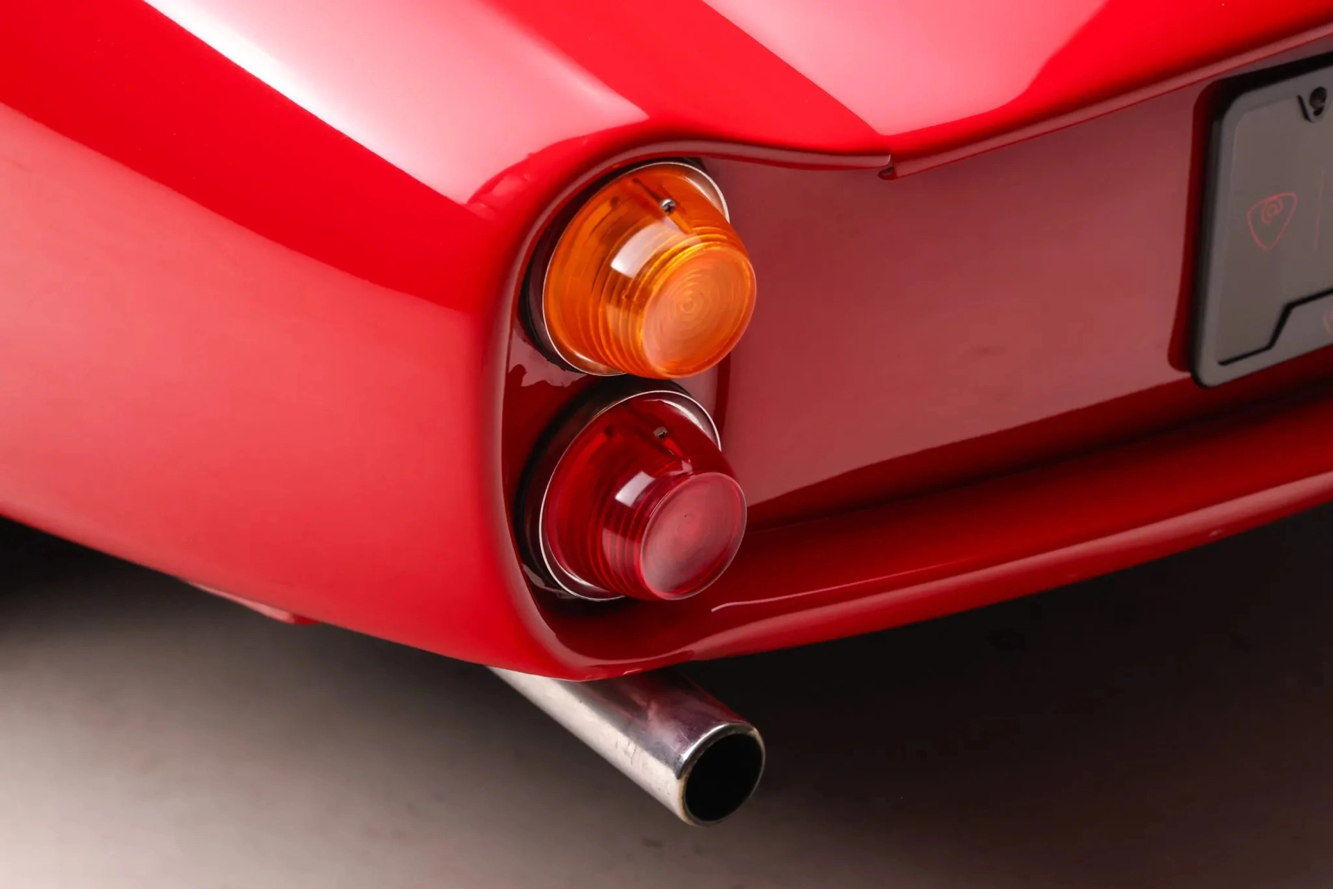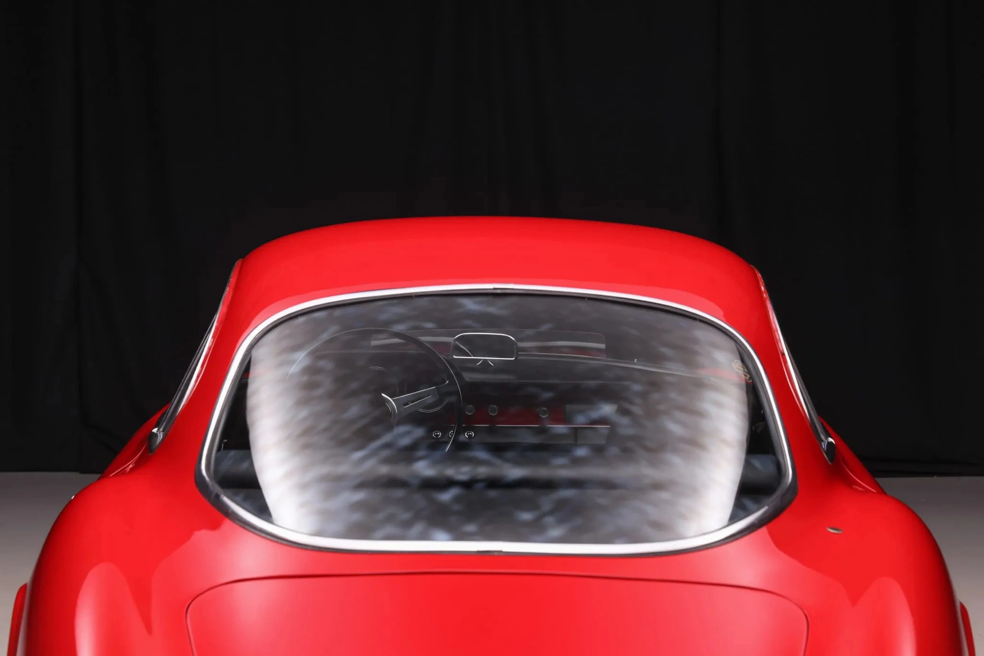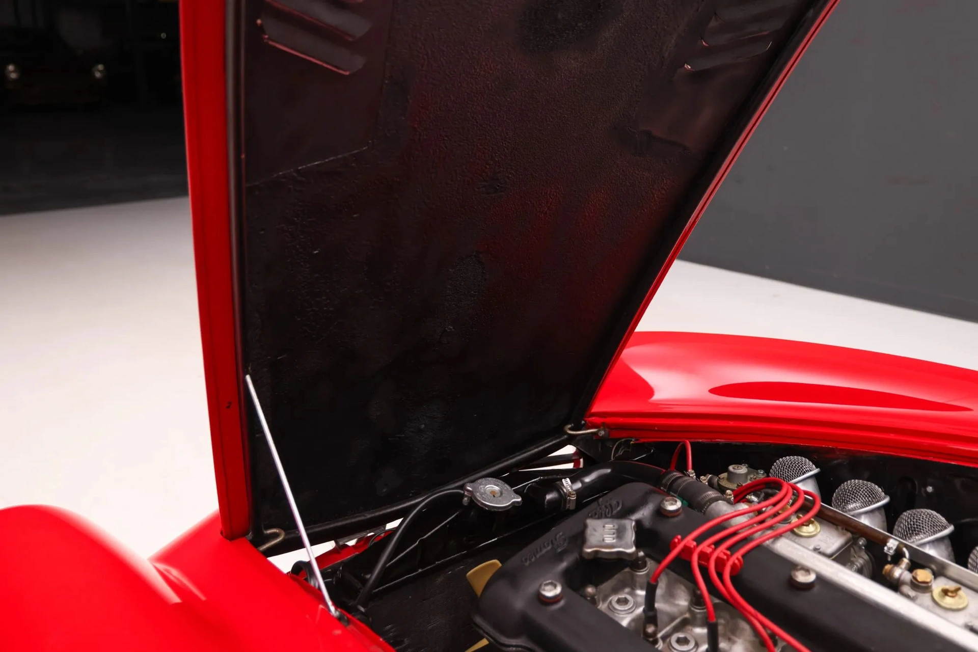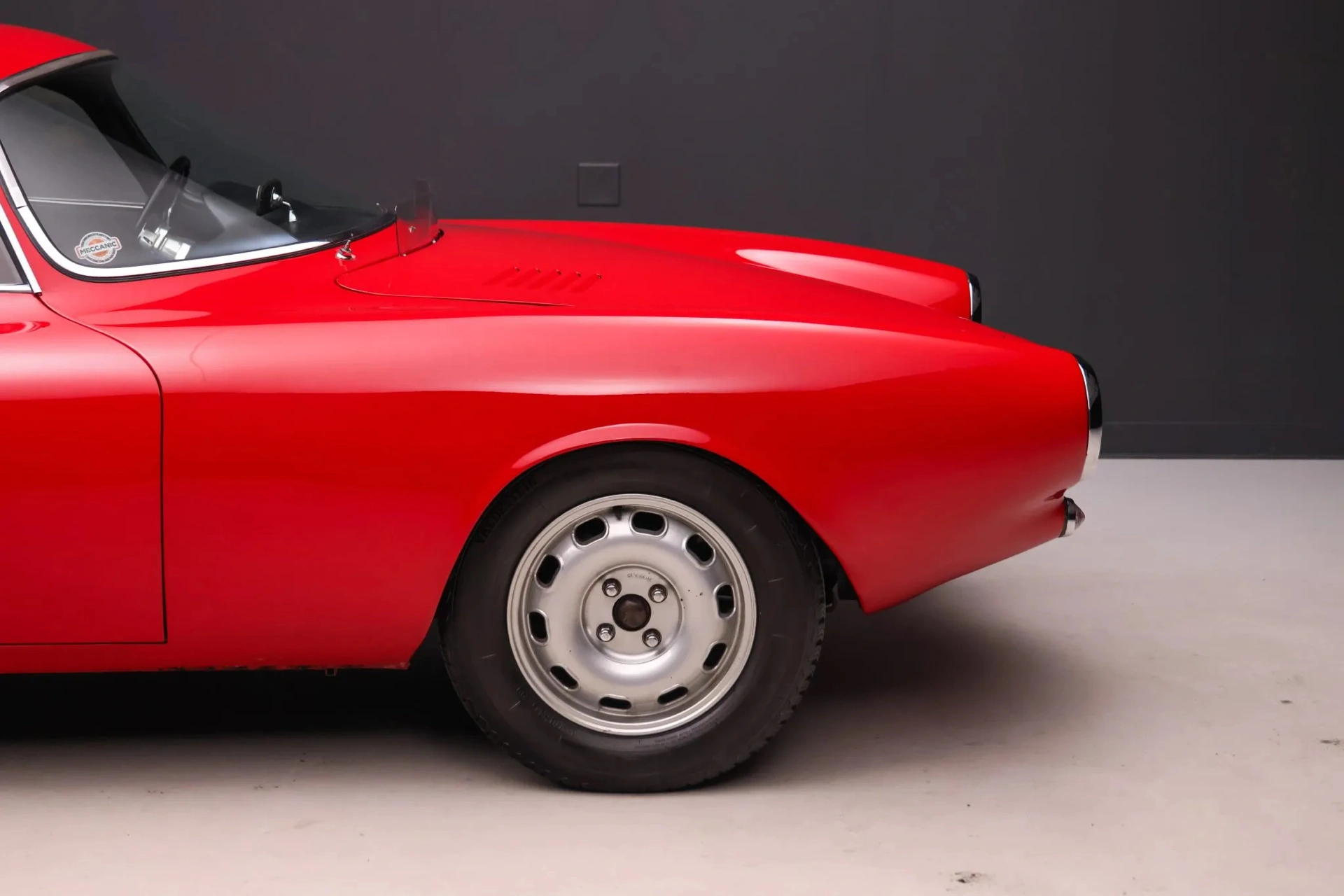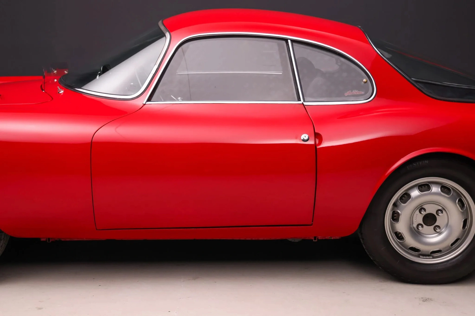 La Sprint Speciale a été conçue par Franco Scaglione chez Bertone à la suite d’expériences de carrosserie à faible traînée et des concepts Bertone Aerodynamica Technica qui en ont résulté. Succédant à la Tipo 101.20 Giulietta SS, la Tipo 101.21 Giulia SS a été présentée au salon de l’automobile de Genève en 1963 avec un style similaire et une cylindrée accrue de 1,6 litre. S’inspirant des voitures de course SSZ Stradale construites par Tom Zatloukal, cet exemplaire a été modifié par l’ancien propriétaire. Les travaux ont consisté à réviser les ailes, à évaser les passages de roues, à supprimer les pare-chocs et à raser les clignotants latéraux, les lances latérales et le badge. Précédemment peinte en blanc, puis en noir, la voiture a été repeinte en rouge et comporte un déflecteur d’air en plexiglas placé derrière le capot à persiennes.