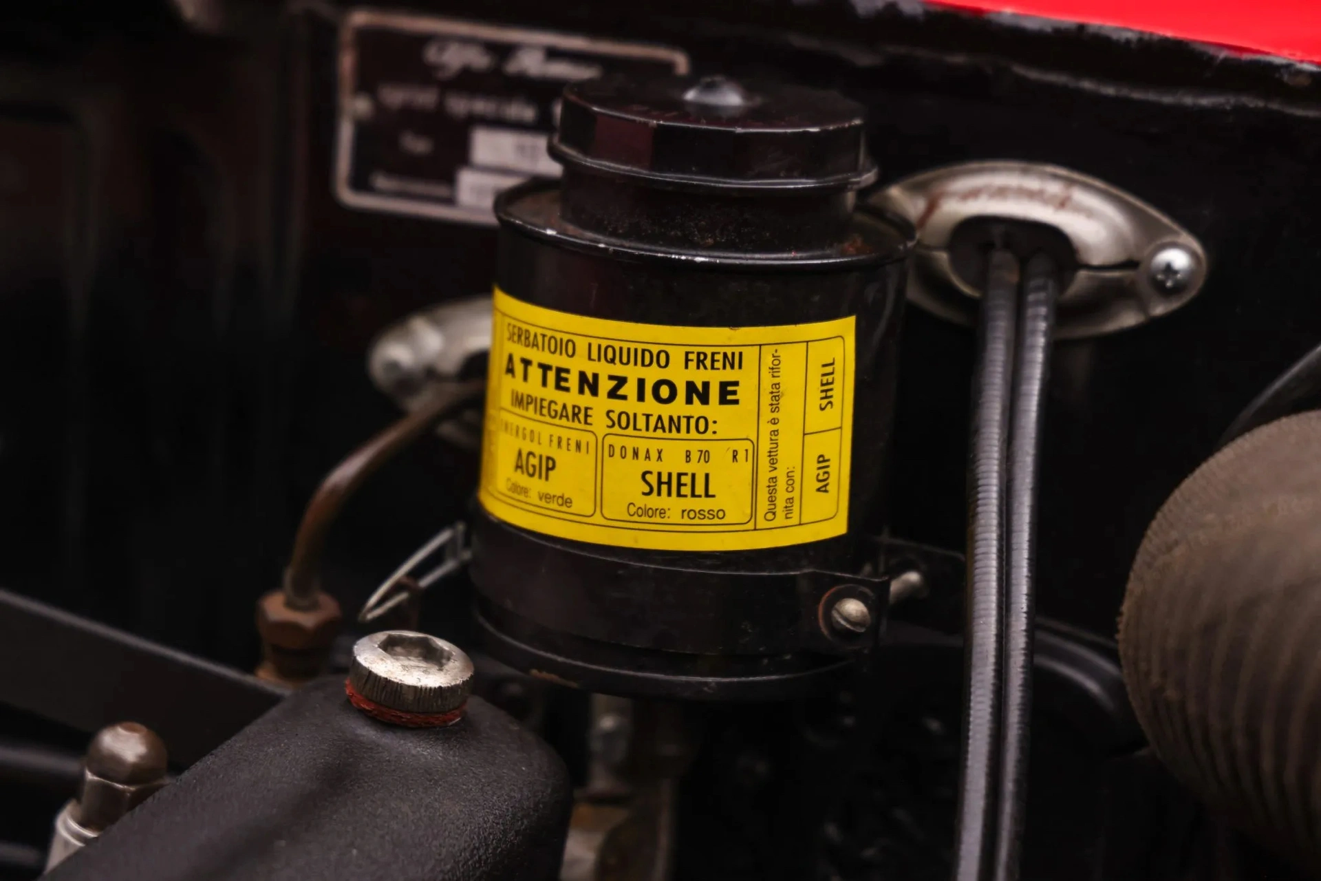 Les jantes TZ-Style 15″ sont montées avec des pneus Vredestein Sprint Classic 185/70. La Giulia SS est équipée en usine de freins à disque à l’avant et de freins à tambour à l’arrière.