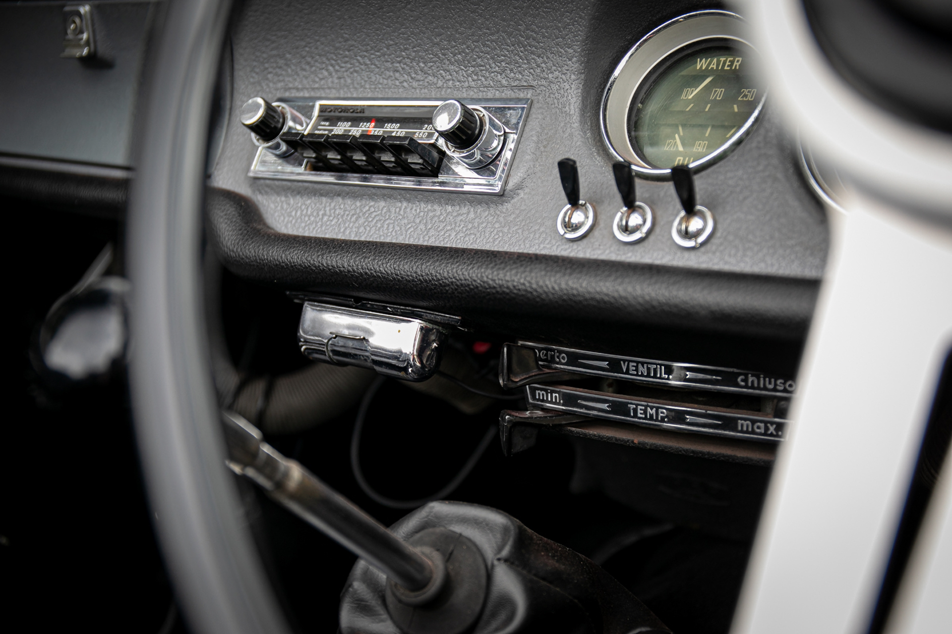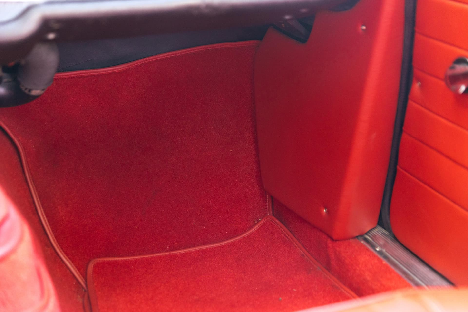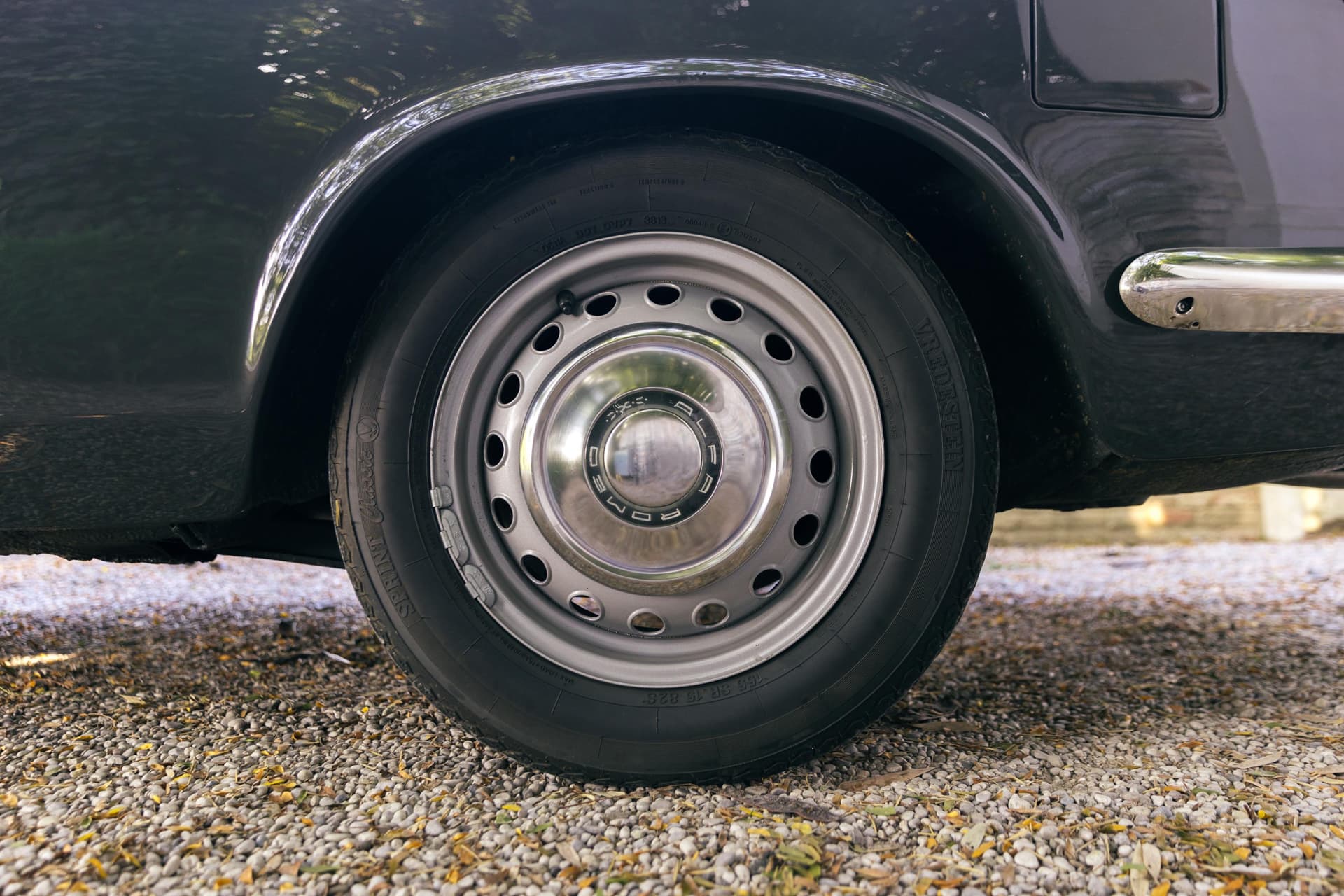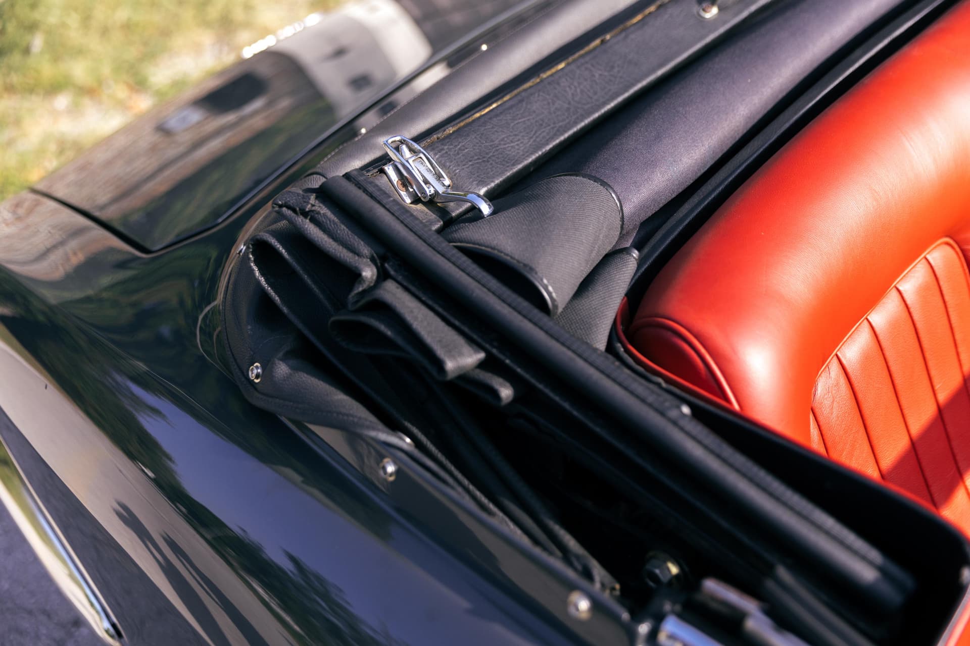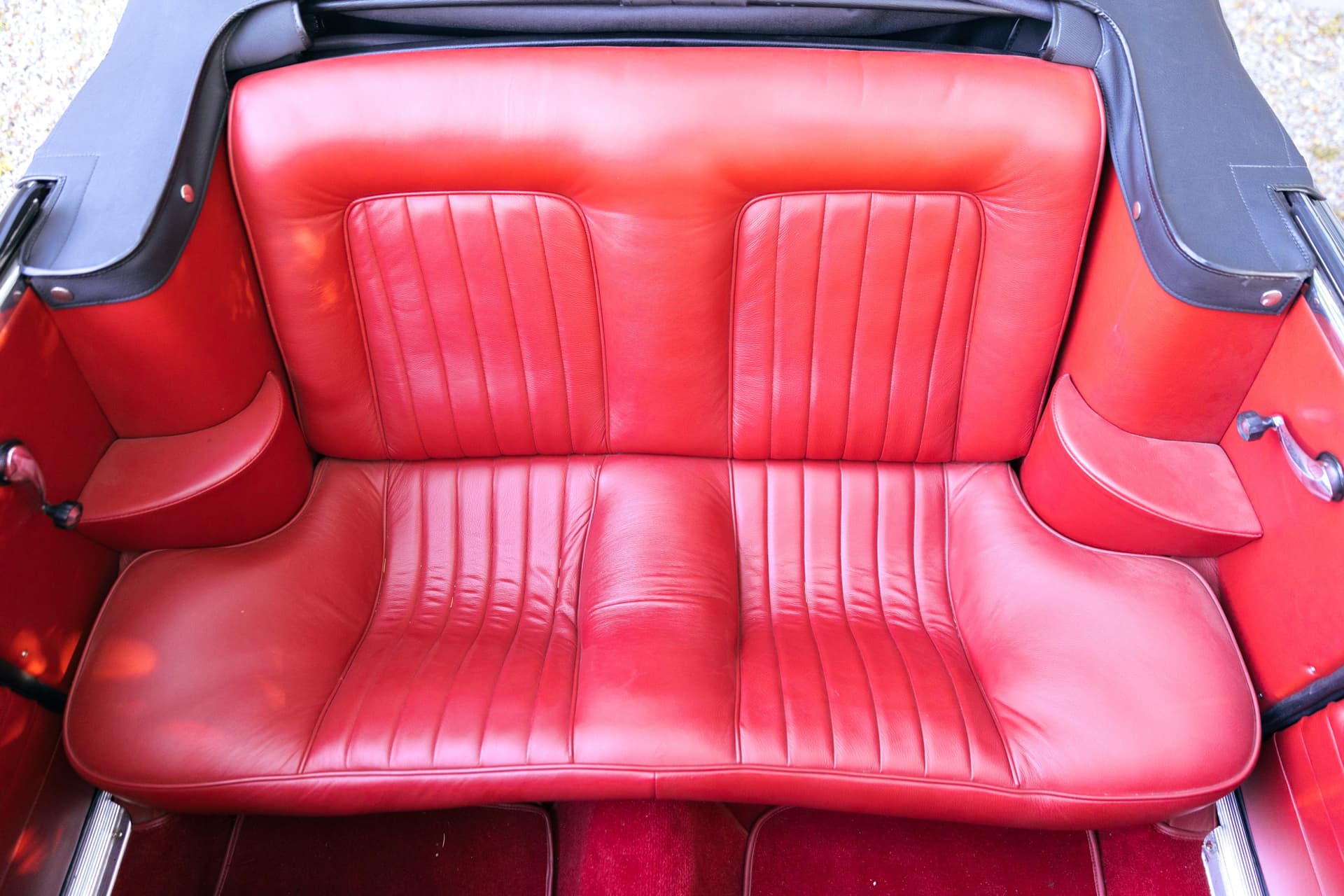 Du coup, le seul élément réellement dessiné chez Touring, c’est le haut et la capote est élégamment dessinée. La ligne de ce cabriolet reste belle avec la toile relevée. Les petites vitres de custode sont bien intégrées mais on remarque vite la différence de surface vitrée entre le coupé et la Giulia GTC. À l’arrière, sur le couvercle de coffre plus grand que celui du coupé et le sigle ne laissent plus de place à la confusion.