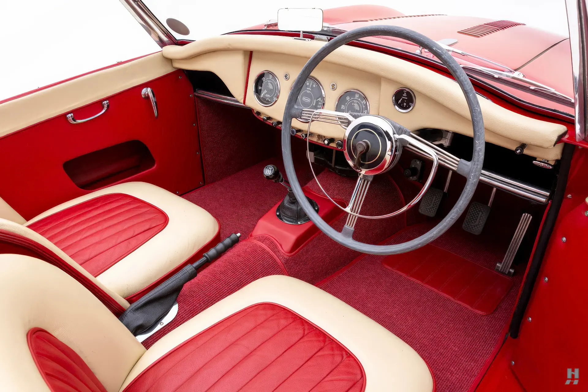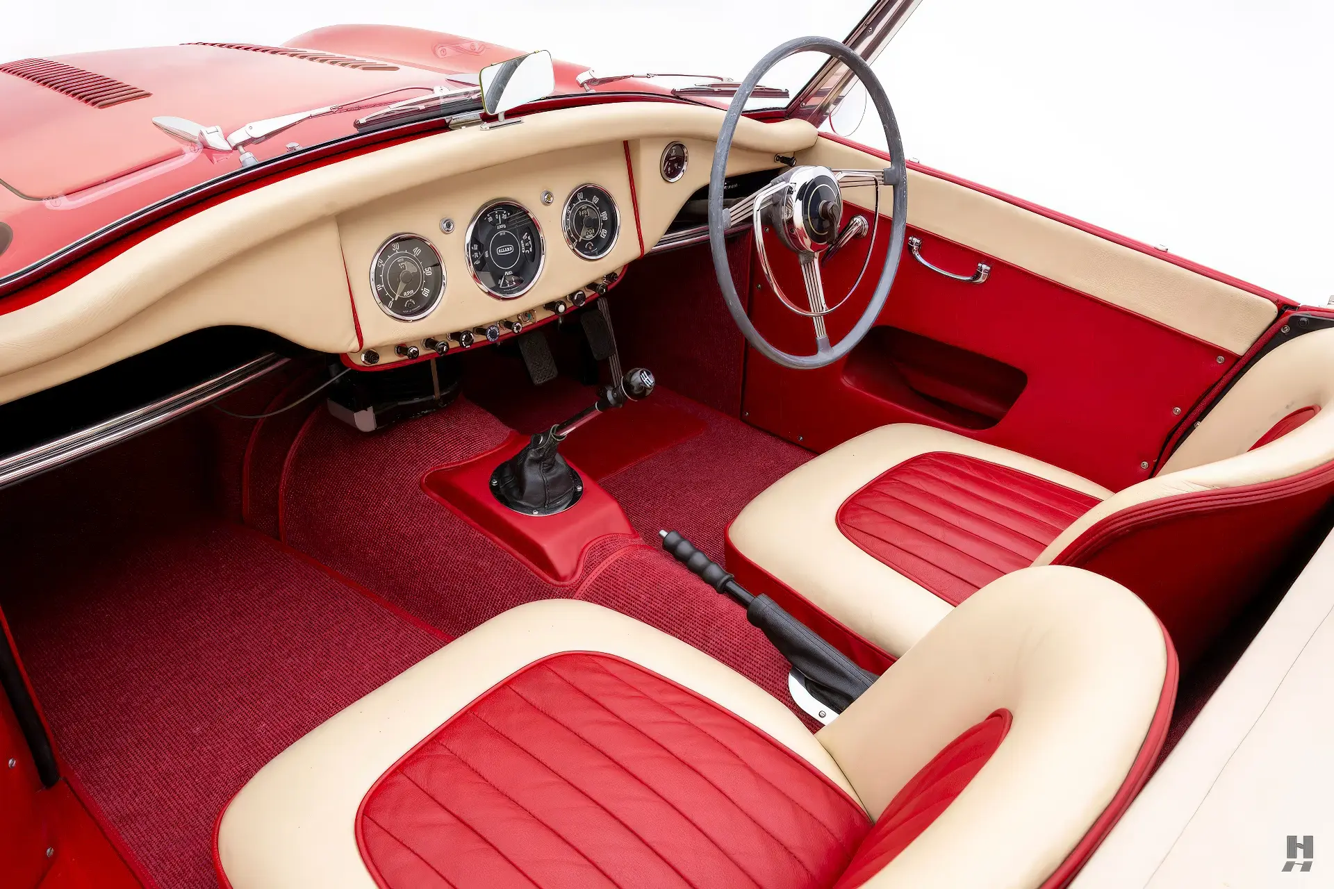 Après ses débuts, le prototype MK 2 Palm Beach a servi de démonstrateur Allard avant de passer entre les mains de Brian Howard, directeur de l’Allard Motor Company, puis de Walter Hemsworth en 1968 et enfin de Peter Hemsworth, qui l’a stockée vers 1976. En 2012, Alan et Lloyd Allard, le fils et le petit-fils de Sydney, ont créé l’Allard Sports Car Company, dans le but de relancer Allard en tant que constructeur de voitures de sport après une interruption de 56 ans. Avec cette renaissance en tête, et la possibilité de produire un modèle de continuation, une Palm Beach MK 3, Alan Allard a acheté la MK 2 à Peter Hemsworth en 2012. Lloyd et Alan ont ensuite procédé à une restauration complète et, comme il n’existait ni dessins ni modèles, ils ont saisi l’occasion de créer les leurs. La voiture a été entièrement démontée et un cadre en bois a été créé pour maintenir le tout en place. Ils espéraient utiliser autant que possible la voiture d’origine, mais presque tout ce qui était en bois, en caoutchouc, en cuir ou en tissu était pourri au point d’être irrécupérable. Les panneaux de carrosserie en aluminium, battus à la main par Jackman il y a 58 ans, avaient bien survécu sous les couches de peinture et de mastic, mais la cloison en acier, les ailes intérieures et le réservoir de carburant l’avaient moins bien supporté. Les compétences de Lloyd en matière de fabrication métallique lui ont permis de fabriquer toutes les tôles d’acier corrodées avec les bonnes nervures et les bons sertissages, ainsi que les pare-chocs à double tube. La reconstruction du moteur a été sous-traitée, tout comme la préparation finale de la carrosserie et la peinture en rouge carmin, ainsi que le nouvel intérieur élégant en crème et rouge, et la voiture a également été équipée à cette époque d’une boîte de vitesses moderne à 5 rapports. L’article fini a été exposé au NEC Classic Car Show en 2014 et Octane Magazine a publié un excellent article de sept pages, y compris un essai routier dans le numéro de janvier 2015.