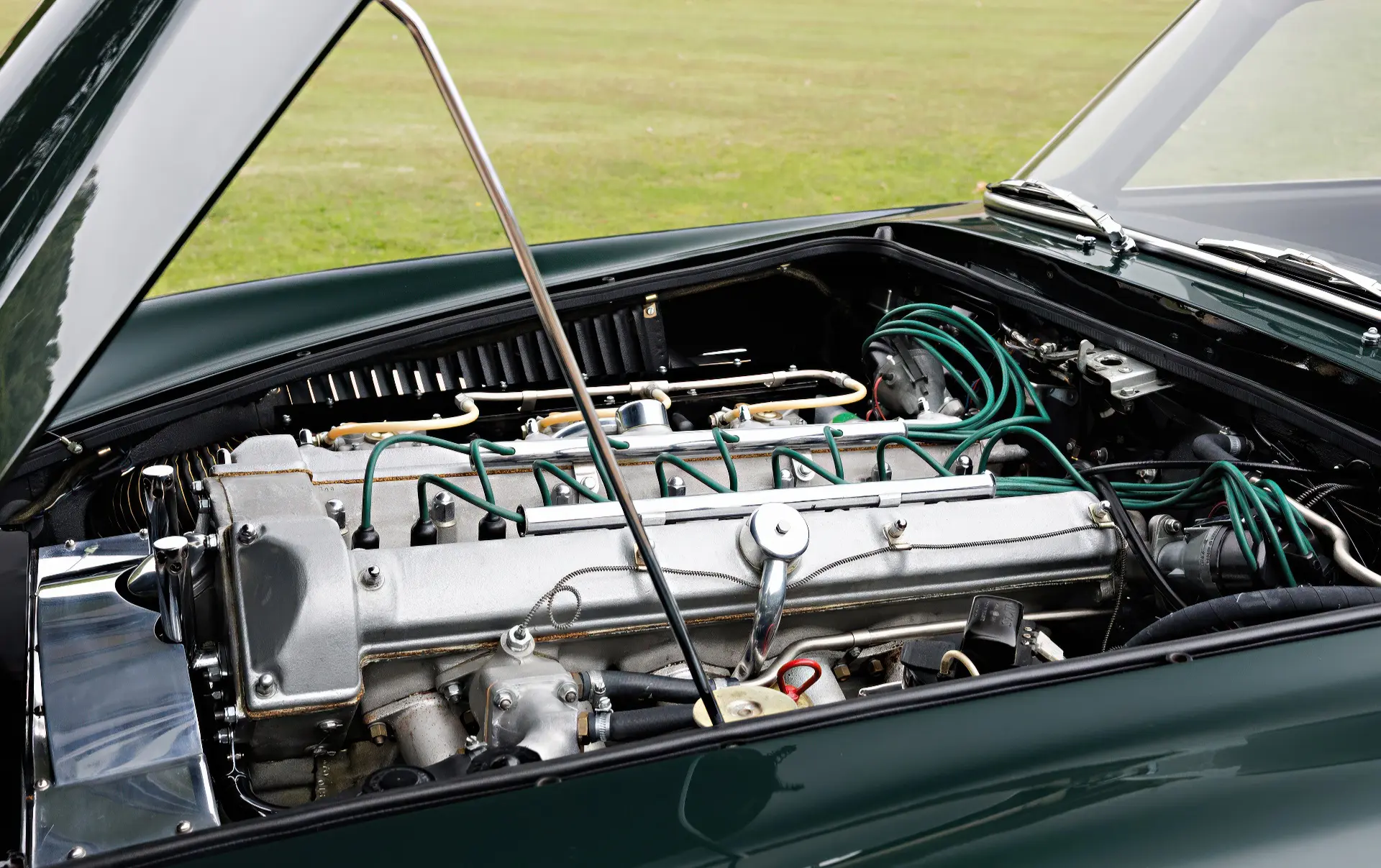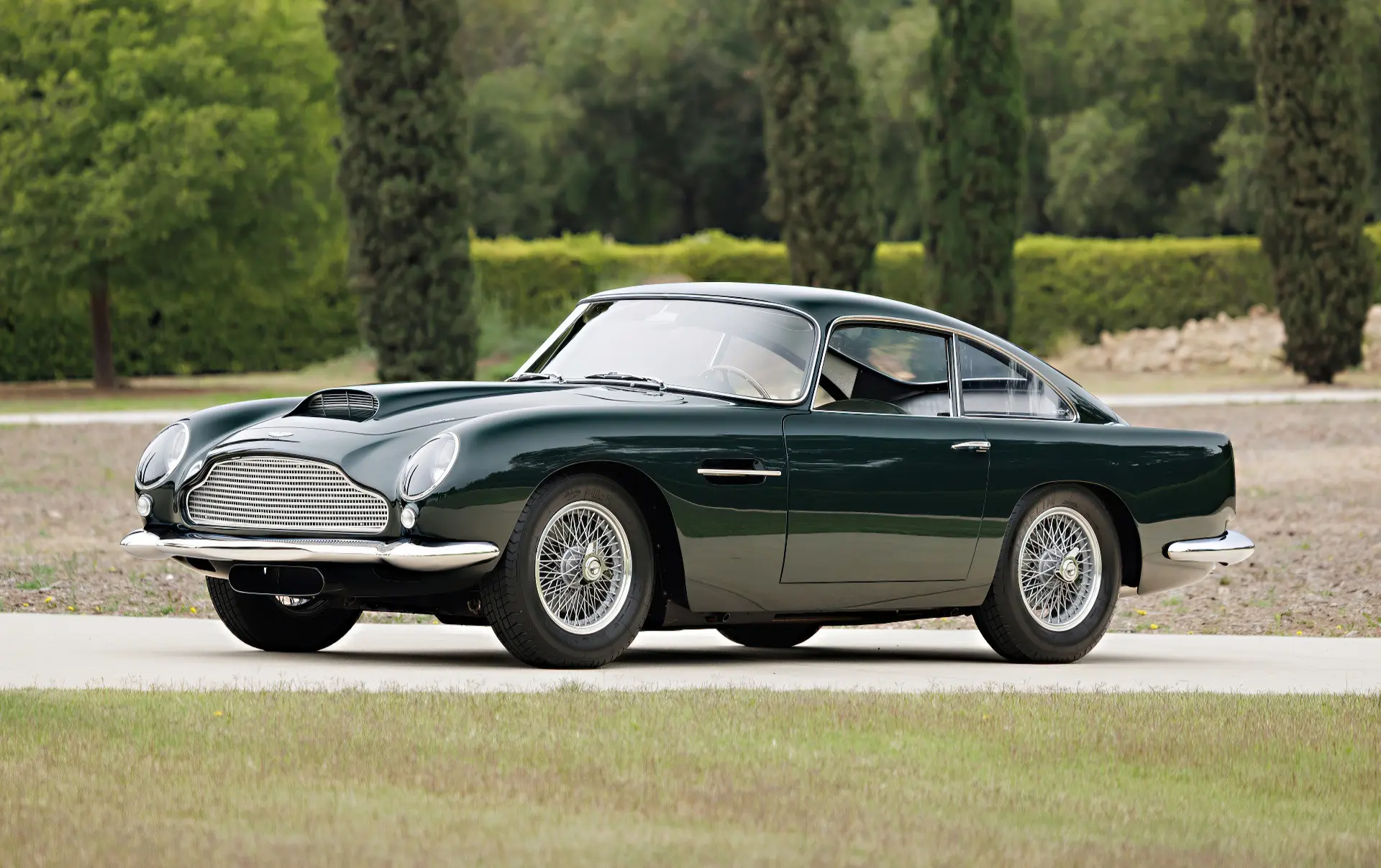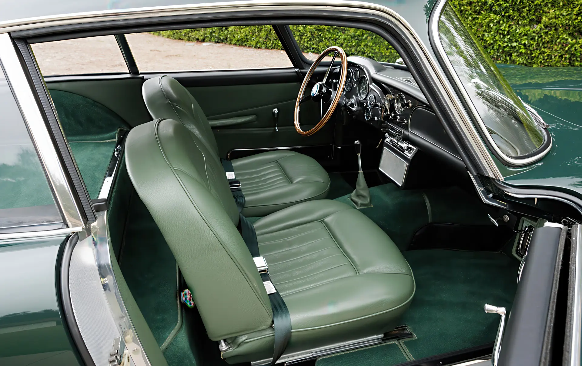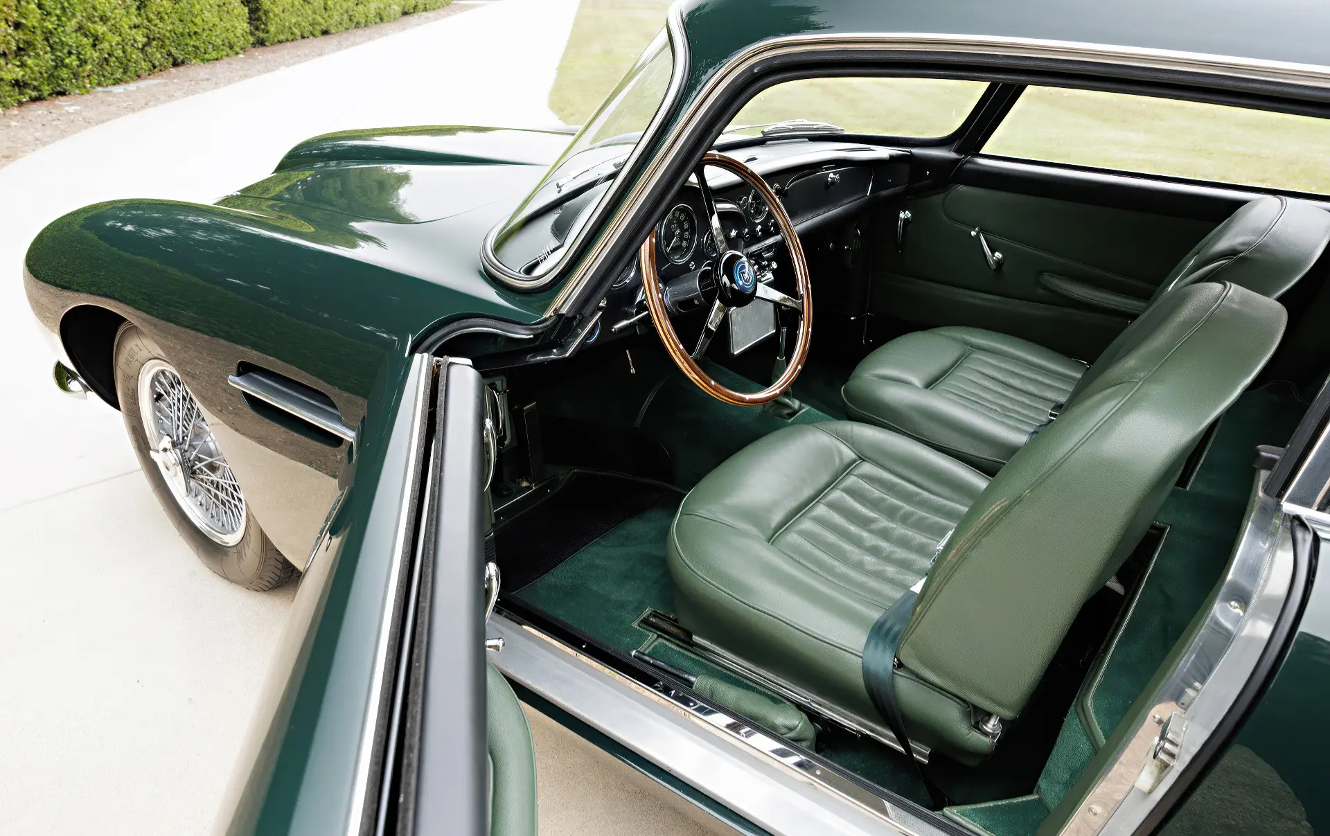 Aujourd’hui, la 0154/L se présente comme la quintessence de la GT d’un gentleman, finie en vert Goodwood sur cuir vert. Elle est accompagnée d’un manuel d’instructions original de la DB4 GT, de plaques d’époque des années de course, de récents rapports d’entretien et d’une copie de la fiche de construction d’usine.