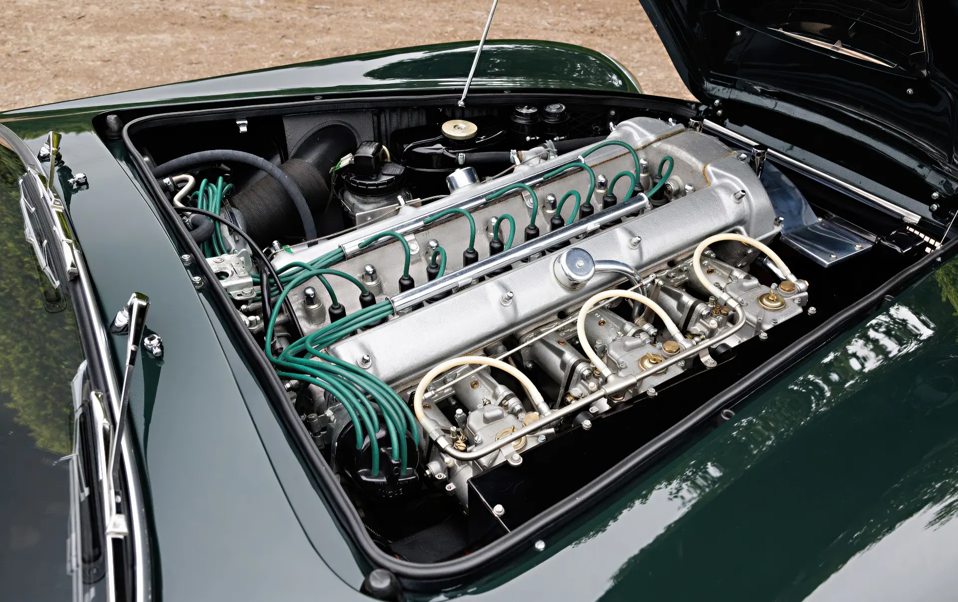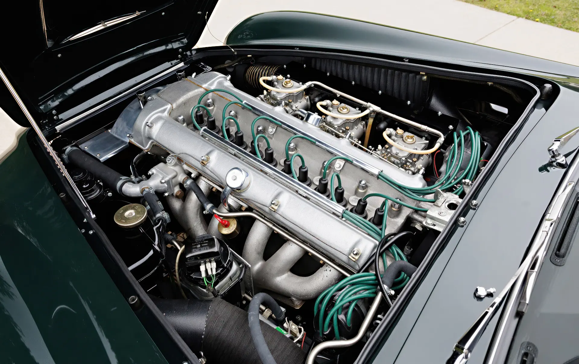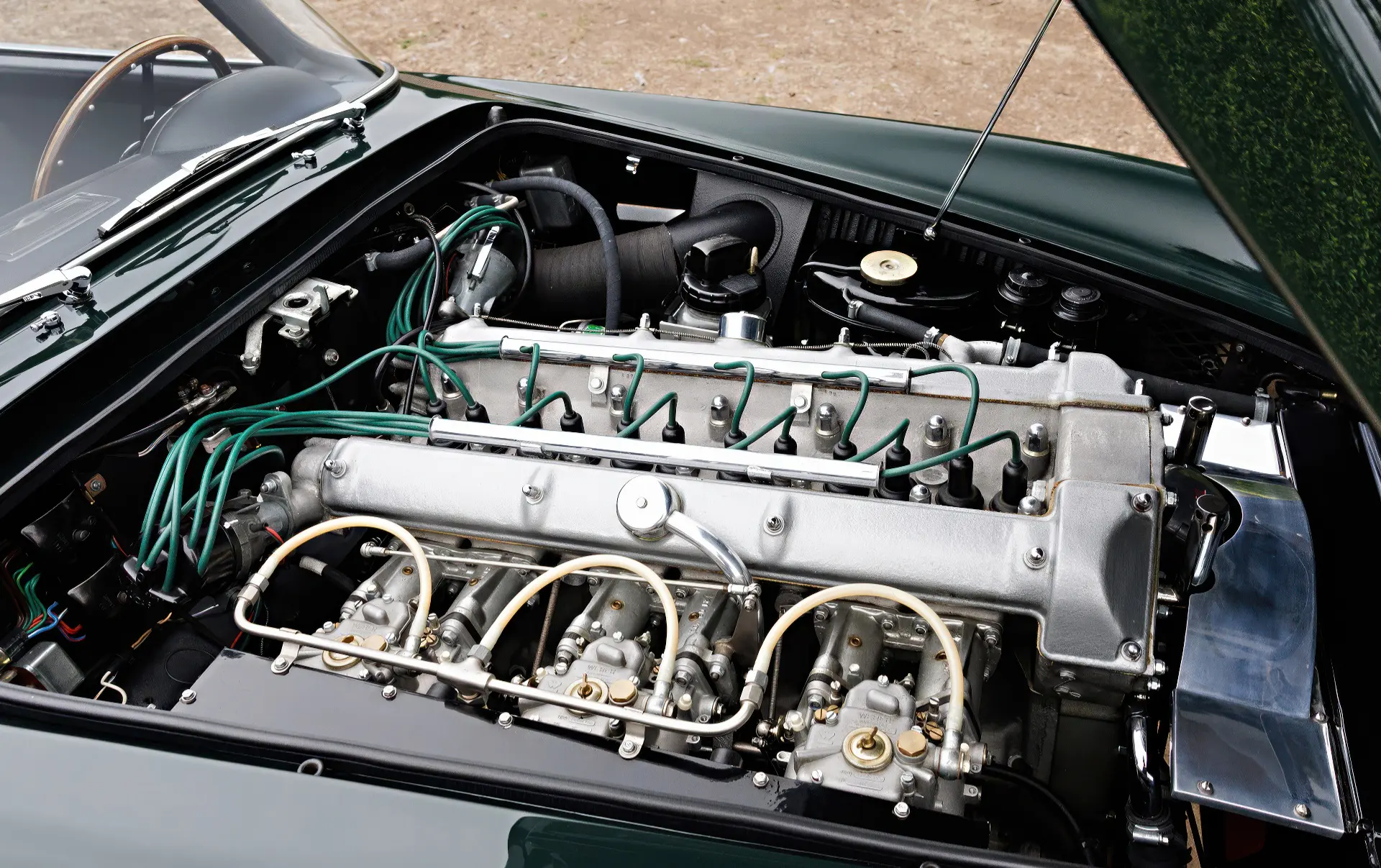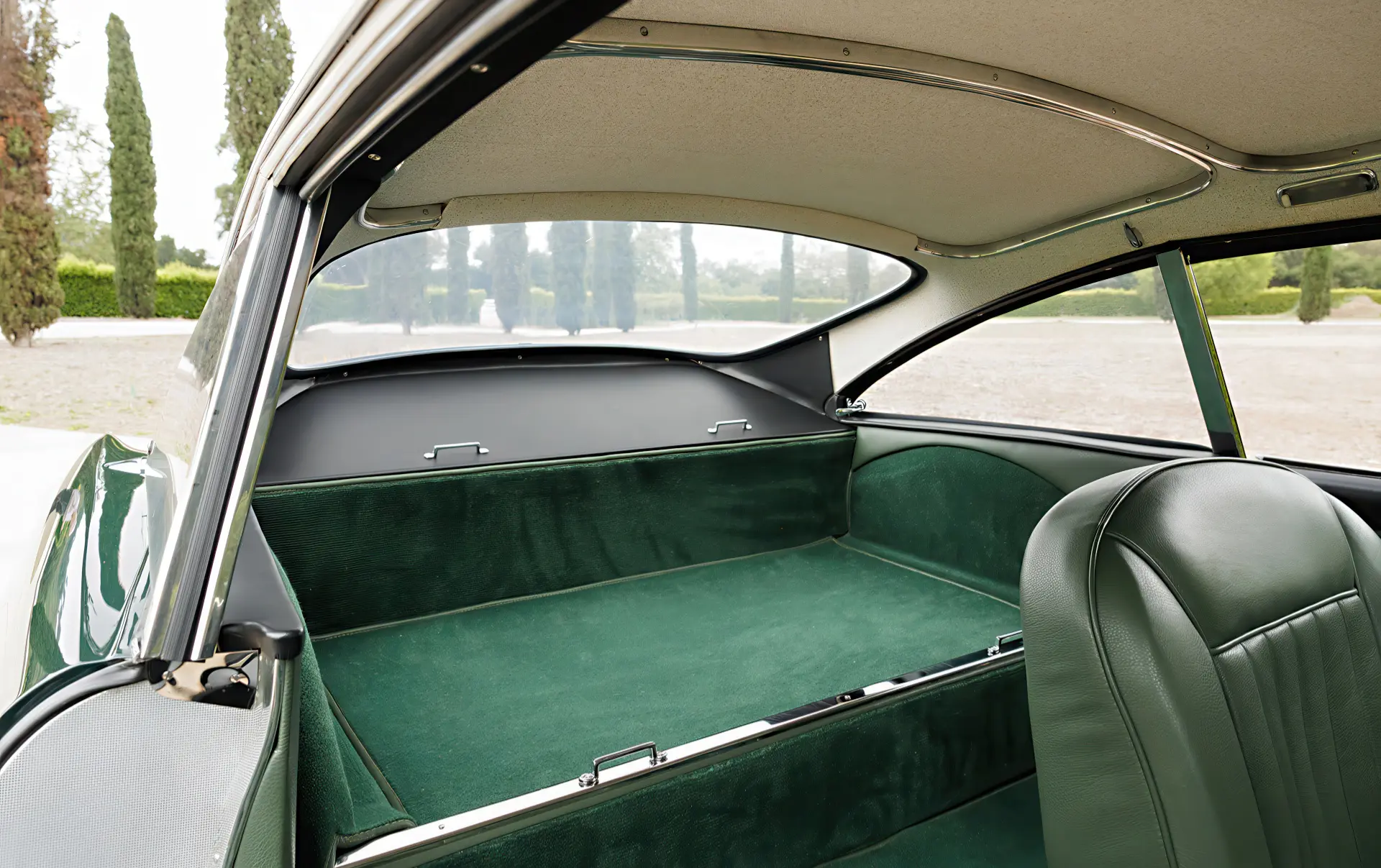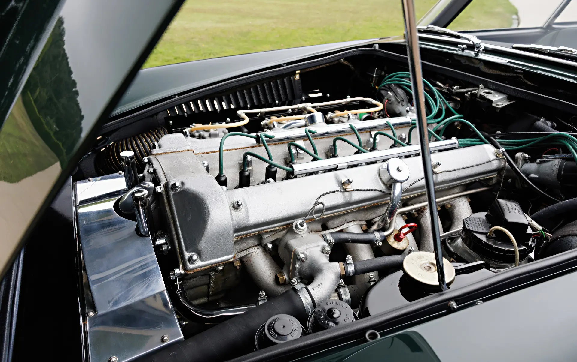 Aujourd’hui, la 0154/L se présente comme la quintessence de la GT d’un gentleman, finie en vert Goodwood sur cuir vert. Elle est accompagnée d’un manuel d’instructions original de la DB4 GT, de plaques d’époque des années de course, de récents rapports d’entretien et d’une copie de la fiche de construction d’usine.