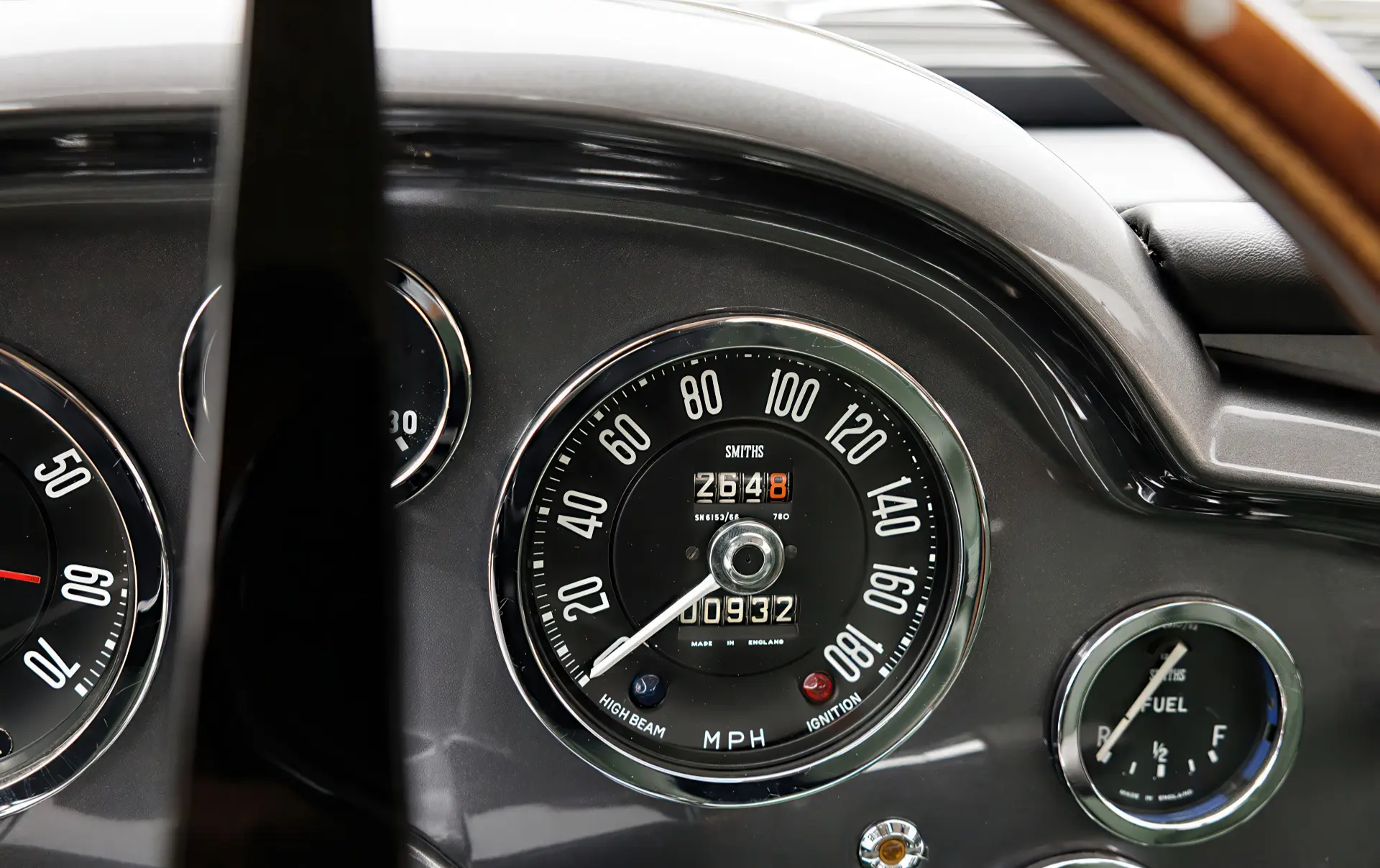 Visuellement, la DB4 GT se distinguait par ses phares recouverts de plexiglas, ses vitres arrière et de custode légères, ses vitres latérales sans cadre et ses pare-chocs supprimés. Deux réservoirs de carburant à ouverture rapide, un réservoir à autonomie étendue et des jantes en fil de fer Borrani garnies d’alliage complétaient ses spécifications axées sur la compétition. Et pourtant, à la manière typique d’Aston Martin, l’habitacle était joliment aménagé avec une moquette en laine Wilton et des sièges légers recouverts de cuir Connolly.