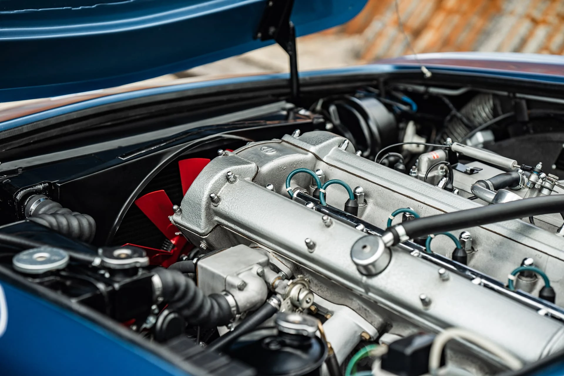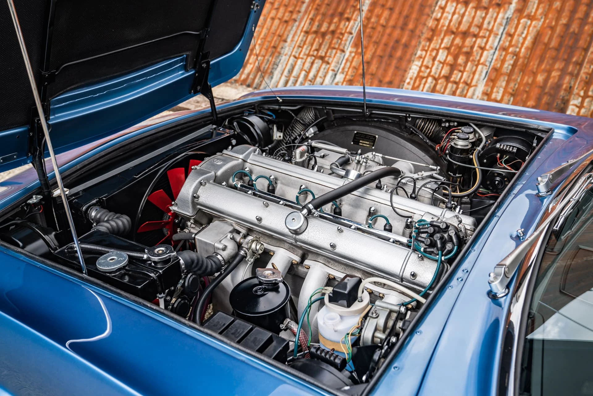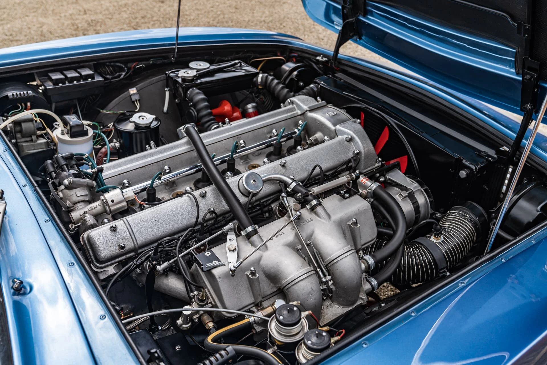 La DBS aurait dû être propulsée par un moteur V8 dès le premier jour, mais le nouveau moteur de 5,3 litres de Tadek Marek n’était pas prêt à temps. Aston Martin a donc repris le moteur six cylindres de 4 litres de la DB6. Il était disponible soit en version standard à carburateur SU de 282 ch, soit en version Vantage de 325 ch, qui utilisait des carburateurs Weber. Quinze voitures ont également été produites avec le système d’injection électronique Brico.