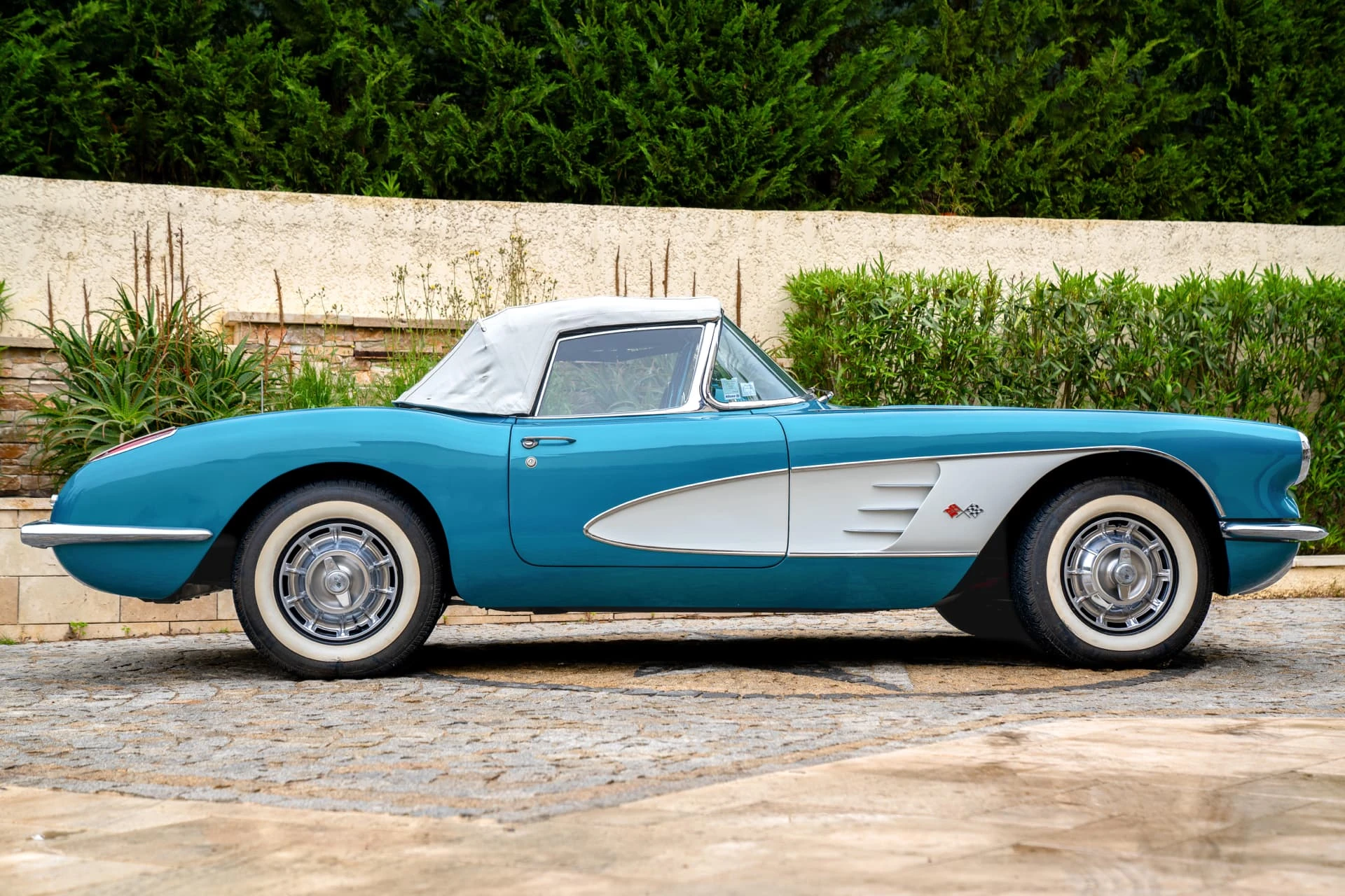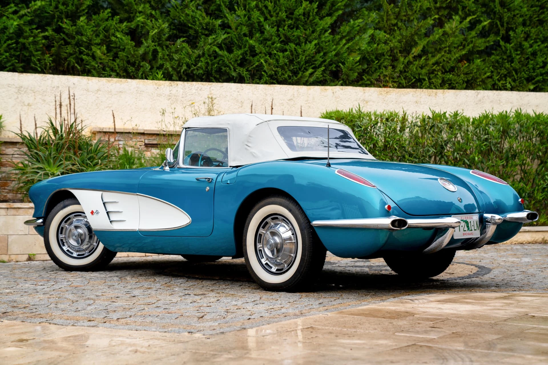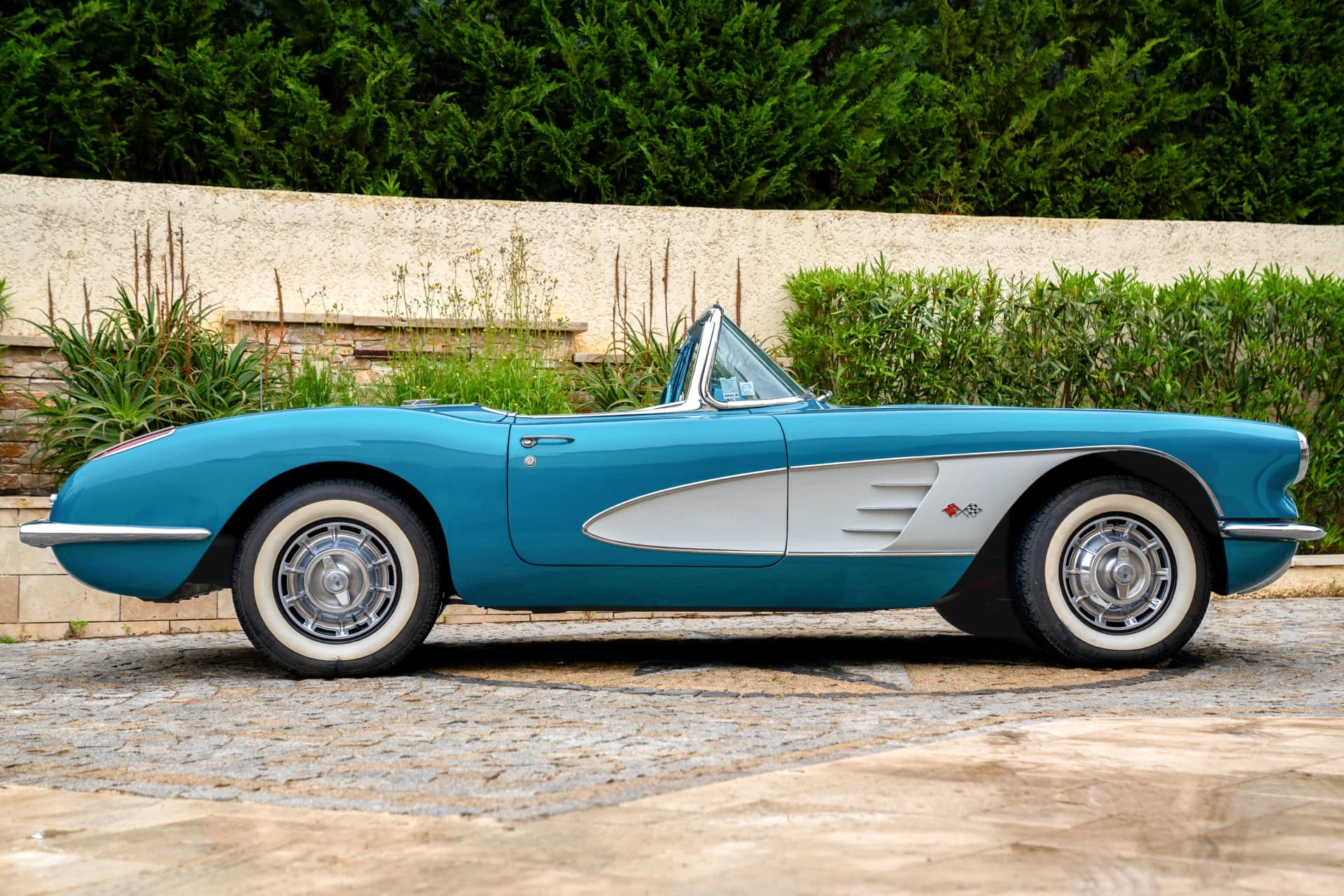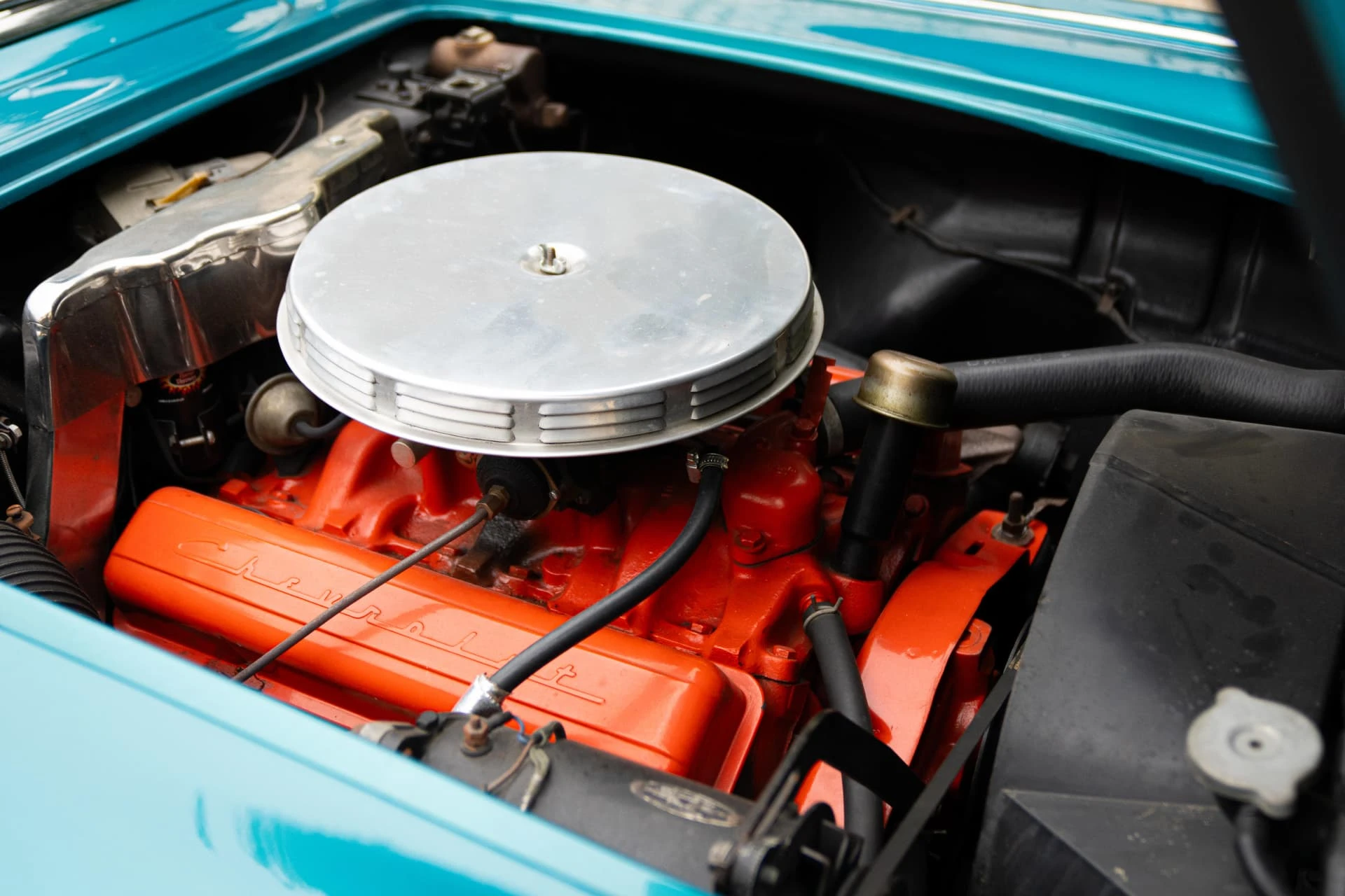 Cet exemplaire (Châssis J59S109549) est équipée de la séduisante combinaison du V8 283 ci (4,6 litres) et de la boîte manuelle à quatre rapports, appartenait au précédent propriétaire depuis 2014. Le rapport d’expertise de 2021 qui l’accompagne établit que la voiture a subi une restauration complète en respectant ses spécifications d’origine et la décrit comme étant dans un état mécanique parfait, comme neuve et en parfait état de marche. La carrosserie en fibre de verre est en parfait état également, après une restauration de grande qualité, ainsi que le châssis, sans signe de corrosion. Équipée d’une radio conforme à l’époque, l’intérieur d’origine est joliment patiné et la capote est en bon état de marche de même que tous les équipements électriques. L’actuel propriétaire a par ailleurs fait équiper la voiture d’une direction assistée.