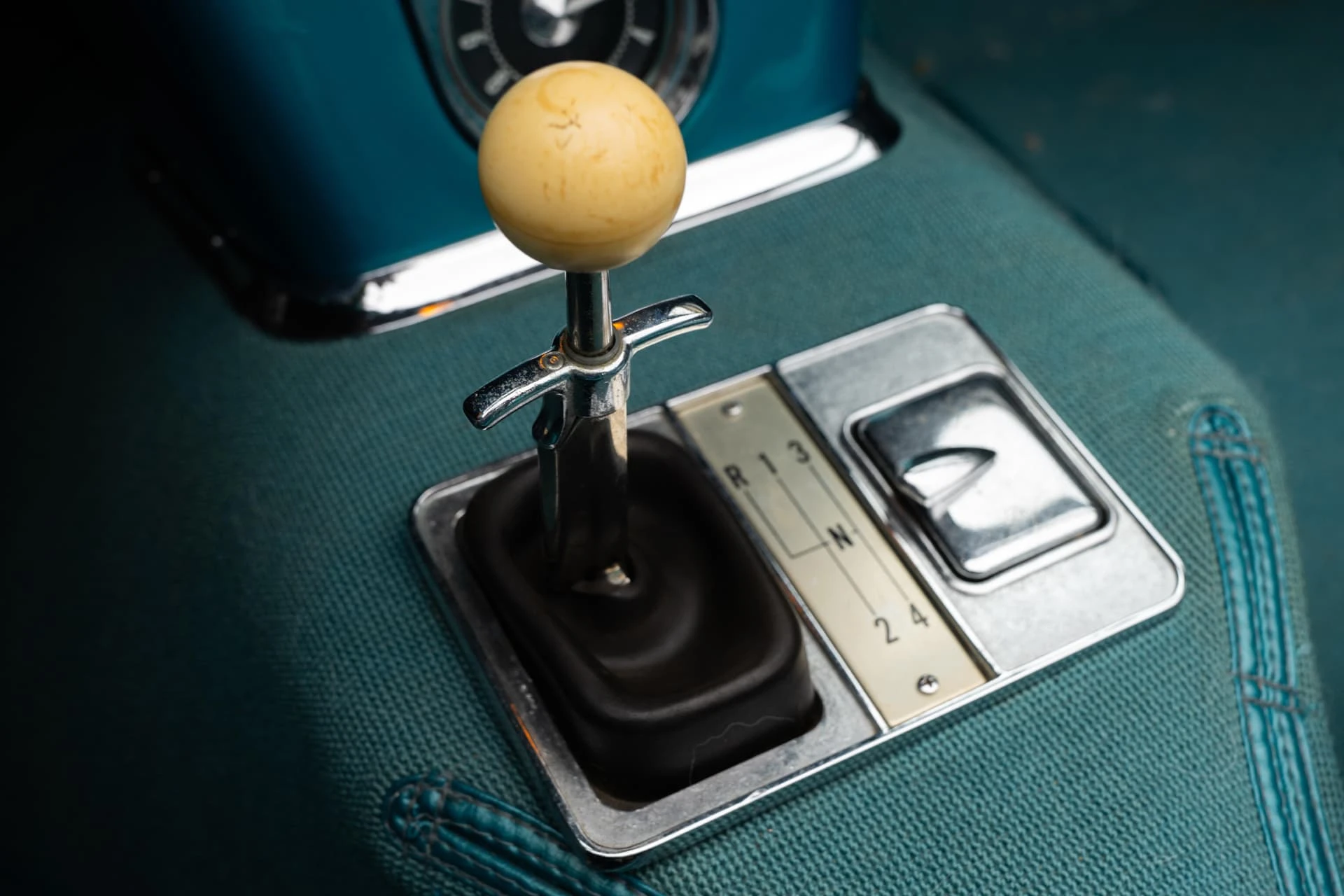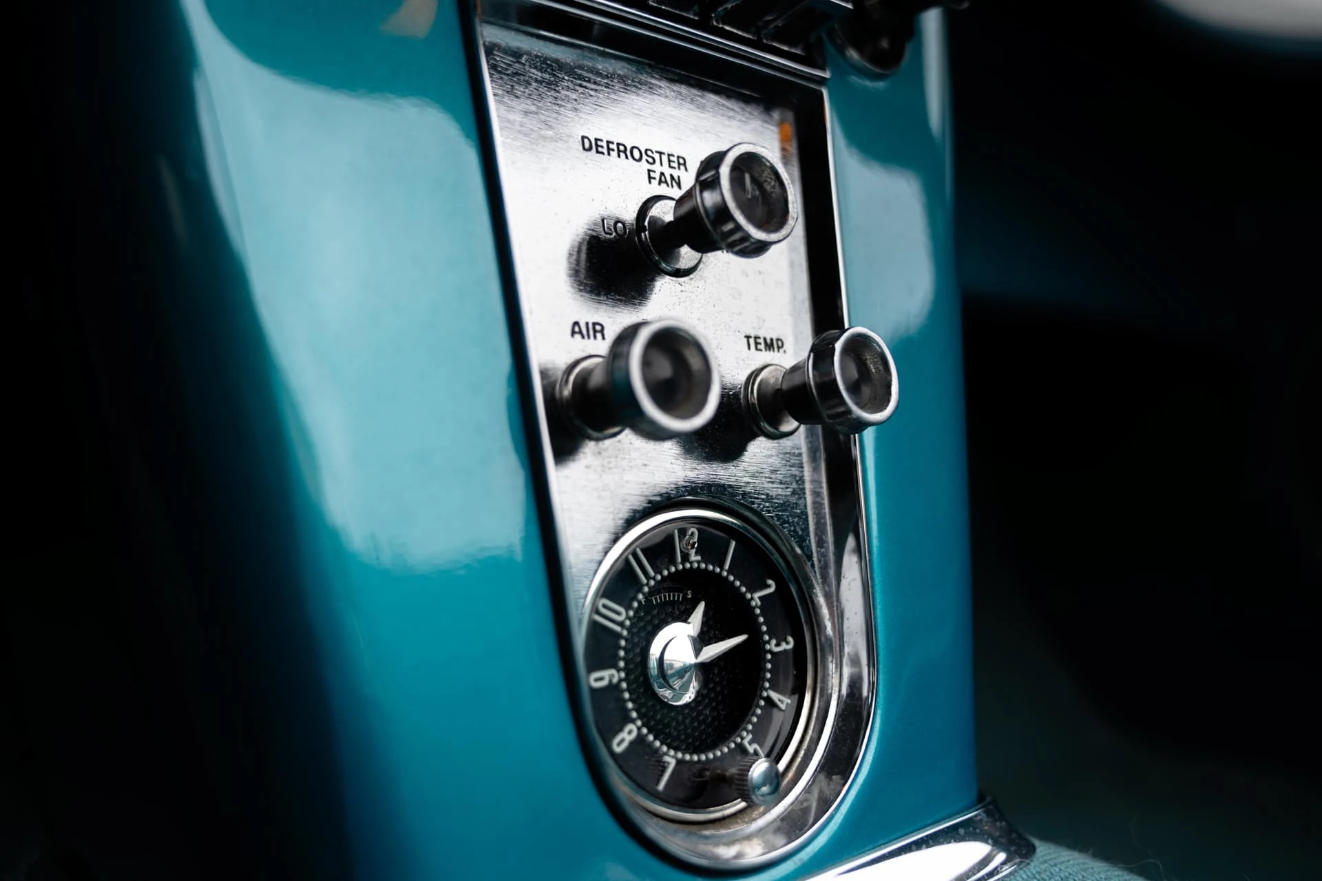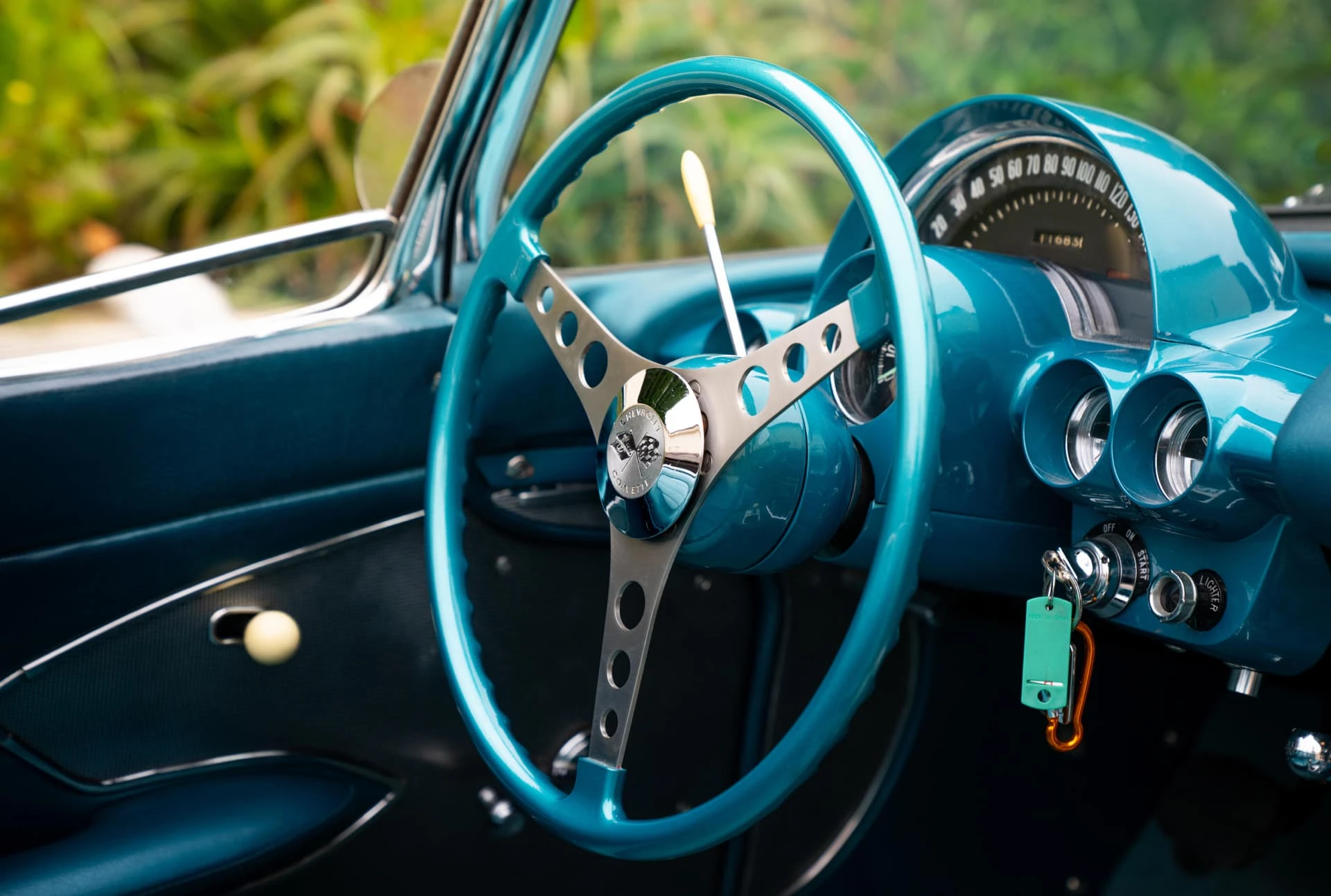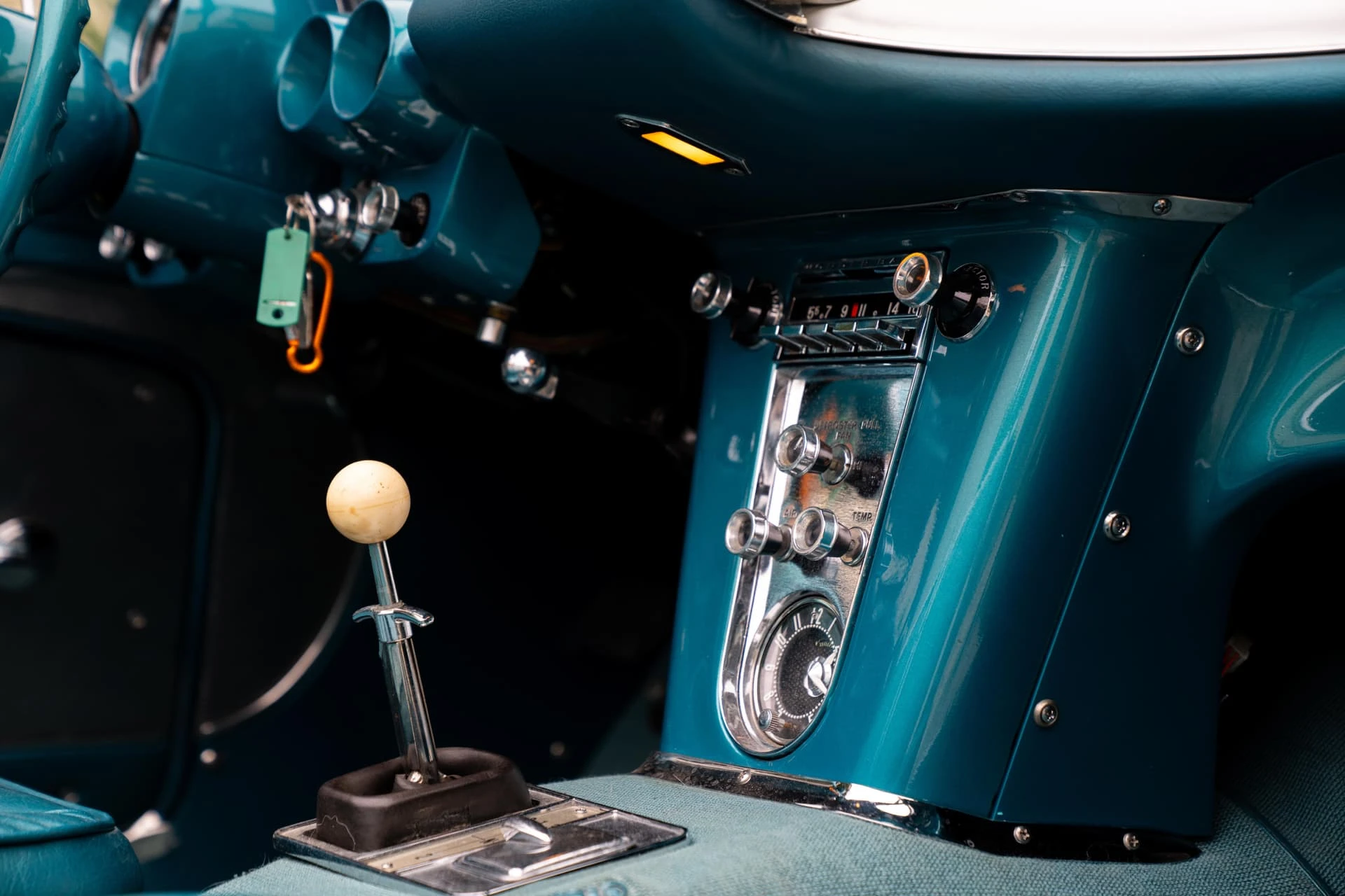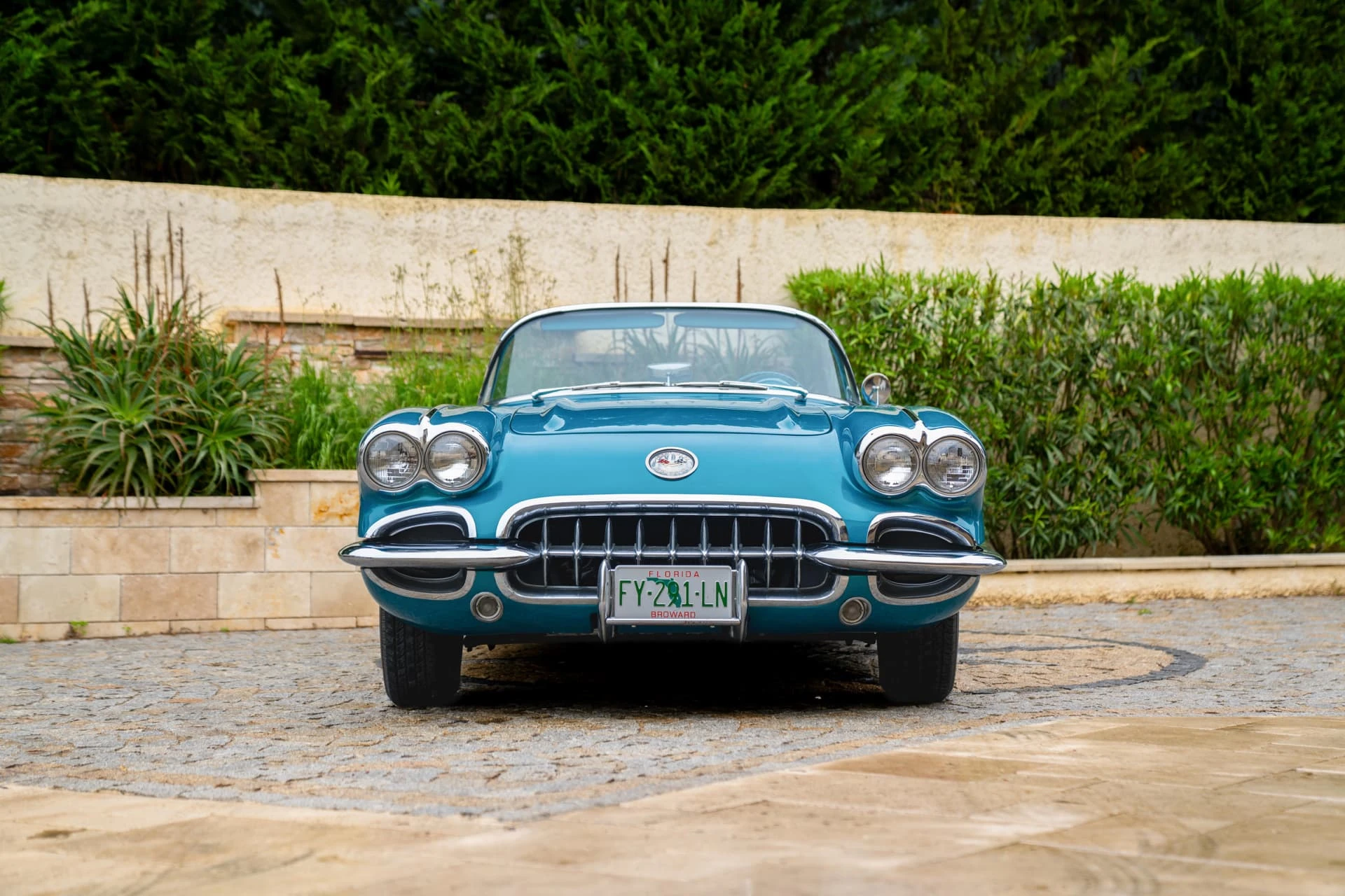Cet exemplaire (Châssis J59S109549) est équipée de la séduisante combinaison du V8 283 ci (4,6 litres) et de la boîte manuelle à quatre rapports, appartenait au précédent propriétaire depuis 2014. Le rapport d’expertise de 2021 qui l’accompagne établit que la voiture a subi une restauration complète en respectant ses spécifications d’origine et la décrit comme étant dans un état mécanique parfait, comme neuve et en parfait état de marche. La carrosserie en fibre de verre est en parfait état également, après une restauration de grande qualité, ainsi que le châssis, sans signe de corrosion. Équipée d’une radio conforme à l’époque, l’intérieur d’origine est joliment patiné et la capote est en bon état de marche de même que tous les équipements électriques. L’actuel propriétaire a par ailleurs fait équiper la voiture d’une direction assistée.