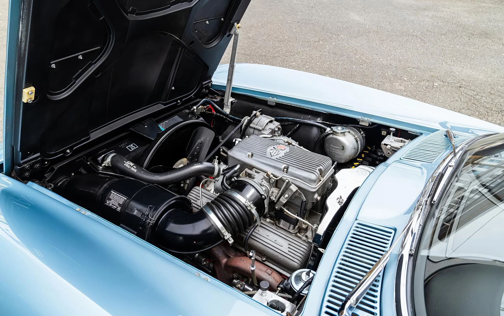 Nous présentons ici le châssis 111297, un exemplaire remarquablement correct qui combine deux caractéristiques très recherchées – une lunette arrière divisée et le moteur 327 L84 à injection. Selon les documents MSO originaux, cette Corvette a été livrée à Benz Chevrolet à Lake Worth, en Floride, le 18 avril 1963, et vendue à William J. Blanchette. Elle a été vendue peu après à un propriétaire qui a entretenu méticuleusement la Corvette jusqu’en 1990. Lors de la vente, le propriétaire suivant a commandé une restauration très détaillée, en s’efforçant de conserver la voiture telle qu’elle était à l’origine. Dans la mesure du possible, les composants d’origine ont été remis en état et réinstallés afin de préserver le plus haut niveau d’authenticité.