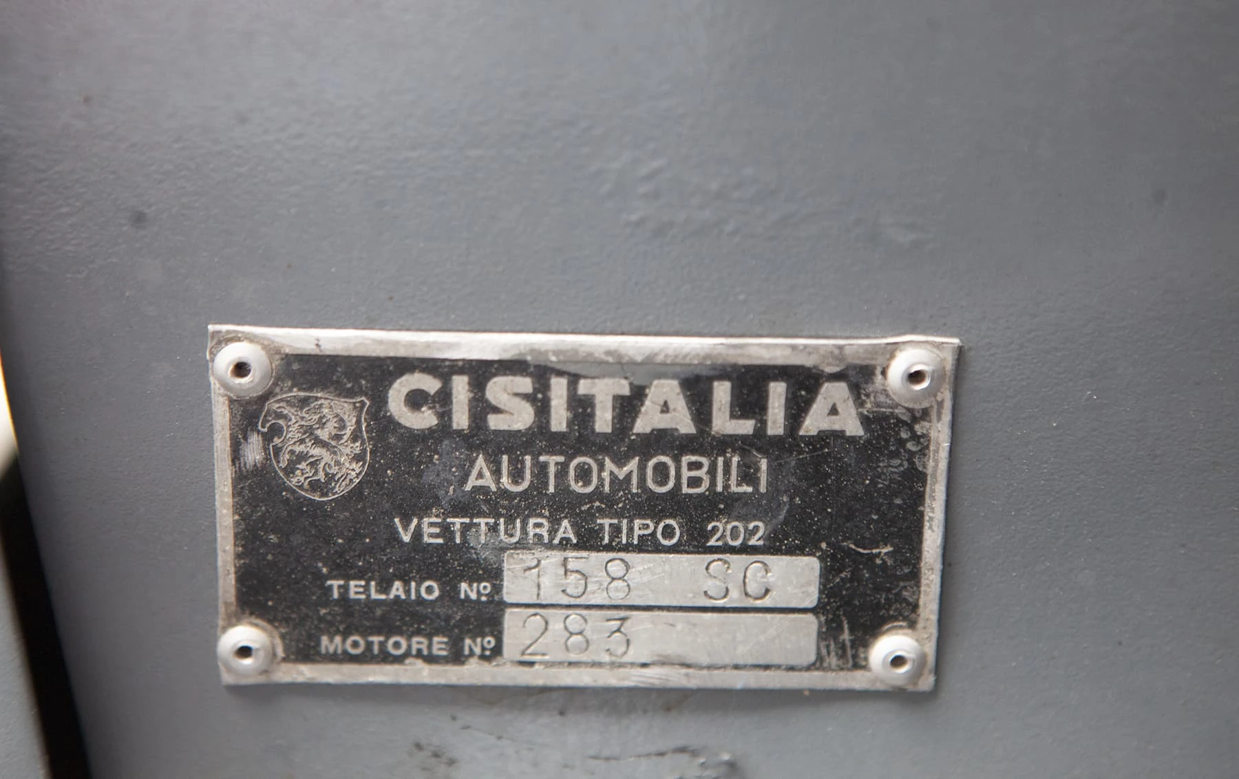 Selon le livre de Nino Balestra et Cesare De Agostini qui fait autorité sur la marque, cet exemplaire, châssis 158 SC, est l’une des trois voitures spéciales commandées par les agents italiens de la Cisitalia, Lombardi & Koelliker. Ces trois voitures ont été carrossées dans le même style de base que le modèle original de Pinin Farina, mais avec une carrosserie de Vignale et livrées sans pare-chocs, parmi d’autres caractéristiques uniques. Comme c’était souvent le cas pour les voitures de sport à l’époque, la 158 SC a été échangée entre de nombreux propriétaires italiens au début. Elle a finalement été acquise par Edoardo Fittipaldi de Rome en 1970, qui l’a conservée jusqu’en 1995, date à laquelle elle a été vendue au pilote de ligne William Dick de Watford, au Royaume-Uni.