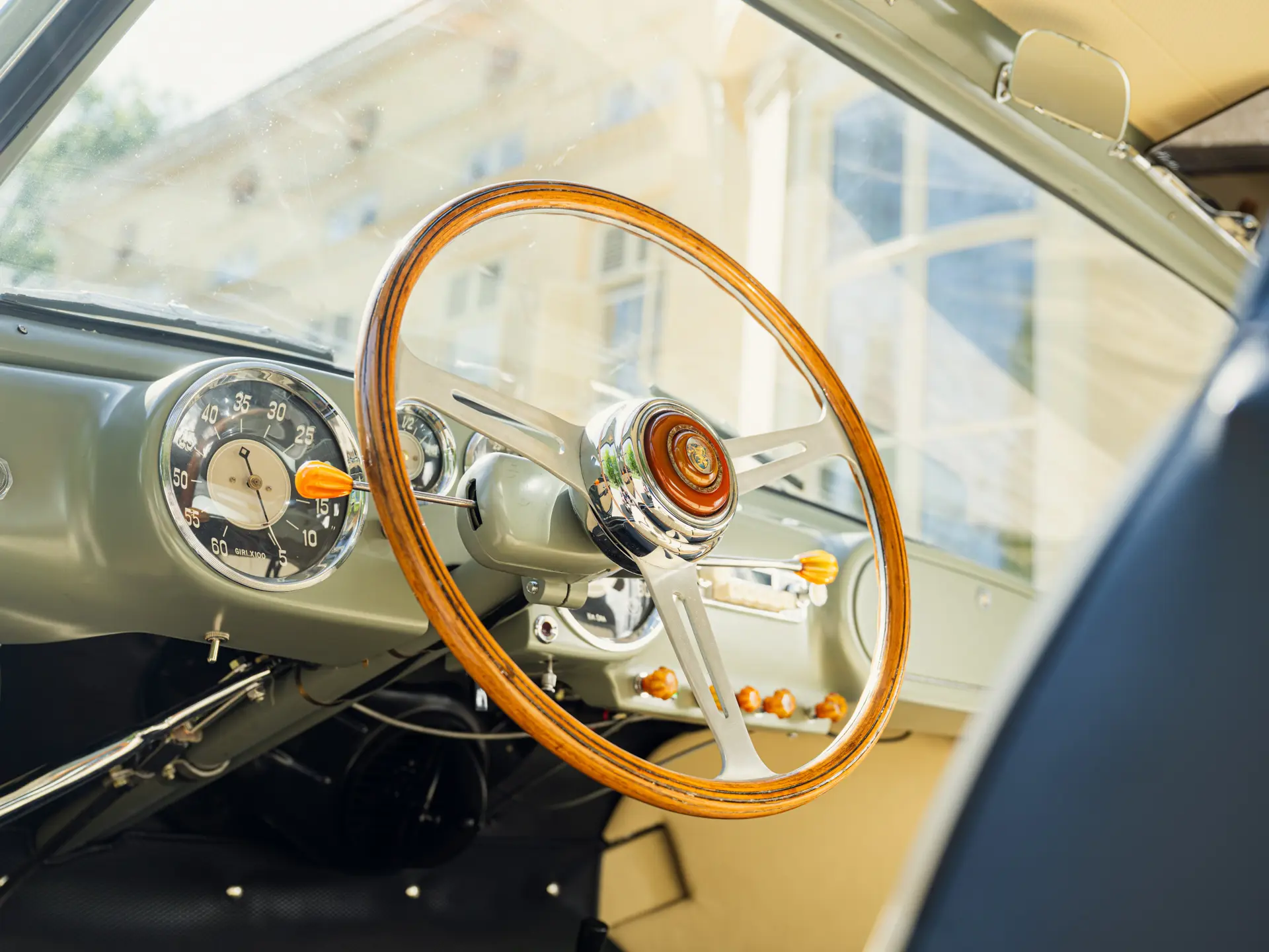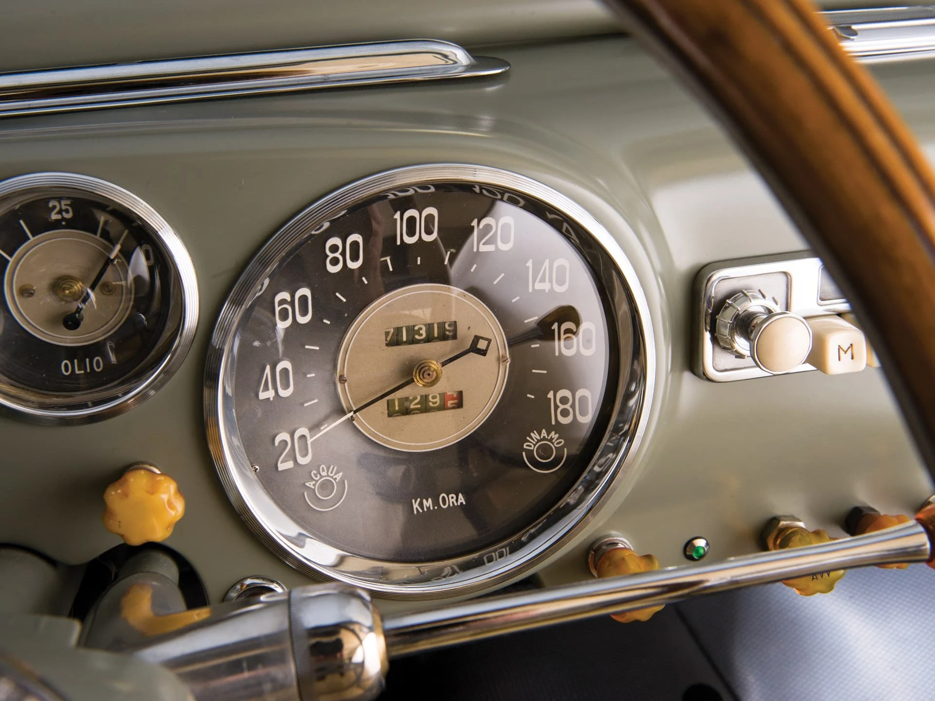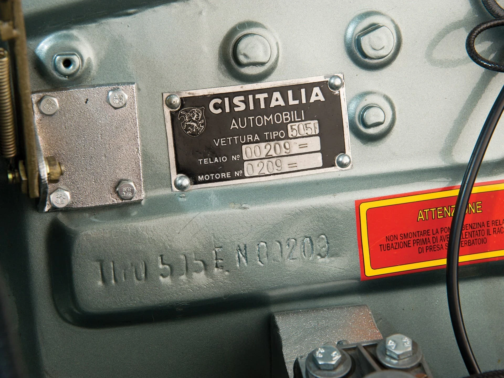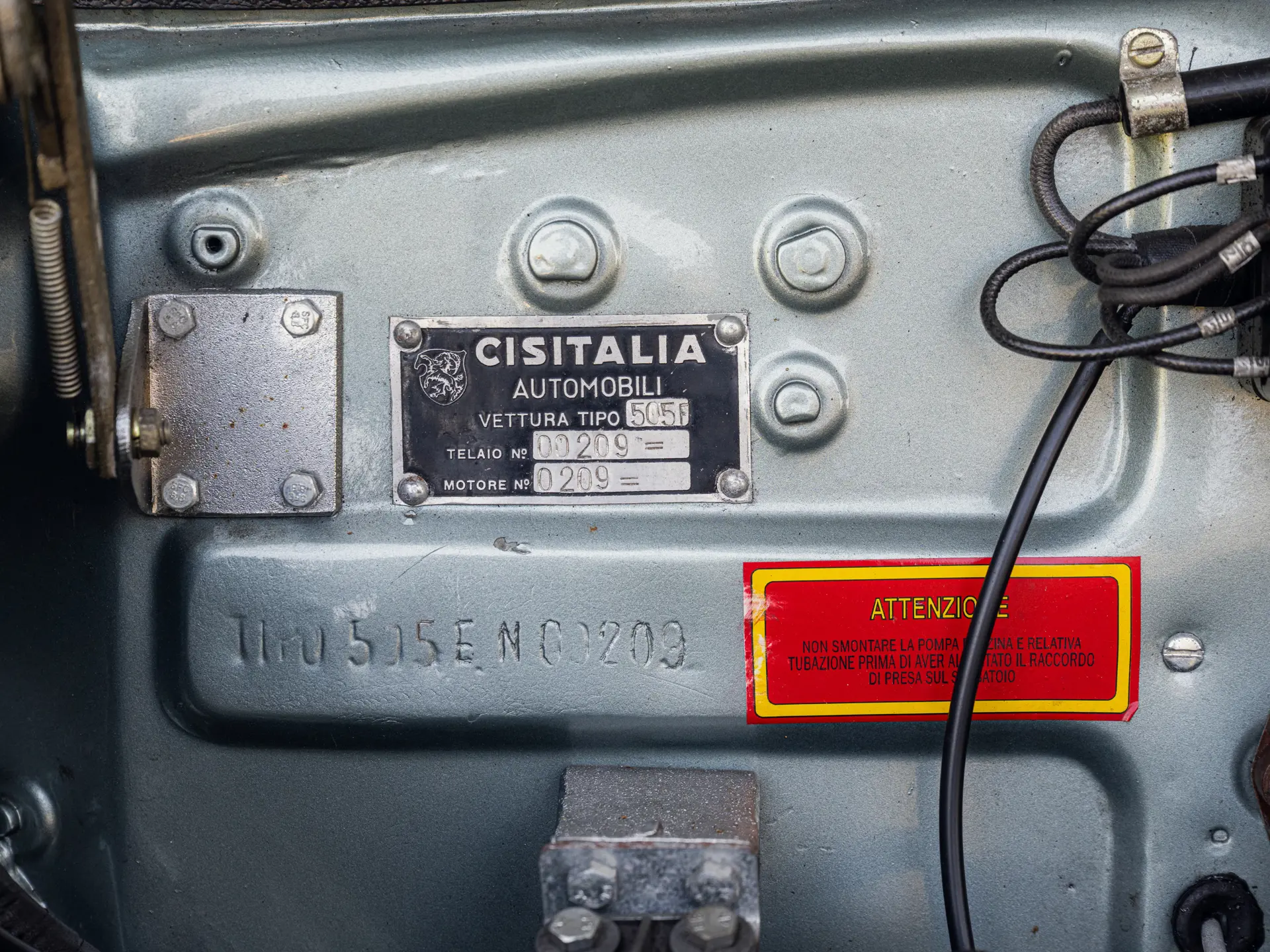 La première 505 DF a été présentée au Salon de Genève en 1953. Les numéros de châssis indiquent qu’il n’en a pas été construit plus de dix, dont deux seulement ont survécu. Le châssis numéro 0209 est le seul restauré et opérationnel. Cette Cisitalia 505 DF, portant l’avant-dernier numéro de châssis, a été livrée en juillet 1953 au célèbre pilote de course Fritz Stolz, de Peseux, en Suisse, après le Salone Torino.