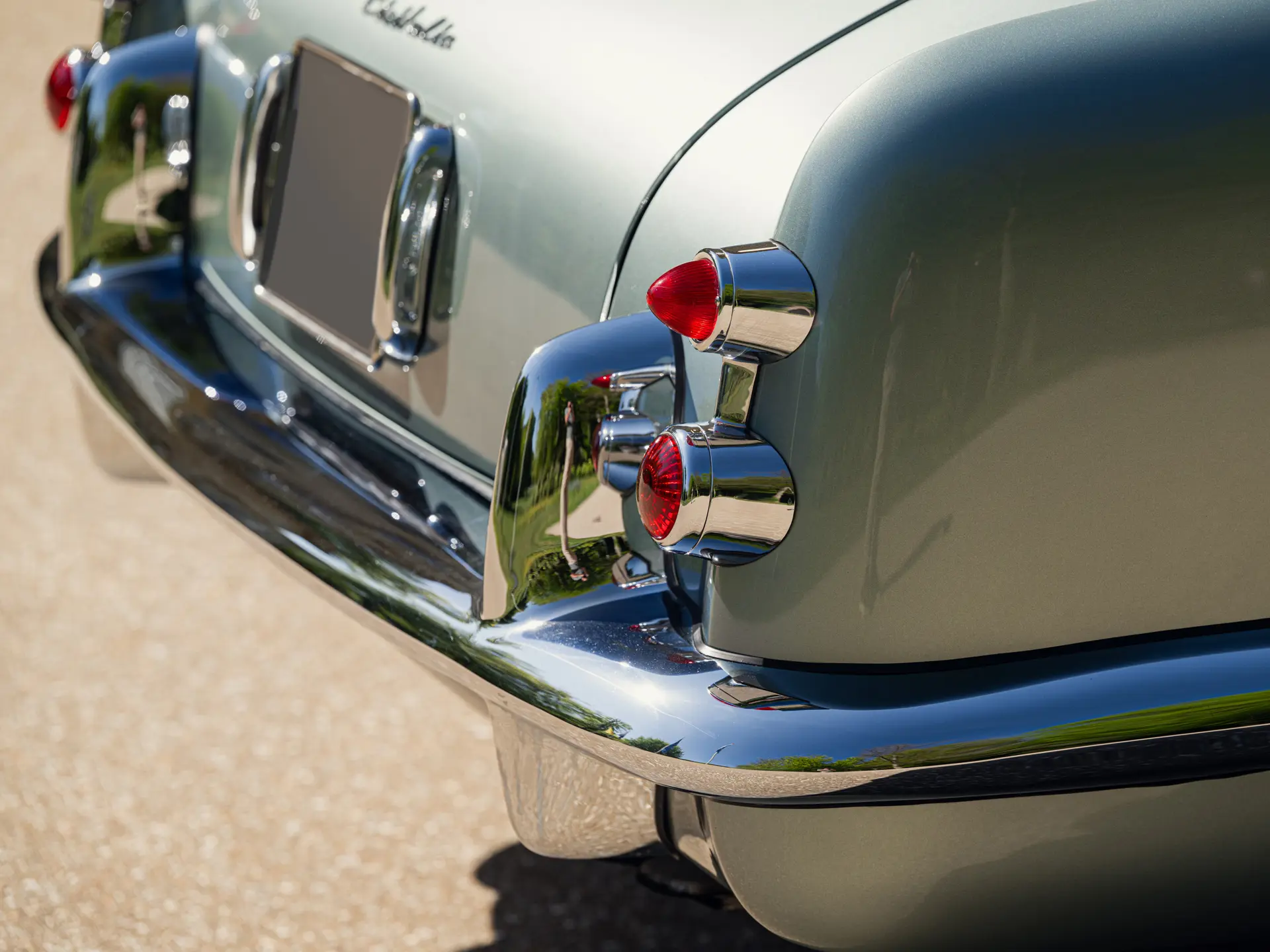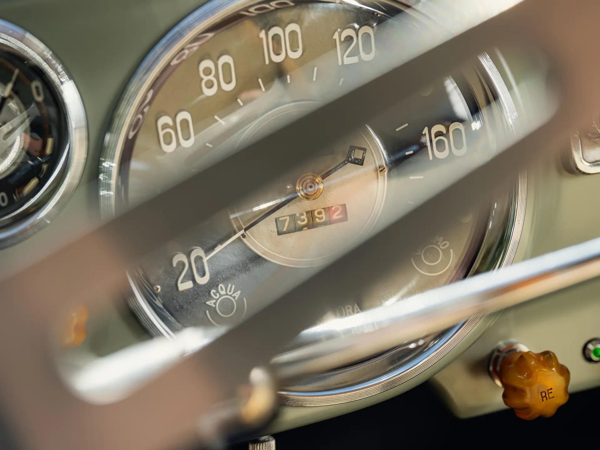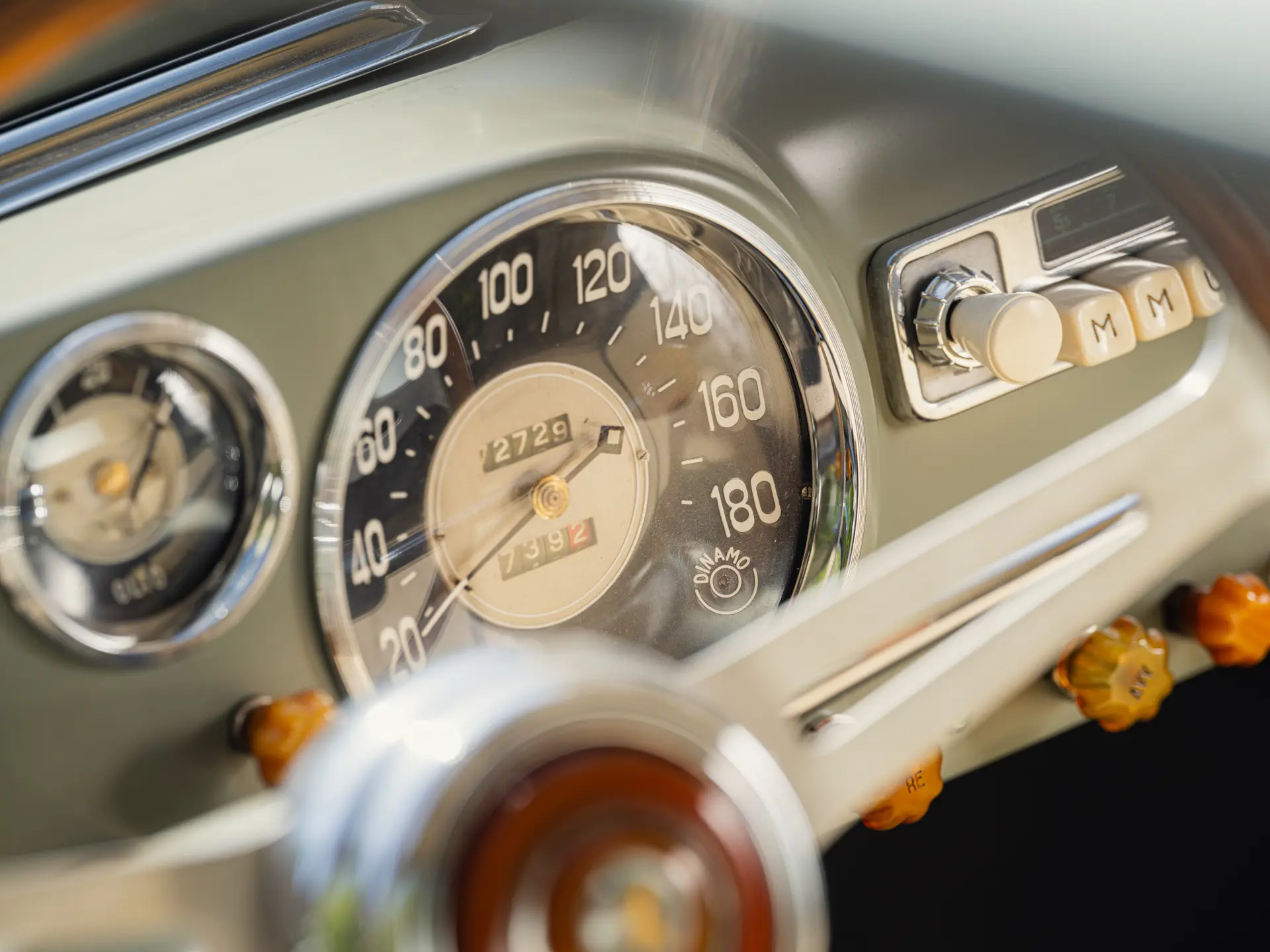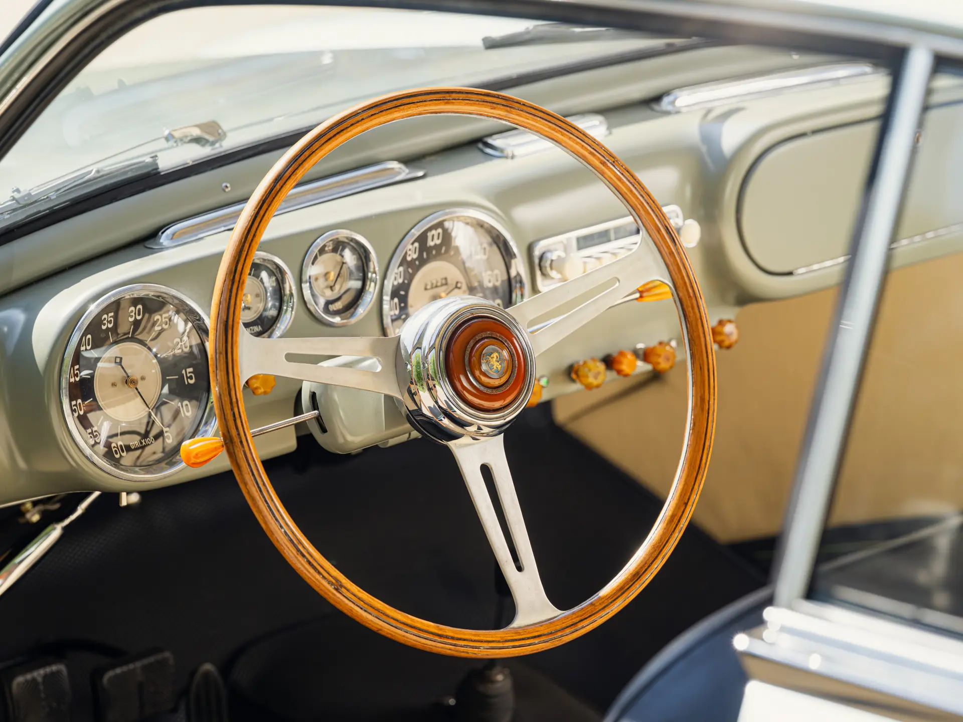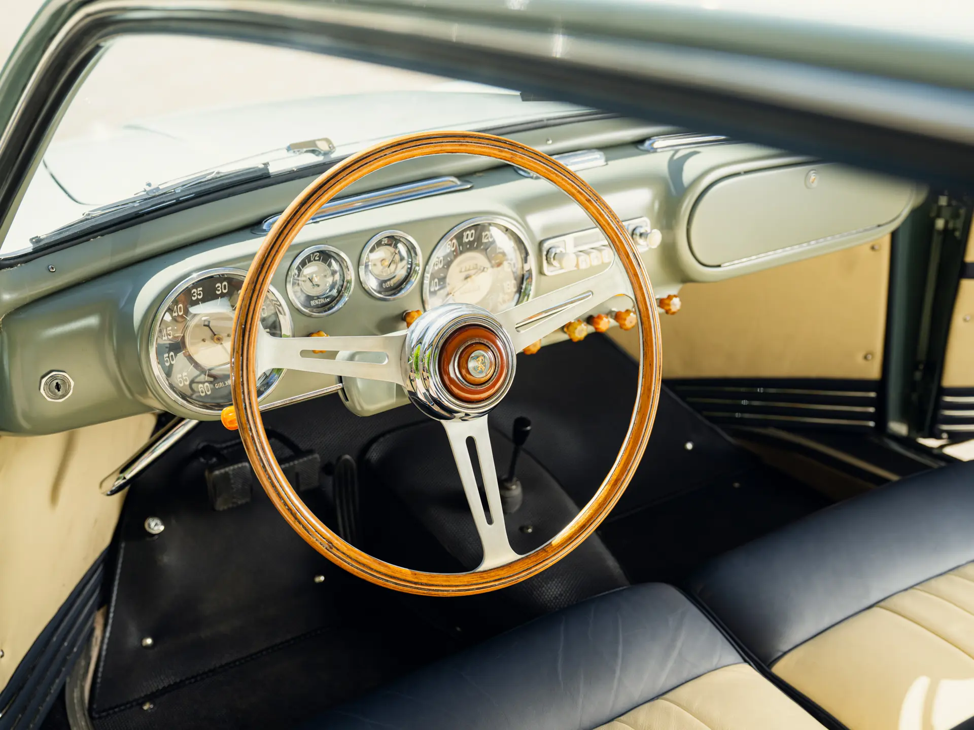 La première 505 DF a été présentée au Salon de Genève en 1953. Les numéros de châssis indiquent qu’il n’en a pas été construit plus de dix, dont deux seulement ont survécu. Le châssis numéro 0209 est le seul restauré et opérationnel. Cette Cisitalia 505 DF, portant l’avant-dernier numéro de châssis, a été livrée en juillet 1953 au célèbre pilote de course Fritz Stolz, de Peseux, en Suisse, après le Salone Torino.