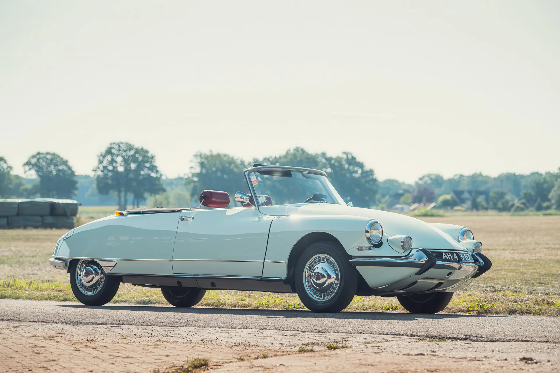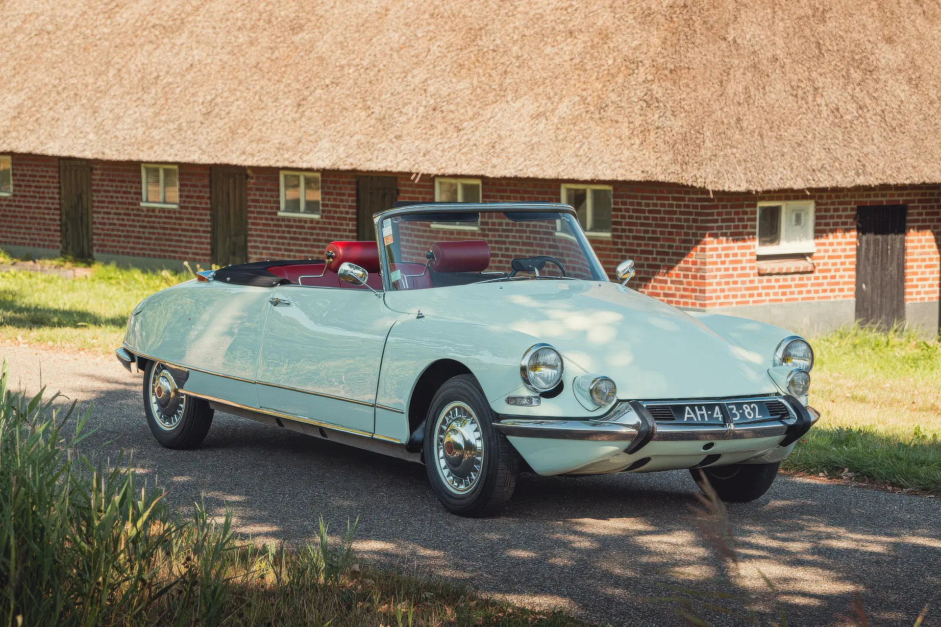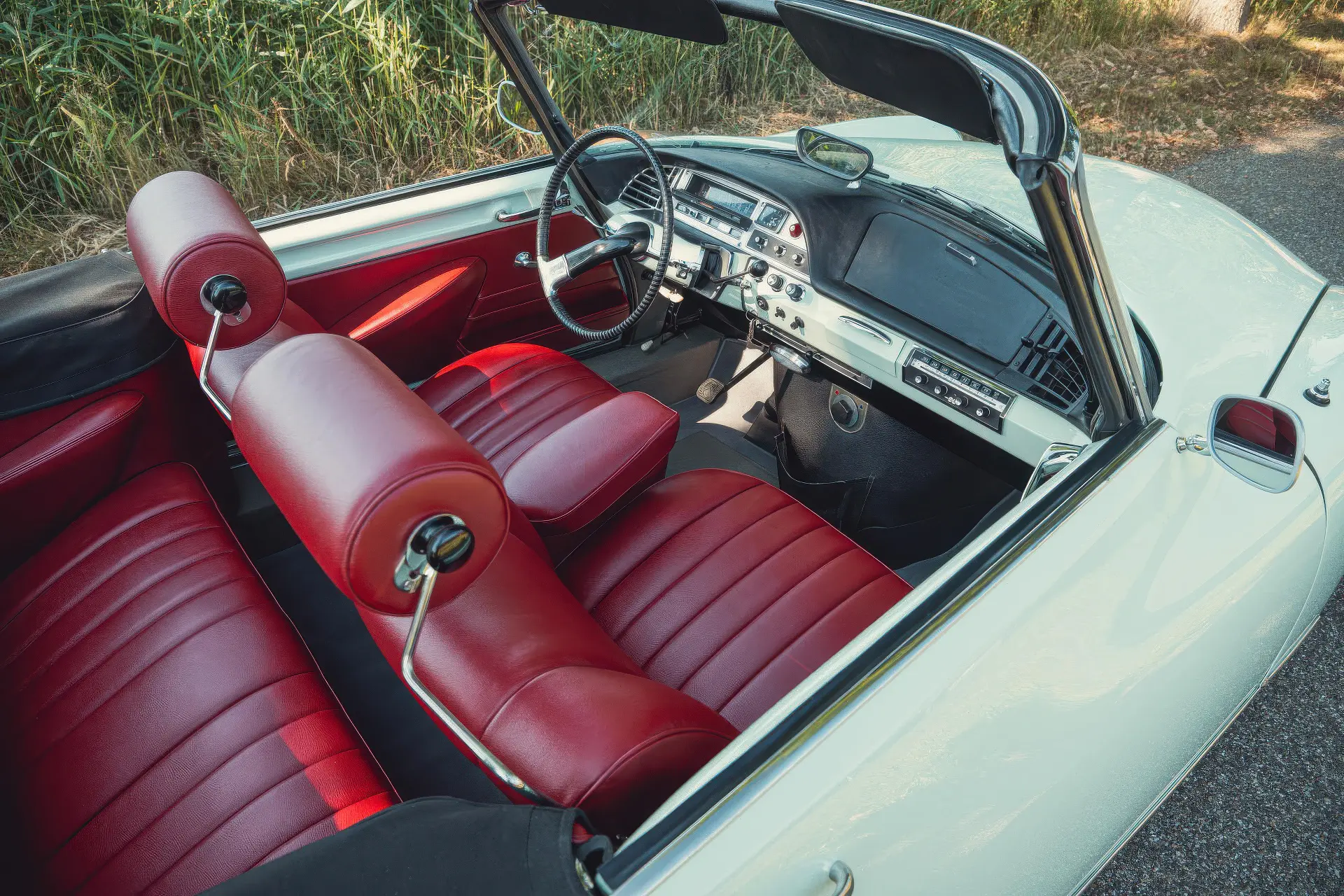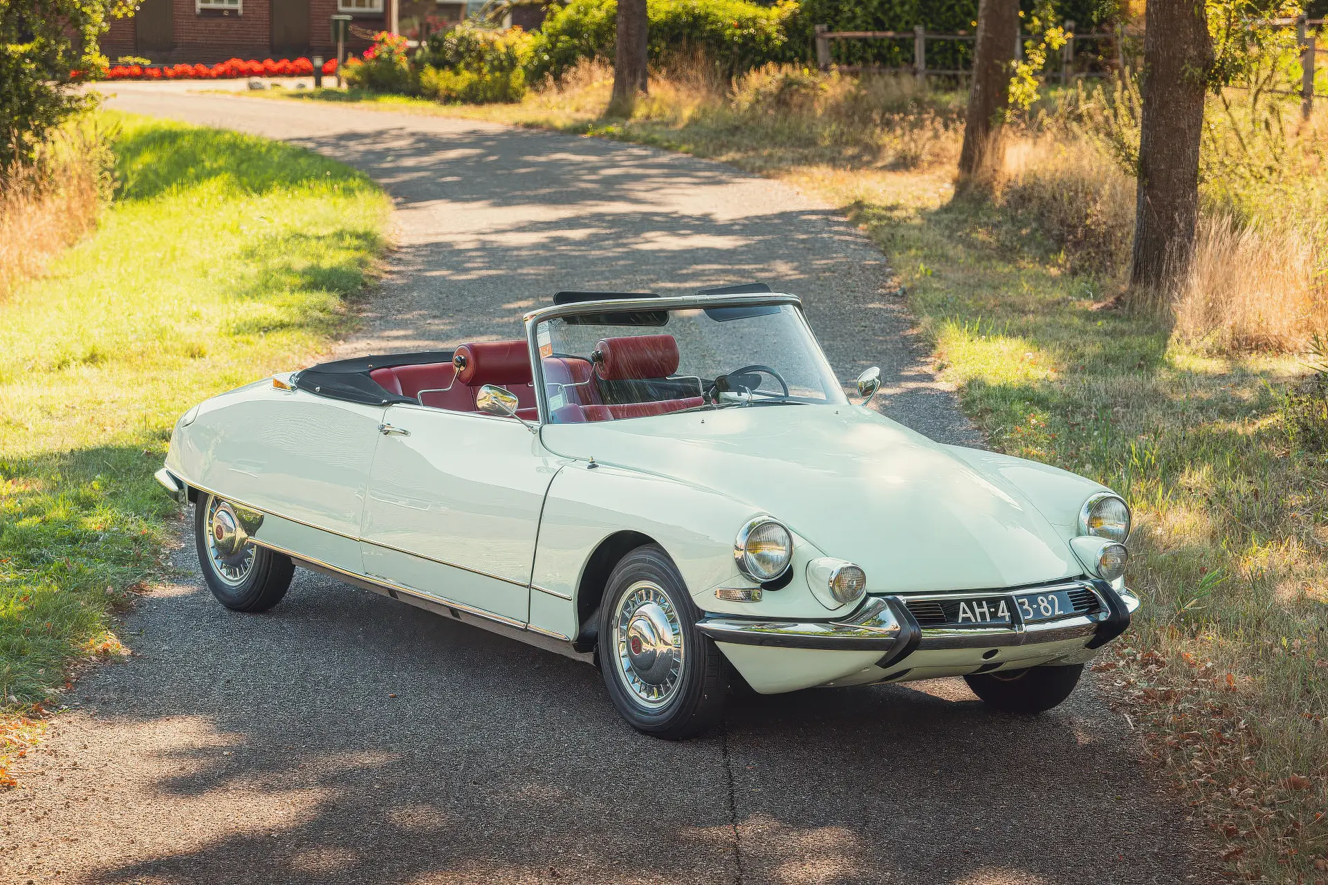 Cette DS19M est présentée dans une ravissante robe Blanc Carrare avec un intérieur en cuir Bordeaux, exactement comme elle a été livrée neuve en France cette année-là. Selon l’archiviste du club ID/DS Citroën néerlandais (et ancien propriétaire de la voiture), il s’agit du premier « Cabriolet Usine » construit pour l’année 1964, arrivé fin 1963 dans l’atelier Chapron. De plus, il s’agit de l’une des 122 Citroën DS19M Décapotable construites. La #8617 a quitté Chapron en février 1964 pour être livrée à Citroën en vue de sa commercialisation. Parmi les accessoires spéciaux notables (qui ne sont pas d’origine), citons des phares antibrouillard supplémentaires, une radio FM Continental Edison et des enjoliveurs diamant Robergel qui auraient été installés par le premier propriétaire. Ce dernier serait l’épouse d’un concessionnaire Berliet de la région de Dijon.
