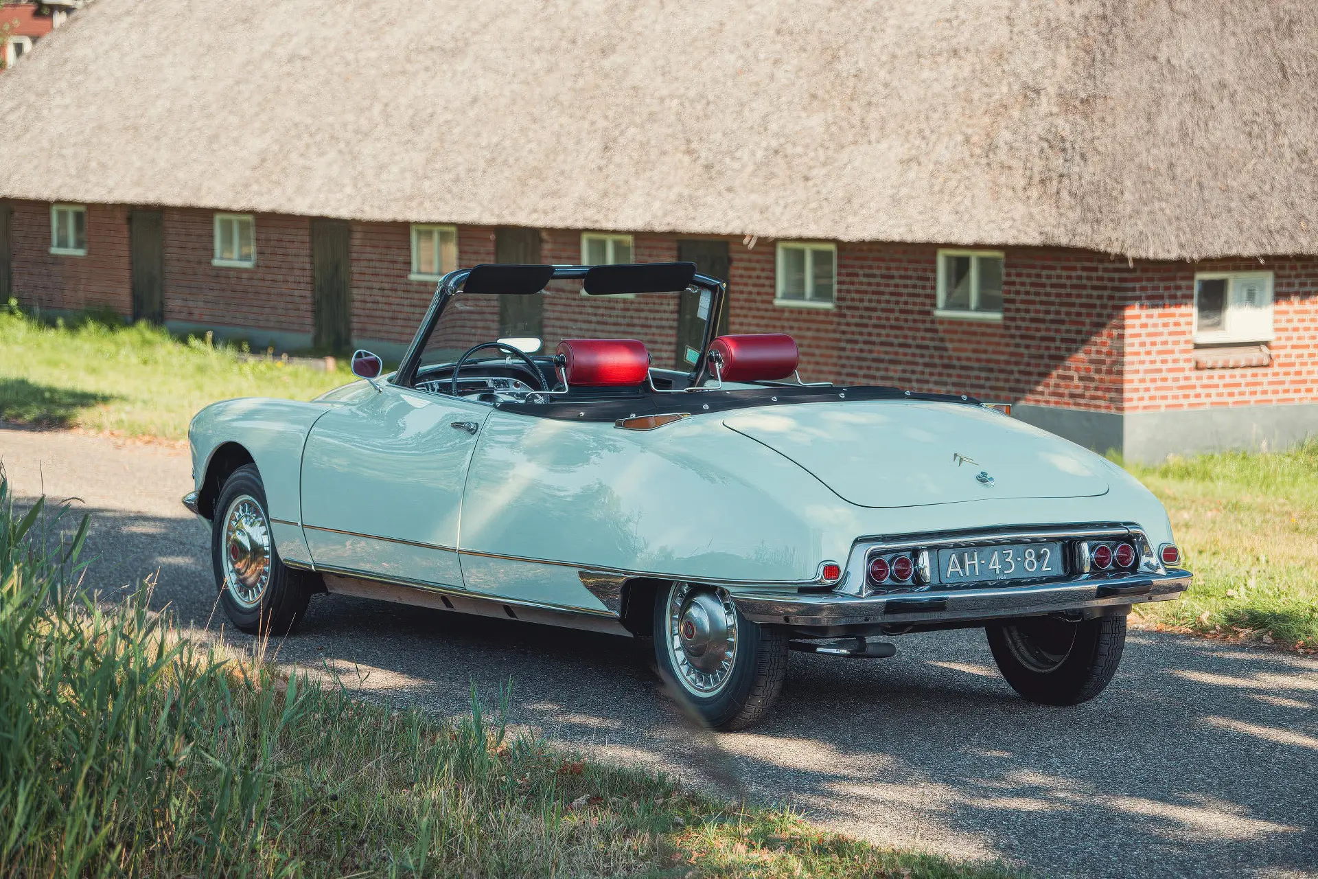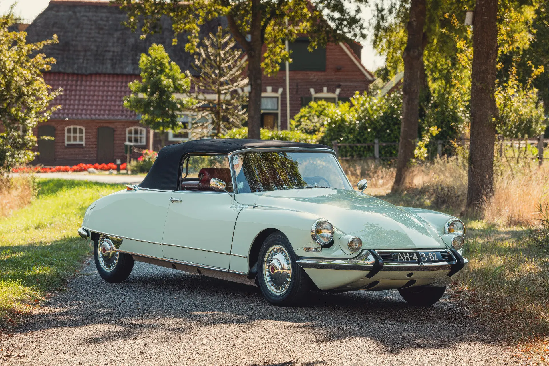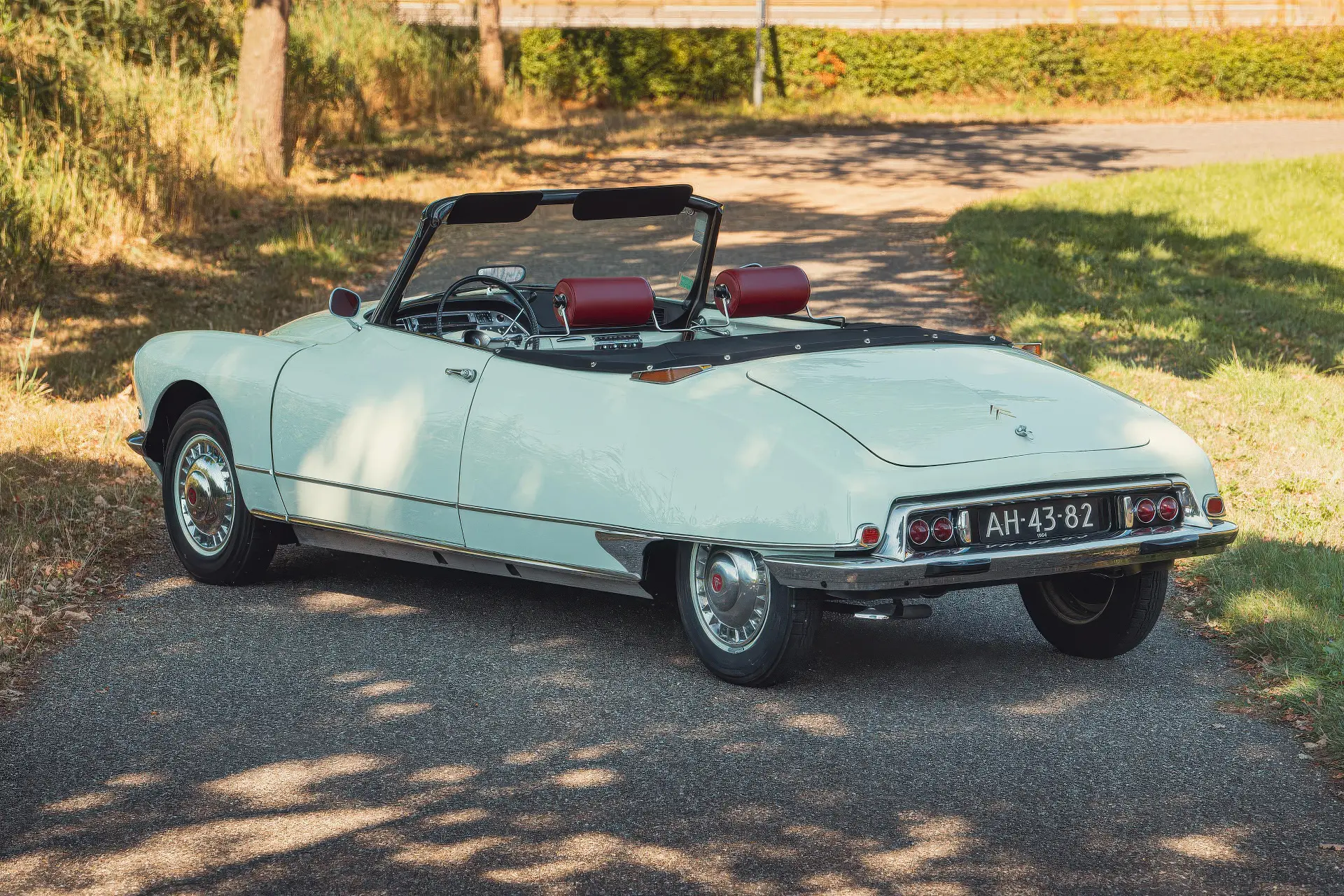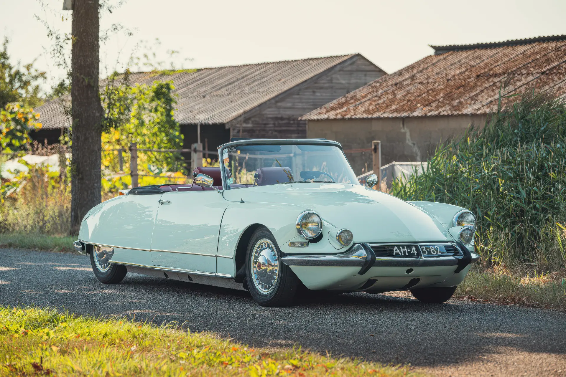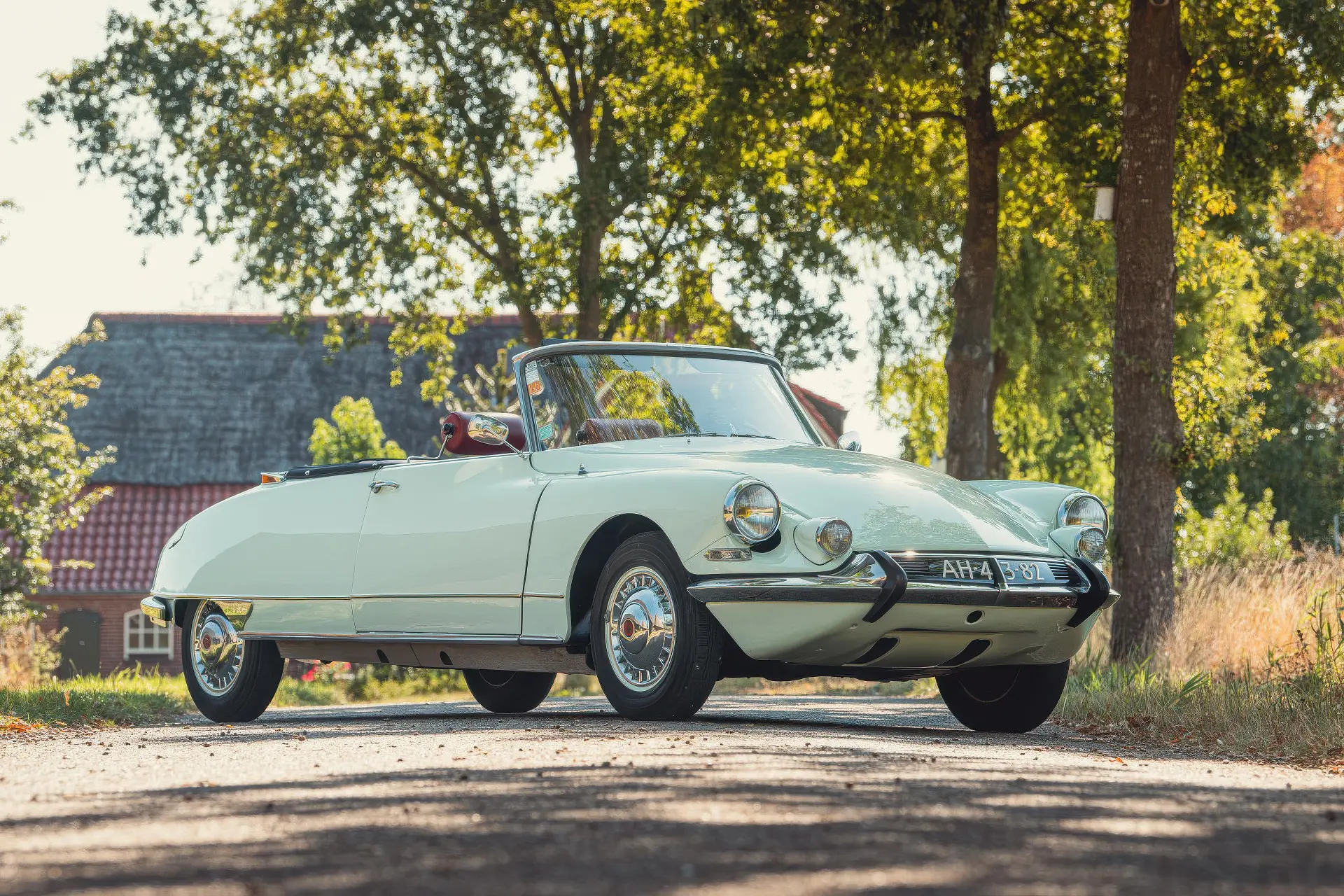 Cette DS19M est présentée dans une ravissante robe Blanc Carrare avec un intérieur en cuir Bordeaux, exactement comme elle a été livrée neuve en France cette année-là. Selon l’archiviste du club ID/DS Citroën néerlandais (et ancien propriétaire de la voiture), il s’agit du premier « Cabriolet Usine » construit pour l’année 1964, arrivé fin 1963 dans l’atelier Chapron. De plus, il s’agit de l’une des 122 Citroën DS19M Décapotable construites. La #8617 a quitté Chapron en février 1964 pour être livrée à Citroën en vue de sa commercialisation. Parmi les accessoires spéciaux notables (qui ne sont pas d’origine), citons des phares antibrouillard supplémentaires, une radio FM Continental Edison et des enjoliveurs diamant Robergel qui auraient été installés par le premier propriétaire. Ce dernier serait l’épouse d’un concessionnaire Berliet de la région de Dijon.