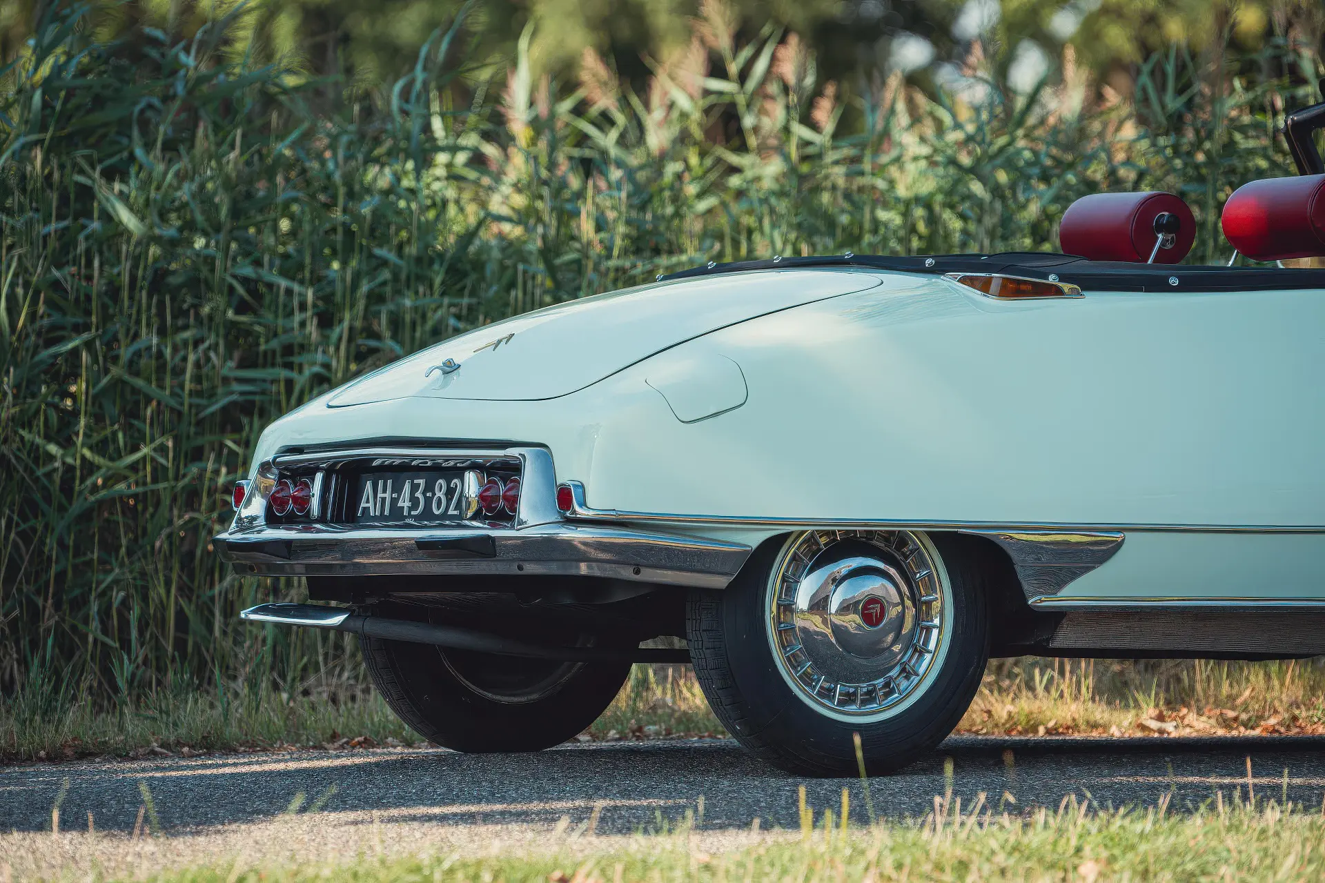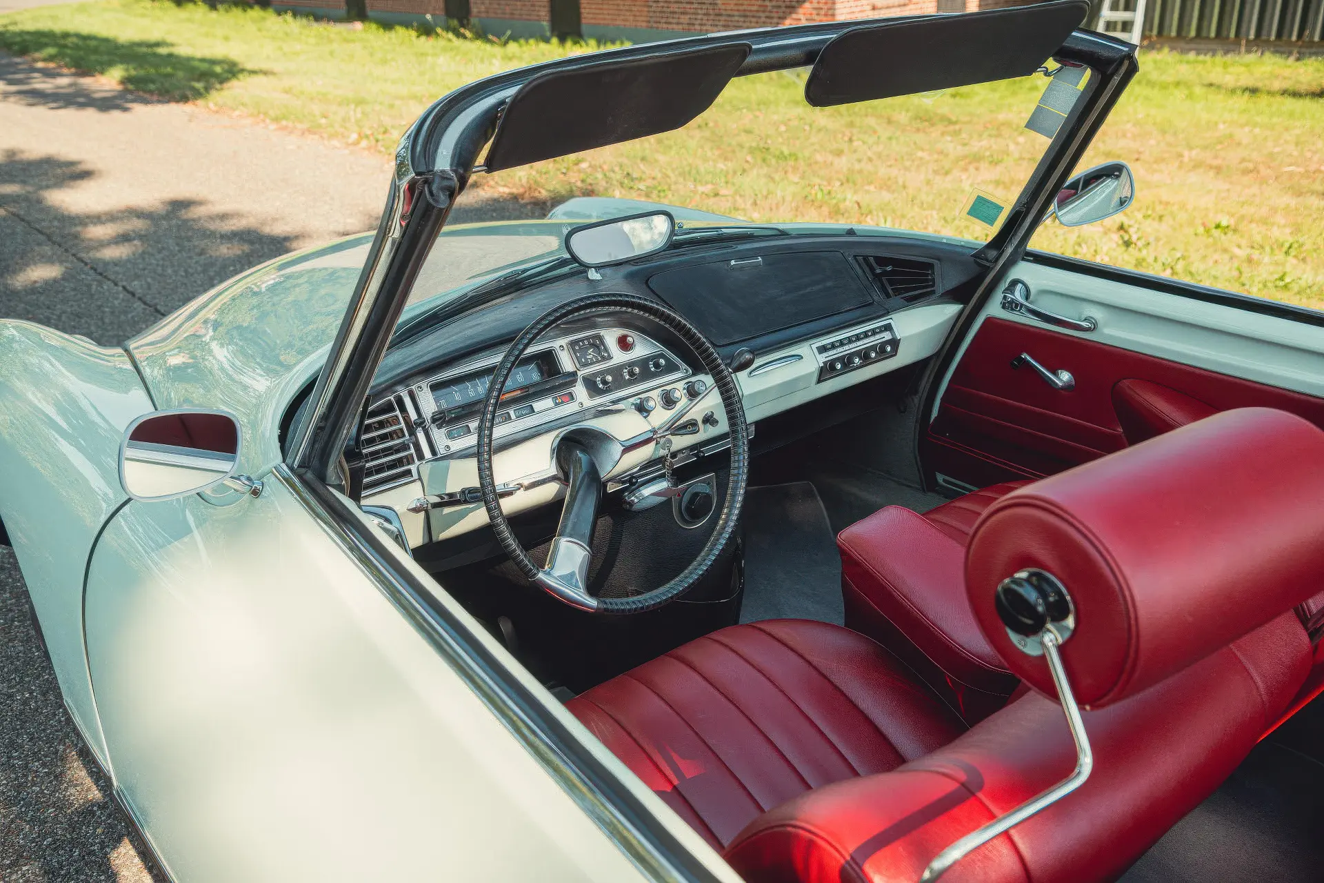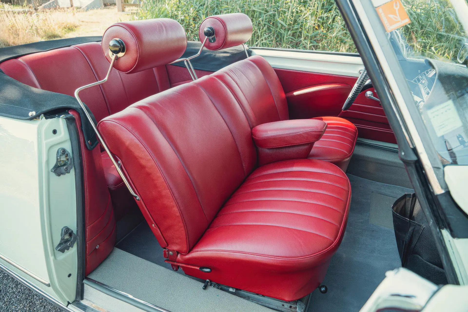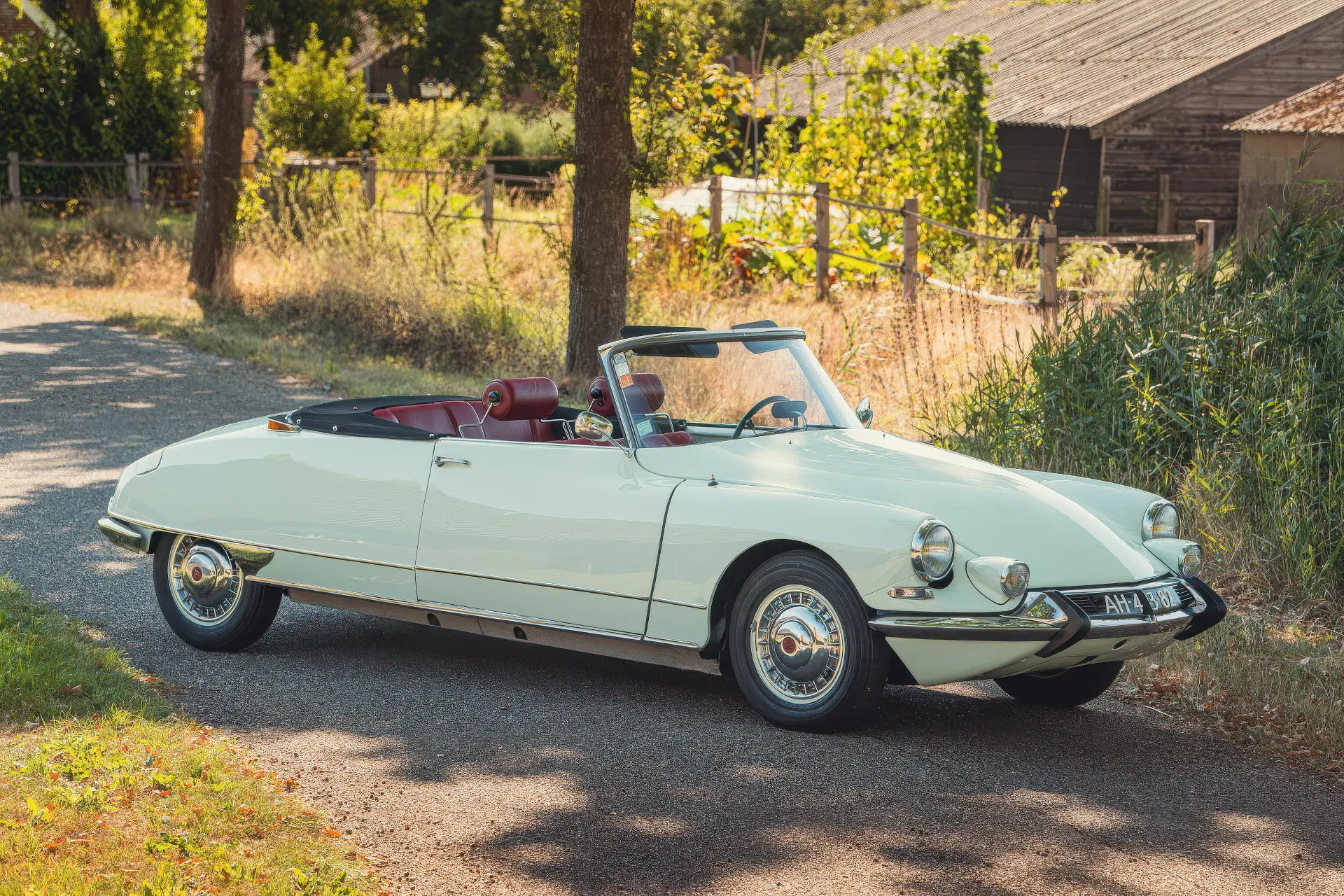 Cette DS19M est présentée dans une ravissante robe Blanc Carrare avec un intérieur en cuir Bordeaux, exactement comme elle a été livrée neuve en France cette année-là. Selon l’archiviste du club ID/DS Citroën néerlandais (et ancien propriétaire de la voiture), il s’agit du premier « Cabriolet Usine » construit pour l’année 1964, arrivé fin 1963 dans l’atelier Chapron. De plus, il s’agit de l’une des 122 Citroën DS19M Décapotable construites. La #8617 a quitté Chapron en février 1964 pour être livrée à Citroën en vue de sa commercialisation. Parmi les accessoires spéciaux notables (qui ne sont pas d’origine), citons des phares antibrouillard supplémentaires, une radio FM Continental Edison et des enjoliveurs diamant Robergel qui auraient été installés par le premier propriétaire. Ce dernier serait l’épouse d’un concessionnaire Berliet de la région de Dijon.