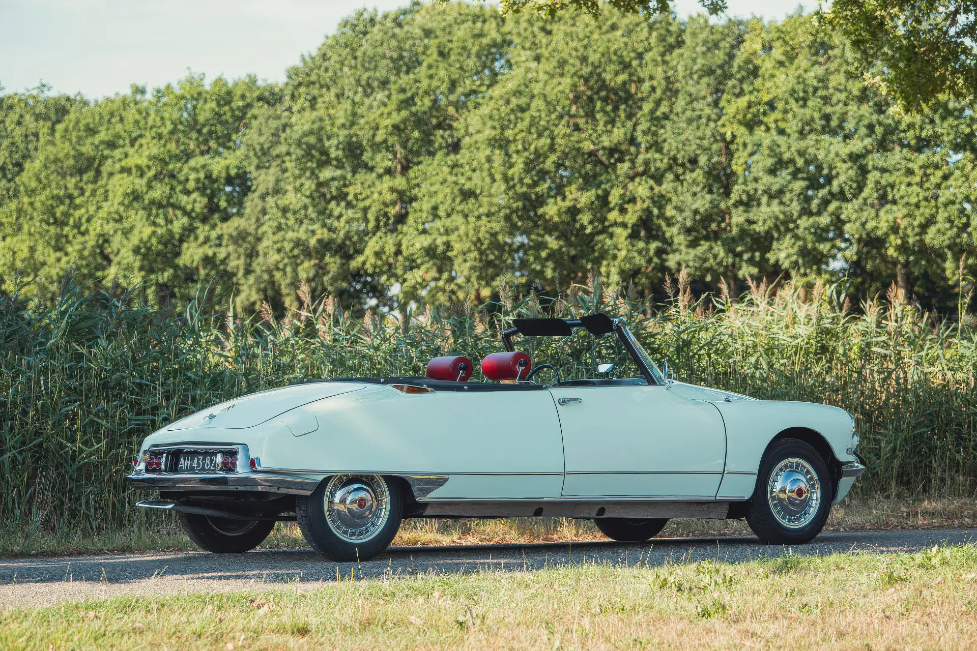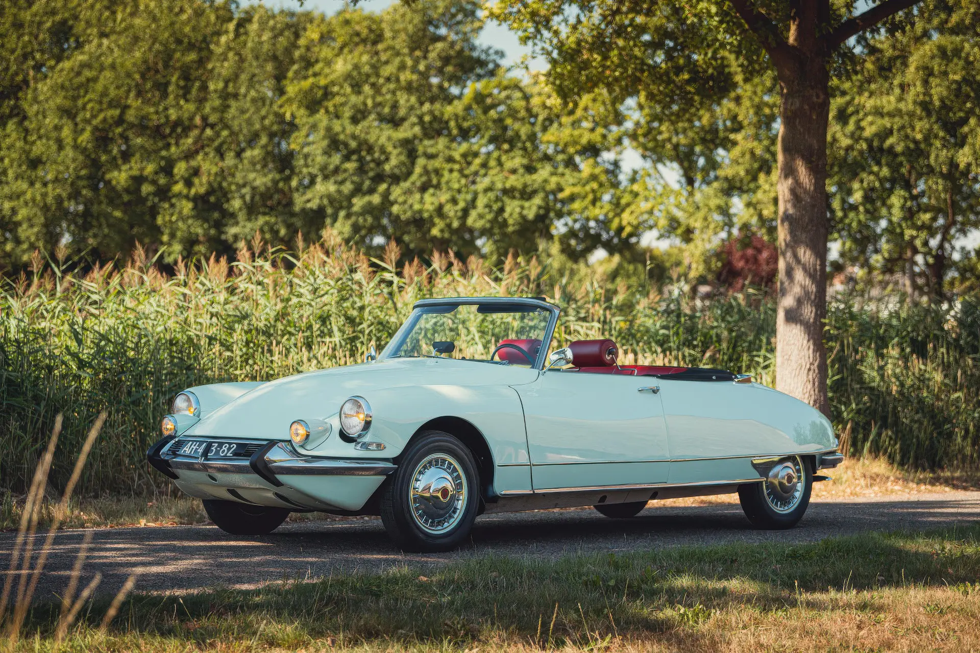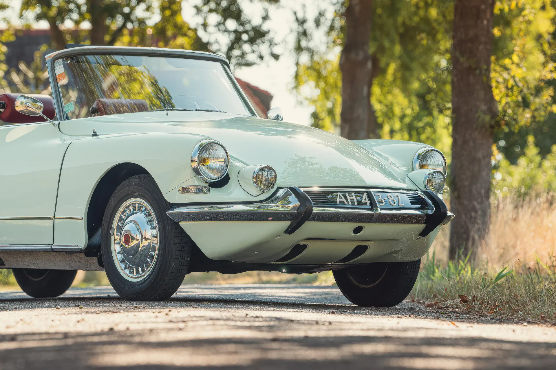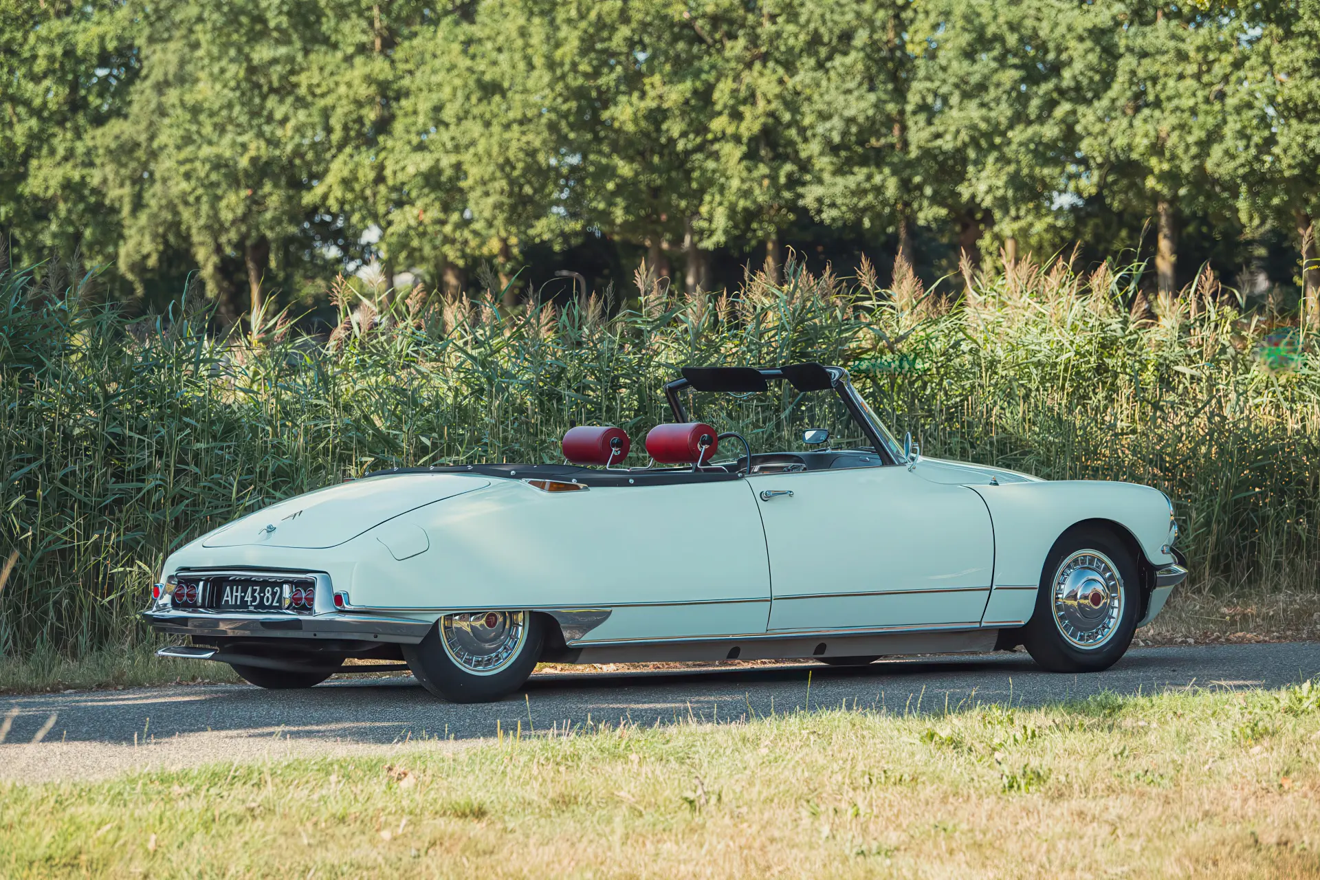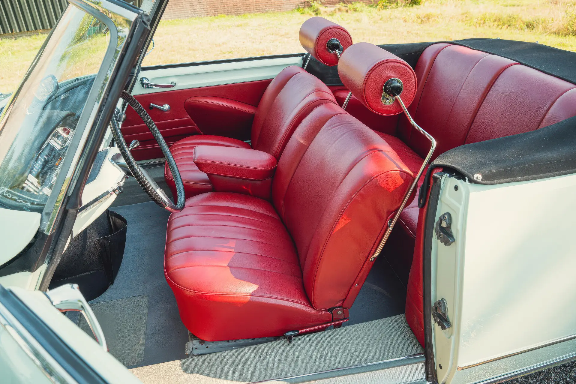 Cette DS19M est présentée dans une ravissante robe Blanc Carrare avec un intérieur en cuir Bordeaux, exactement comme elle a été livrée neuve en France cette année-là. Selon l’archiviste du club ID/DS Citroën néerlandais (et ancien propriétaire de la voiture), il s’agit du premier « Cabriolet Usine » construit pour l’année 1964, arrivé fin 1963 dans l’atelier Chapron. De plus, il s’agit de l’une des 122 Citroën DS19M Décapotable construites. La #8617 a quitté Chapron en février 1964 pour être livrée à Citroën en vue de sa commercialisation. Parmi les accessoires spéciaux notables (qui ne sont pas d’origine), citons des phares antibrouillard supplémentaires, une radio FM Continental Edison et des enjoliveurs diamant Robergel qui auraient été installés par le premier propriétaire. Ce dernier serait l’épouse d’un concessionnaire Berliet de la région de Dijon.