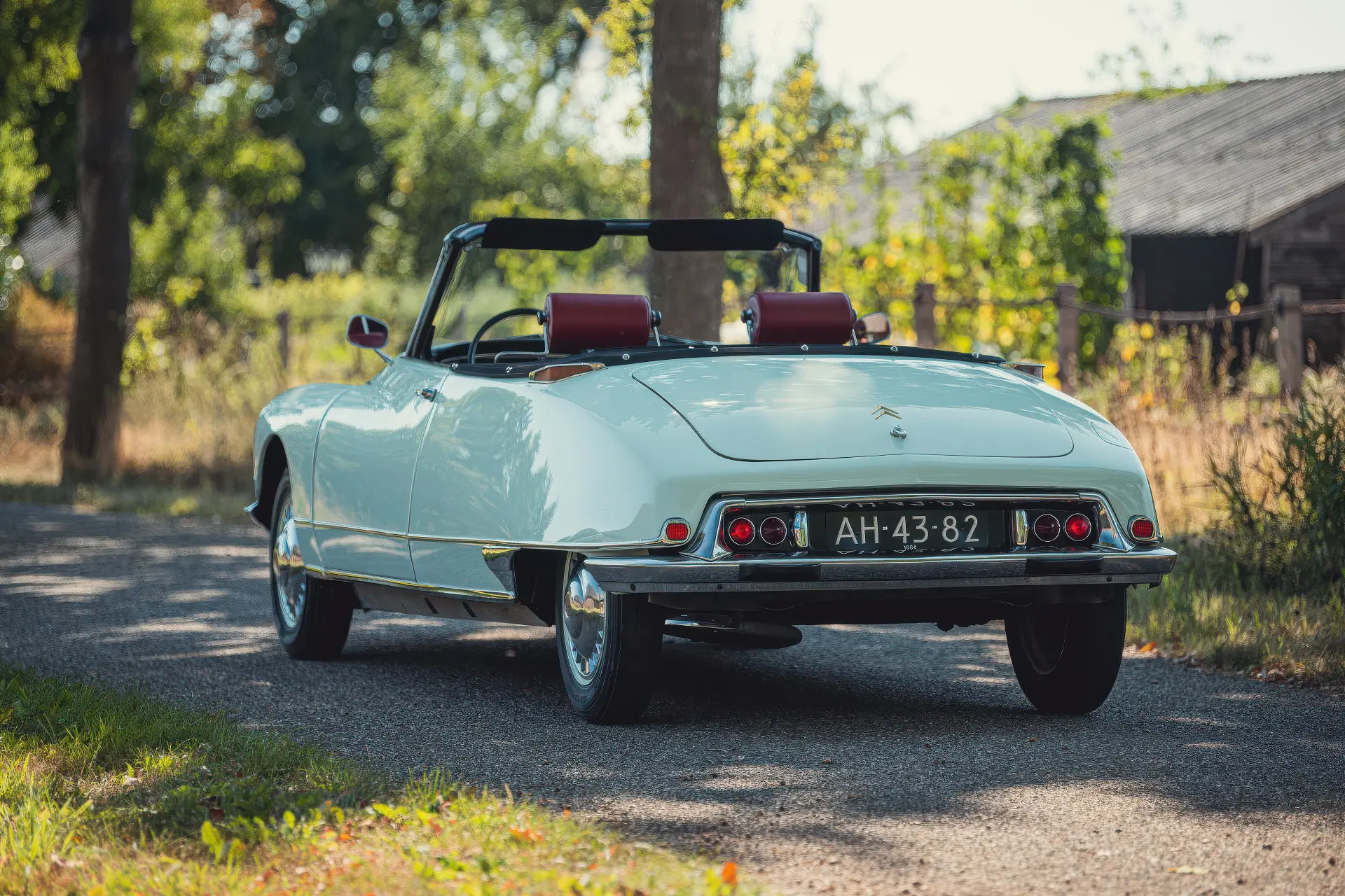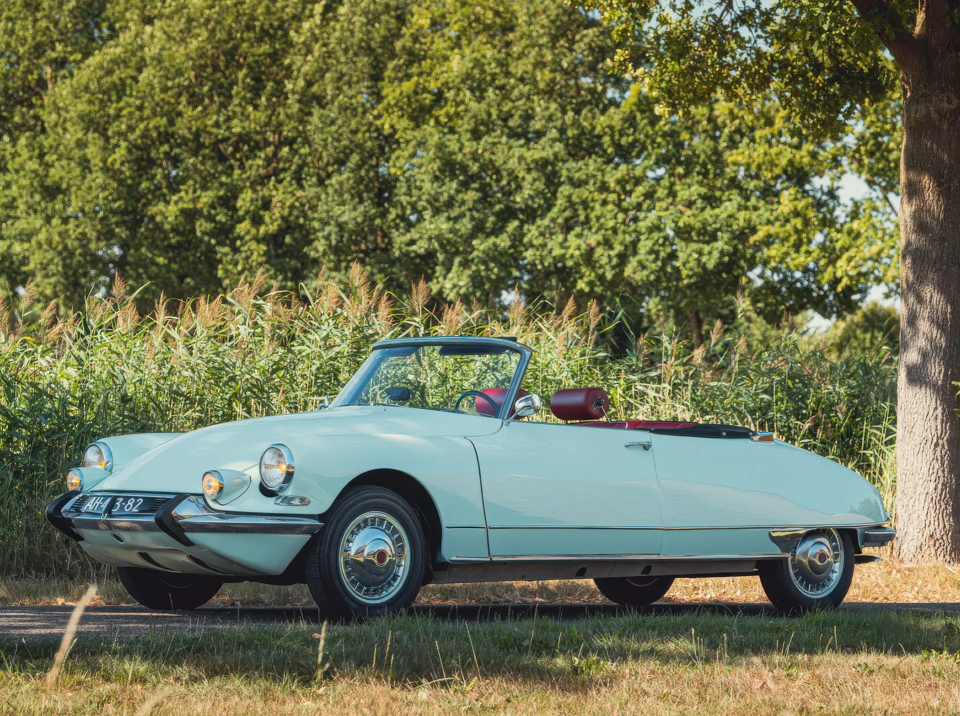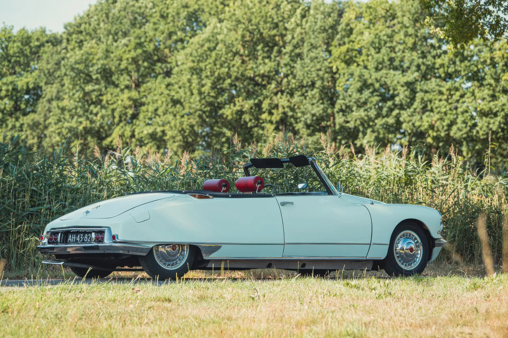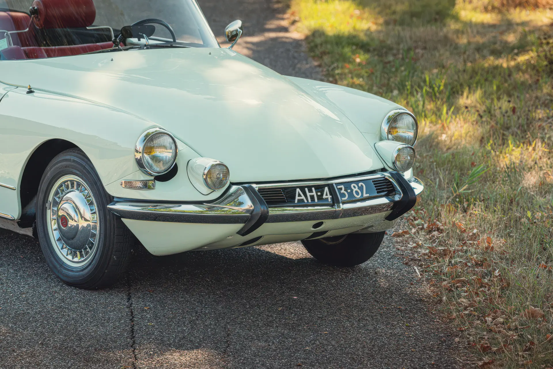 Cette DS19M est présentée dans une ravissante robe Blanc Carrare avec un intérieur en cuir Bordeaux, exactement comme elle a été livrée neuve en France cette année-là. Selon l’archiviste du club ID/DS Citroën néerlandais (et ancien propriétaire de la voiture), il s’agit du premier « Cabriolet Usine » construit pour l’année 1964, arrivé fin 1963 dans l’atelier Chapron. De plus, il s’agit de l’une des 122 Citroën DS19M Décapotable construites. La #8617 a quitté Chapron en février 1964 pour être livrée à Citroën en vue de sa commercialisation. Parmi les accessoires spéciaux notables (qui ne sont pas d’origine), citons des phares antibrouillard supplémentaires, une radio FM Continental Edison et des enjoliveurs diamant Robergel qui auraient été installés par le premier propriétaire. Ce dernier serait l’épouse d’un concessionnaire Berliet de la région de Dijon.