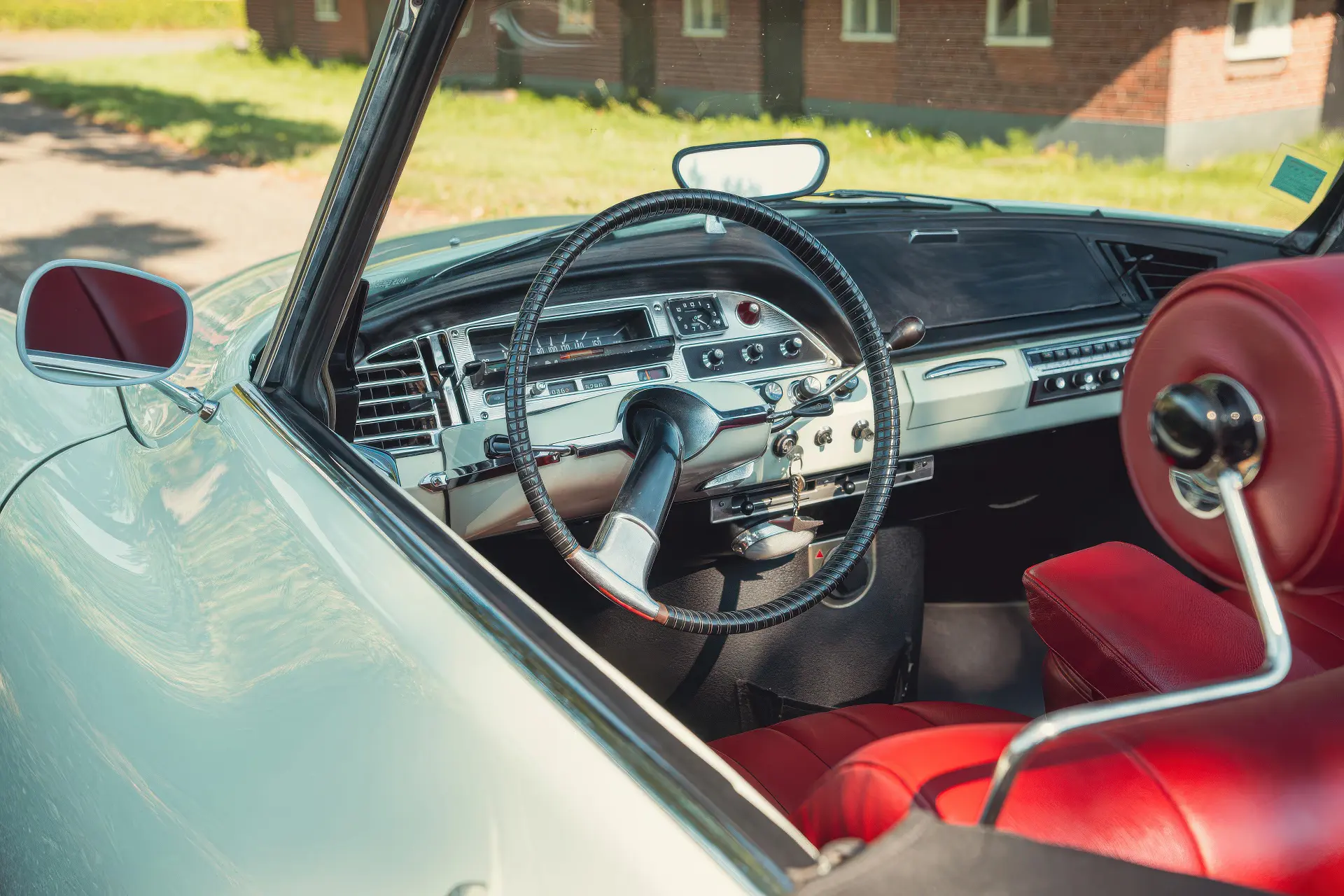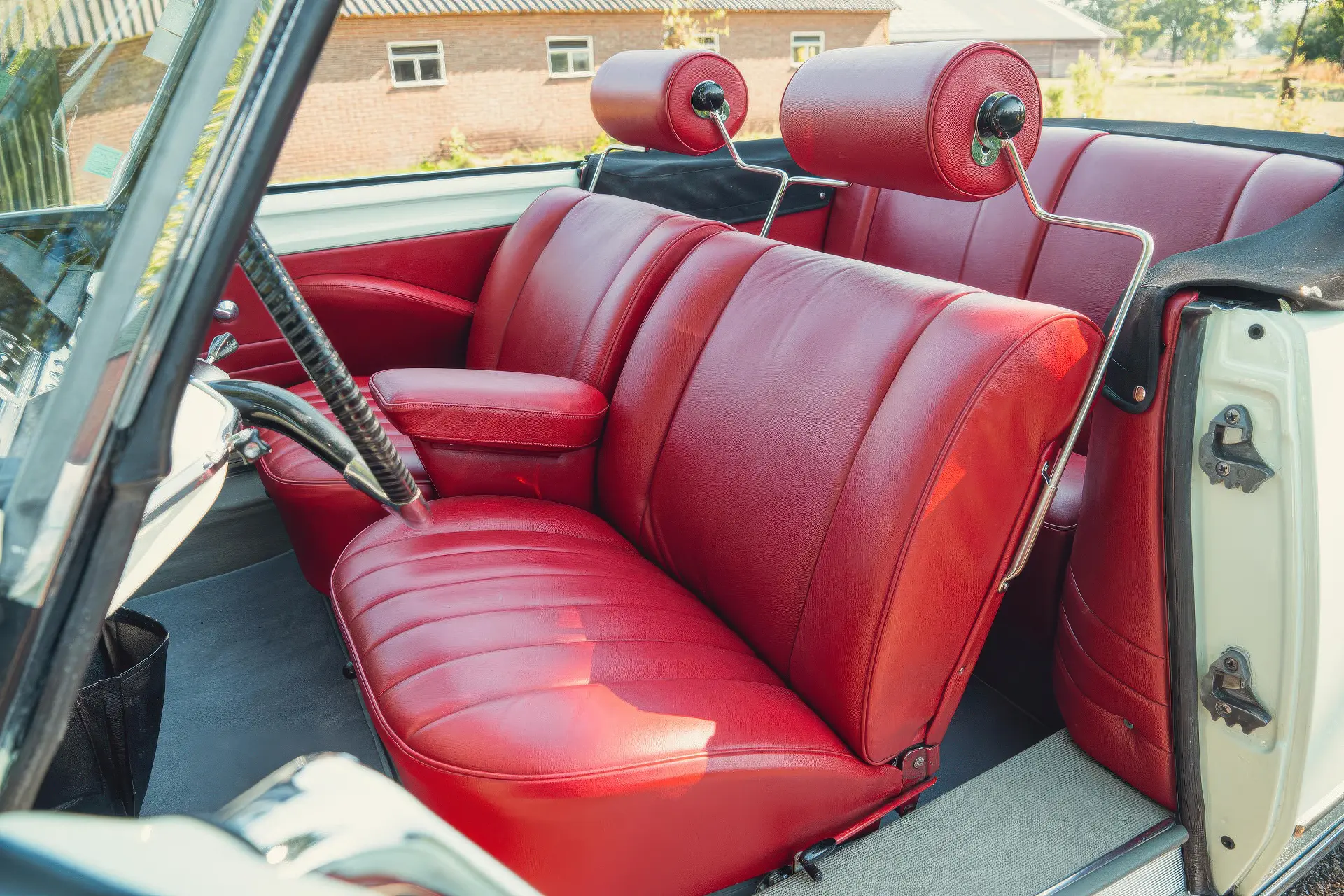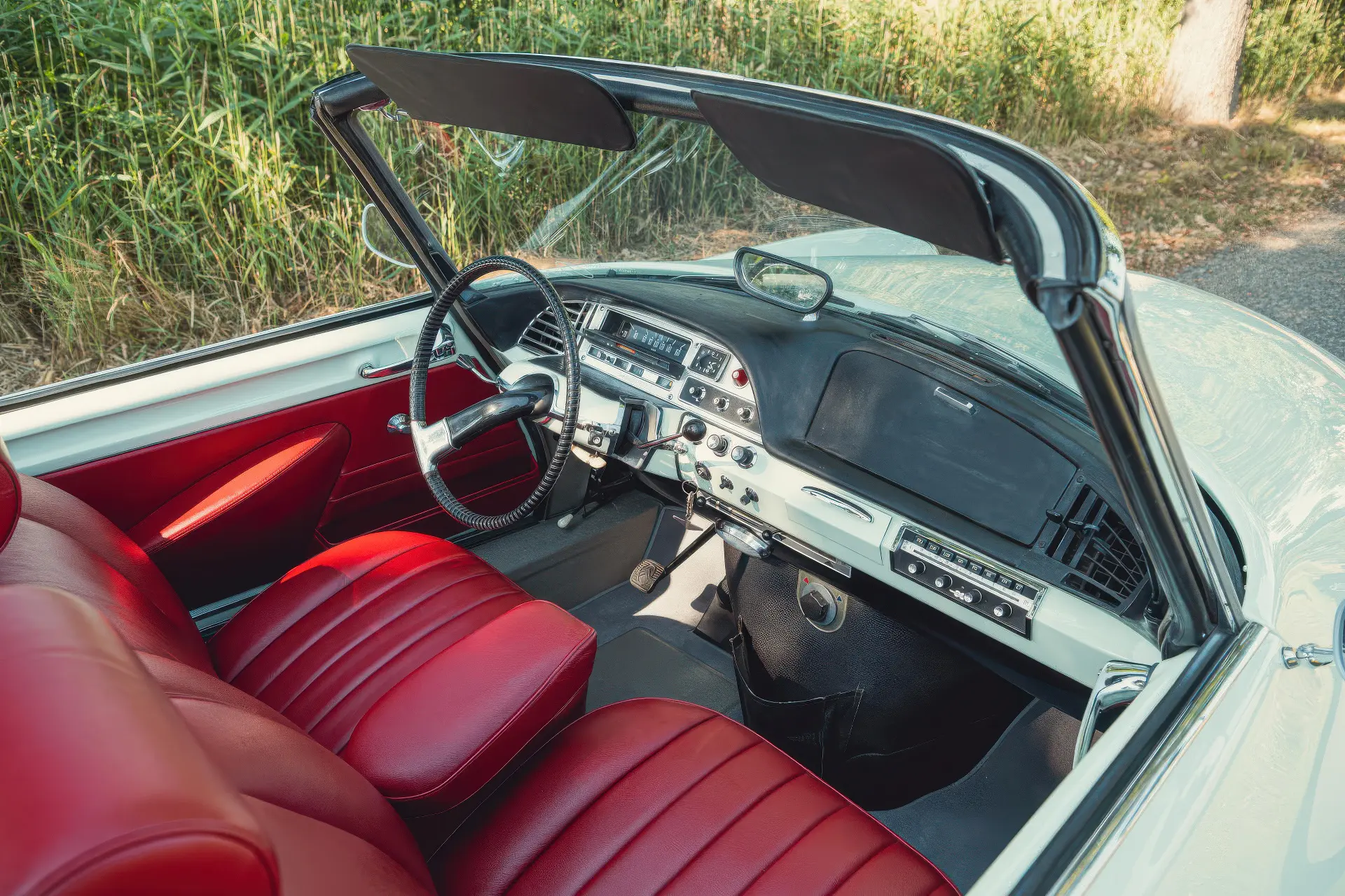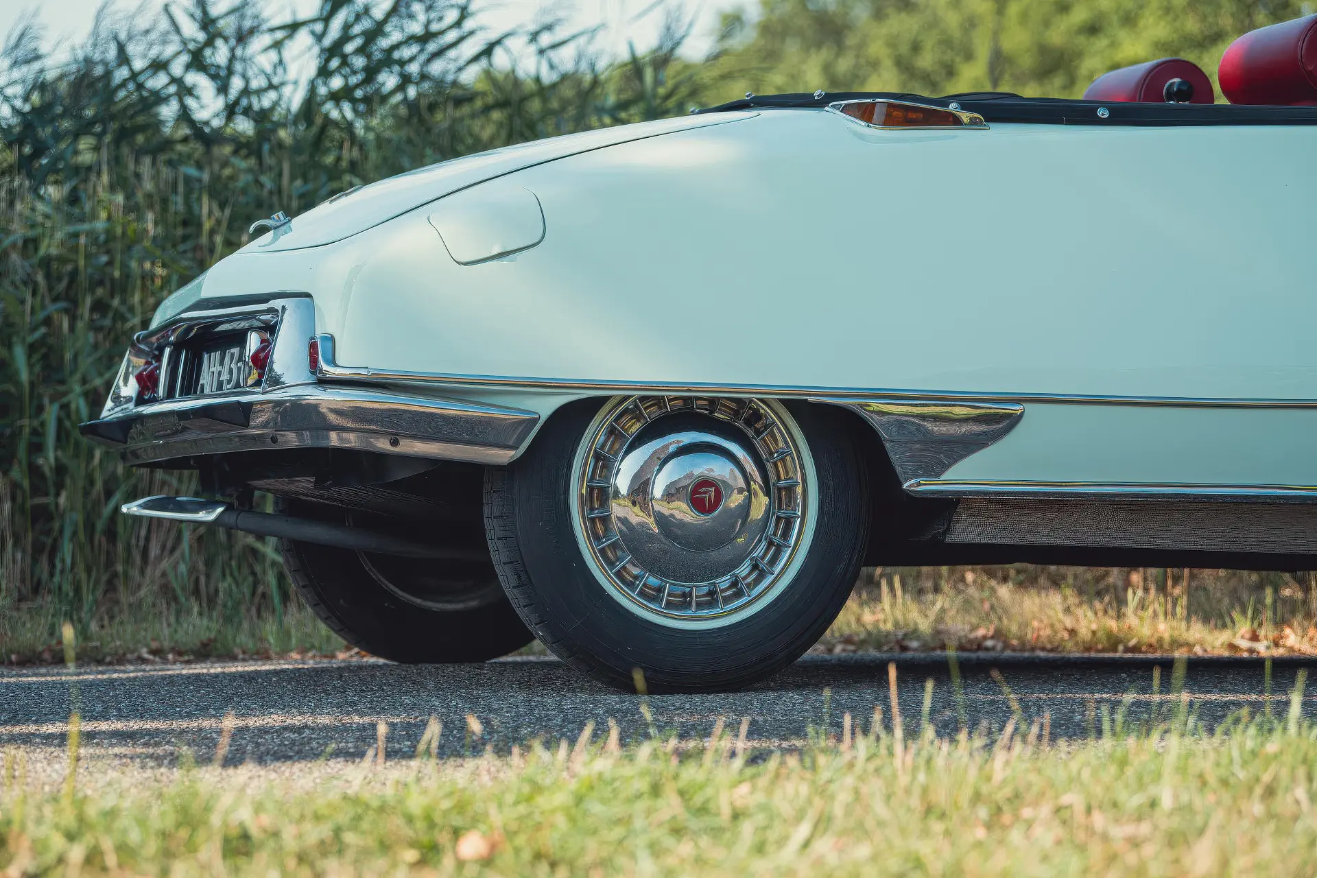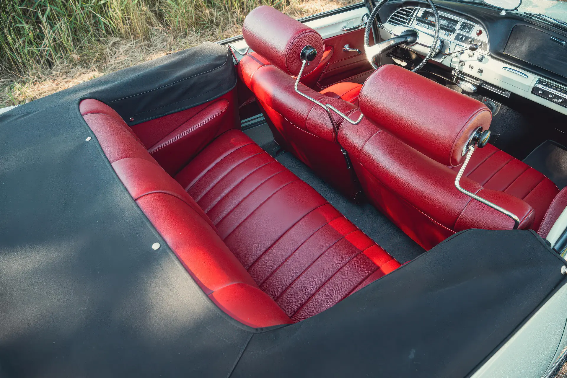 Cette DS19M est présentée dans une ravissante robe Blanc Carrare avec un intérieur en cuir Bordeaux, exactement comme elle a été livrée neuve en France cette année-là. Selon l’archiviste du club ID/DS Citroën néerlandais (et ancien propriétaire de la voiture), il s’agit du premier « Cabriolet Usine » construit pour l’année 1964, arrivé fin 1963 dans l’atelier Chapron. De plus, il s’agit de l’une des 122 Citroën DS19M Décapotable construites. La #8617 a quitté Chapron en février 1964 pour être livrée à Citroën en vue de sa commercialisation. Parmi les accessoires spéciaux notables (qui ne sont pas d’origine), citons des phares antibrouillard supplémentaires, une radio FM Continental Edison et des enjoliveurs diamant Robergel qui auraient été installés par le premier propriétaire. Ce dernier serait l’épouse d’un concessionnaire Berliet de la région de Dijon.