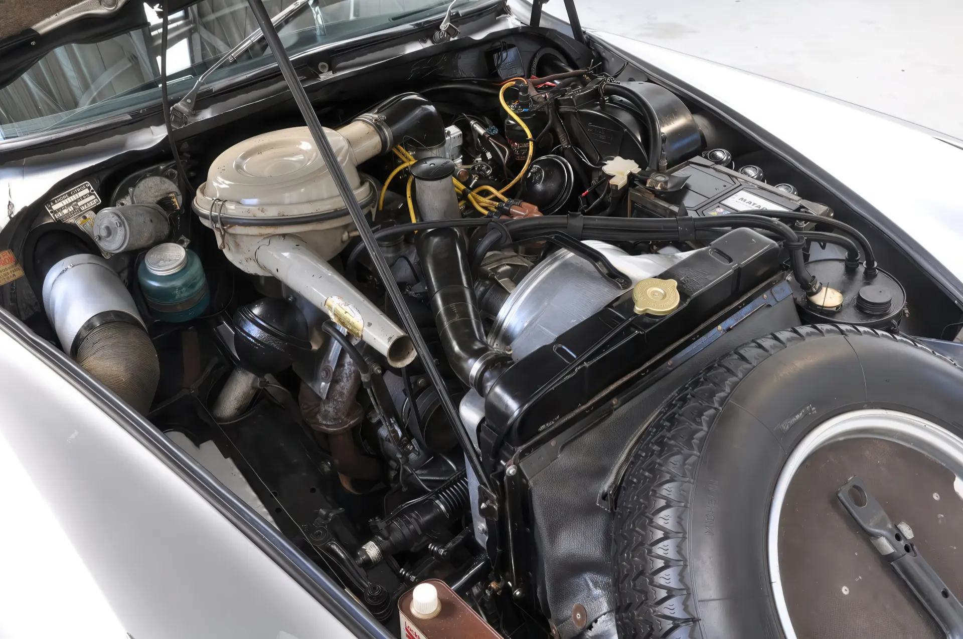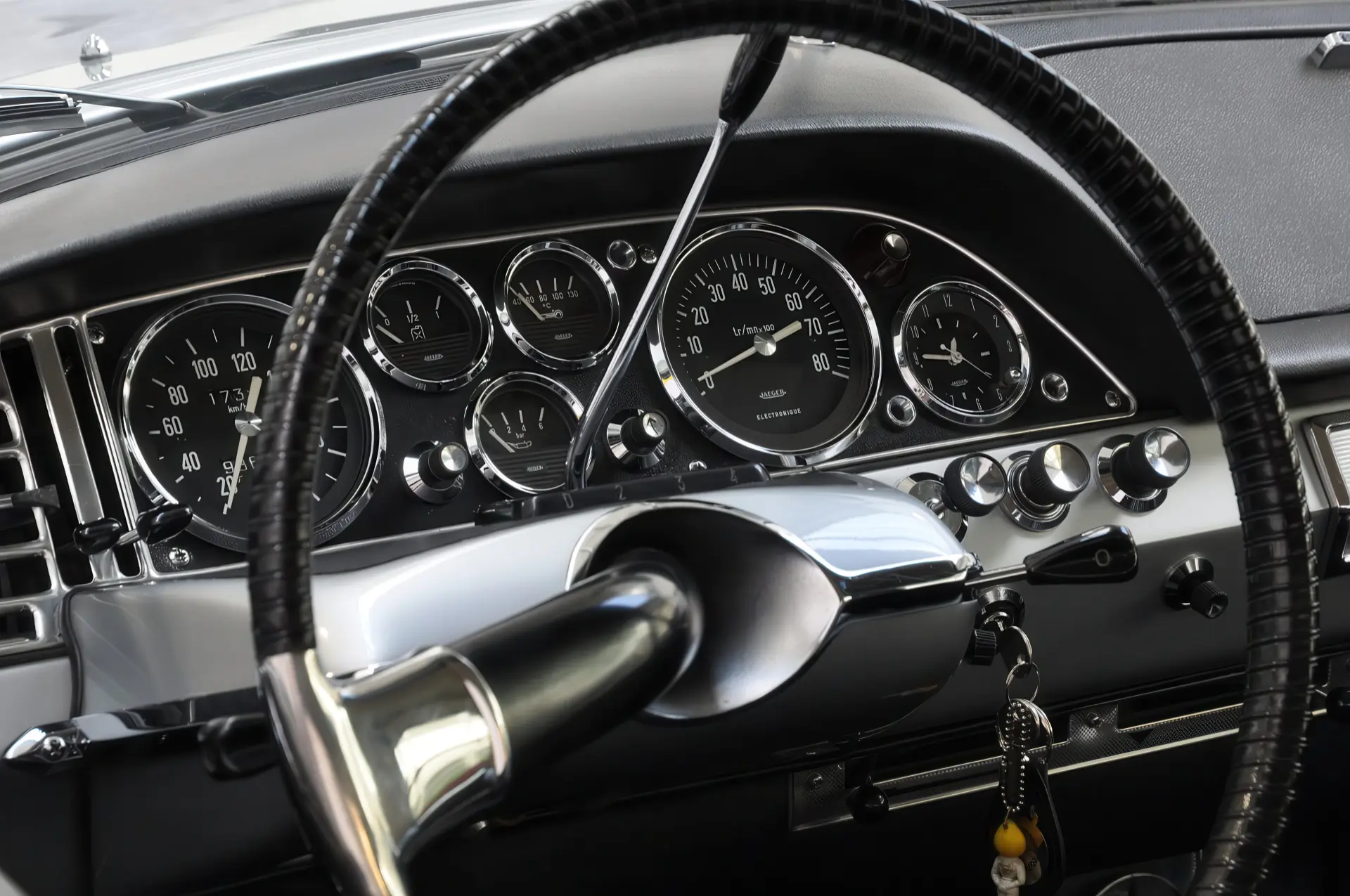 Ce superbe exemplaire, dans un état d’origine exceptionnel, a une histoire absolument limpide et, option rarissime, il est équipée de la boite hydraulique. En effet ce Le Dandy est resté entre les mains de la première propriétaire, Madame Sylvie Inès Hayoun Obermayer, demeurant Avenue Malakoff à Paris, de 1965 à 1991, la carte grise originale ainsi que des photos de Mme Hayoun Obermayer sont encore dans le dossier. La voiture fut achetée en 1991 par un amateur de DS hollandais qui l’a conserva soigneusement dans son état d’origine jusqu’à aujourd’hui. Ce beau coupé totalise 98 000 km depuis sa sortie d’usine et nous sommes ici en présence d’une voiture originale, sans aucune corrosion ni dommage, dotée de son intérieur cuir noir avec accoudoir central d’origine, ses moquettes d’origine, ses vitres teintées, son tableau de bord Jaeger et sa radio Continental Edison.