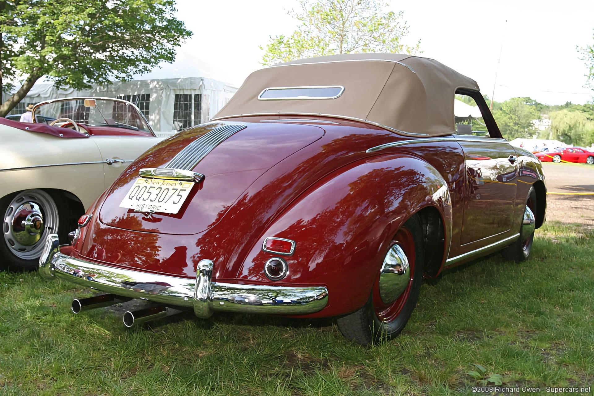 Les premières voitures étaient équipées d’un pare-brise divisé, mais au cours de l’année 53, ce pare-brise a été remplacé par une vitre unique. La voiture a été allongée aux deux extrémités et dotée d’une calandre de type Porsche au-dessus du capot arrière du moteur et d’un éclairage de plaque d’immatriculation Porsche qui abrite également le feu de freinage.