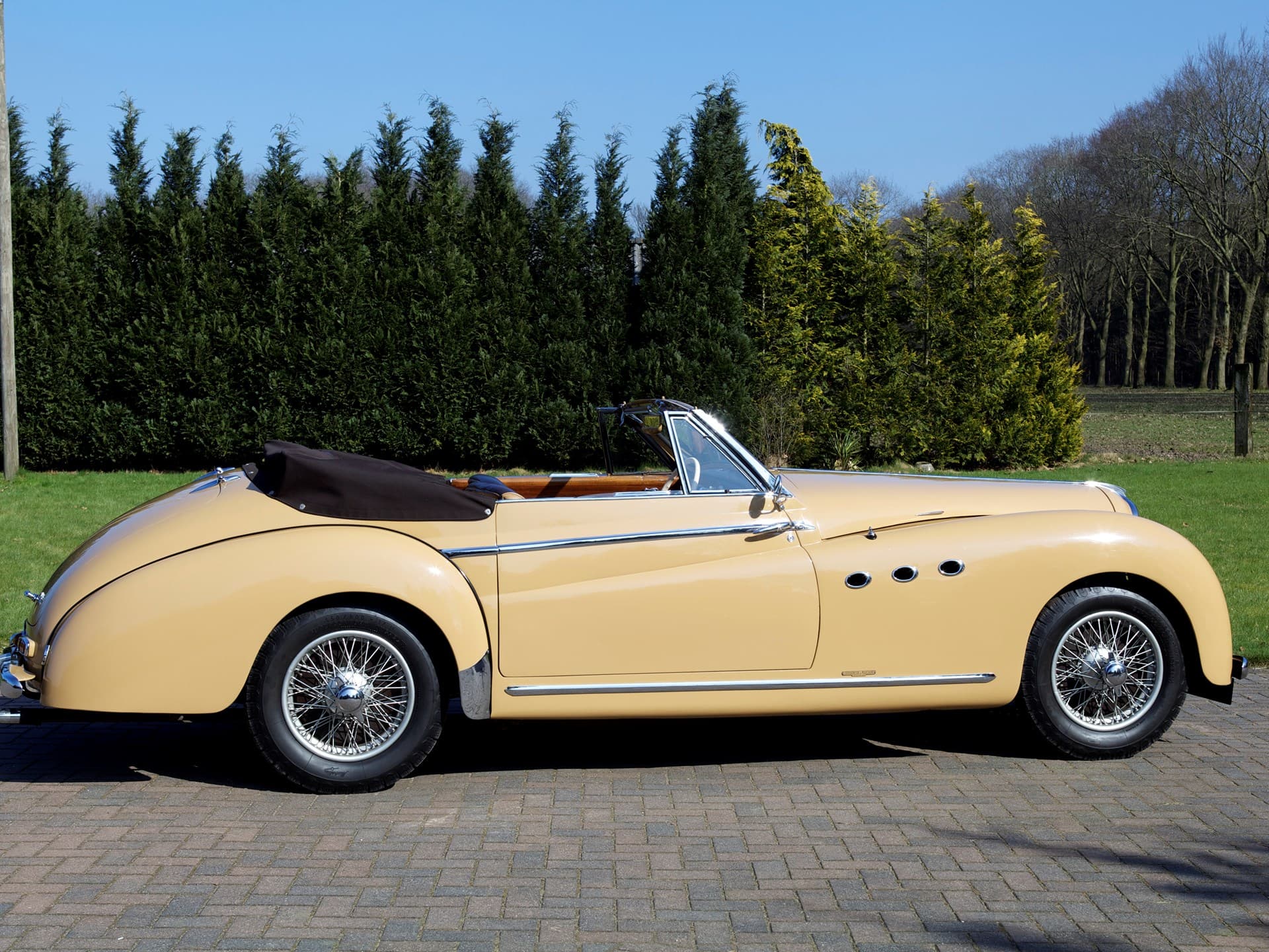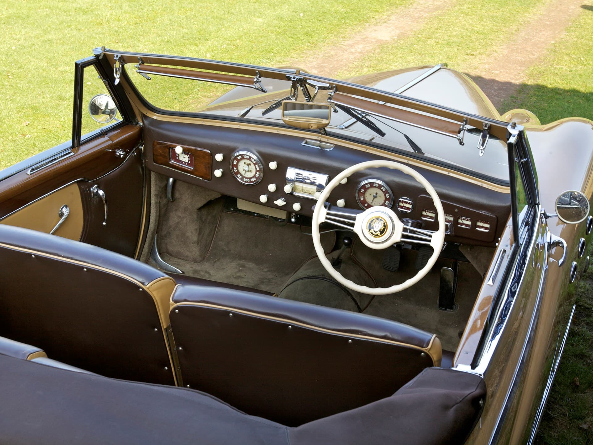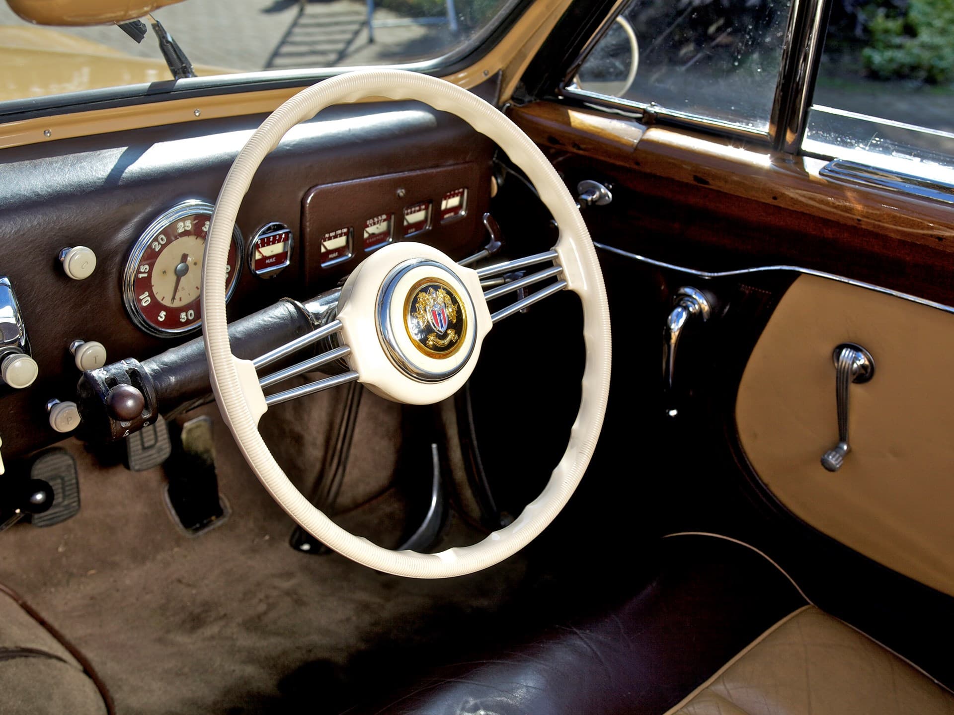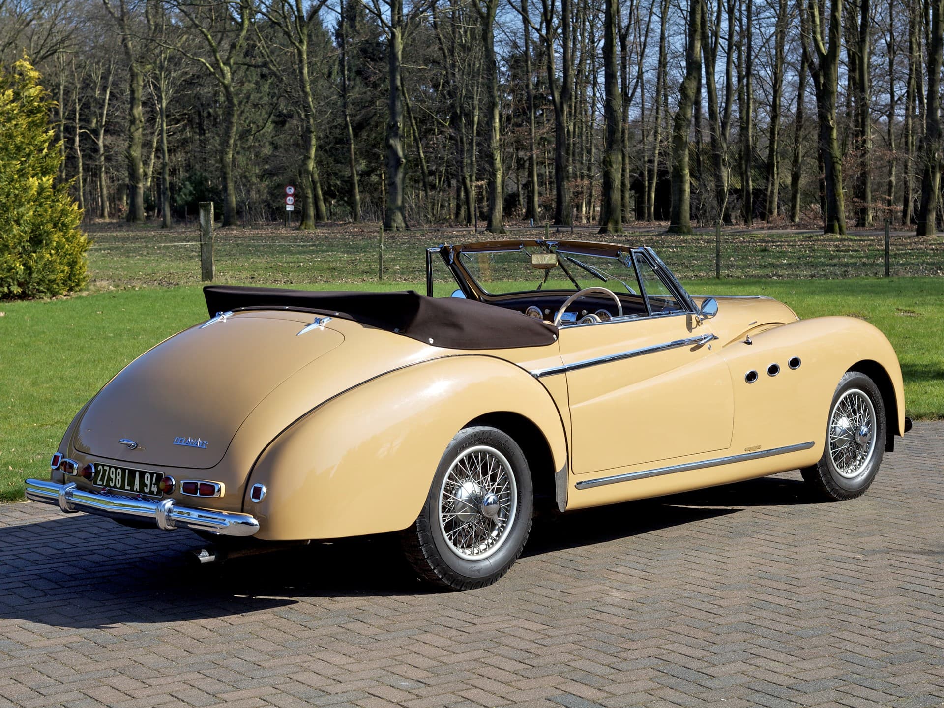 Cet exemplaire de Letourneur et Marchand a été construit en 1950 et a passé la plus grande partie de sa vie en France. Nous savons que le premier propriétaire français l’a conservée pendant près de 30 ans, jusqu’à ce qu’il la vende le 24 octobre 1979 à M. André Acoulon de Saint-Maur de Fosse, dans le Val de Marne, juste à côté de Paris. Selon la plaque encore apposée sur le seuil de 801348, elle a été restaurée en France par l’Atelier de Restauration Automobile, à Sorigny. Le propriétaire actuel, originaire des Pays-Bas, a acquis la voiture en 2003 et depuis, elle est restée dans sa collection, toujours avec ses anciennes plaques d’immatriculation françaises. Très connue du Club Delahaye en France, la voiture a participé à de nombreux rallyes et concours classiques, où elle a été très bien accueillie. Magnifique exemple bien entretenu du modèle emblématique de Delahaye, elle est accompagnée d’un important dossier de documents, y compris les factures, et est prête à être montrée ou appréciée lors de tournées et de rallyes.
