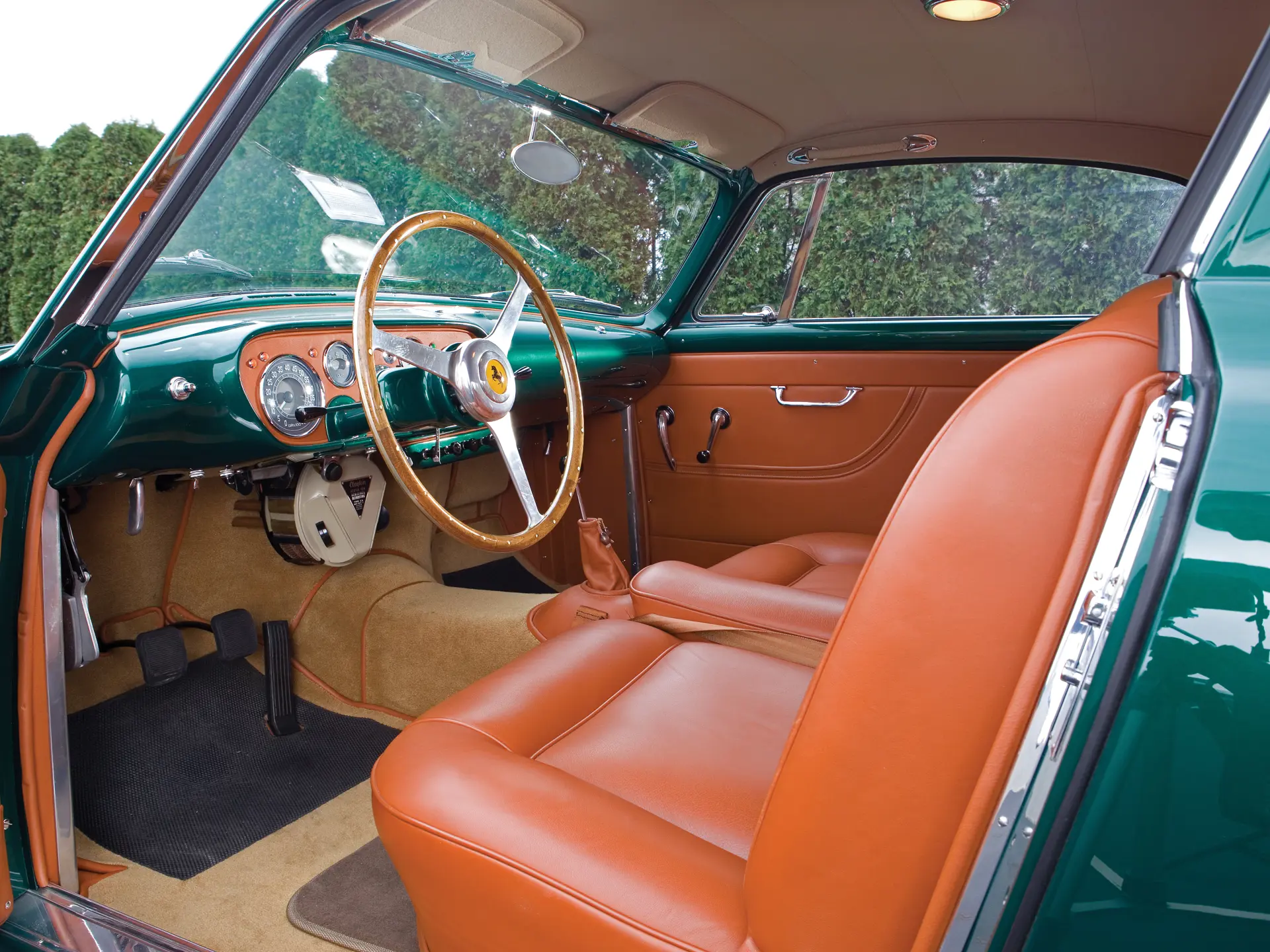 L’Europa était la seule Ferrari 250 à être équipée du V-12 conçu par Aurelio Lampredi, qui était à l’origine destiné à la compétition et produisait plus de 200 chevaux. En tant que telle, la 250 GT Europa était capable d’atteindre une vitesse de 135 mph et un temps de 0 à 60 en moins de 8 secondes. Le moteur V-12 était couplé à une boîte de vitesses entièrement synchronisée et, associé aux superbes caractéristiques de maniabilité de la voiture, constituait un ensemble gran turismo exceptionnel.