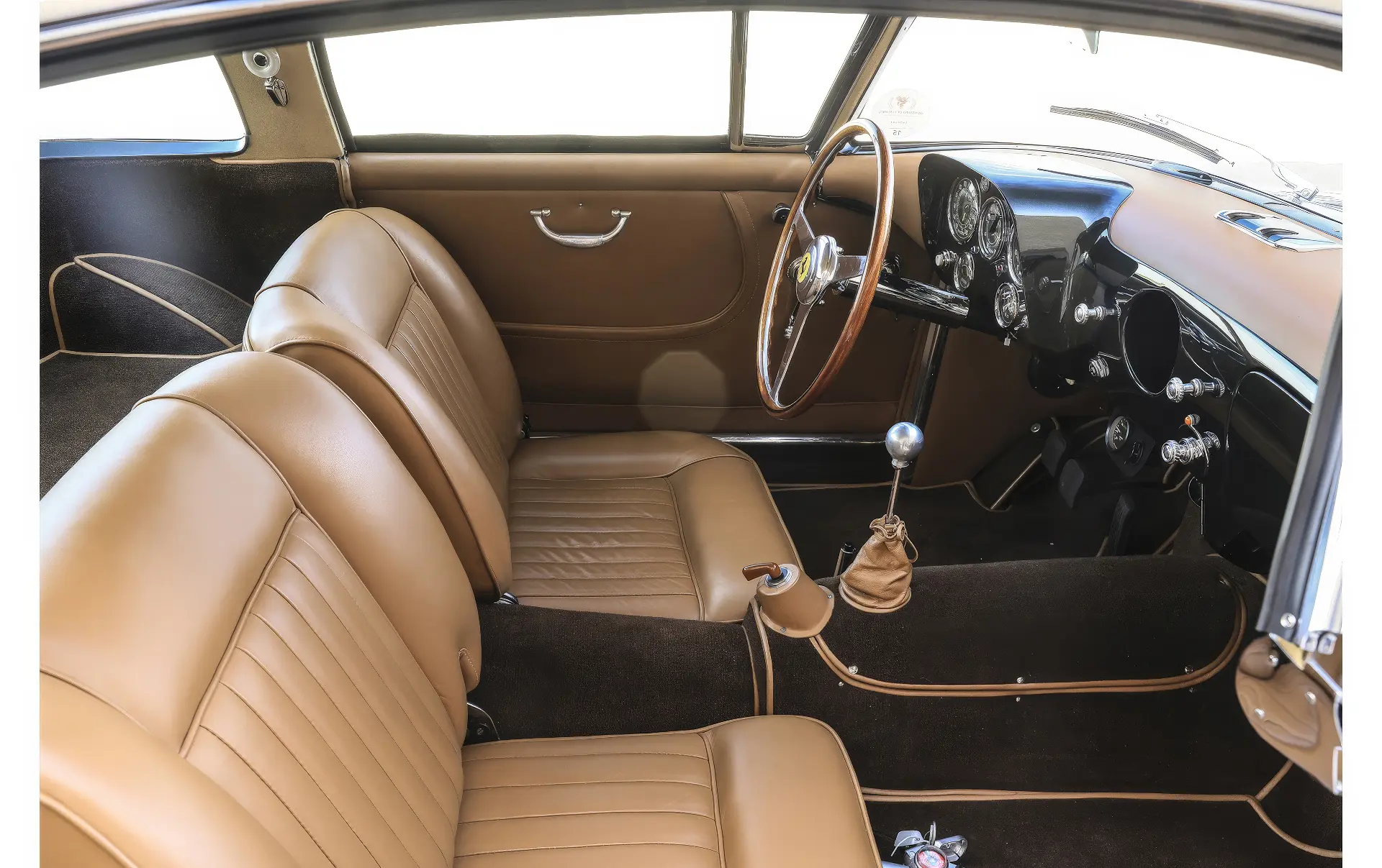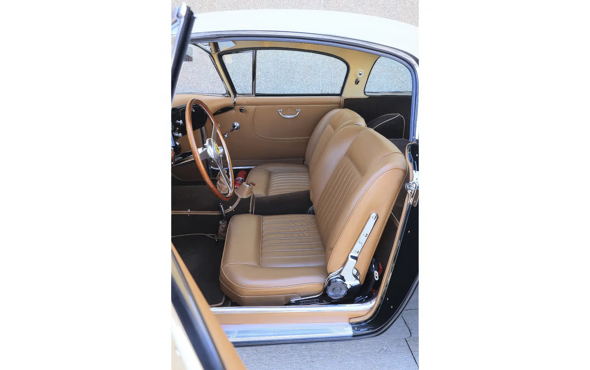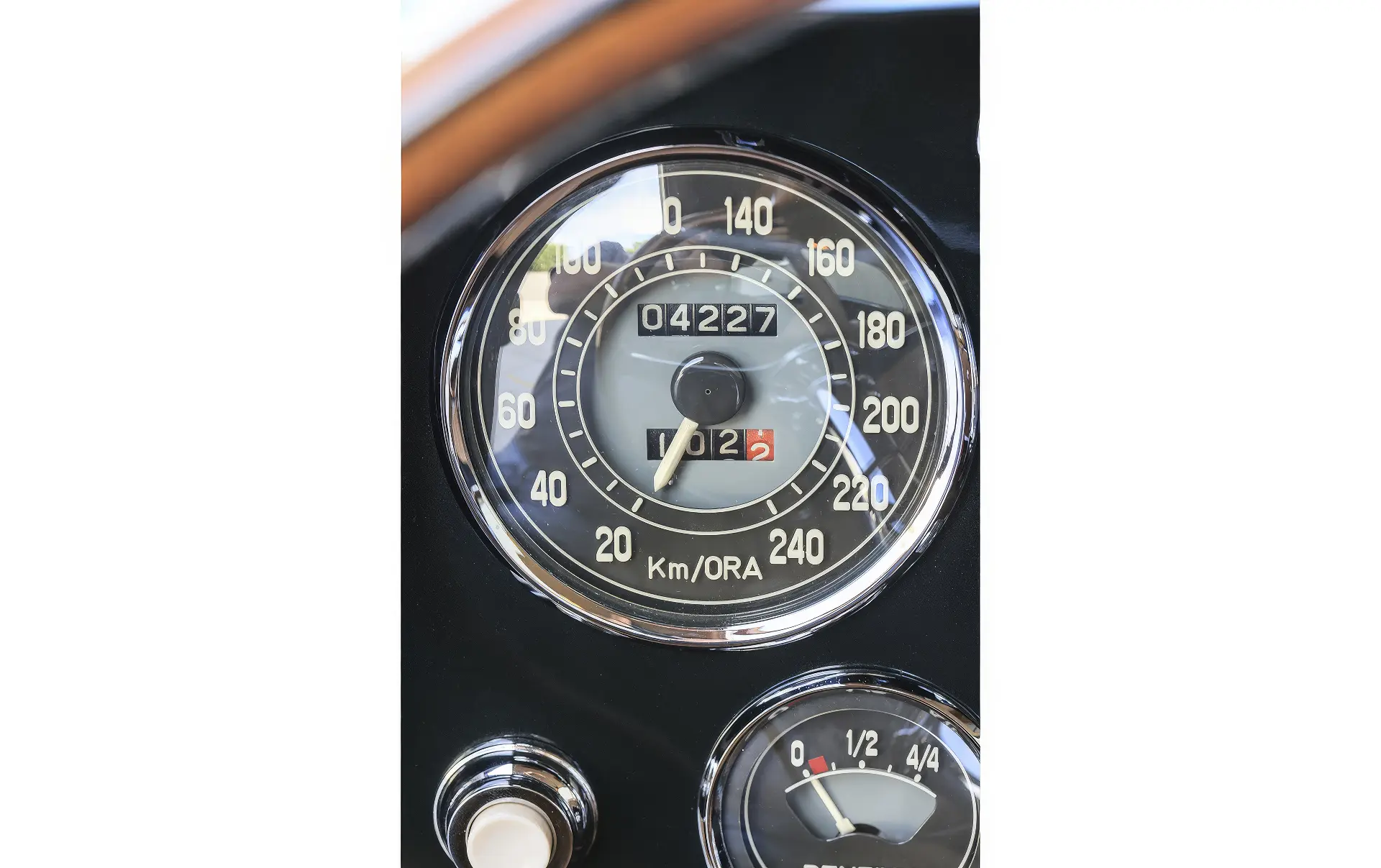 L’intérieur était du pur Vignale, avec des aménagements luxueux, des équipements sur mesure et des sièges confortables recouverts de cuir. Le tableau de bord métallique, peint dans la couleur de la carrosserie, était équipé d’une gamme complète d’instruments Veglia, dont un médiomètre, flanqué de divers boutons, interrupteurs et d’une boîte à gants verrouillable.