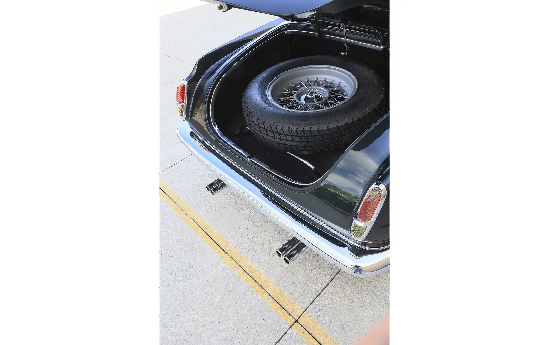 Le coupé unique que Michelotti et Vignale ont créé pour la princesse de Réthy ne fait pas exception à la règle. D’une conception unique, ce remarquable coupé à deux places se distingue par son impressionnante calandre en forme d’ovoïde, ses bouches d’aération fonctionnelles ornées de cerclages chromés et ses subtils ailerons arrière débouchant sur de grands feux arrière verticaux. La caractéristique la plus remarquable du coupé est peut-être sa ligne de toit en forme de canopée, avec un pare-brise panoramique spectaculaire et une lunette arrière enveloppante qui donnent à la voiture une allure dynamique et sportive. Quel que soit l’angle de vue, le coupé de Réthy était une voiture magnifique, avec des formes voluptueuses, de belles lignes et des proportions compactes et agressives.