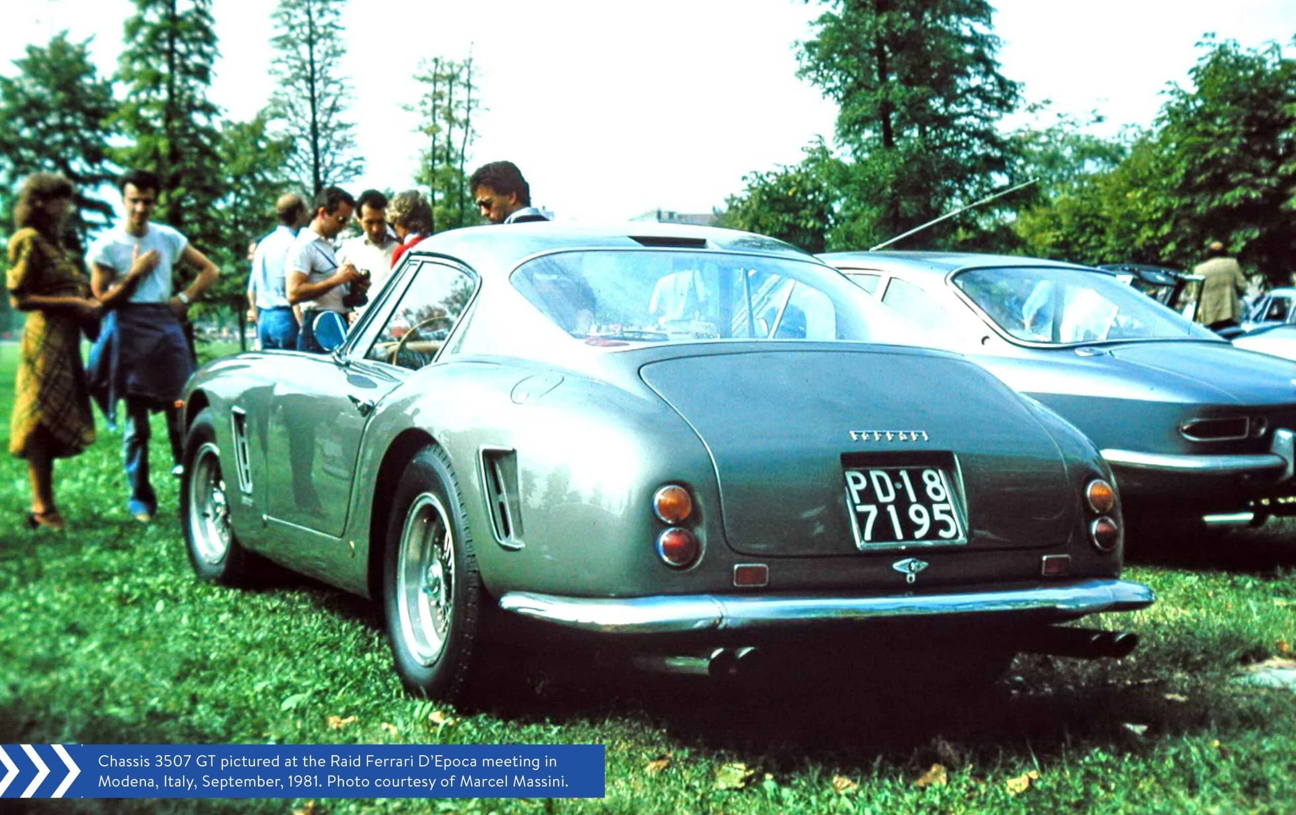 Pendant qu’il était propriétaire, la 3507 GT a été enregistrée à Padoue sous le numéro « PD 187195 », puis acceptée par le Registro Automotoclub Storico Italiano. Bien que le SWB ait été utilisé avec parcimonie, en septembre 1981, Sig. Dubbini l’a conduite au Raid Ferrari d’Epoca de l’ACI qui s’est tenu à Modène. Une photo prise lors de l’événement par l’historien Ferrari Marcel Massini montre la Ferrari de 19 ans très semblable à ce qu’elle est aujourd’hui.
