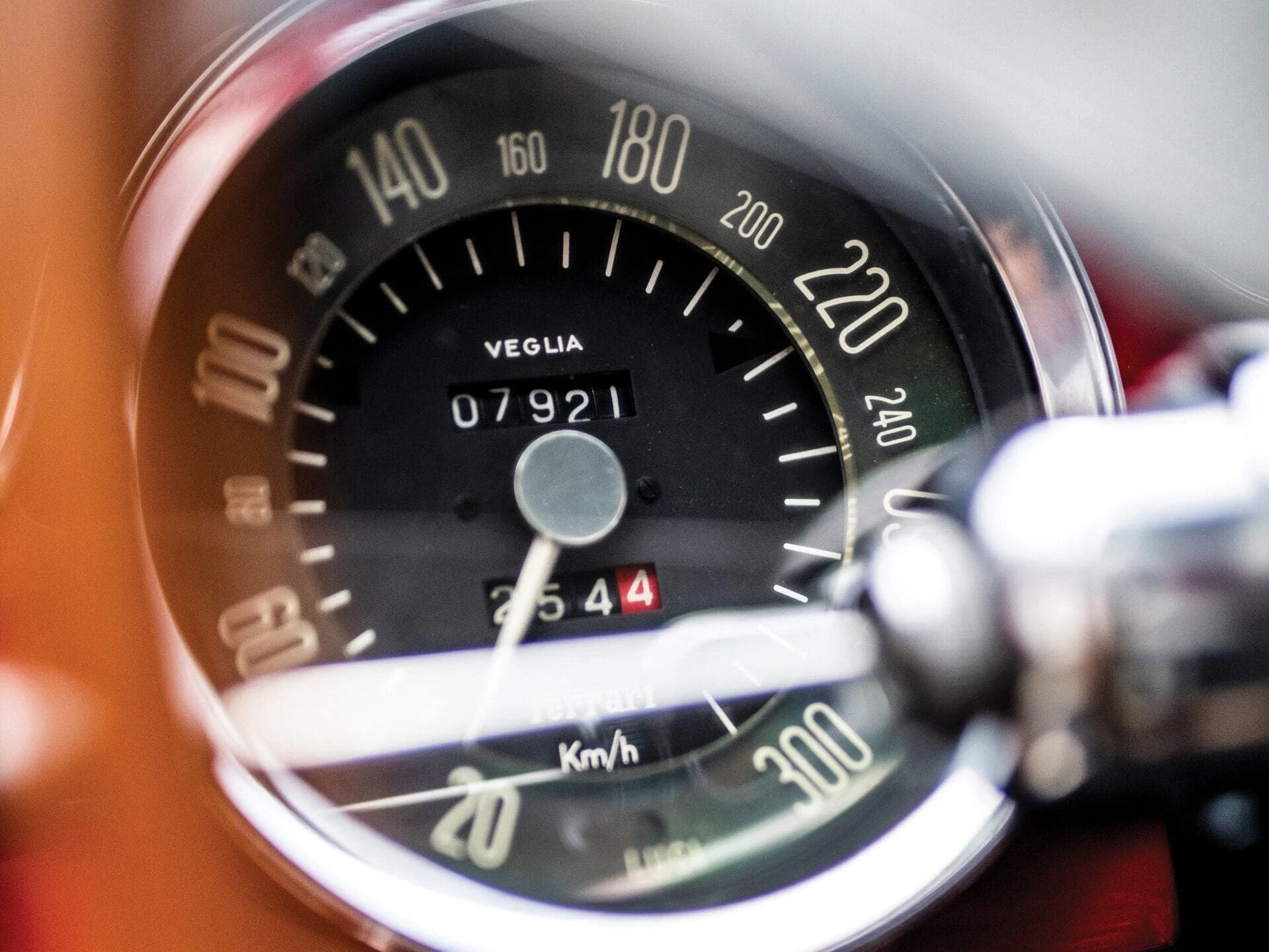 La dernière année de production de la Ferrari 250 GT/E fut 1963. Elle n’a été fabriquée qu’à 954 exemplaires et il en reste à peine 500. Peu d’entre elles possèdent encore leur carrosserie originale et intacte de Pininfarina.