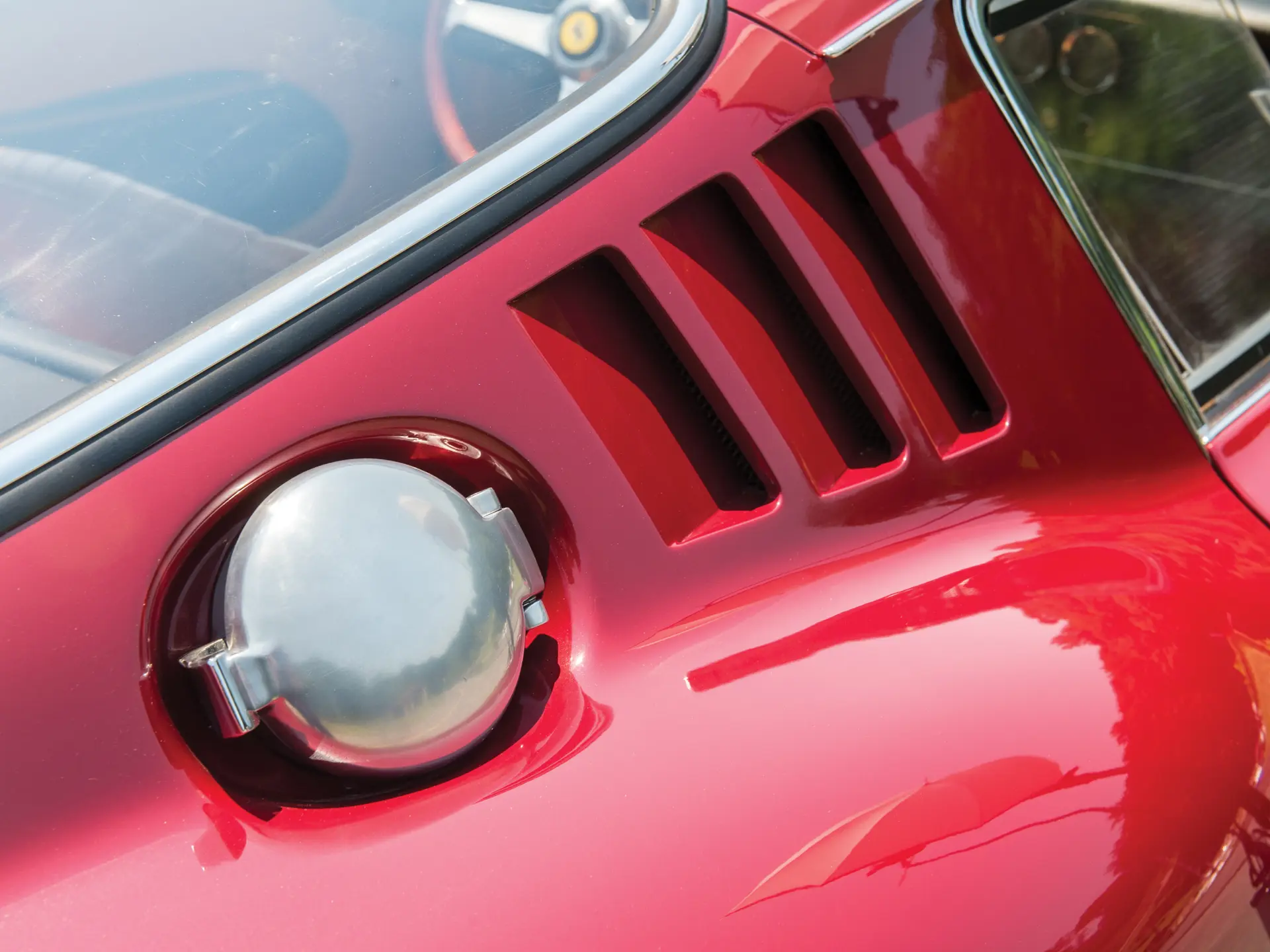 Allegretti a réalisé une brillante interprétation de la carrosserie de ce qui est peut-être la 275 GTB/C Speciale la plus célèbre et la plus attrayante, châssis 06885, la voiture du Mans de 1965. Allegretti a doté cette voiture, châssis 09813, du nez caractéristique de la 250 GTO et du renflement du capot à ouverture grillagée, conférant à la carrosserie de la Speciale une allure puissante et agressive bien différente de celle de la 275 GTB standard. Les ailes arrière présentent les triples ouïes d’aération et les panneaux supérieurs remodelés, créés pour améliorer la circulation de l’air à l’arrière de la Speciale et offrir un appui supplémentaire.